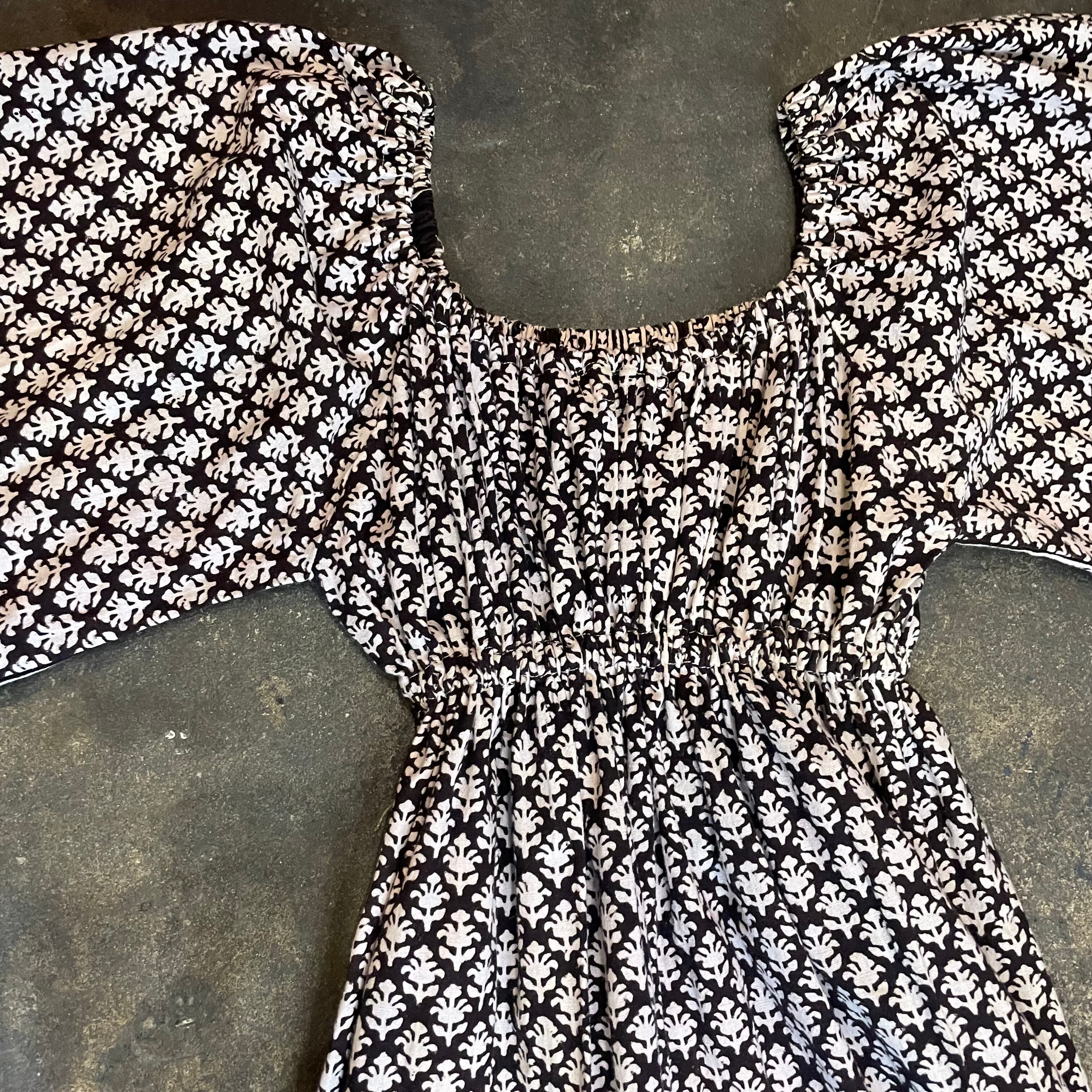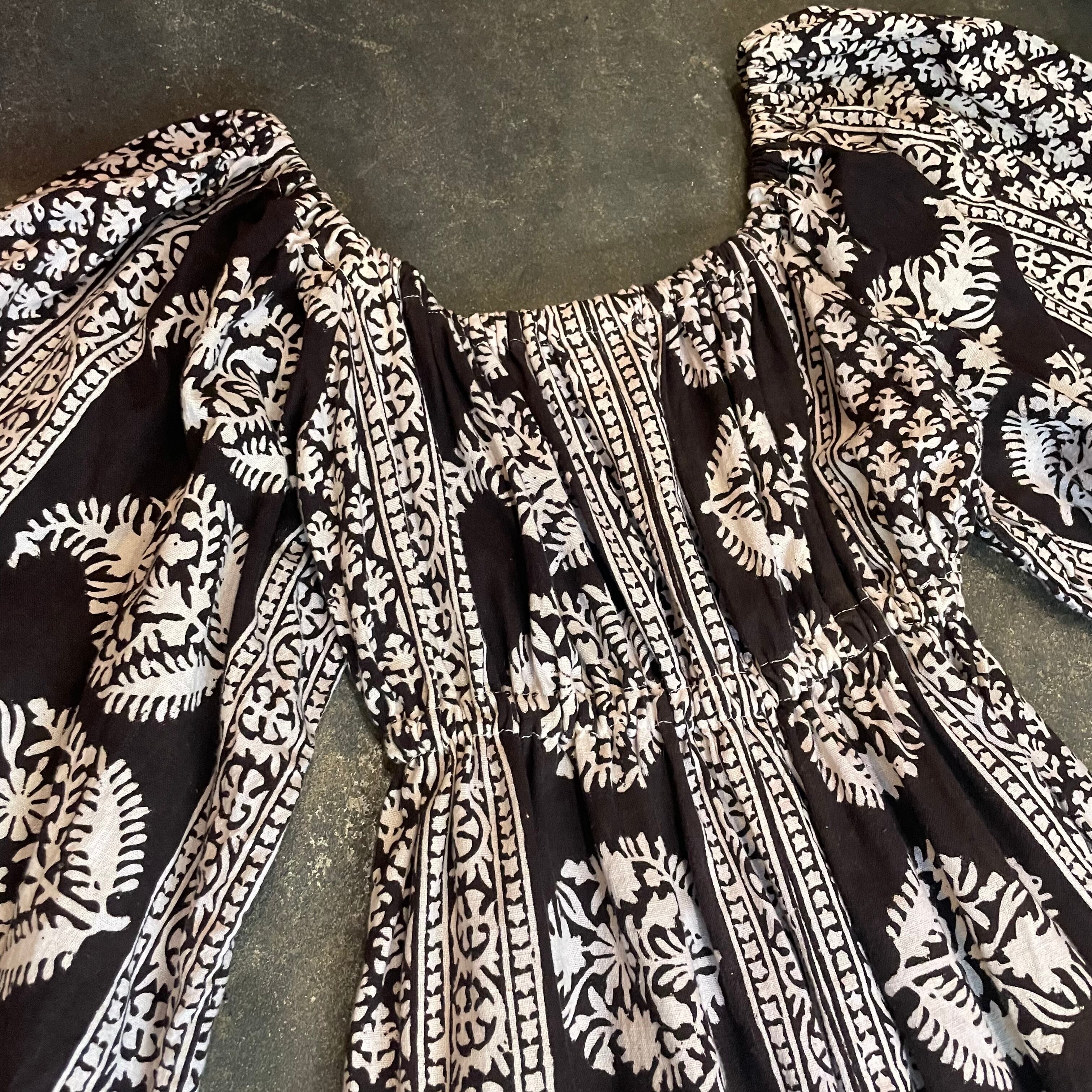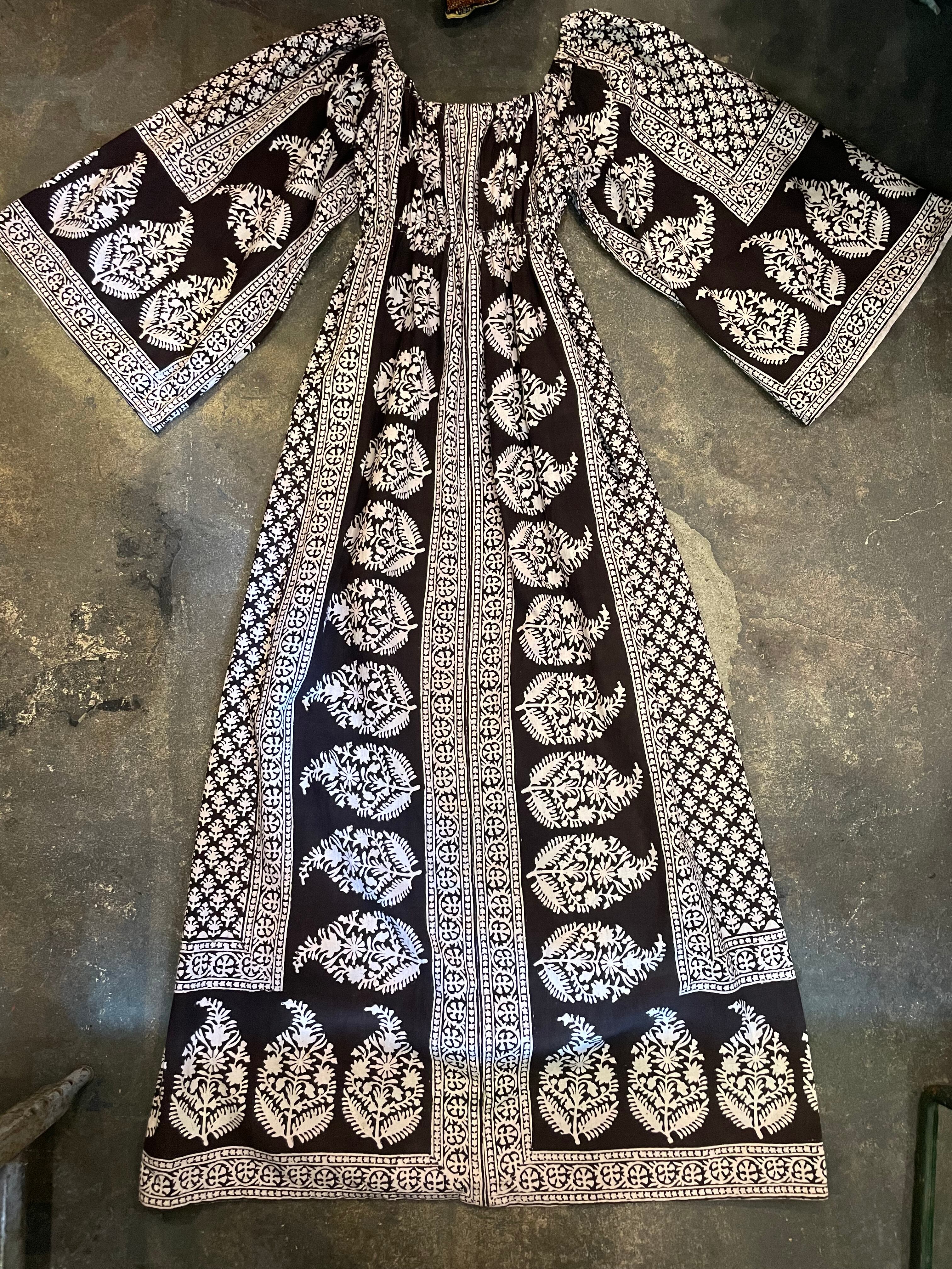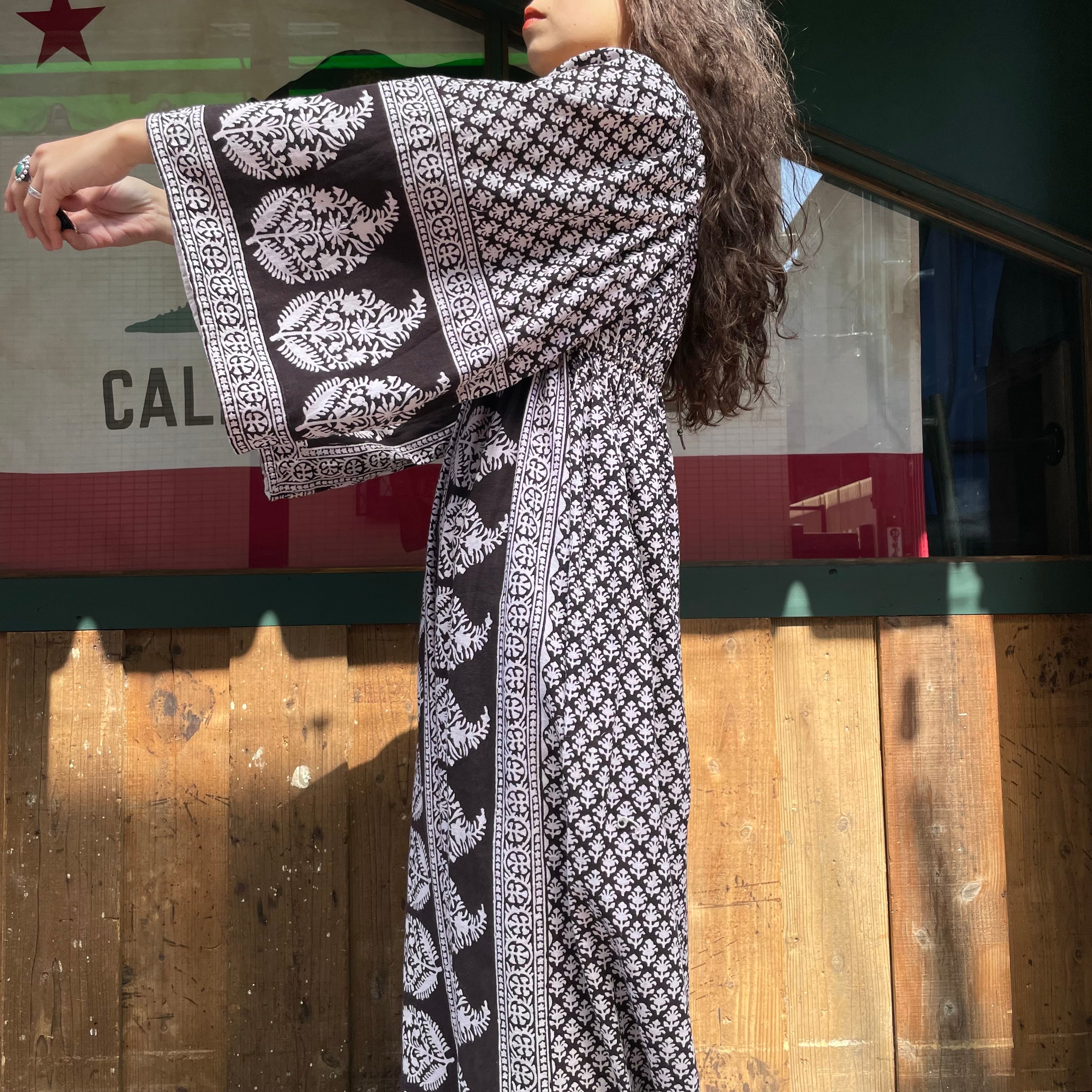 ブラックプリントがかわいい60〜70年代頃のインド製のワンピースです。