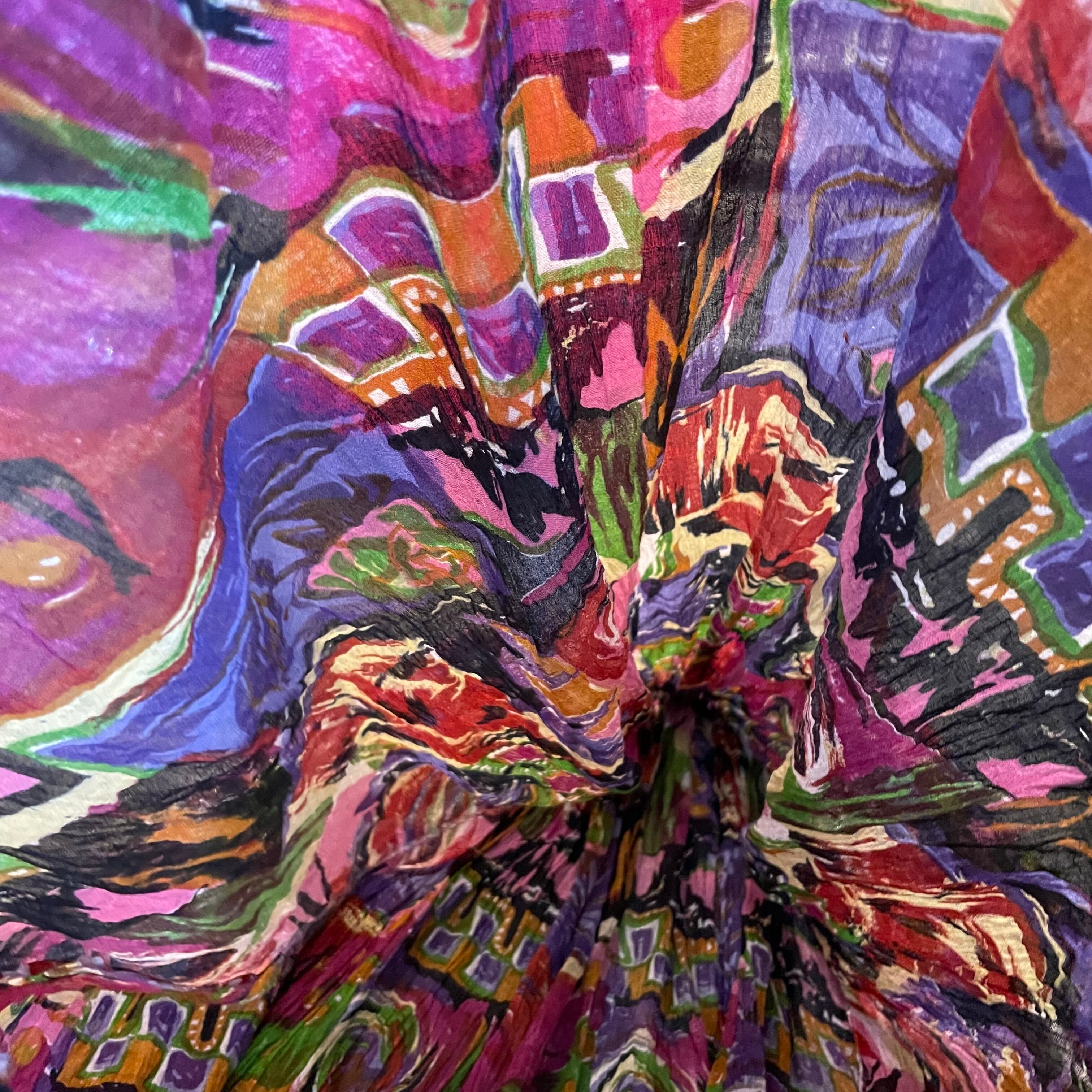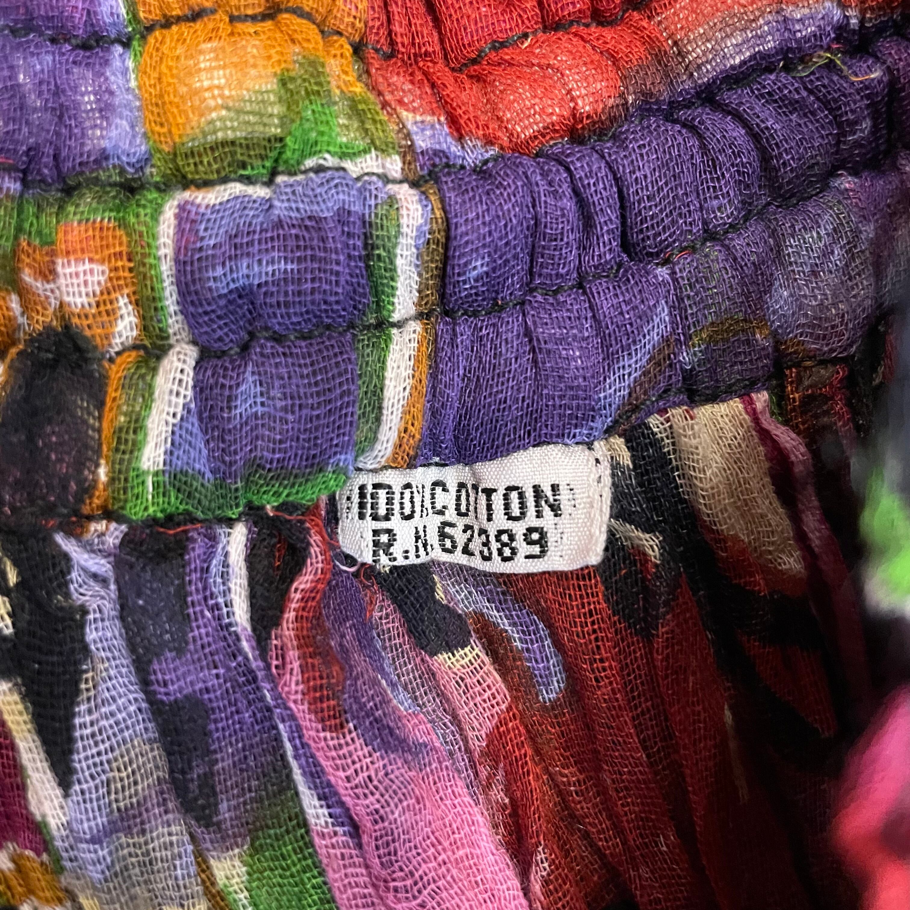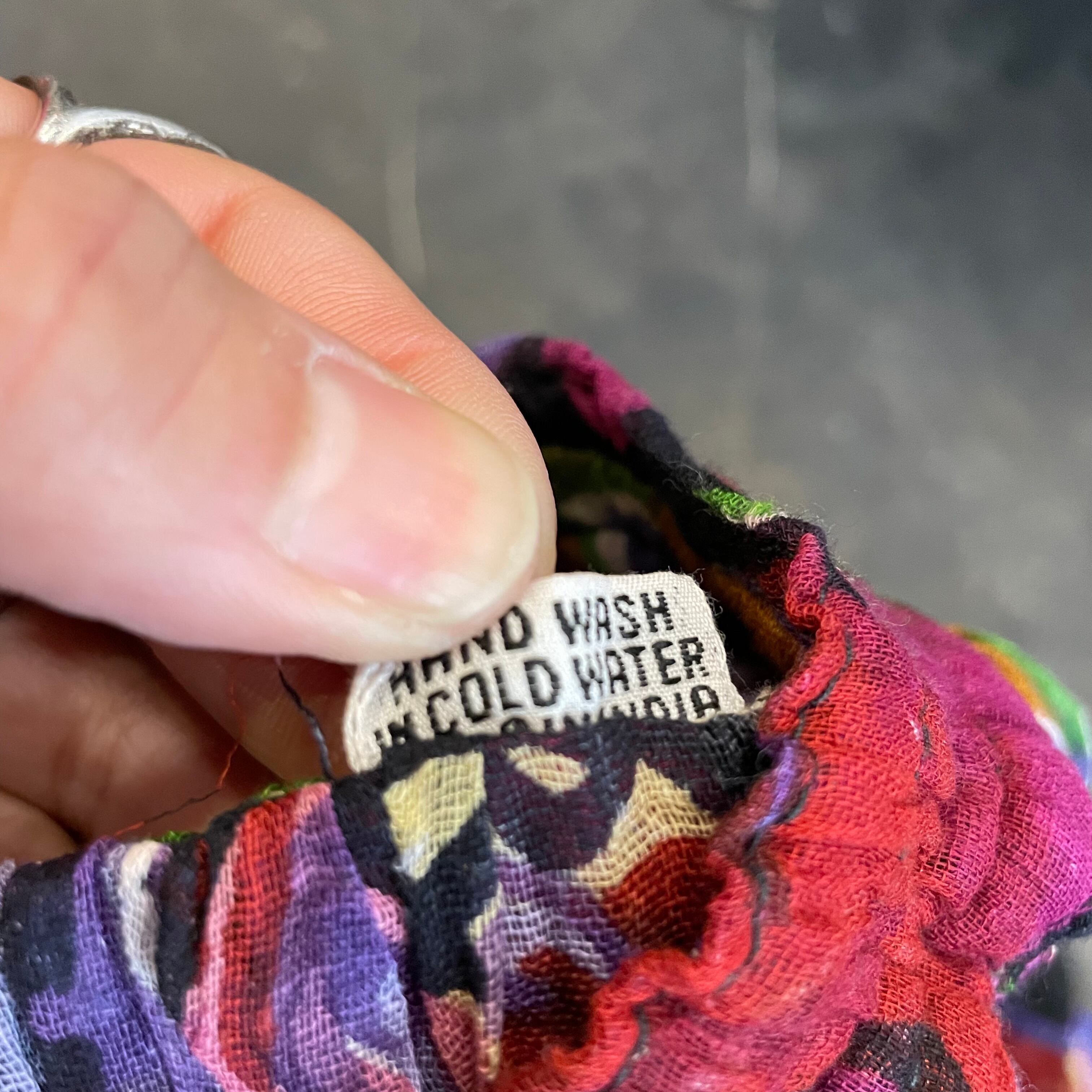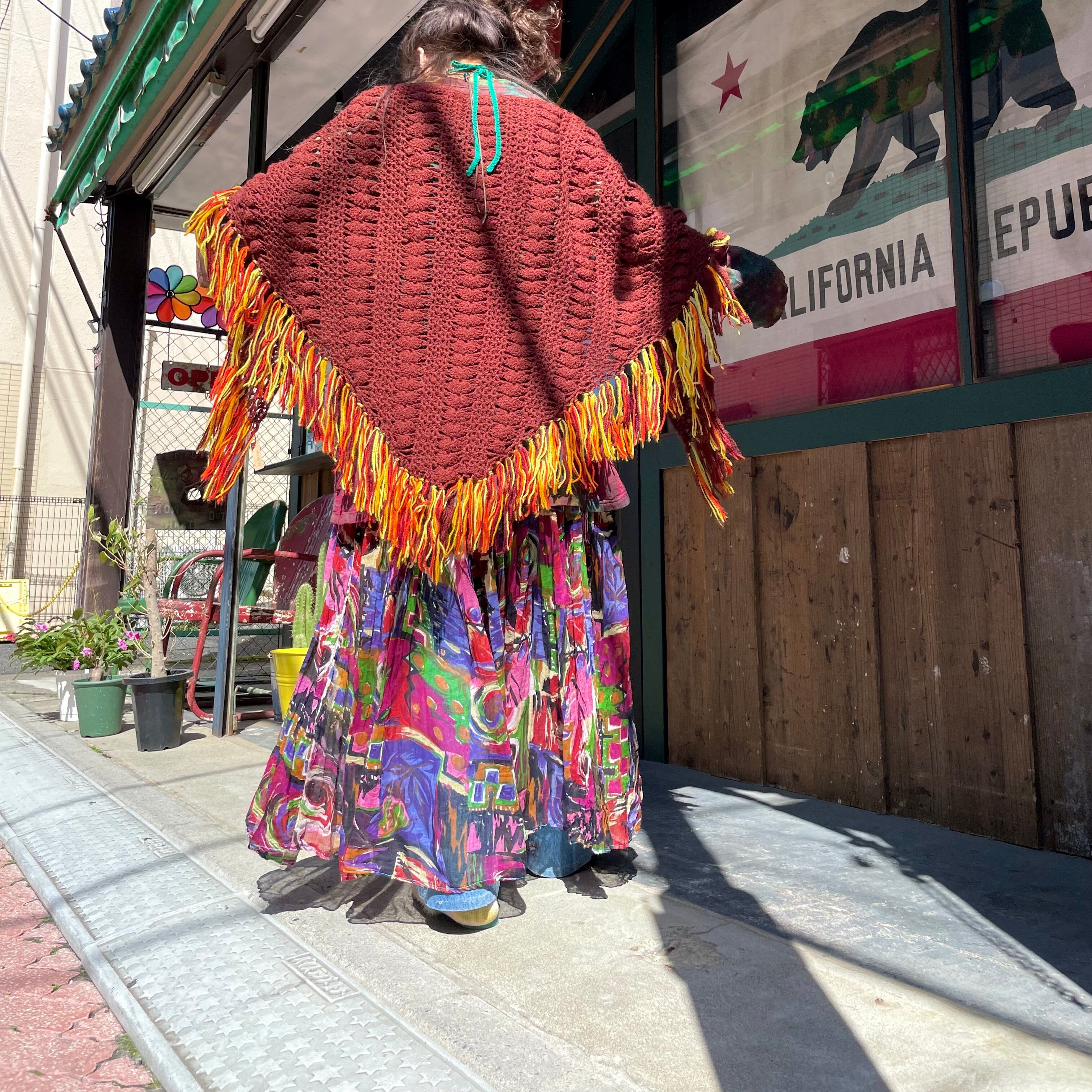 かなり薄手でシースルーな生地感が軽やかで春夏にぴったりな一枚です。いろんな色が使われていますが、全体的になんだか大人っぽい印象で、トップスをシンプルに黒いTシャツなどで合わせれば着やすいかと思います。夏はキャミソールにジャラジャラアクセサリーをつけてエスニックなコーディネートも良さそうですね!