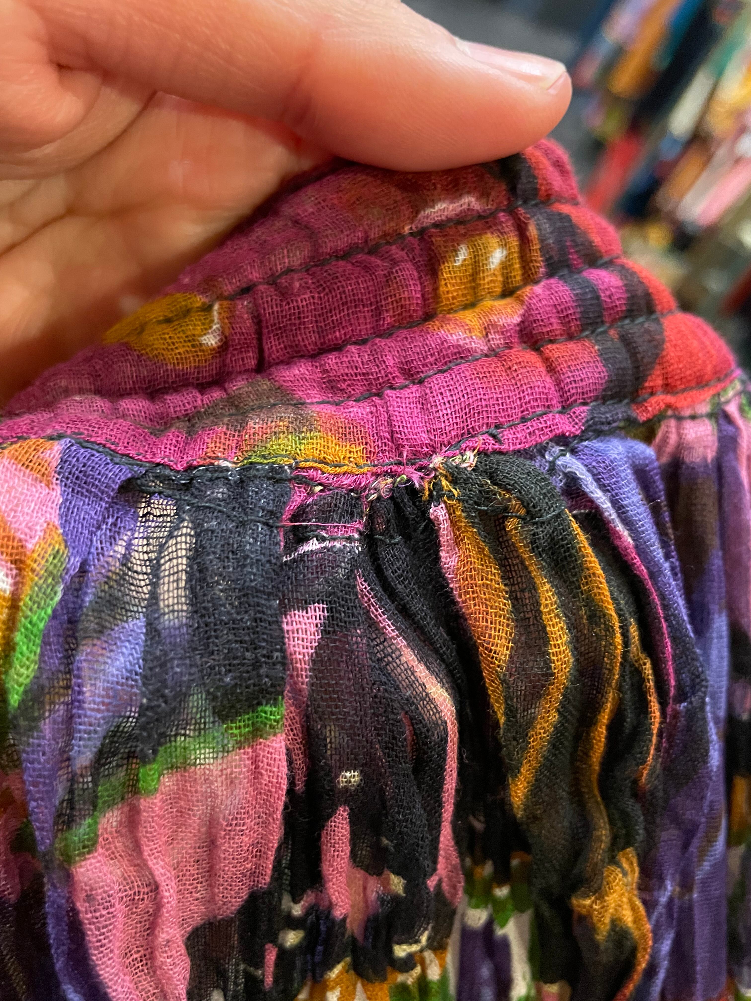ウエストのベルトとスカート部分の繋ぎ目の縫い目が雑に縫われておりパンクしたところをリペアしています。