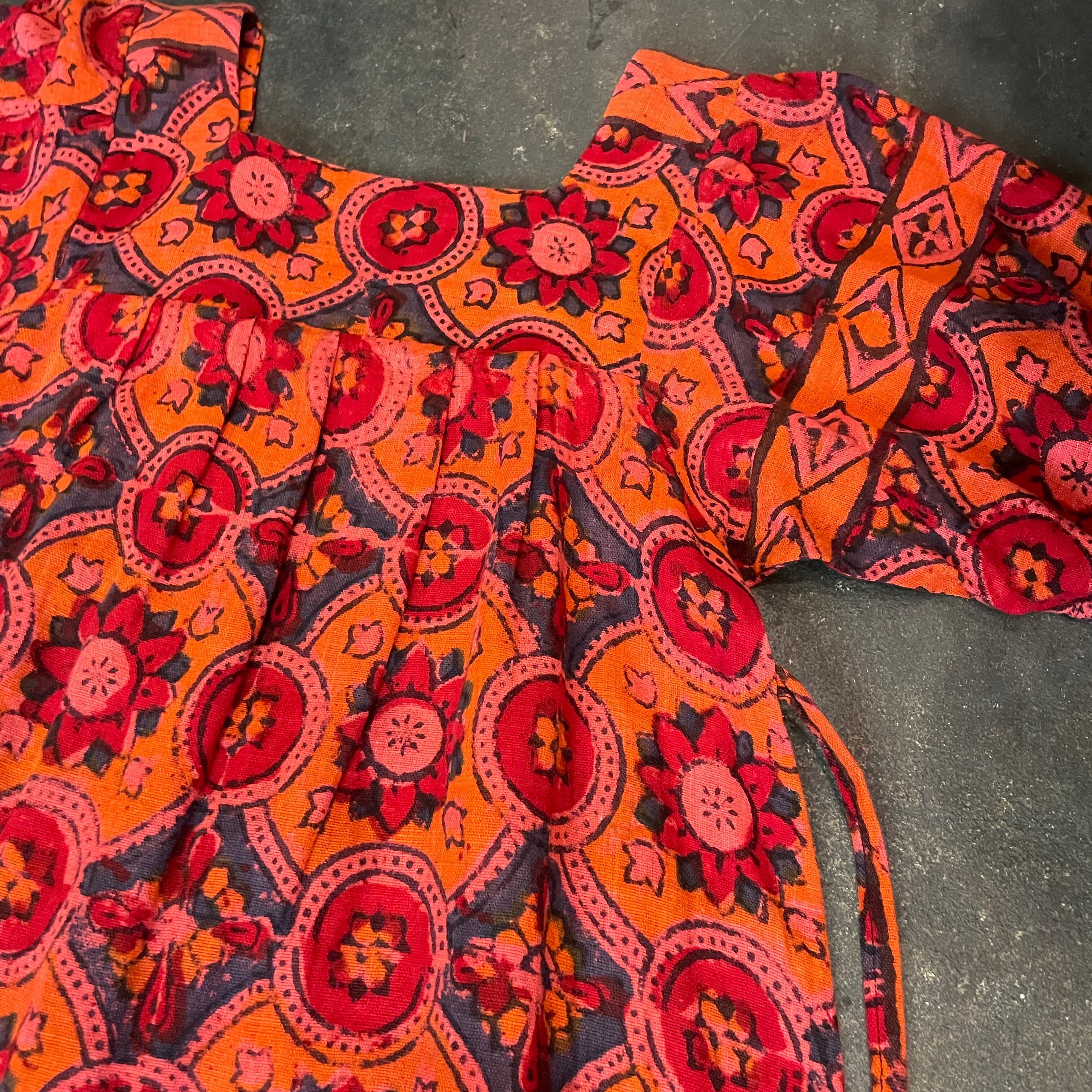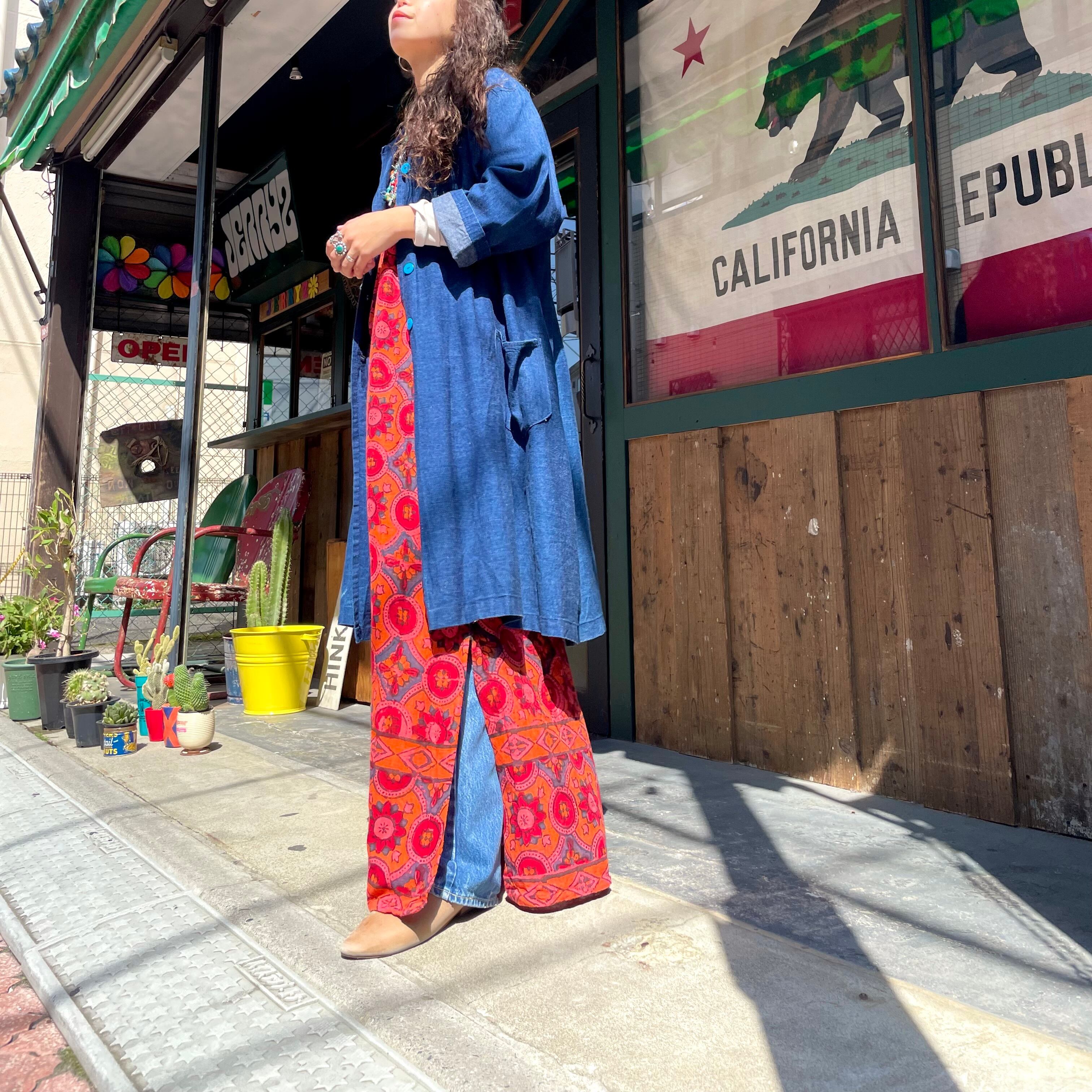 タグは欠損しており詳細は不明ですが、インド製のコットンの雰囲気です。とても軽いガーゼのような素材感が気持ち良いですし、夏は風通しが良く涼しく着ていただけると思います。