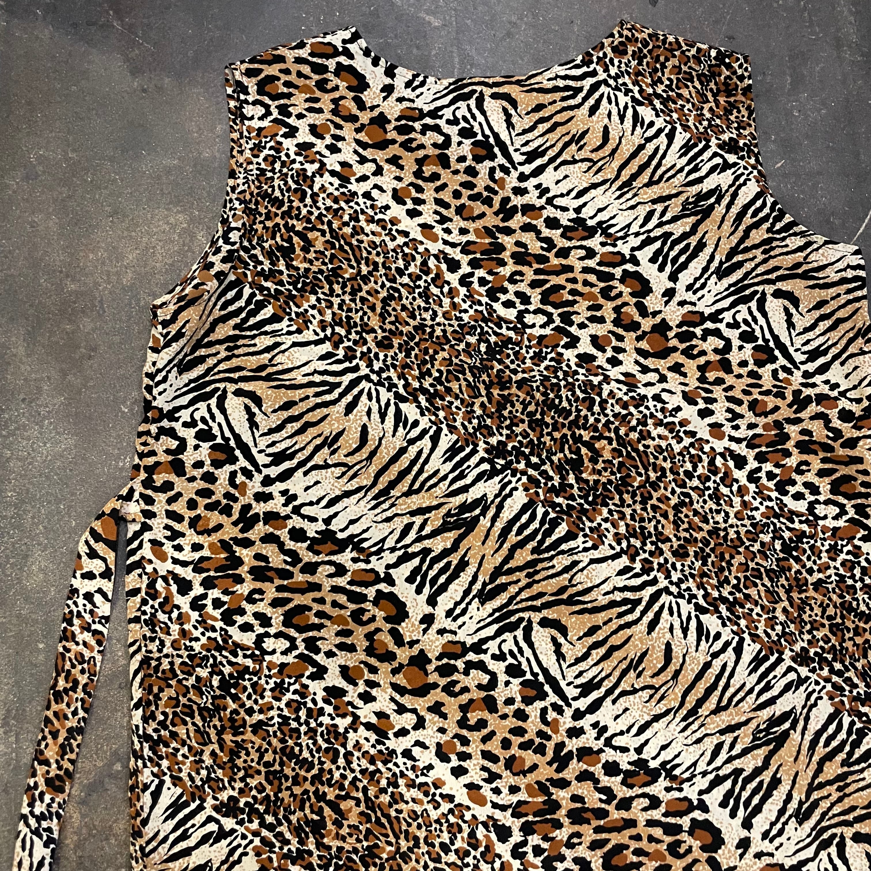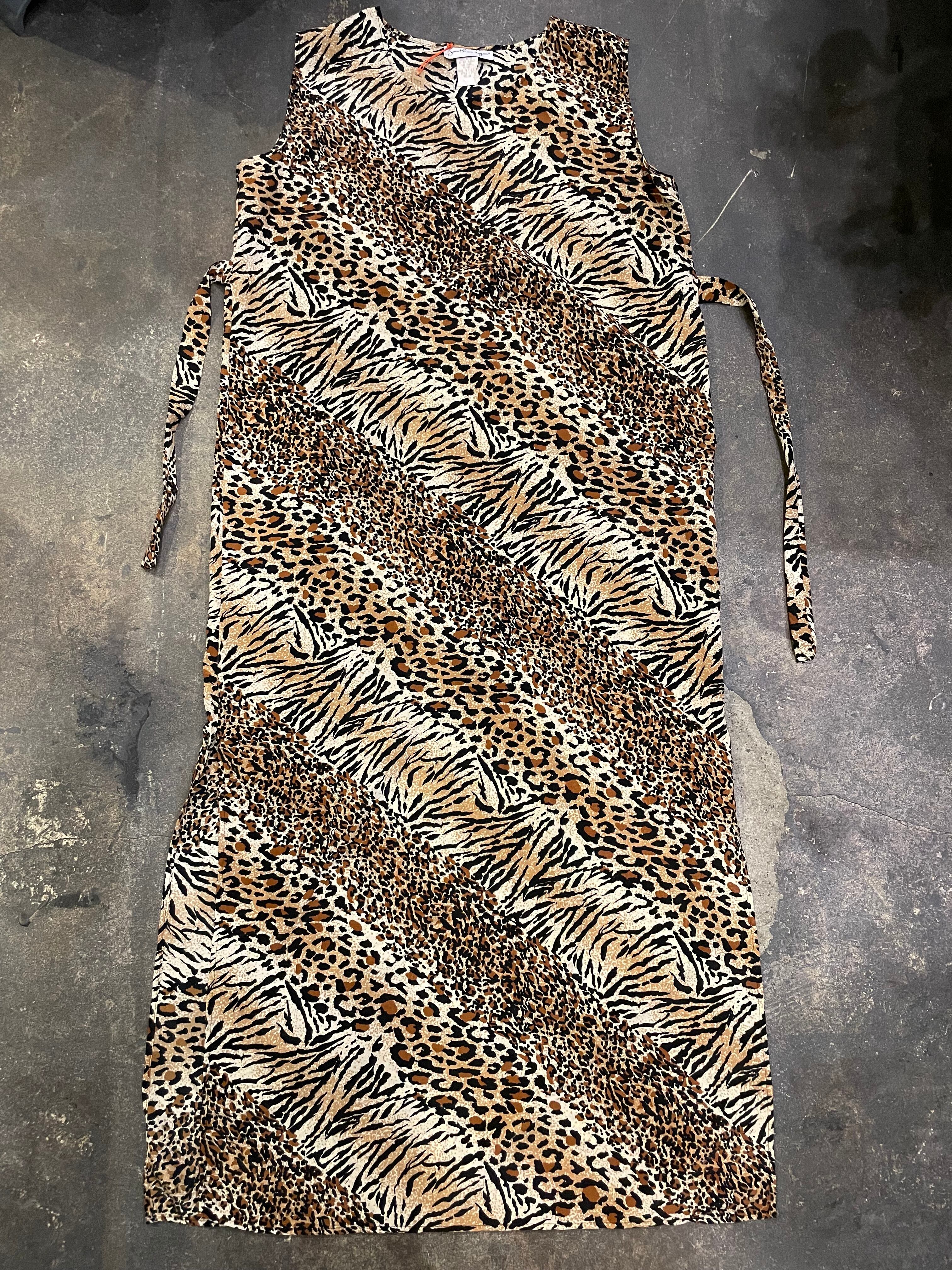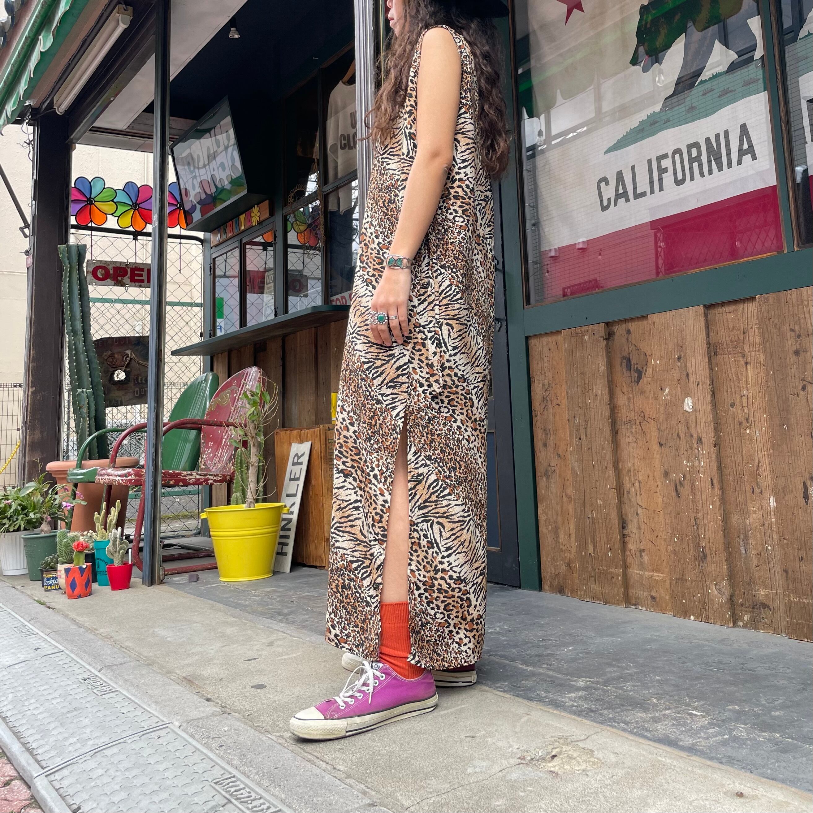 ヒョウやトラのアニマル柄がかわいいノースリーブワンピースです。
