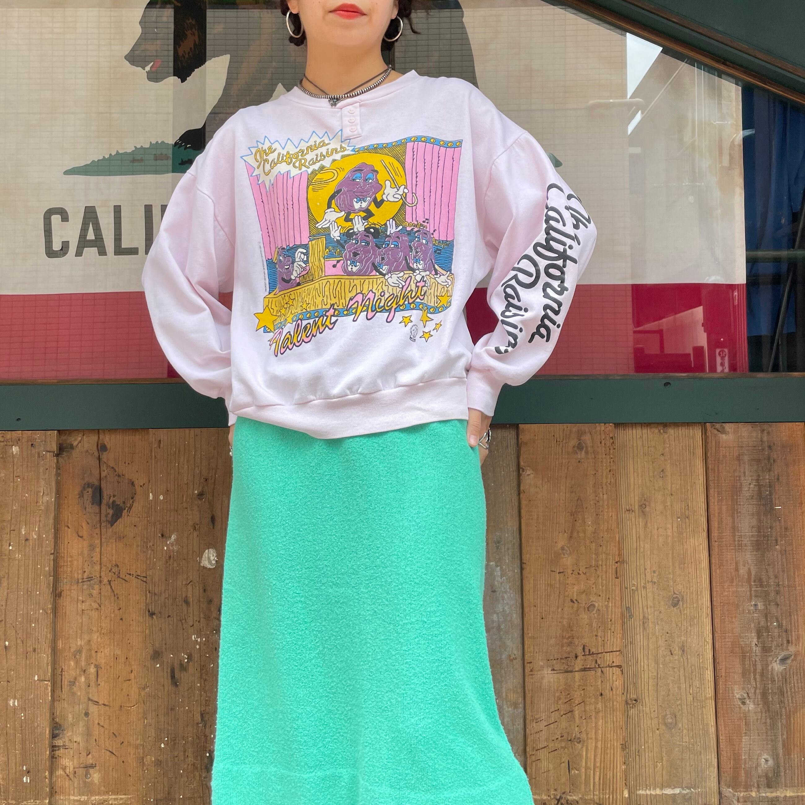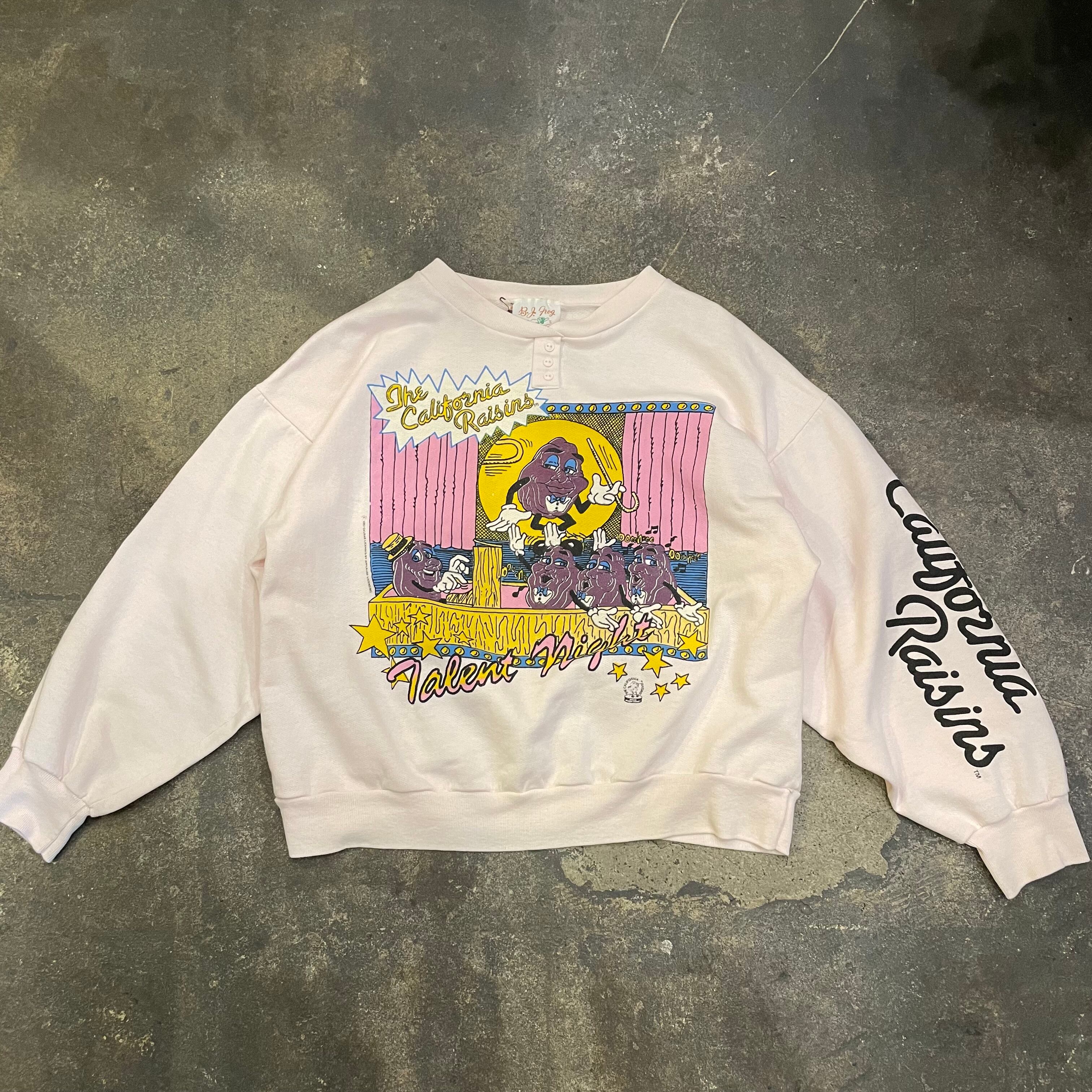 薄いピンク地にカリフォルニアレーズンたちがかわいいプリントスウェットです。