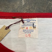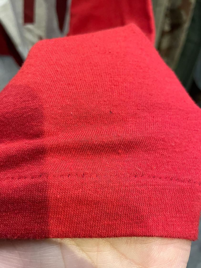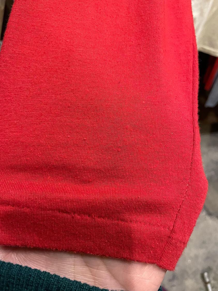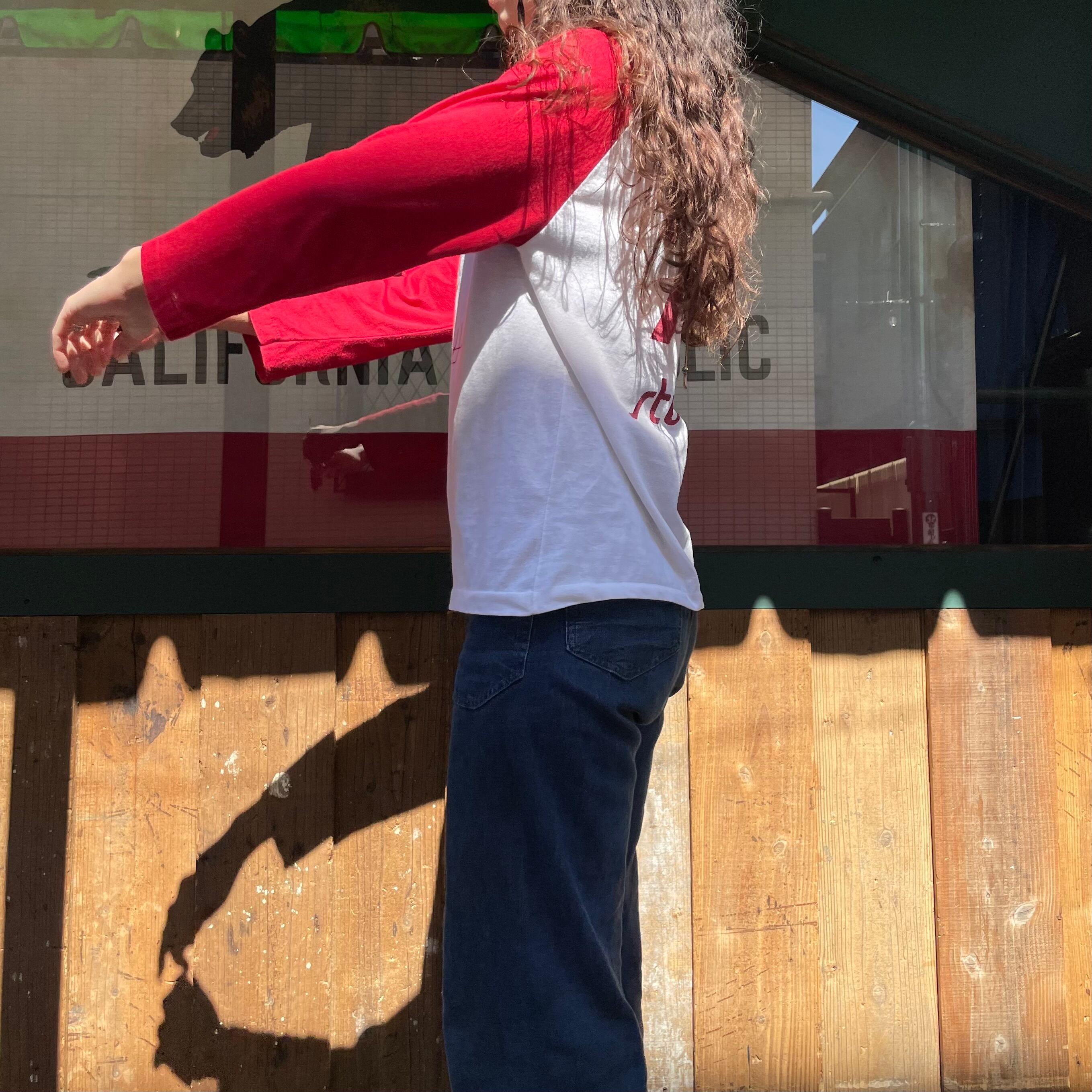 深めな赤がコーディネートのポイントにもなりますし、何かと使えて便利なラグランなのでおすすめです!