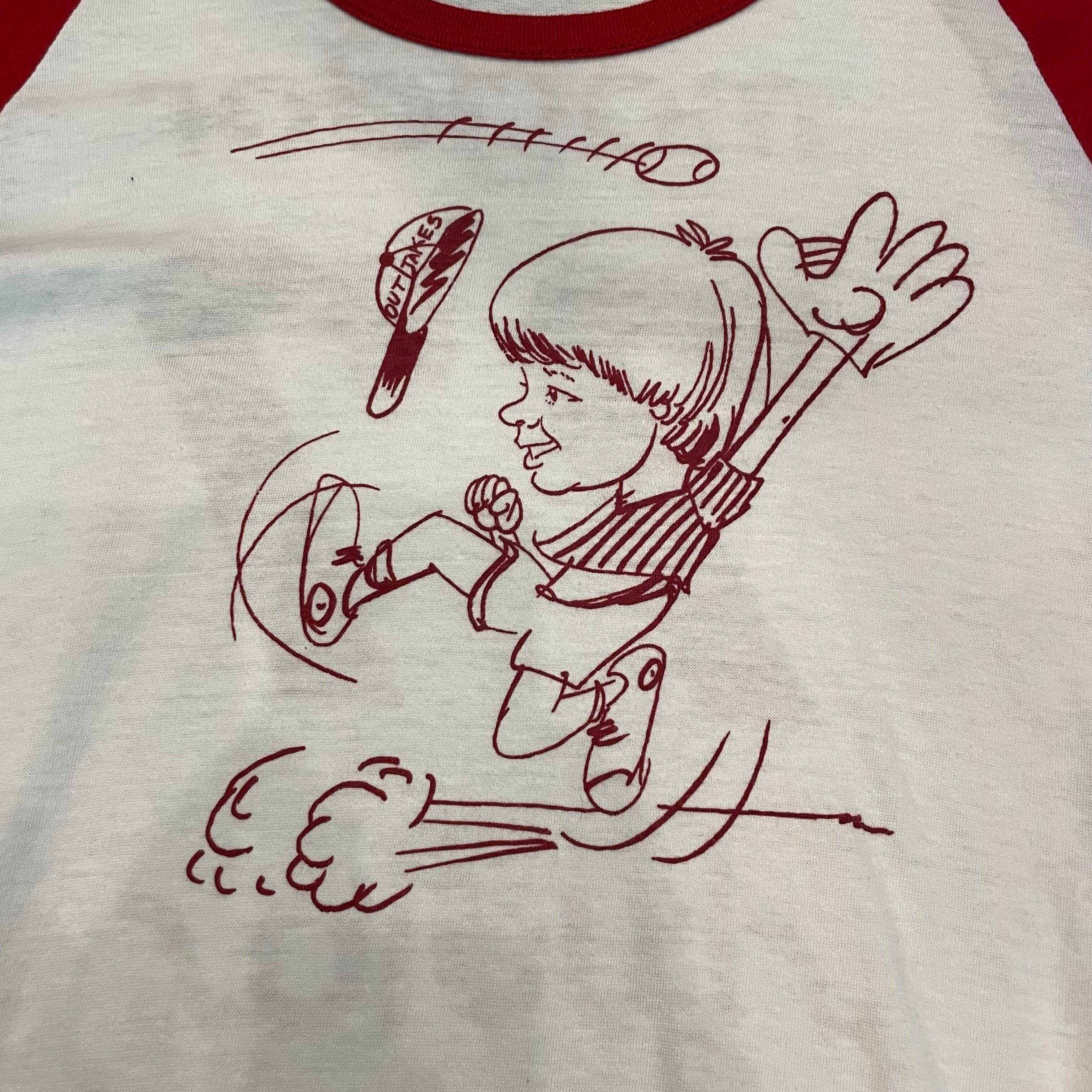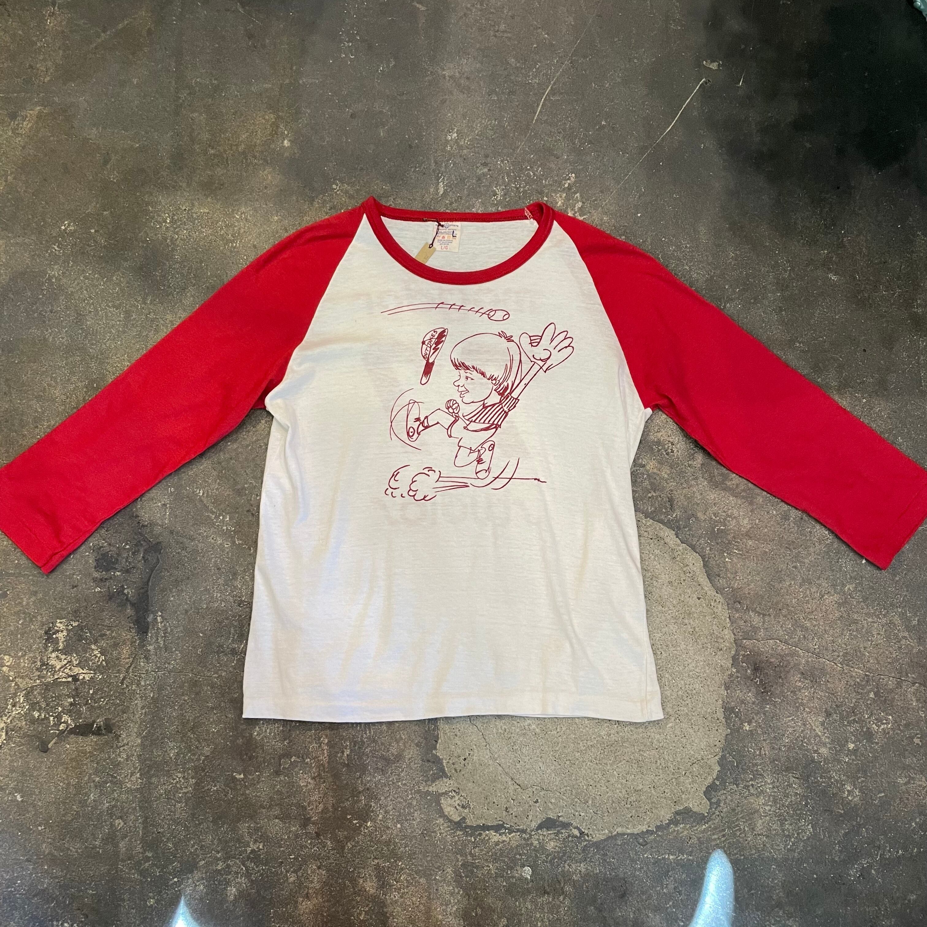ゆるいタッチのプリントがかわいいラグランTシャツです。