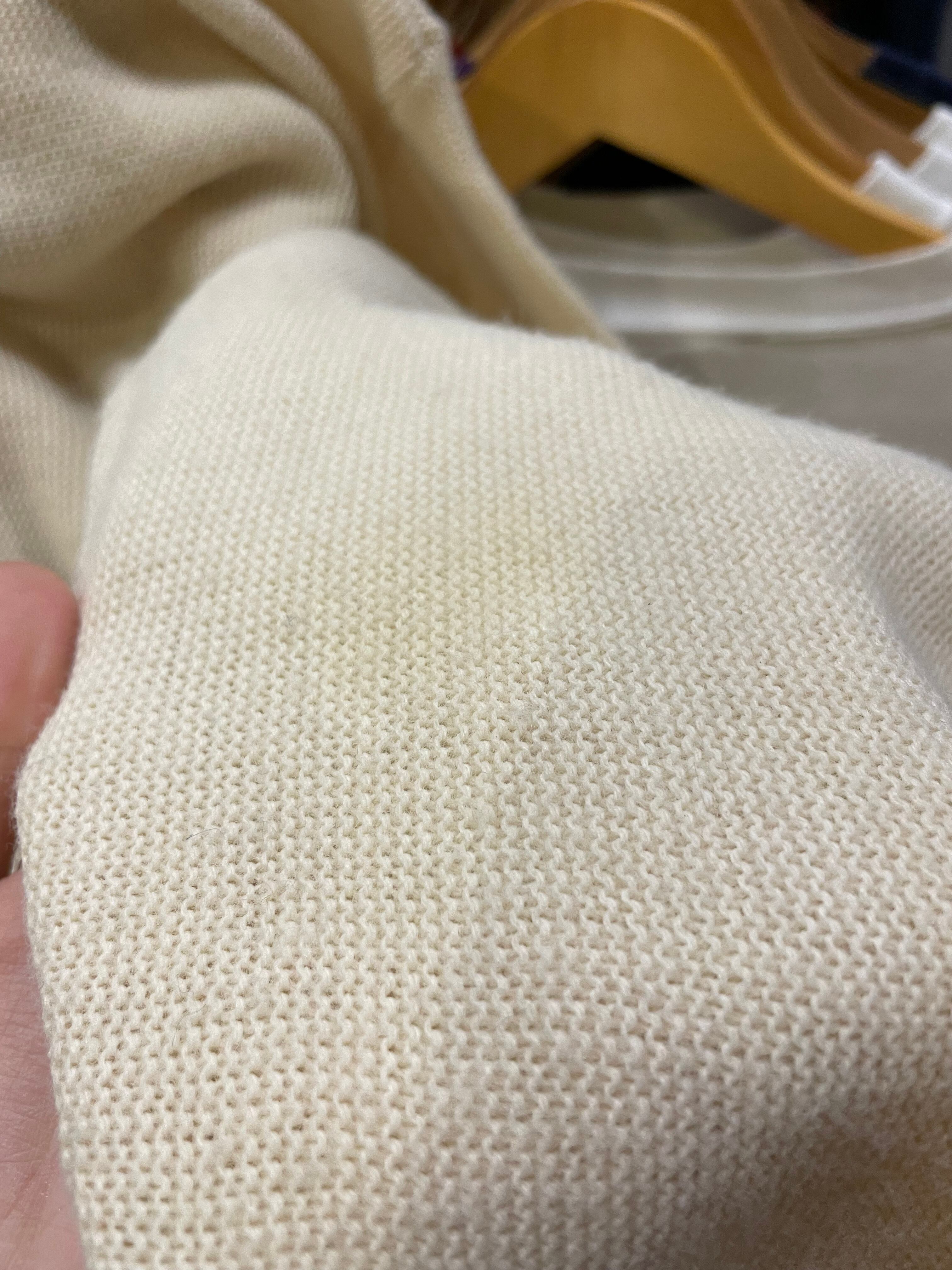 右肘あたりにうっすら黄ばみが見受けられます。全体的な軽い毛羽立ち等使用感のある商品です。古着にご理解のある方のご購入をお願い致します。
