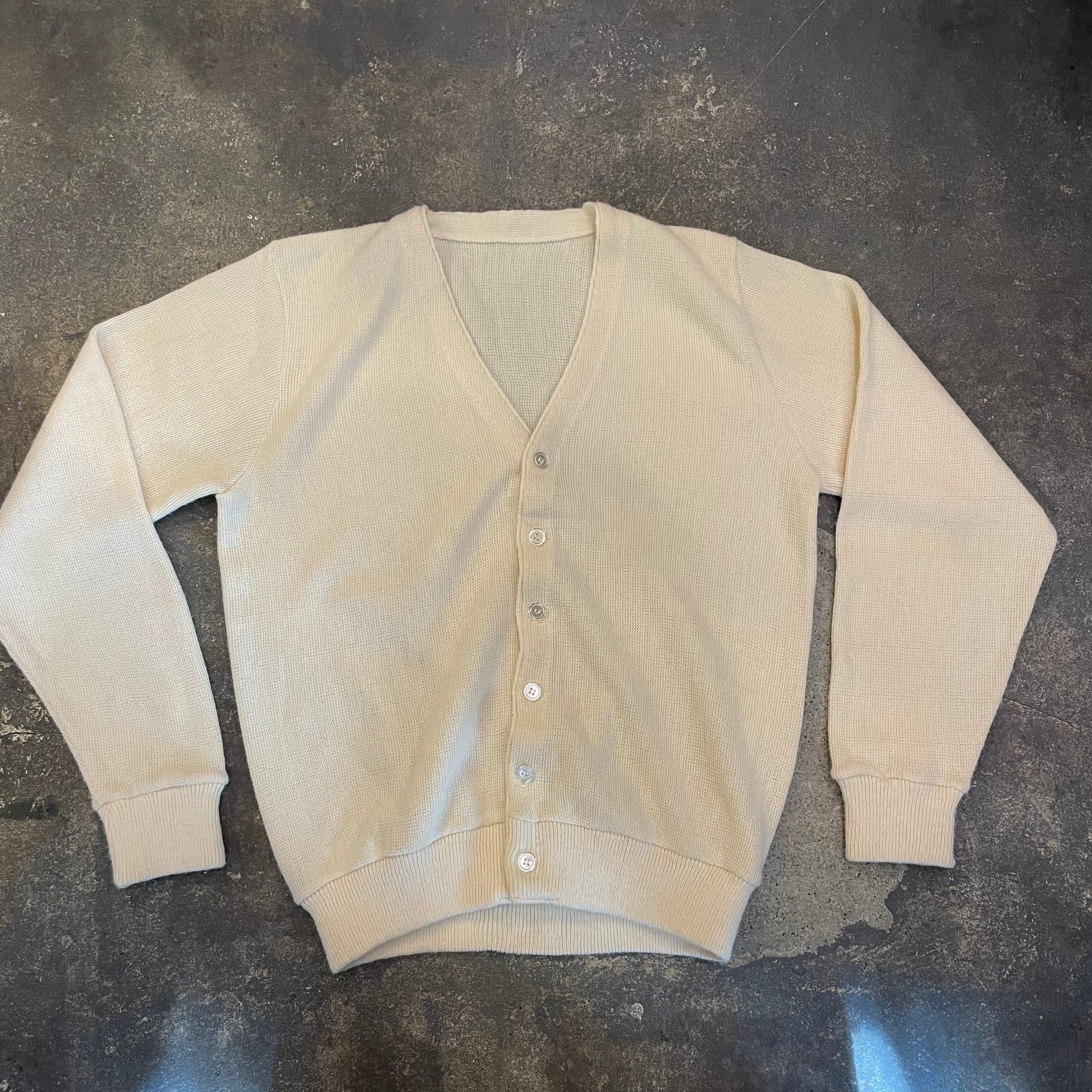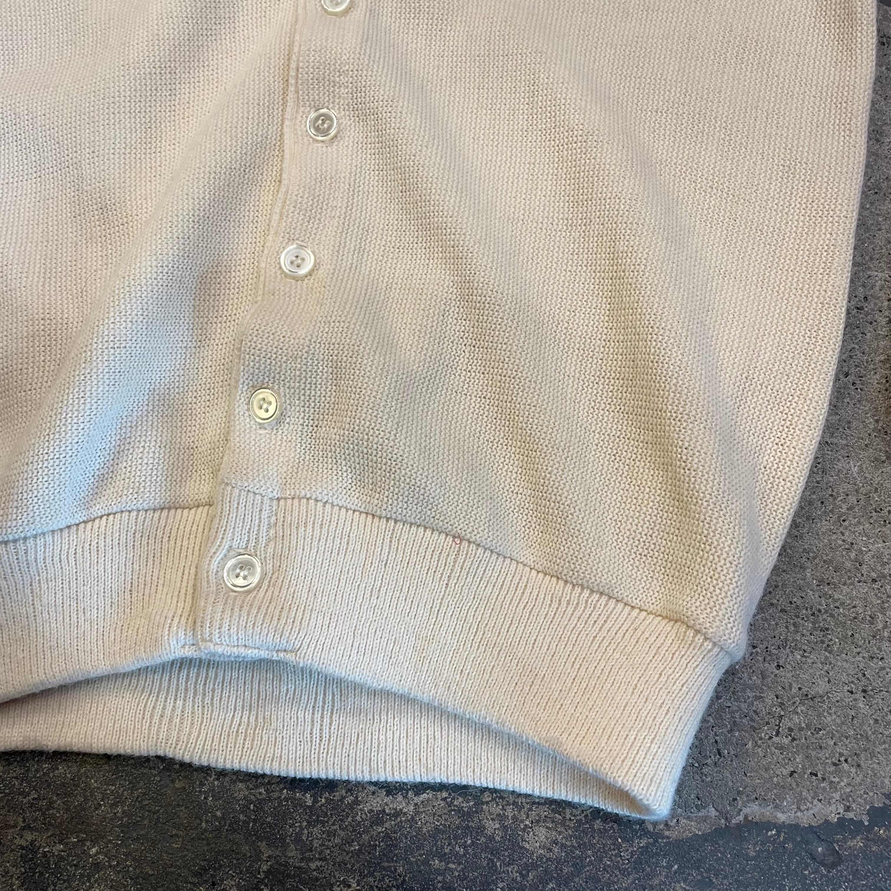 オフホワイトのカラーがマイルドでかわいいニットカーディガンです。この手のタイプではコンパクトめなサイズ感だと思います。