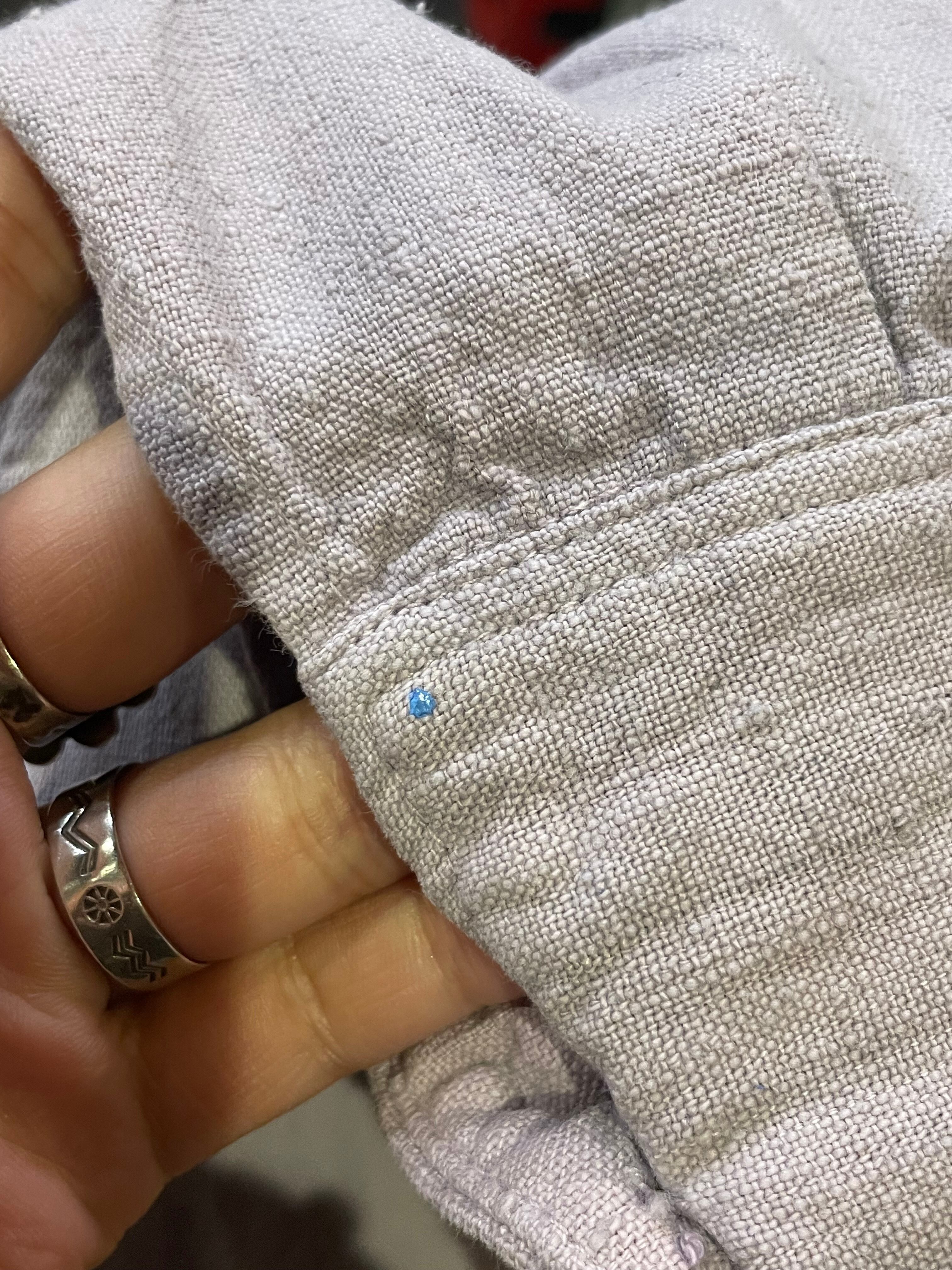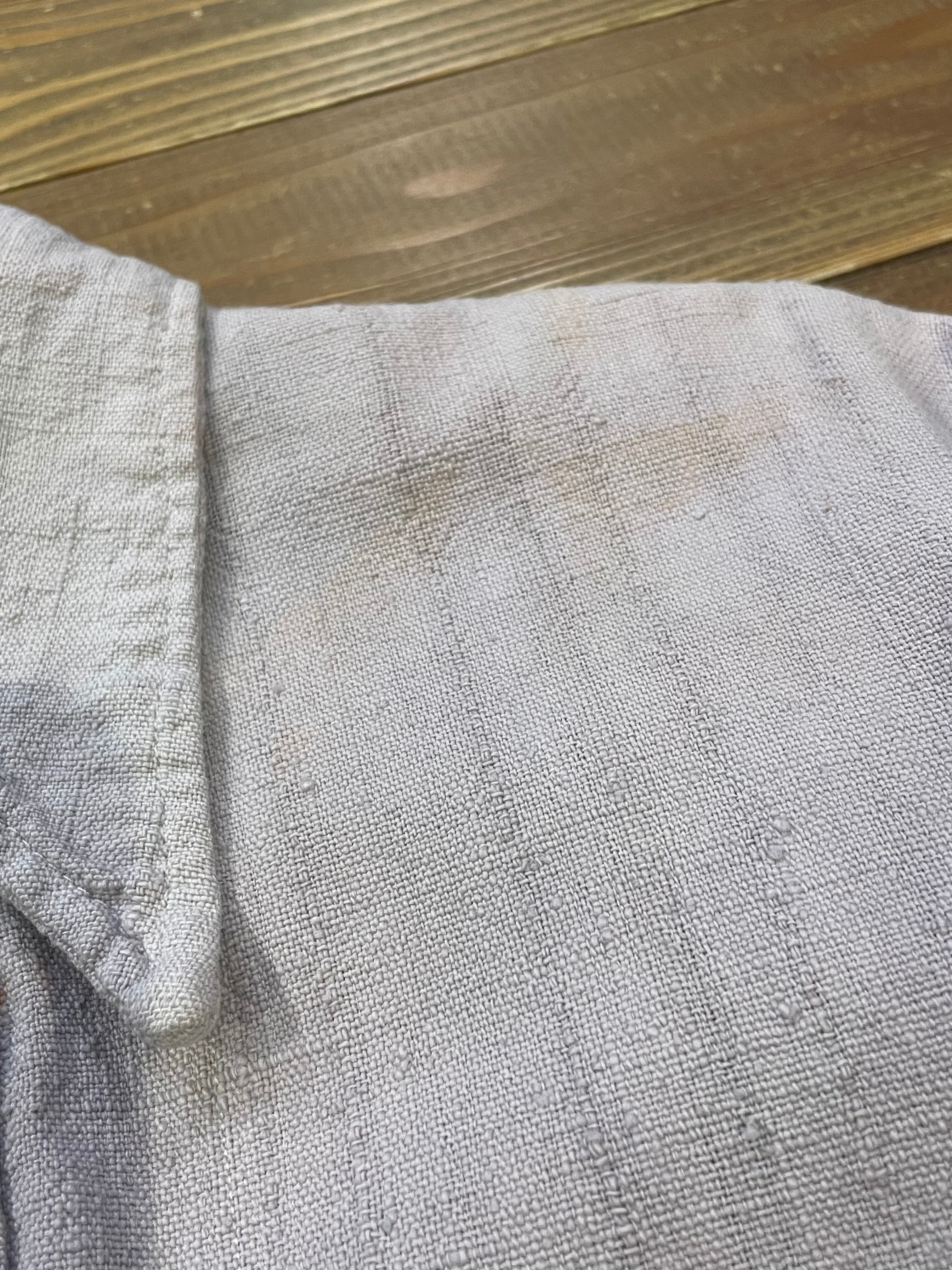 色むらやシミ、オレンジ色っぽいシミ、ツレ等使用感のある商品です。古着にご理解のある方のご購入をお願い致します。