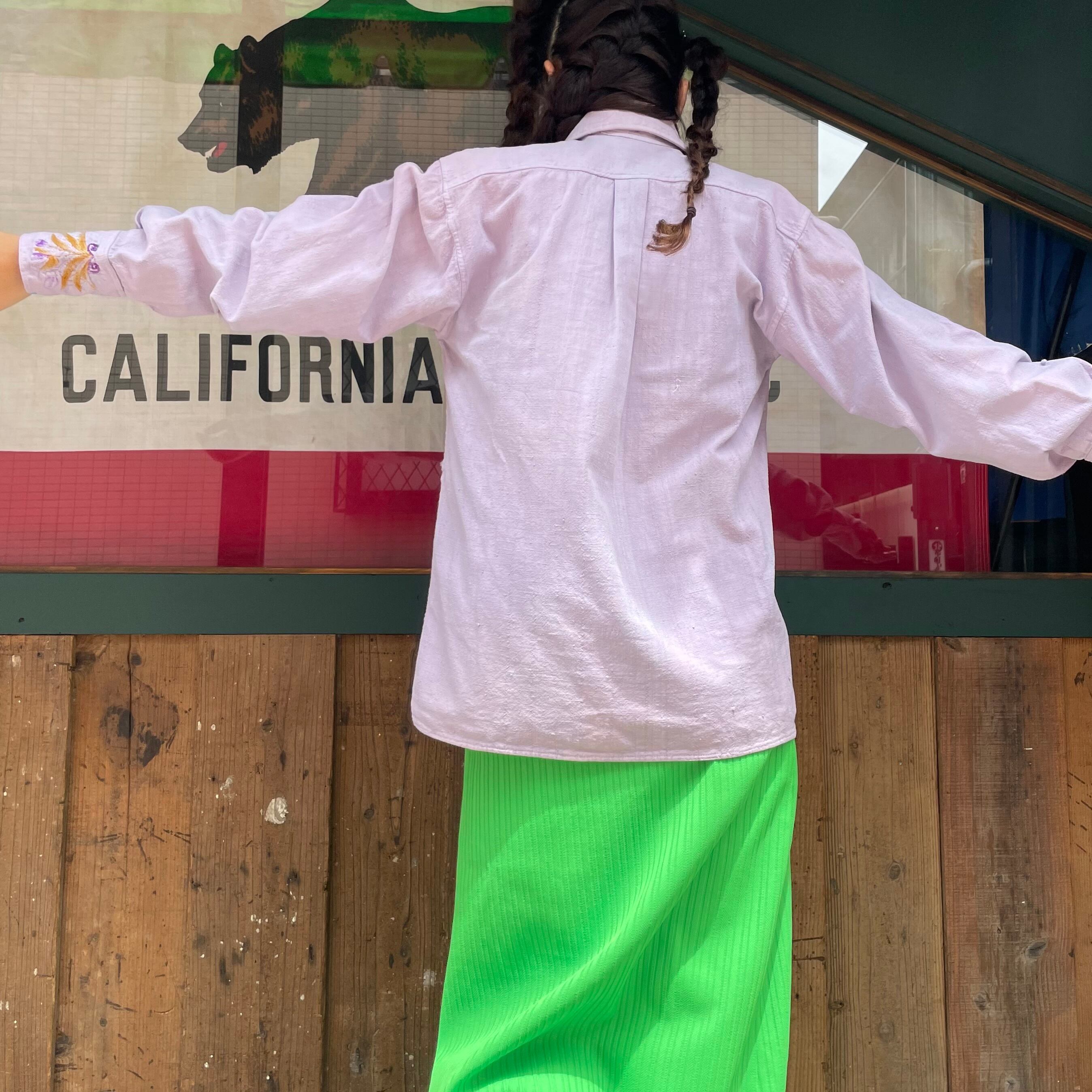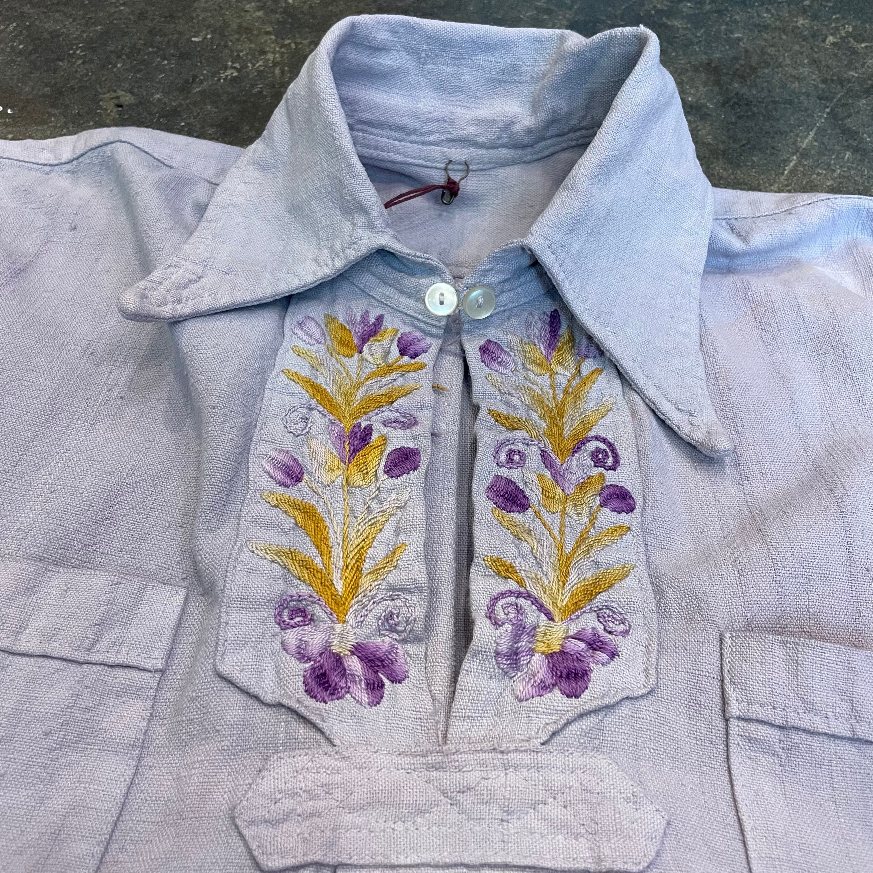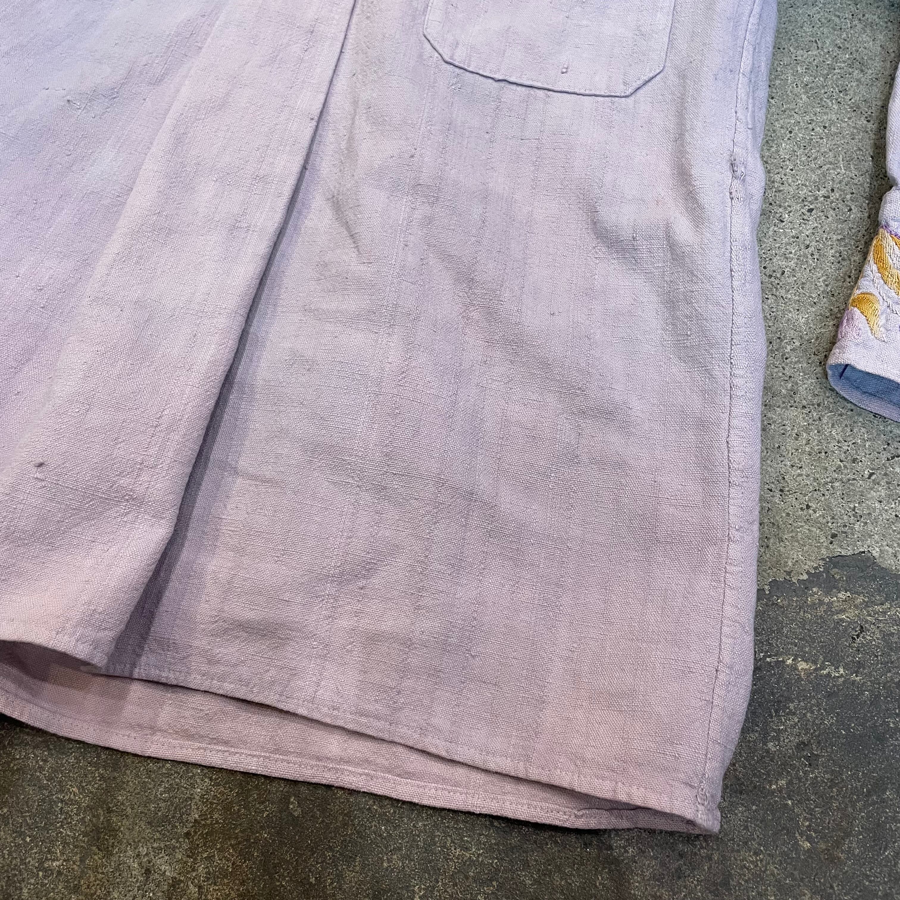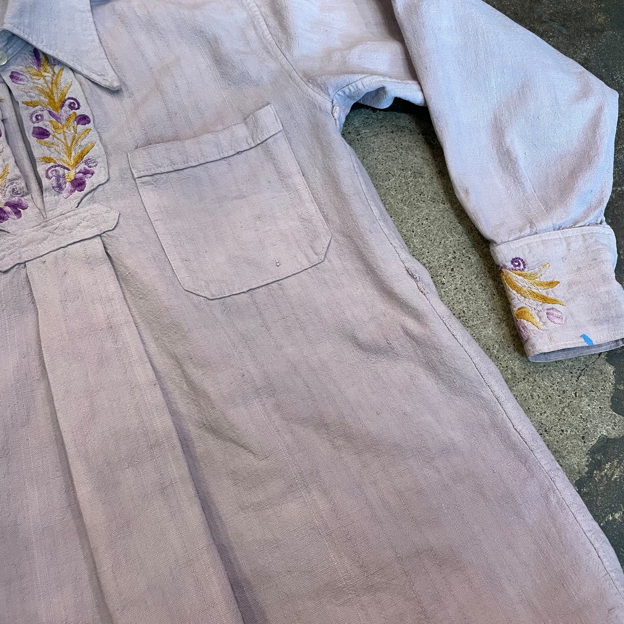 胸元や袖口の丁寧な手刺繍が素敵なプルオーバーシャツです。手織り感のある生地感がとても気持ちよく、温かみと雰囲気のある一着です。