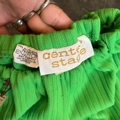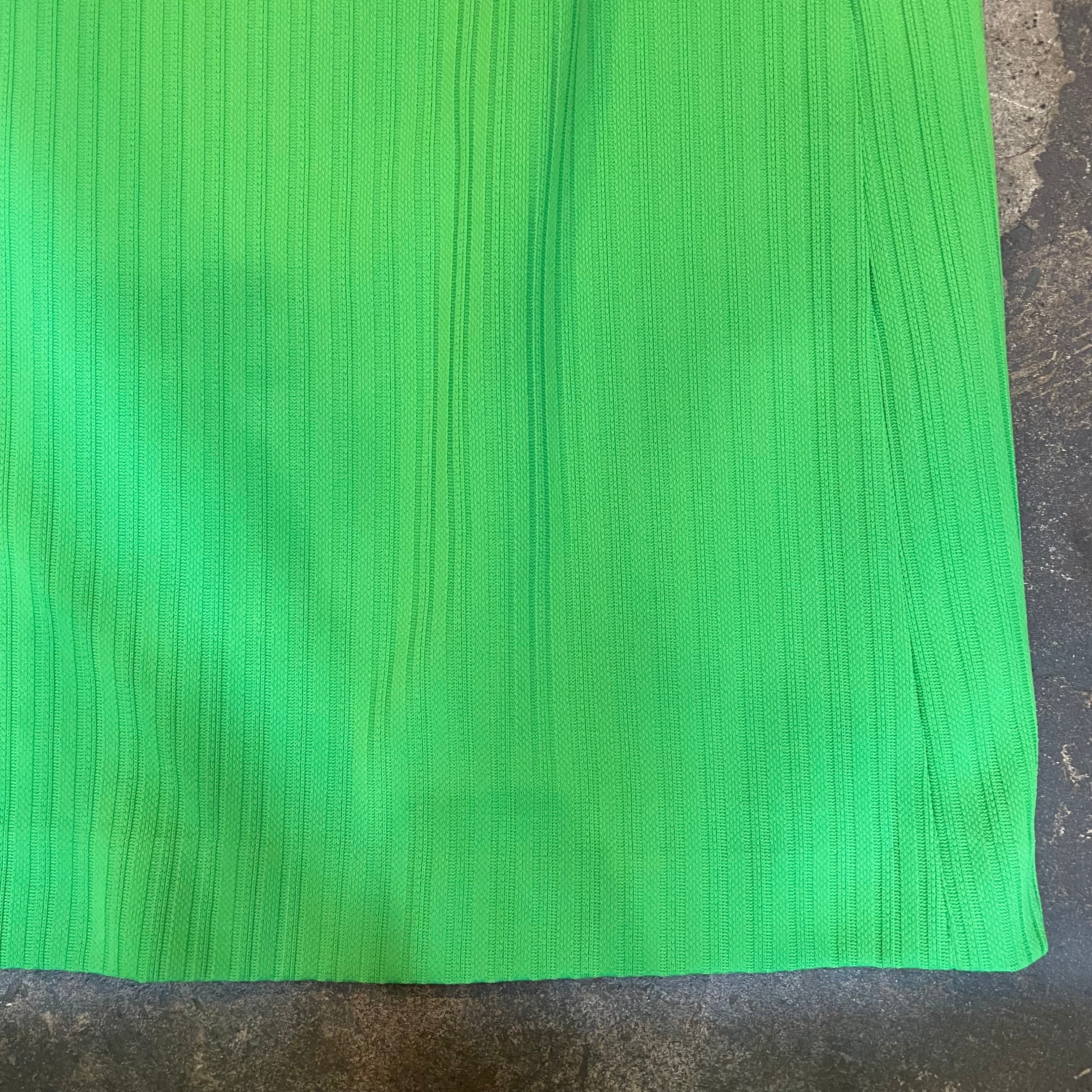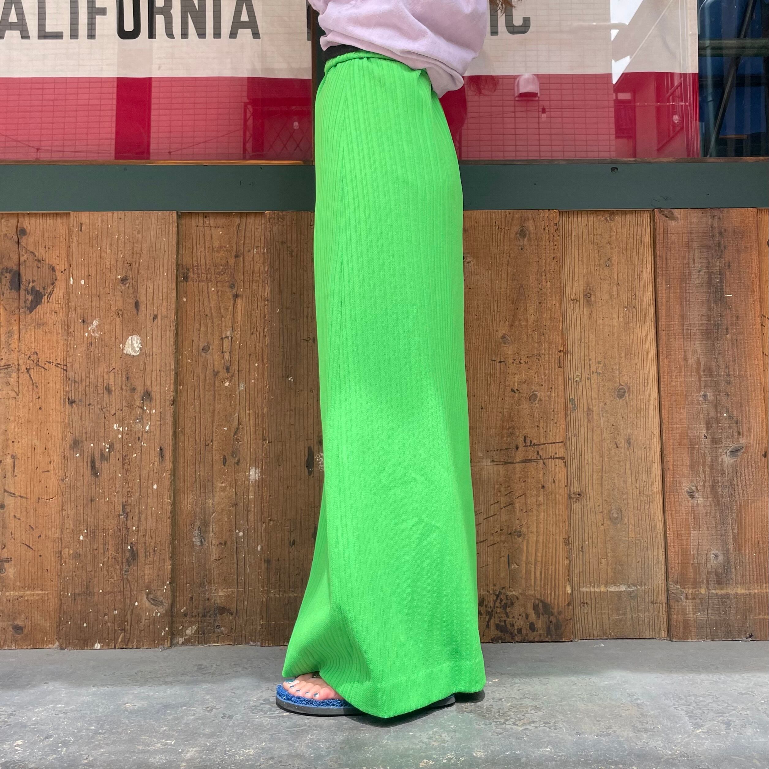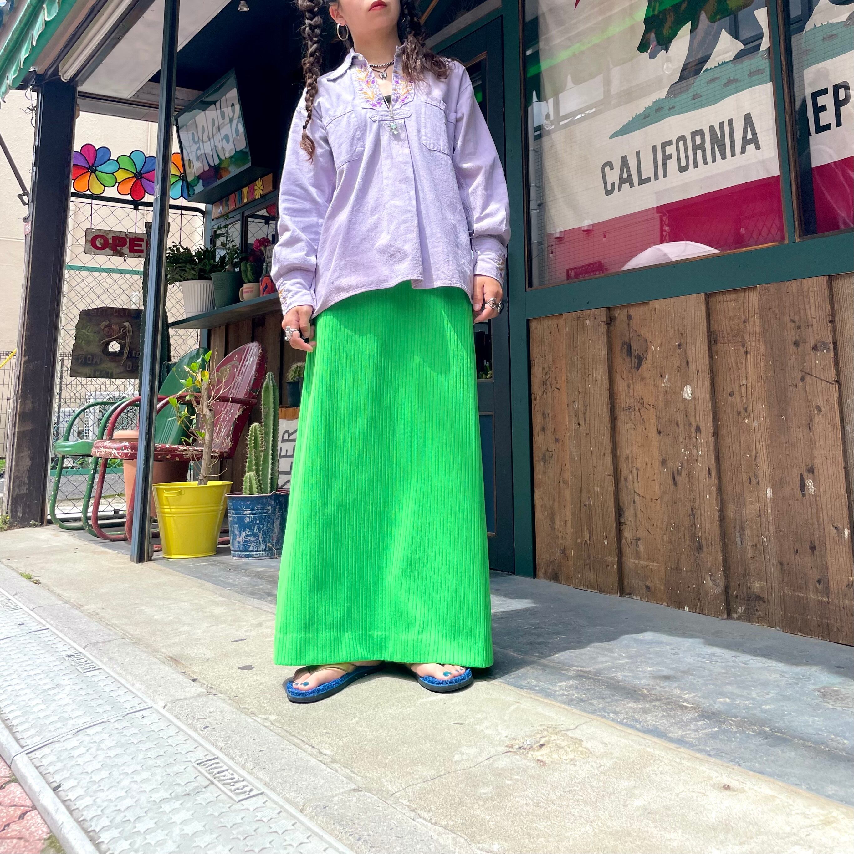 鮮やかなキミドリ色がかわいいポリエステル素材のスカートです。