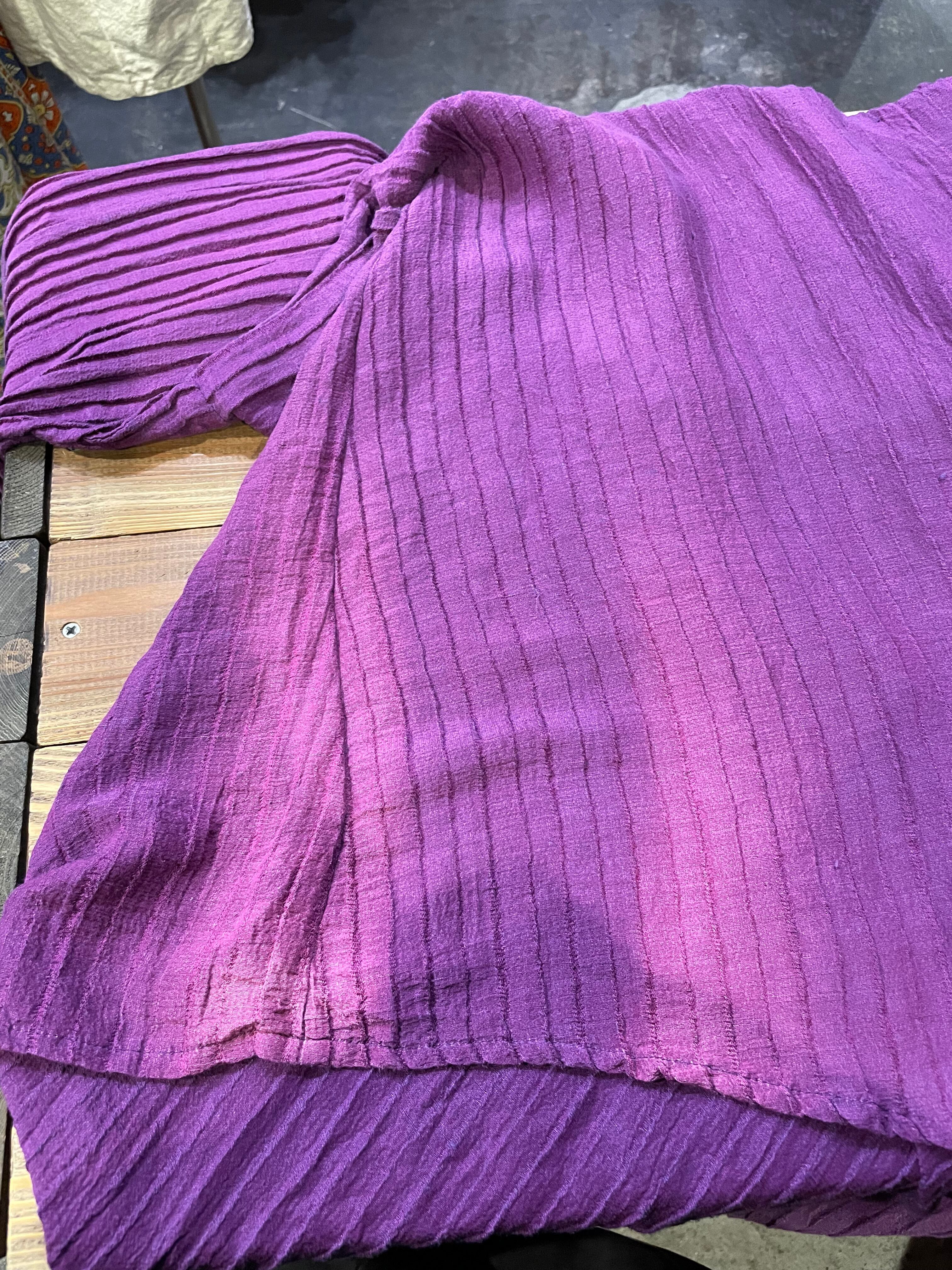 薄手のコットンのさらっとつるっとした肌触りがとても気持ち良い羽織りです。