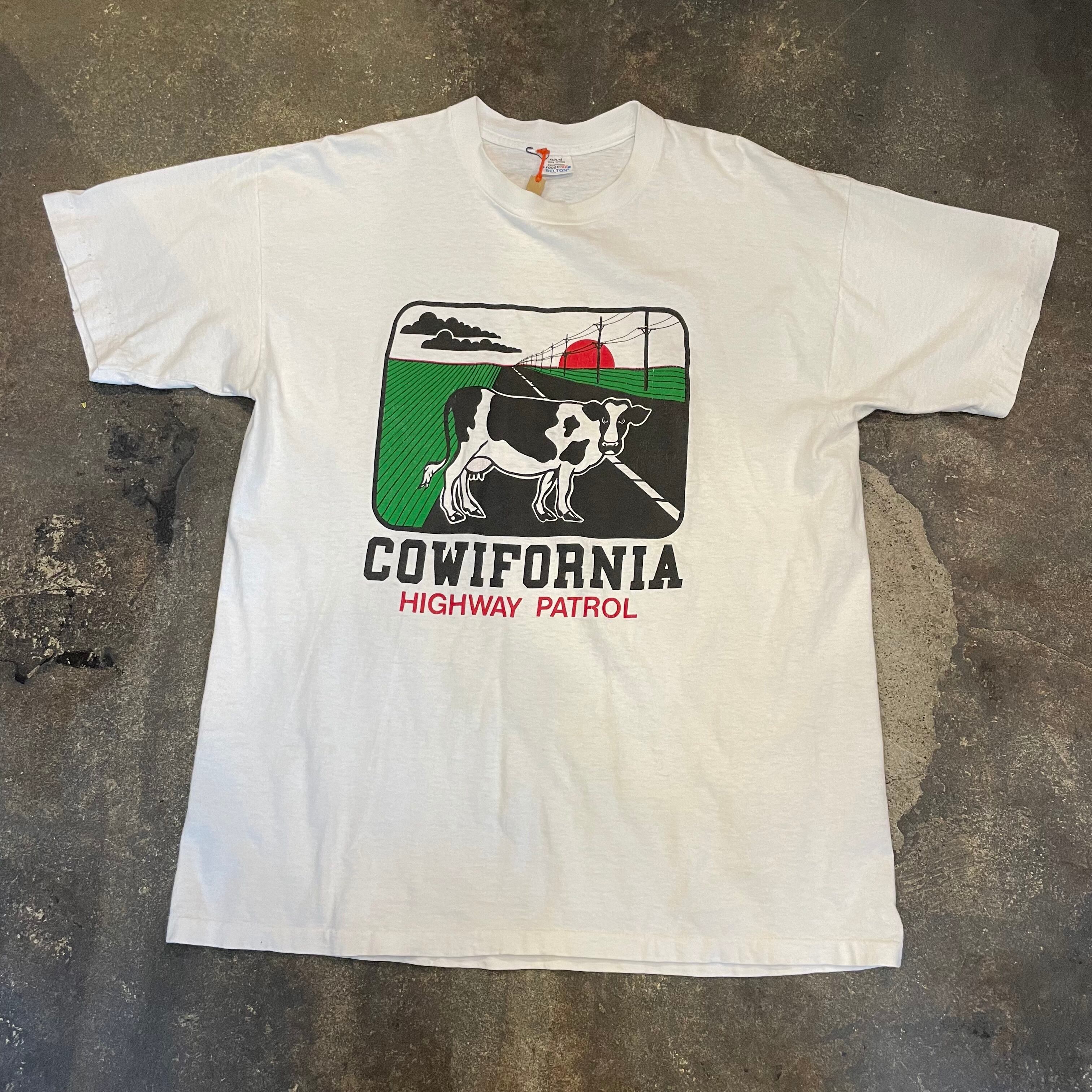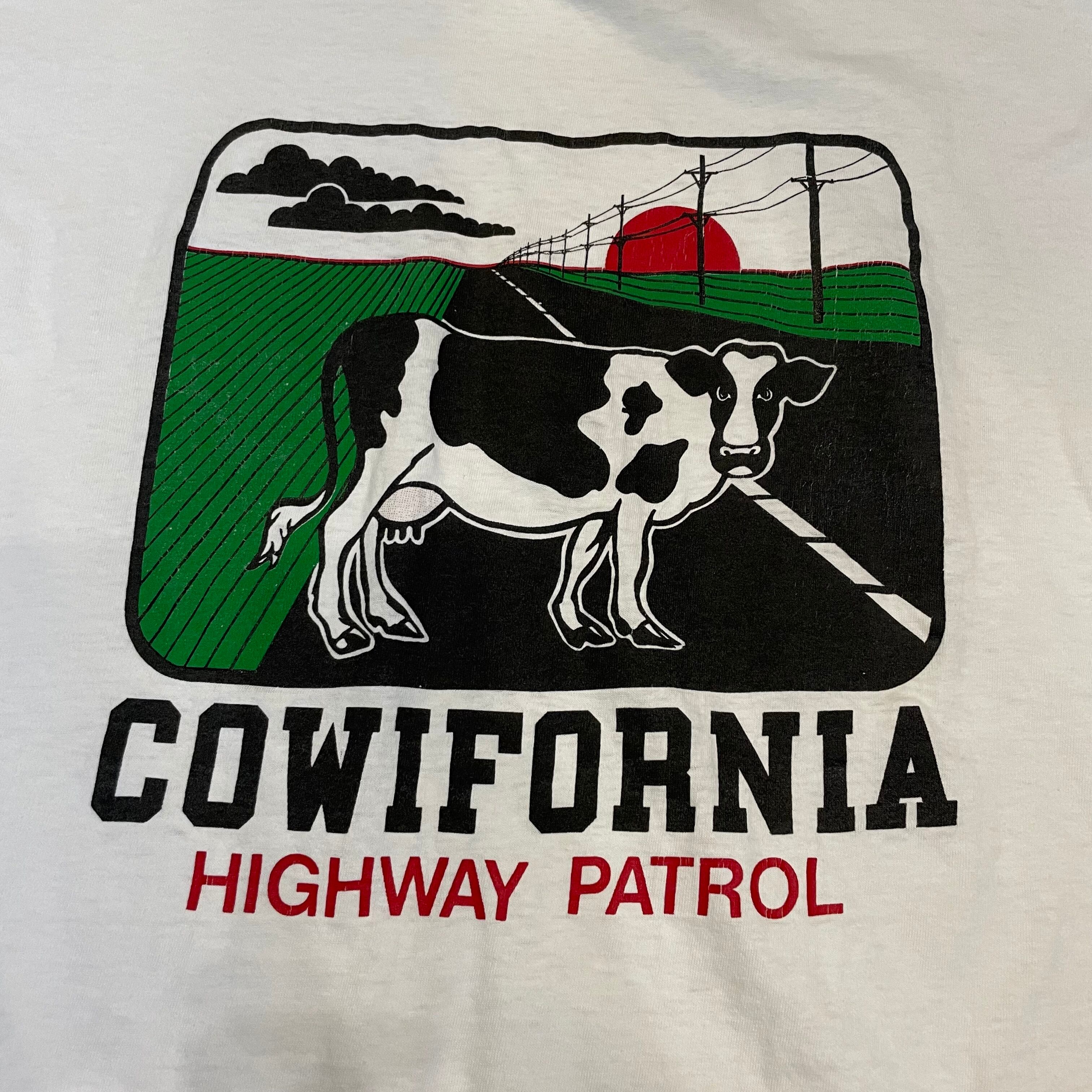 牛のイラストがポップでかわいい、80年代ごろUSA製のプリントTシャツです。