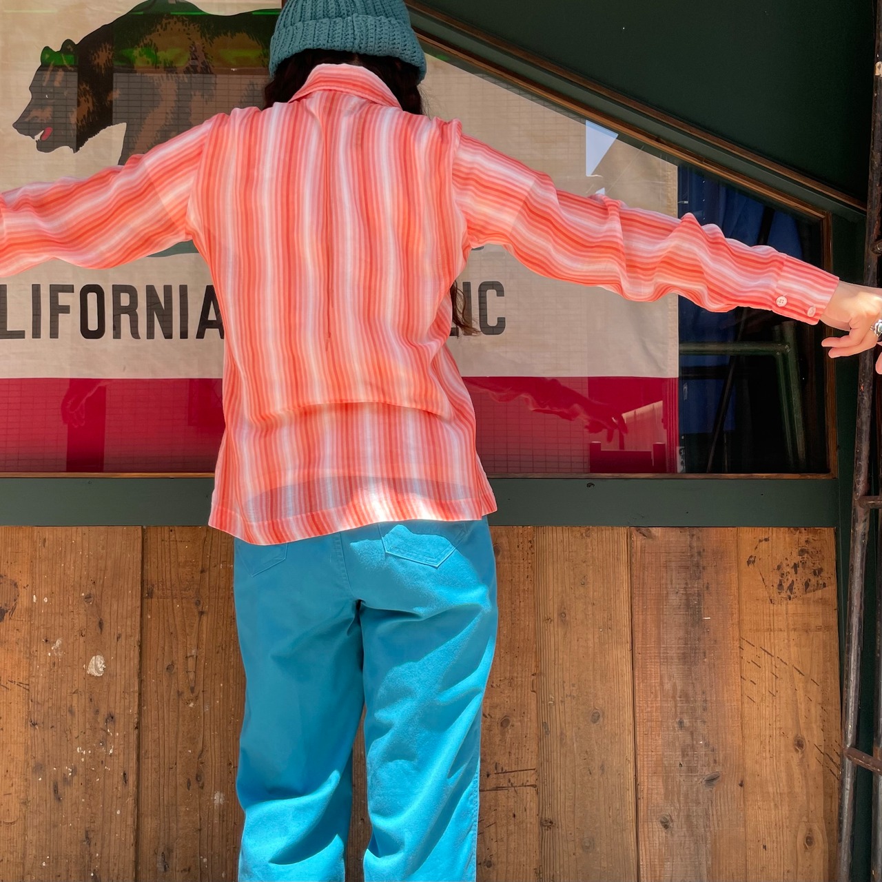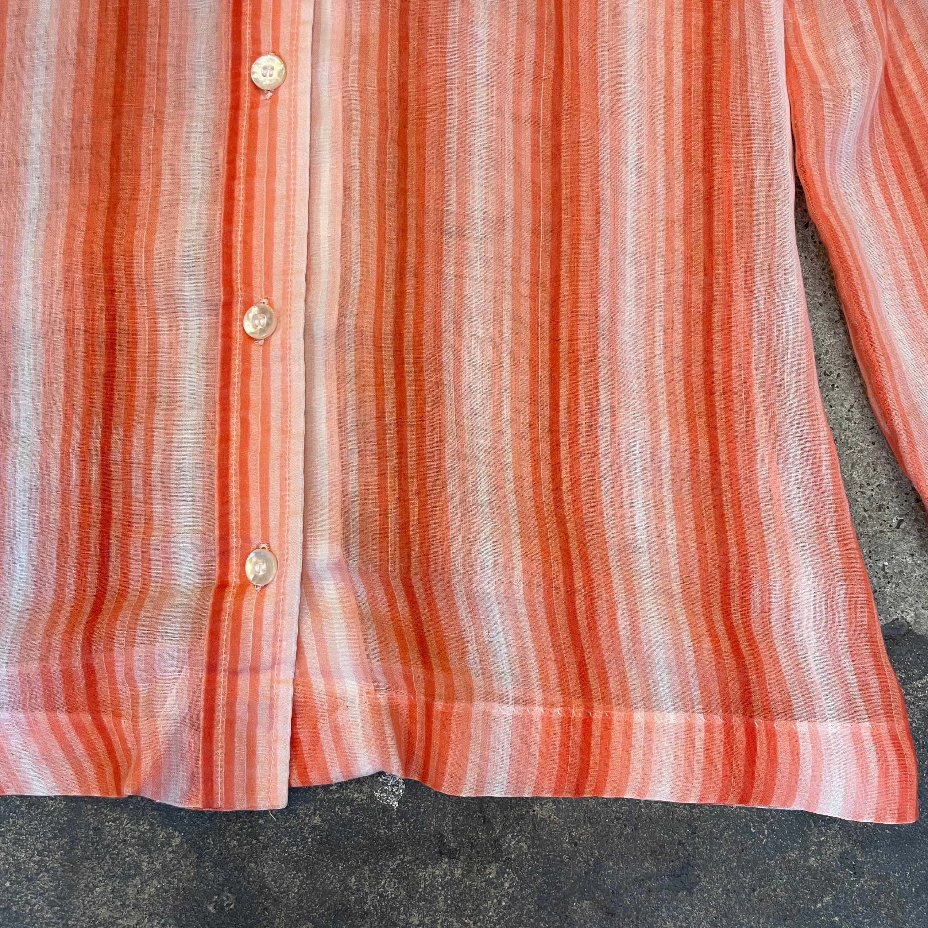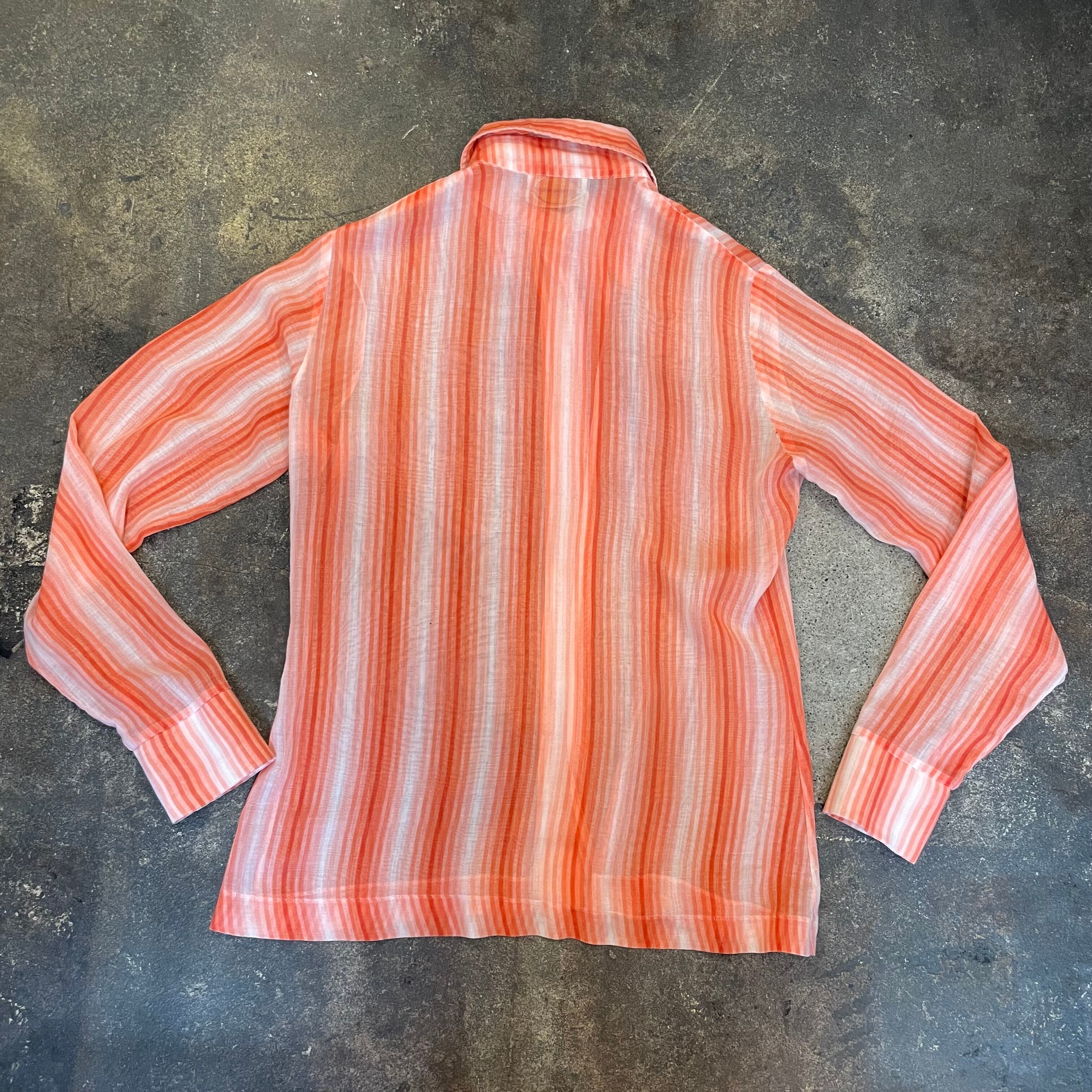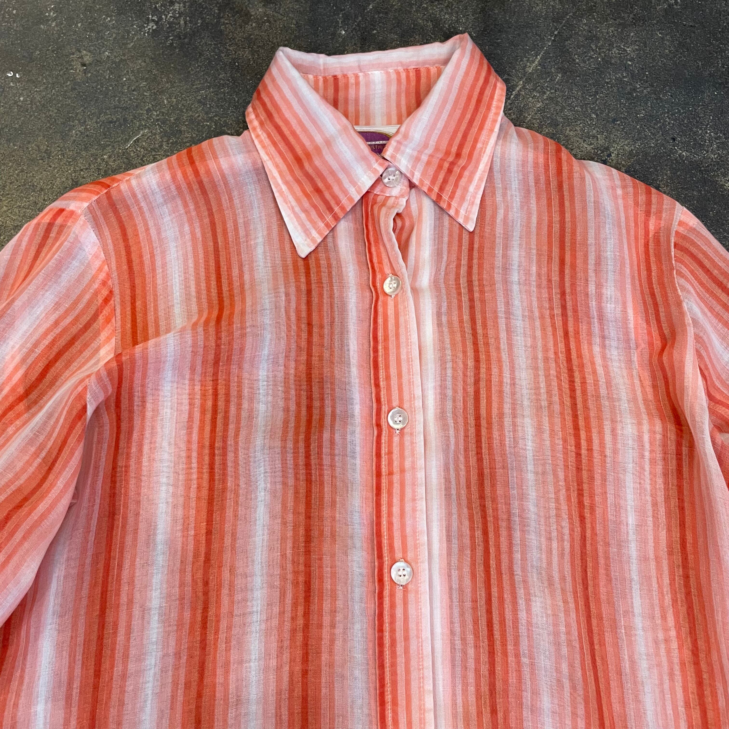 サーモンピンク〜朱色のようなグラデーションのストライプがかわいい70年代頃のシャツです。
