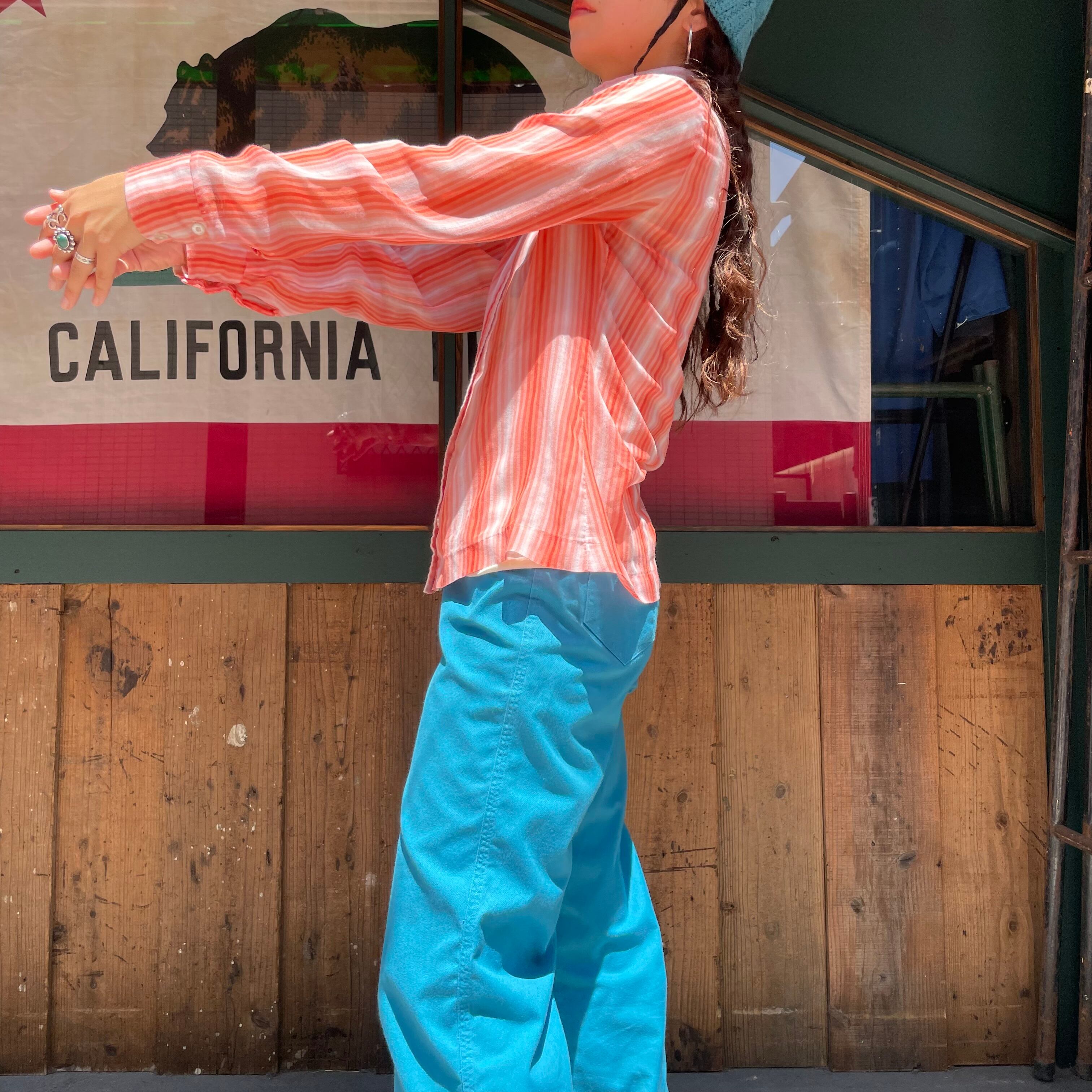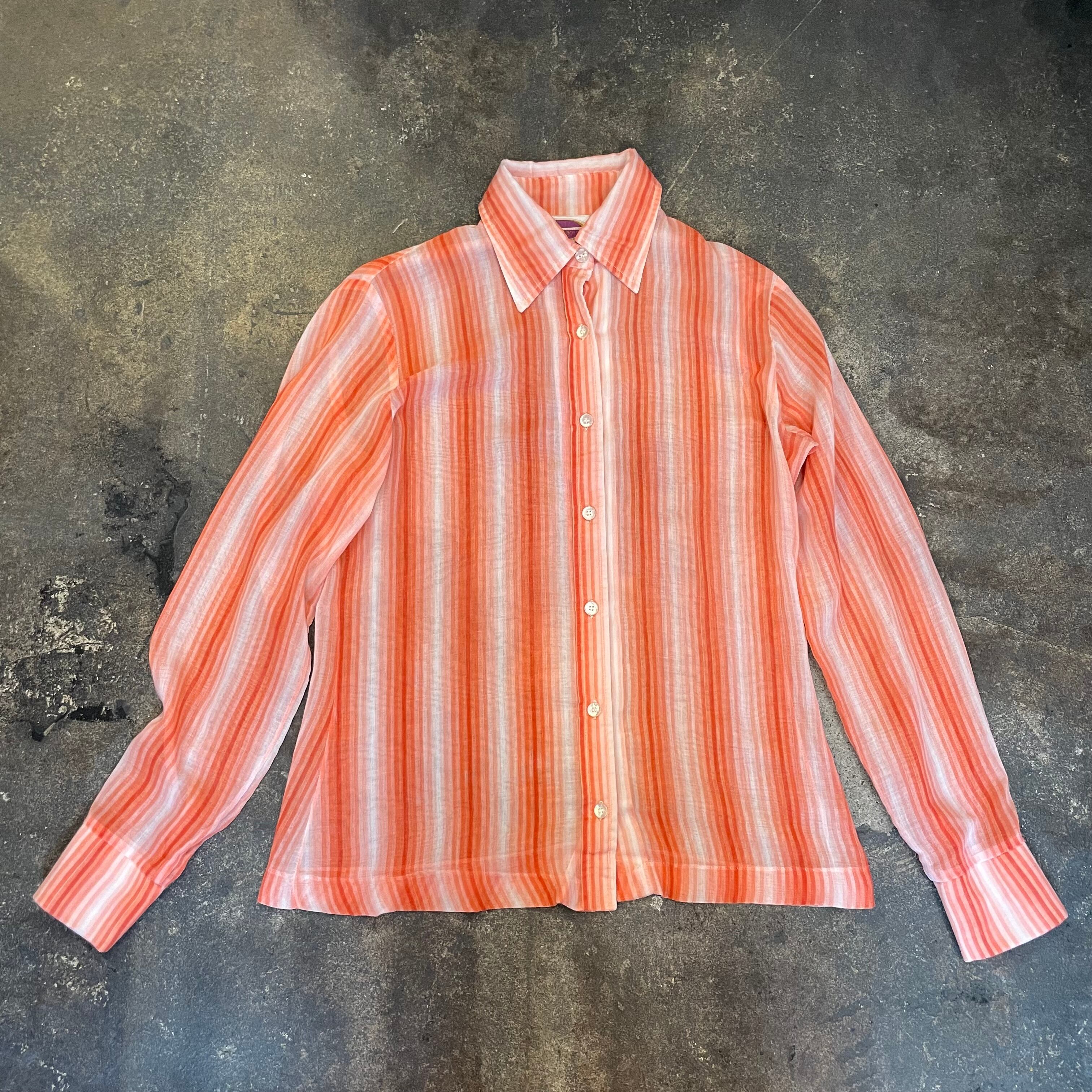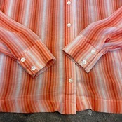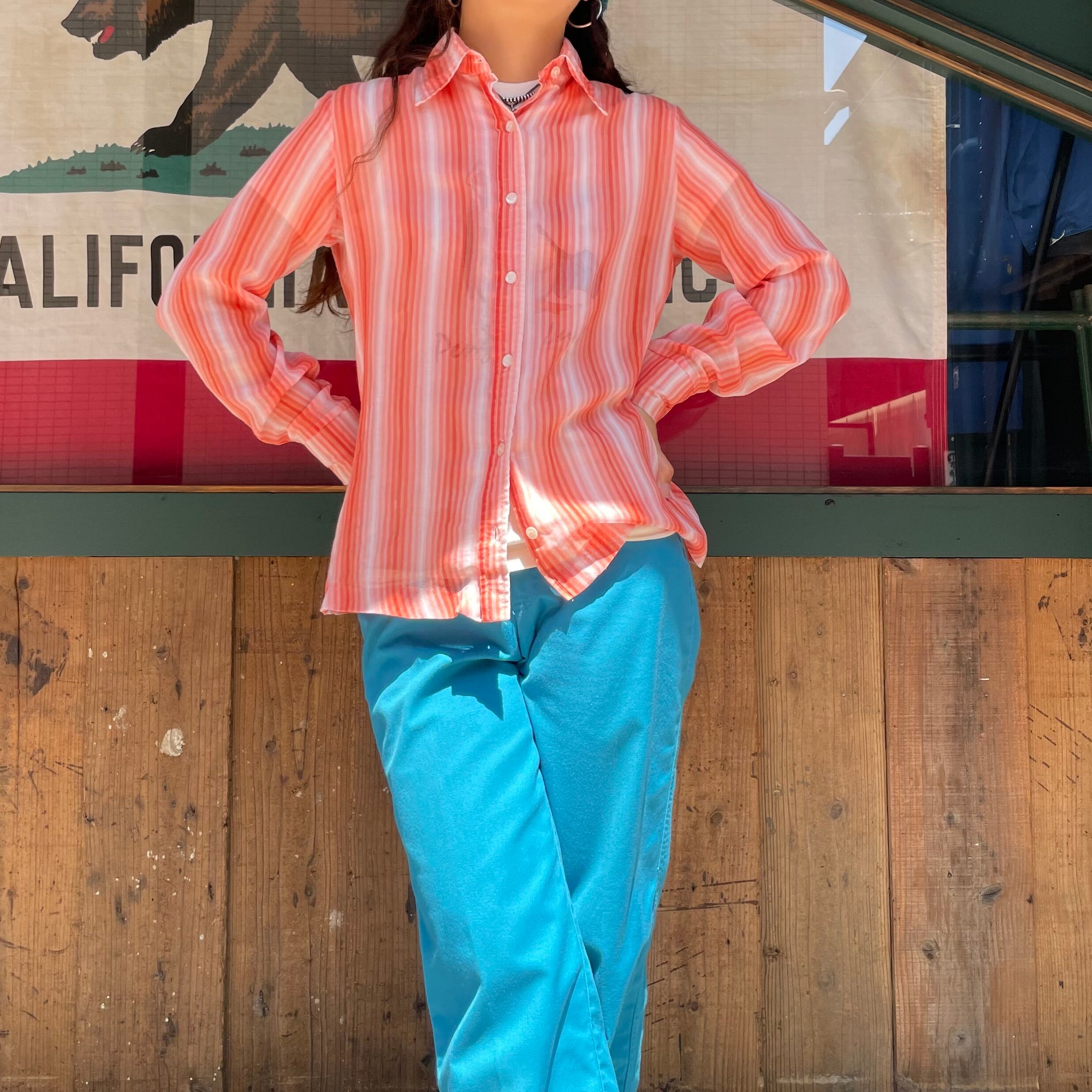 サーモンピンク〜朱色のようなグラデーションのストライプがかわいい70年代頃のシャツです。