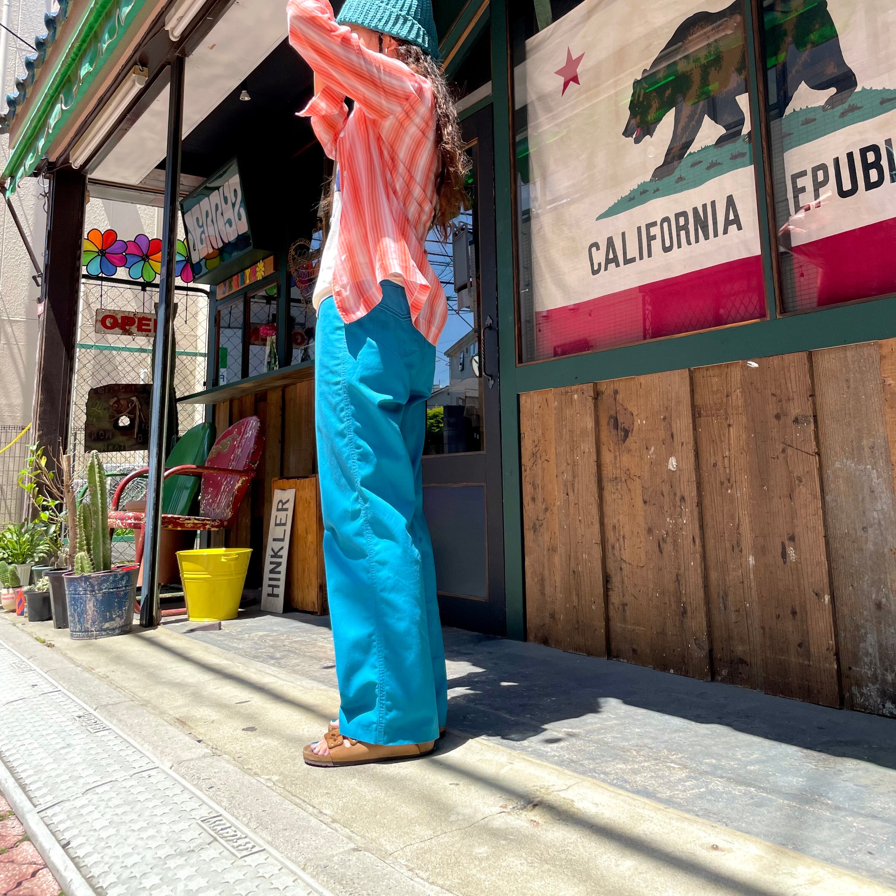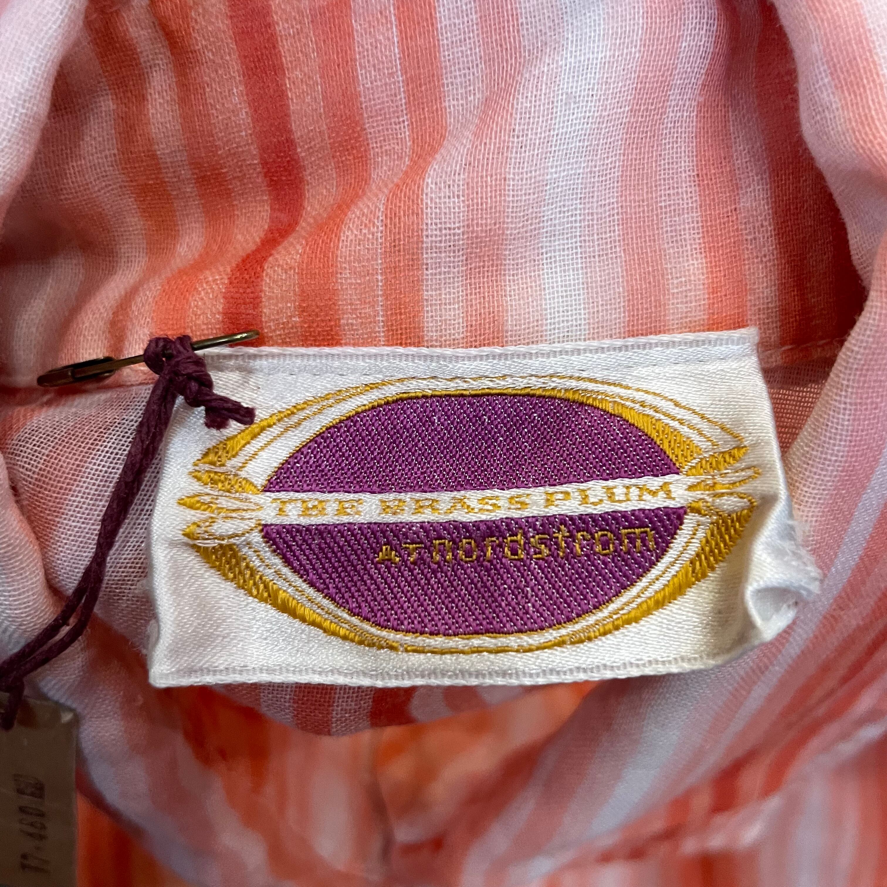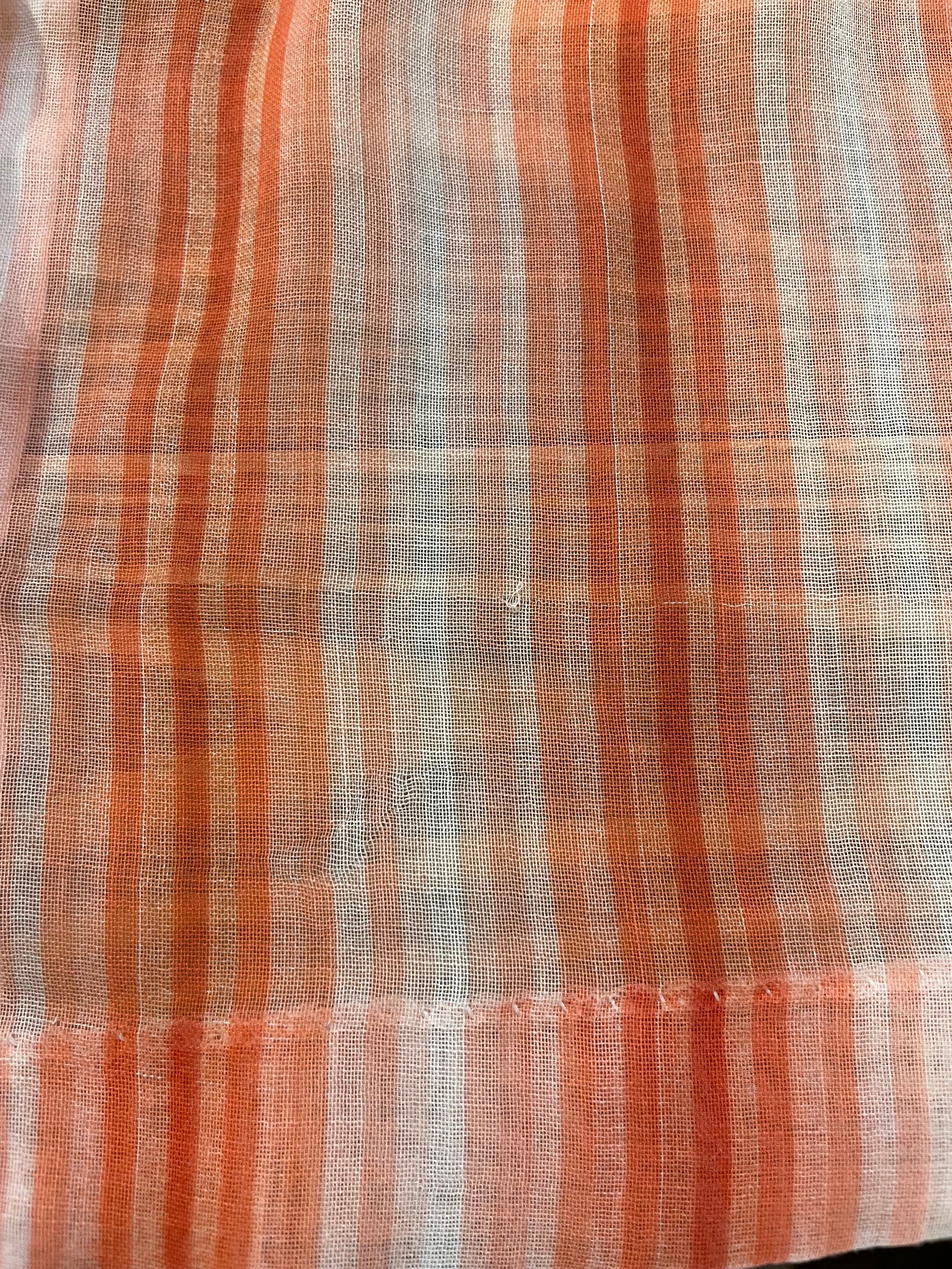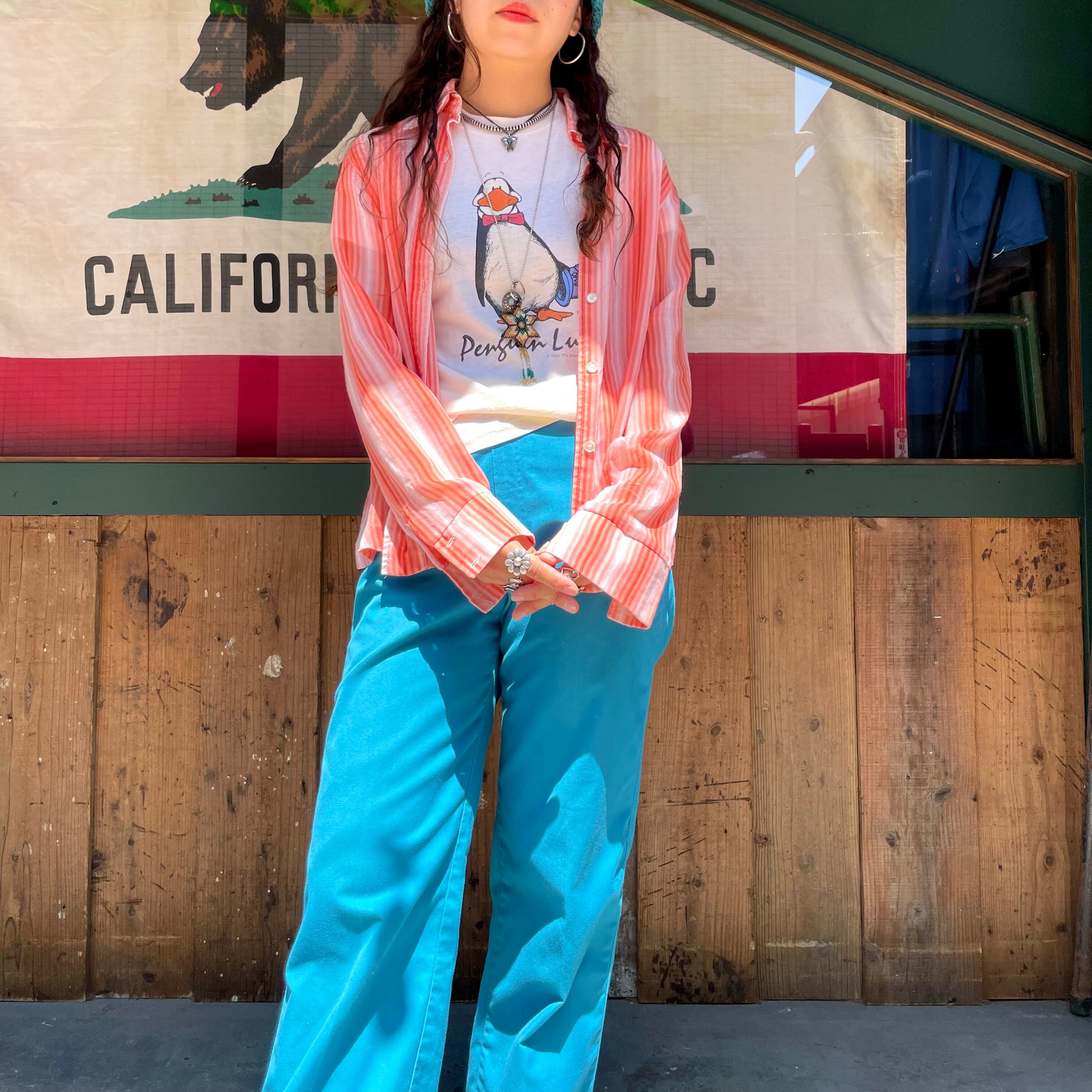 サーモンピンク〜朱色のようなグラデーションのストライプがかわいい70年代頃のシャツです。