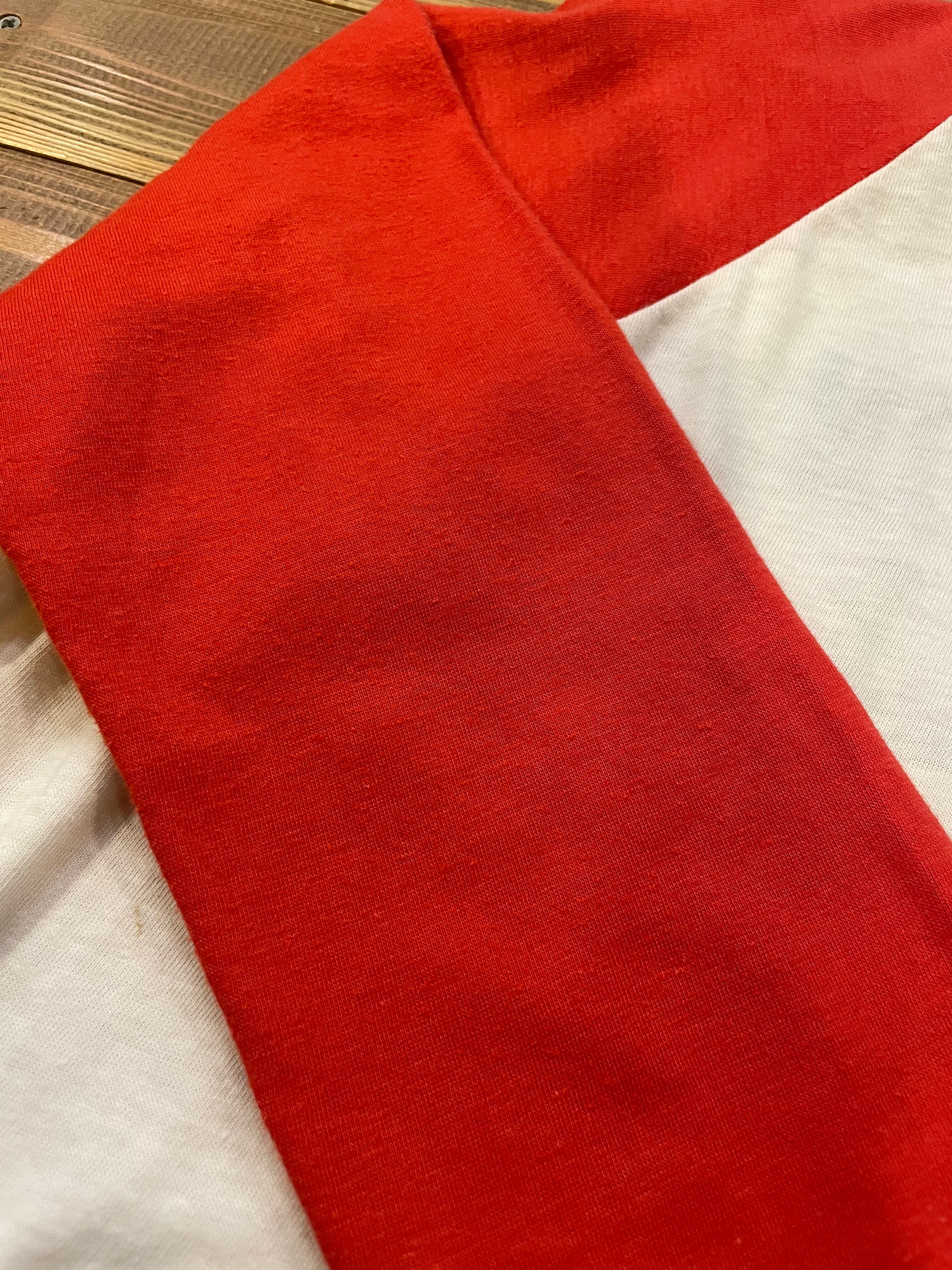 飲食店のロゴと思われるプリントのデザインがポップで良い感じですし、バックプリントがあってポイント高いですね。