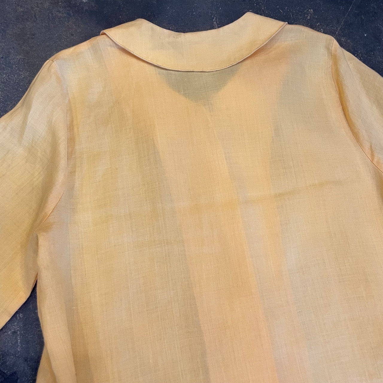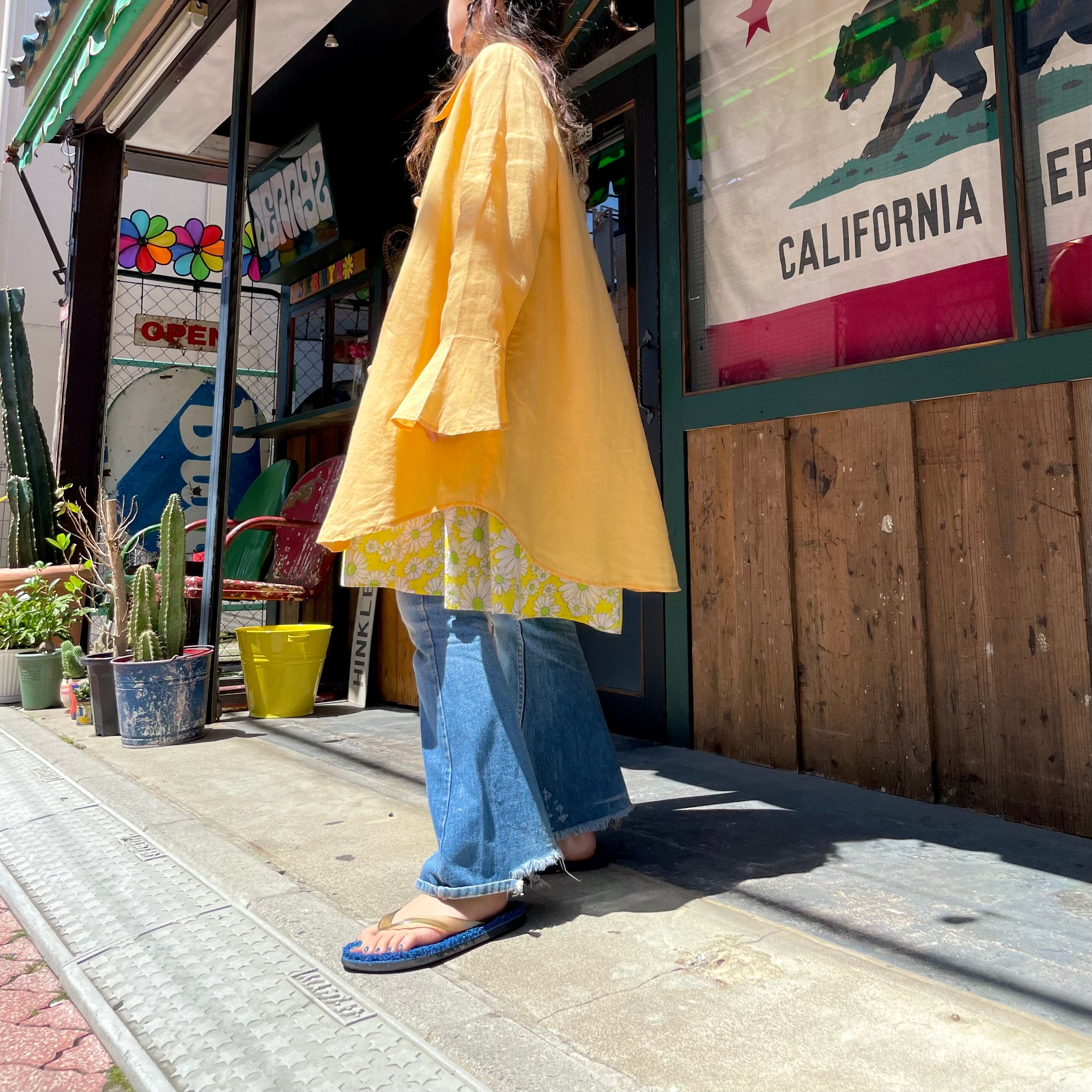 おそらくリネン素材が風通しも良く肌にくっつかないので真夏の日除け対策にもお使い頂けそうな軽い涼しげな一枚です。