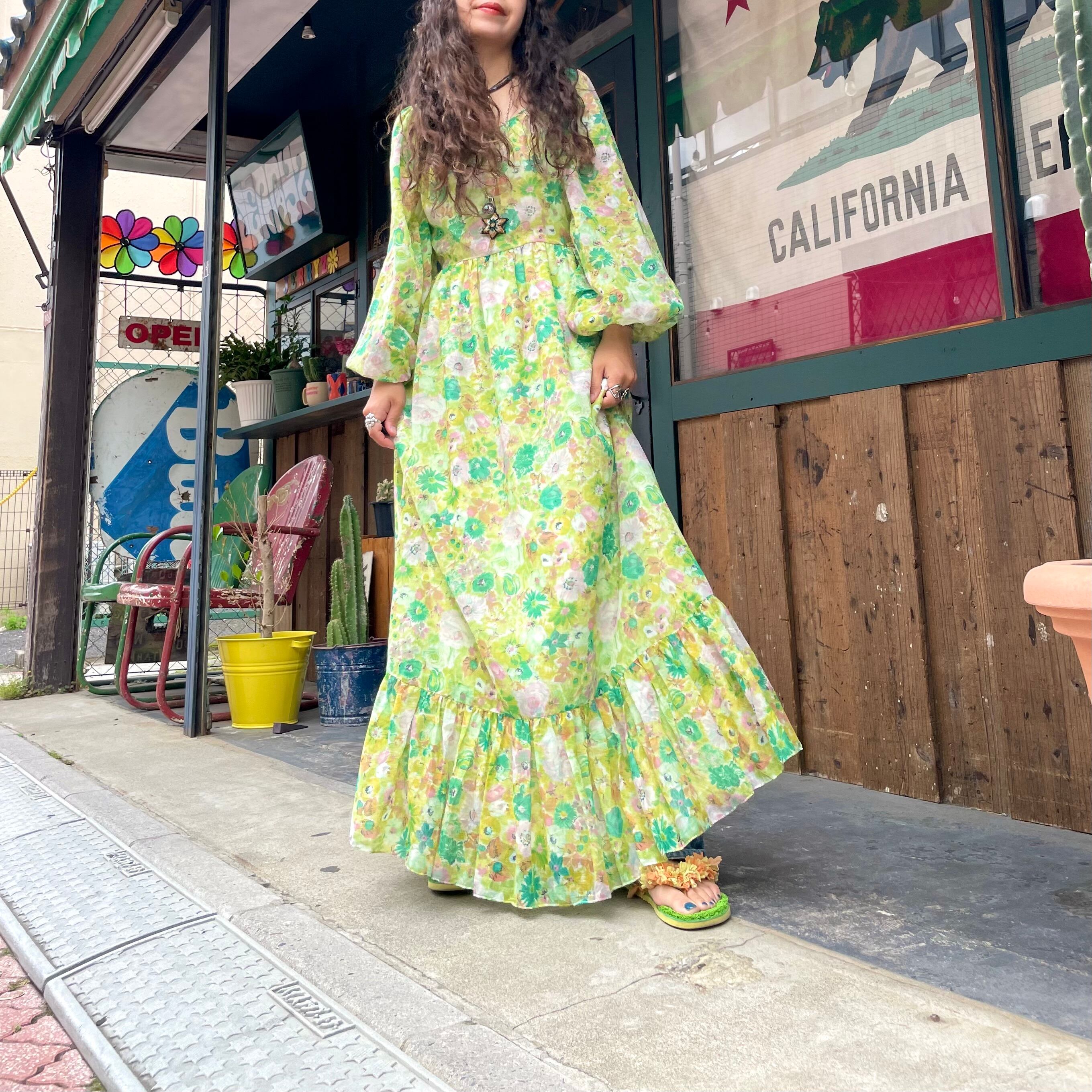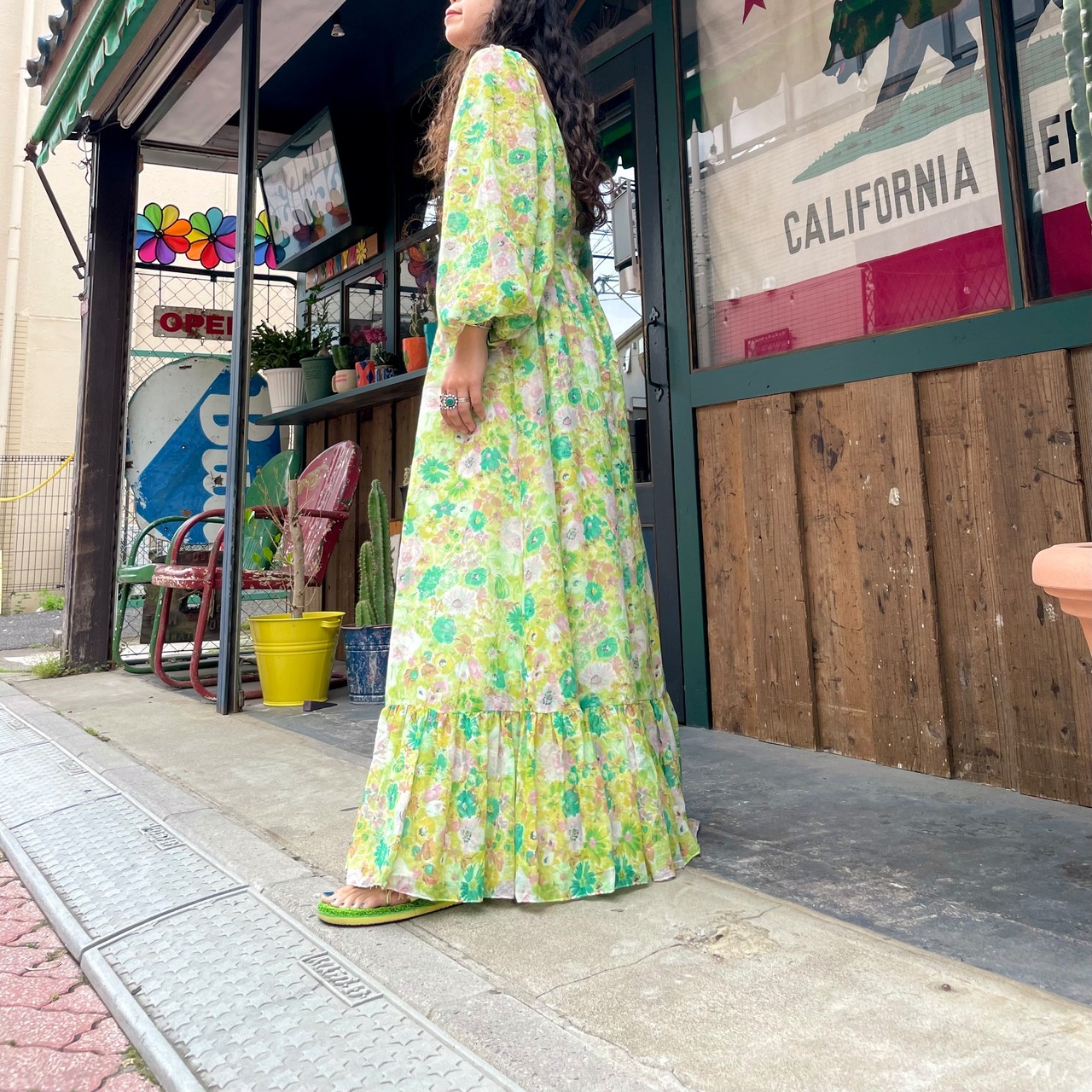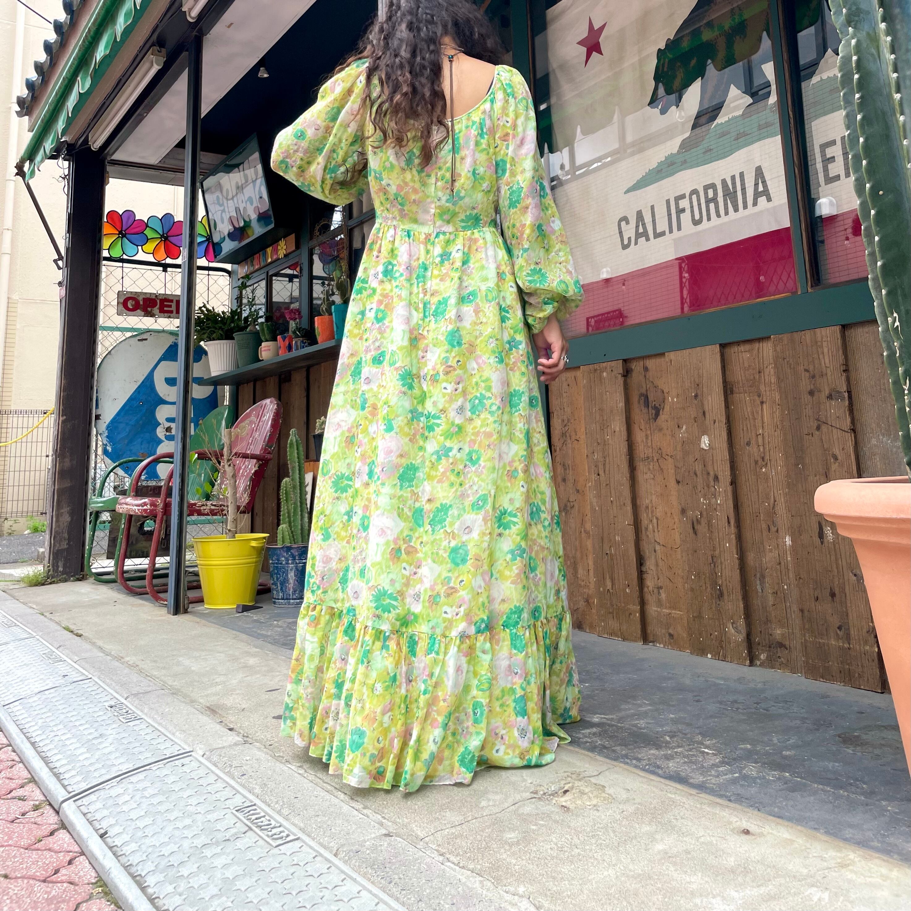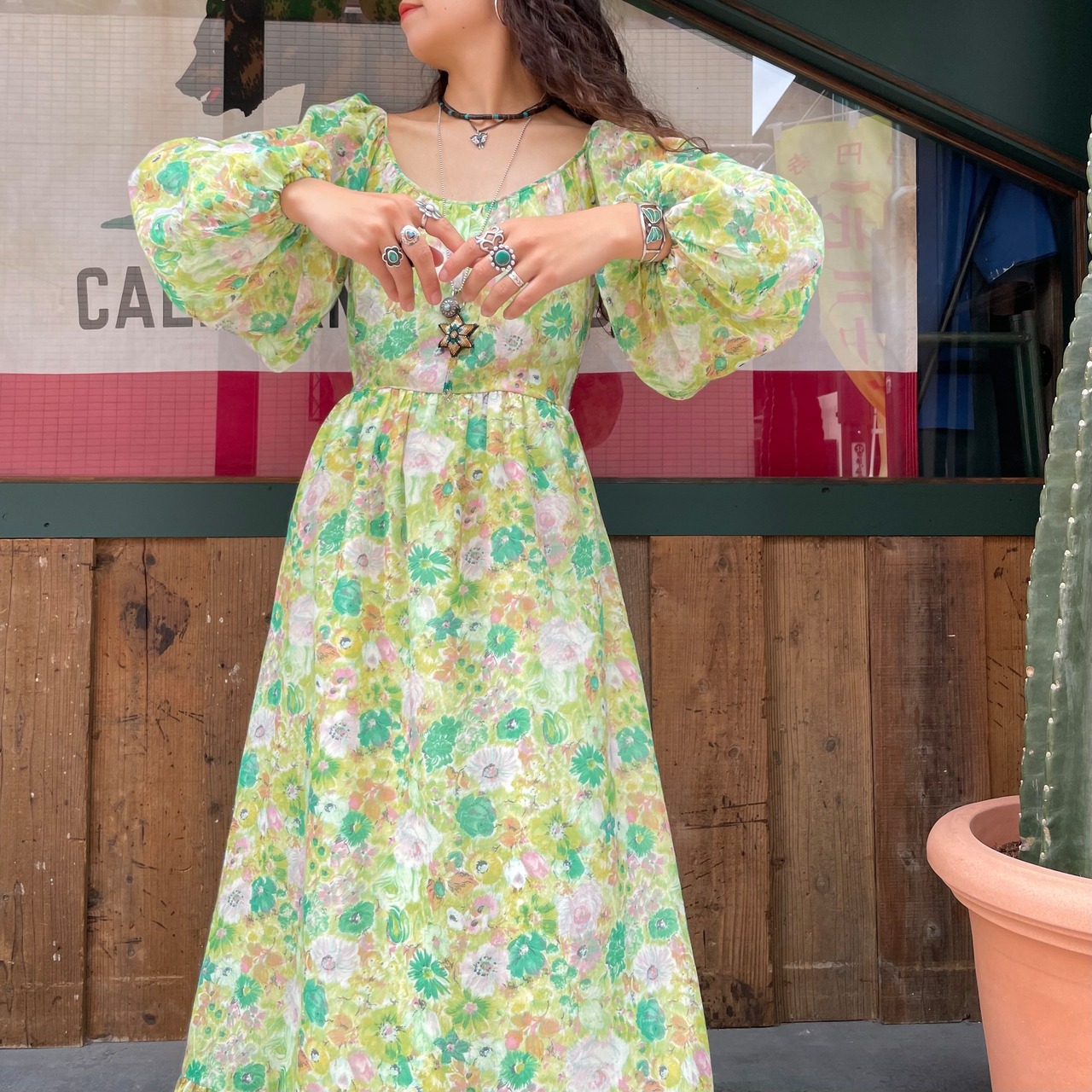 シースルーで爽やかで涼しげな花柄がかわいい70年代頃のワンピースです。