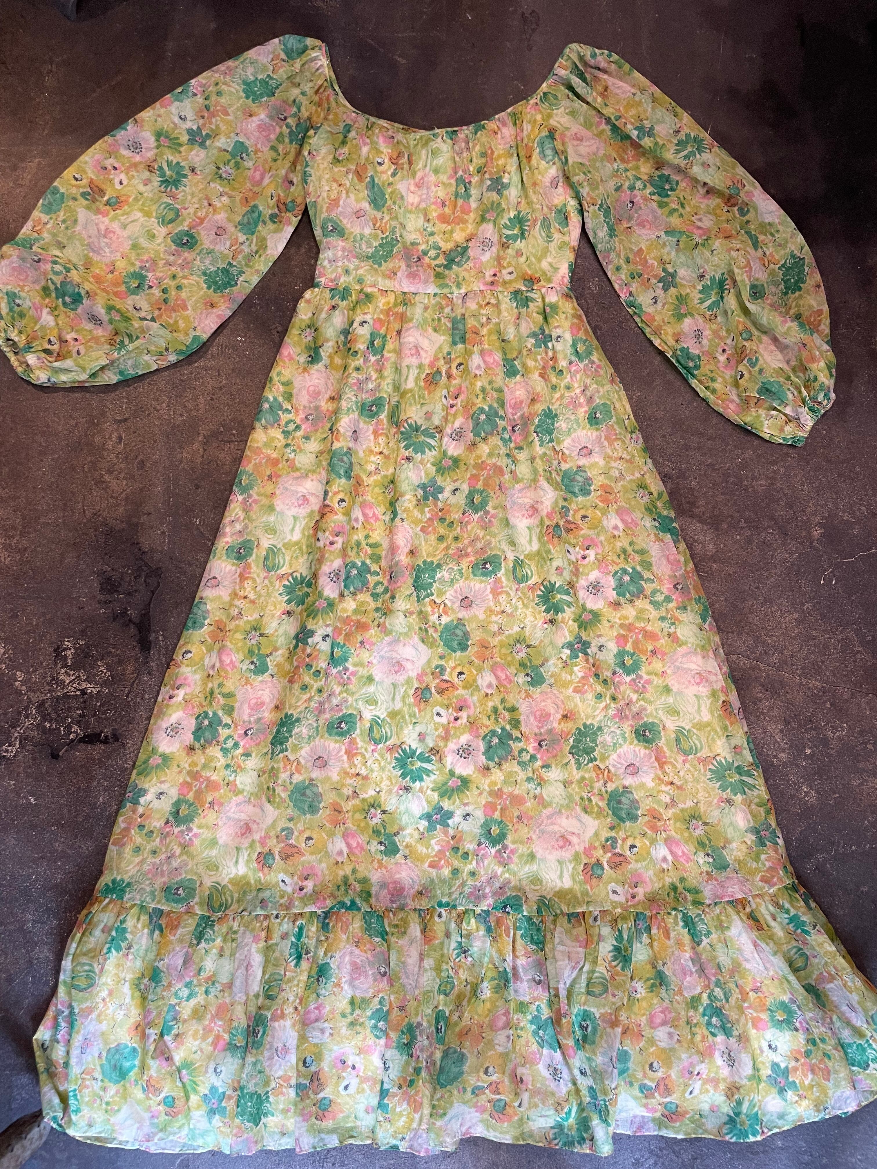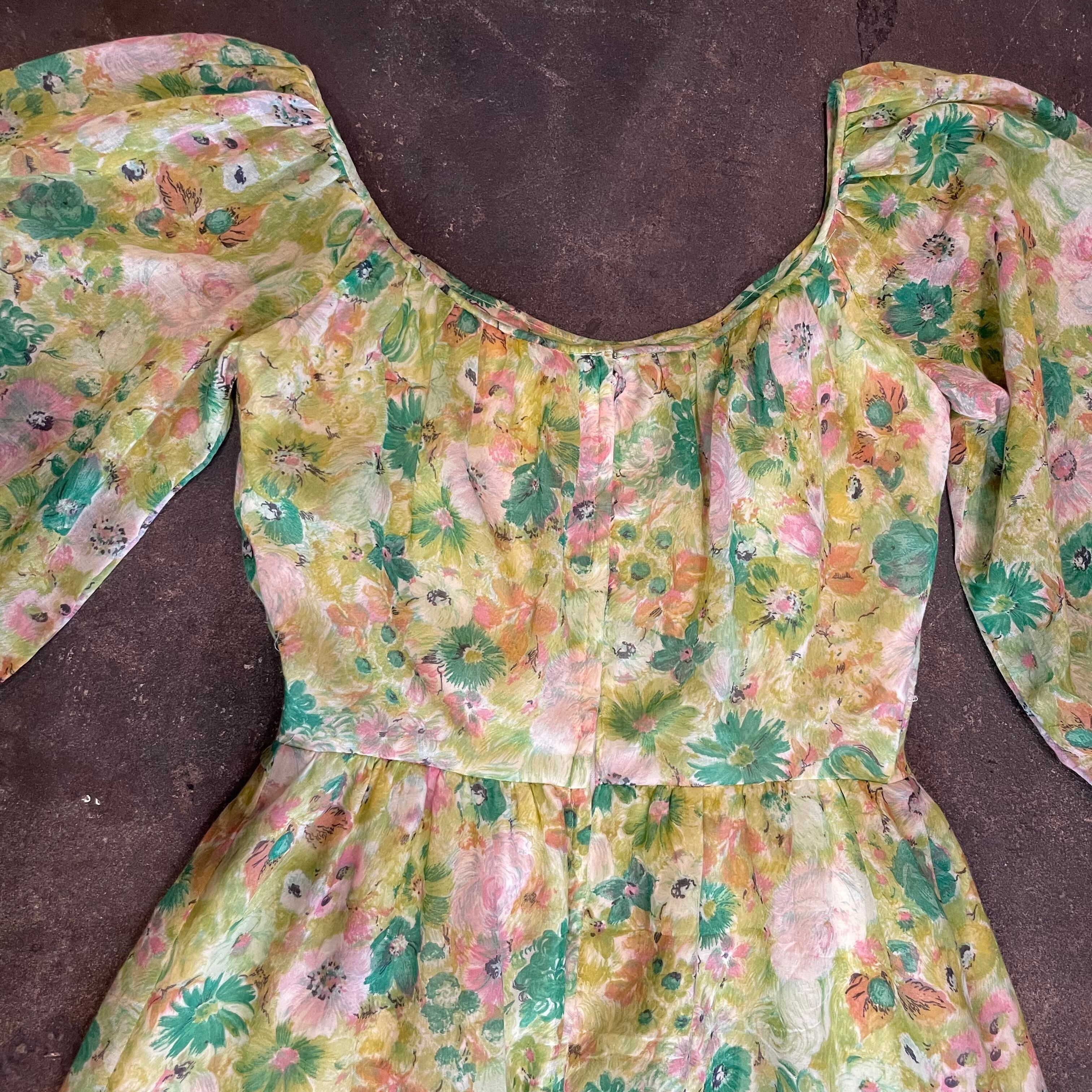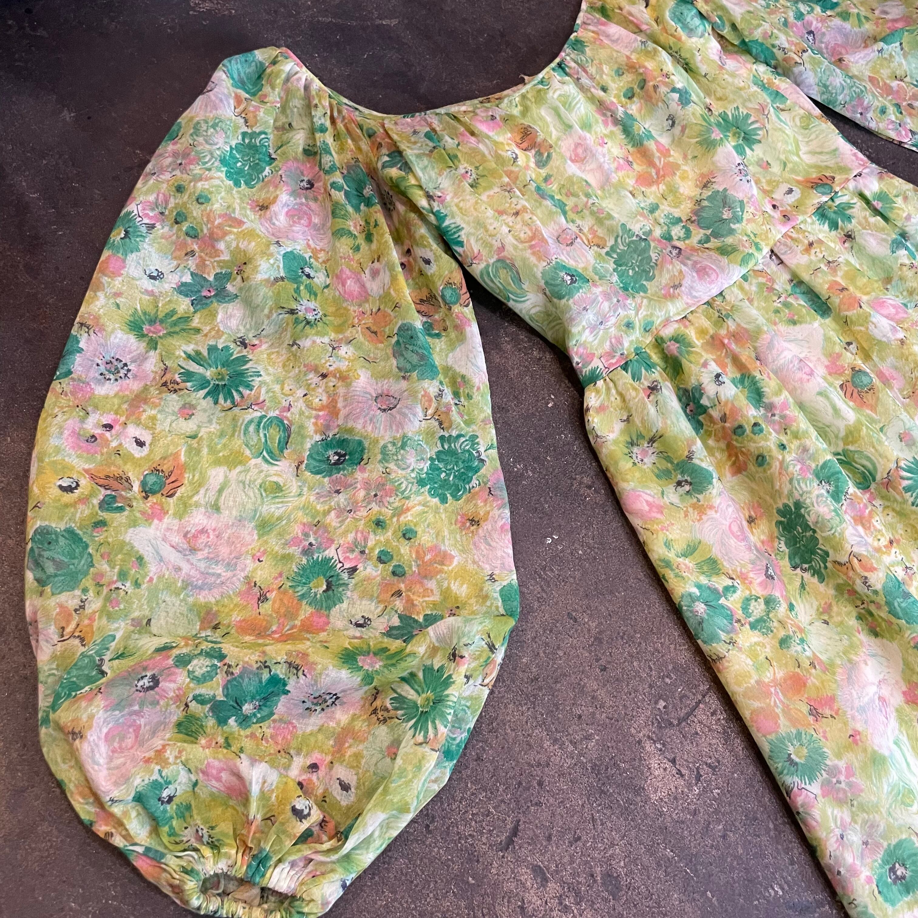 シースルーで爽やかで涼しげな花柄がかわいい70年代頃のワンピースです。