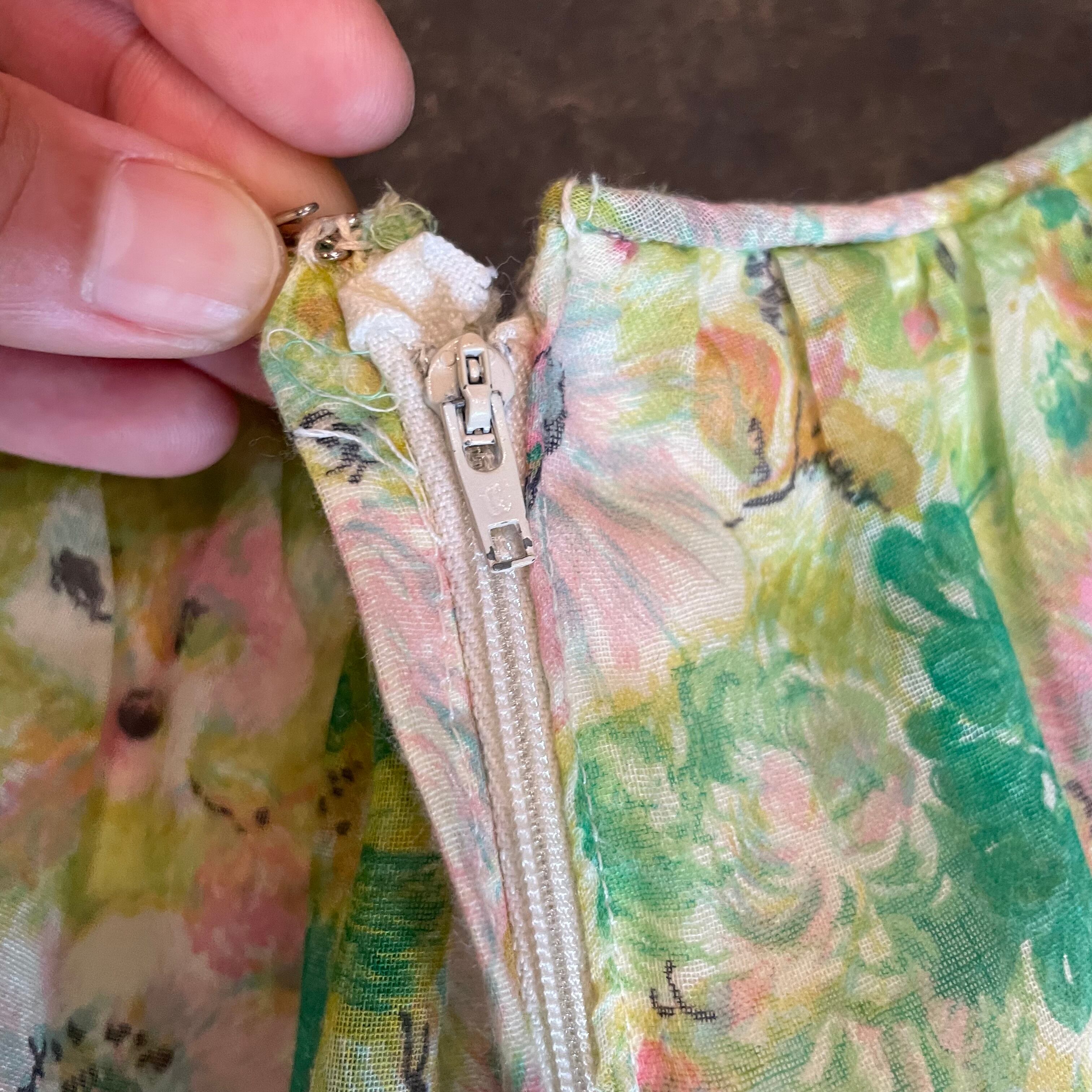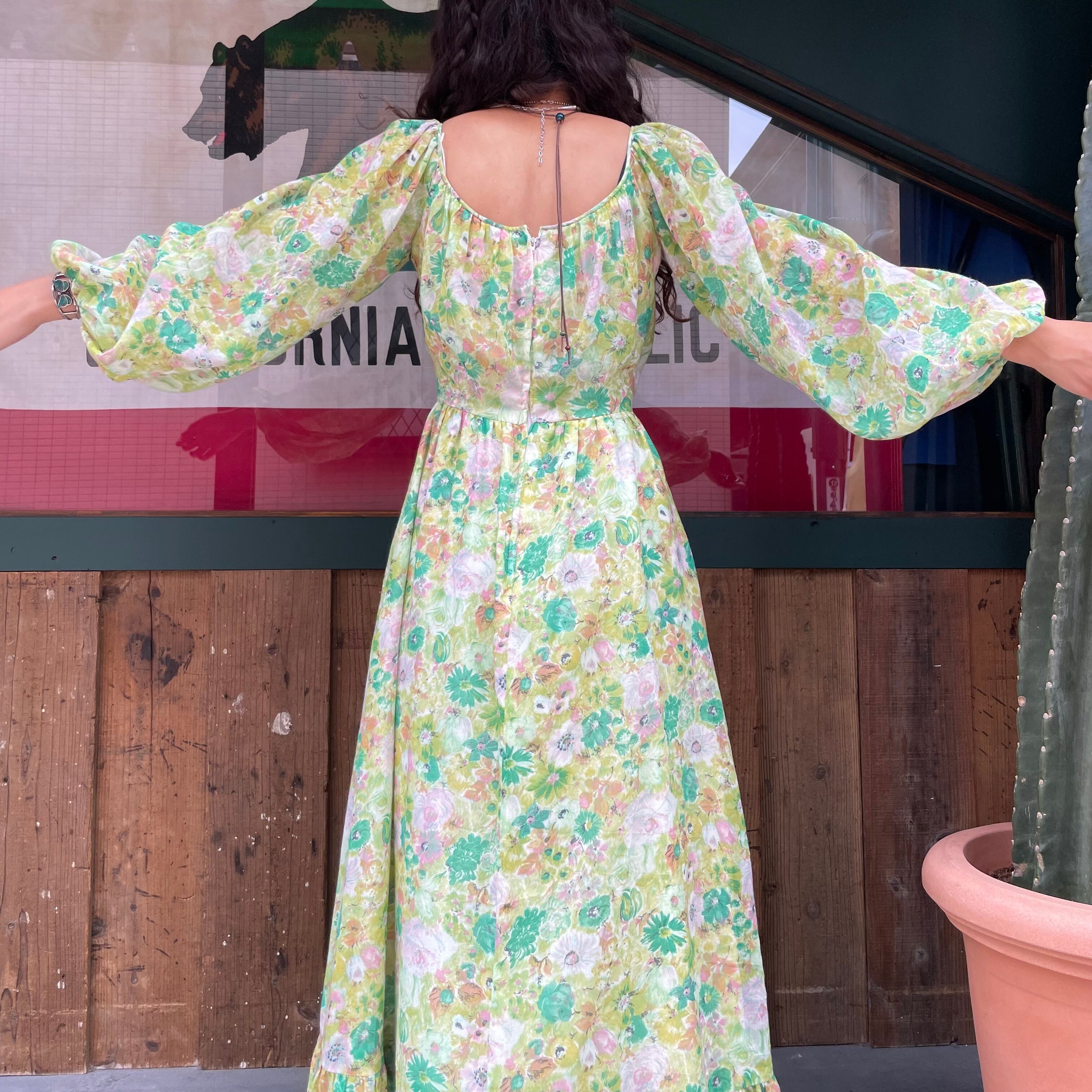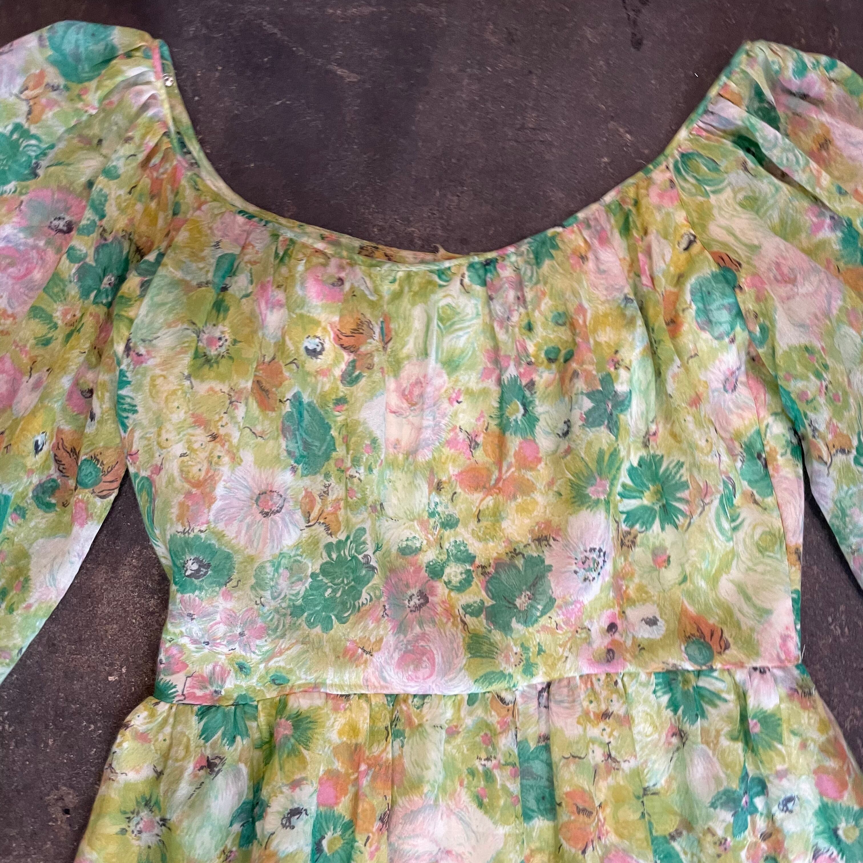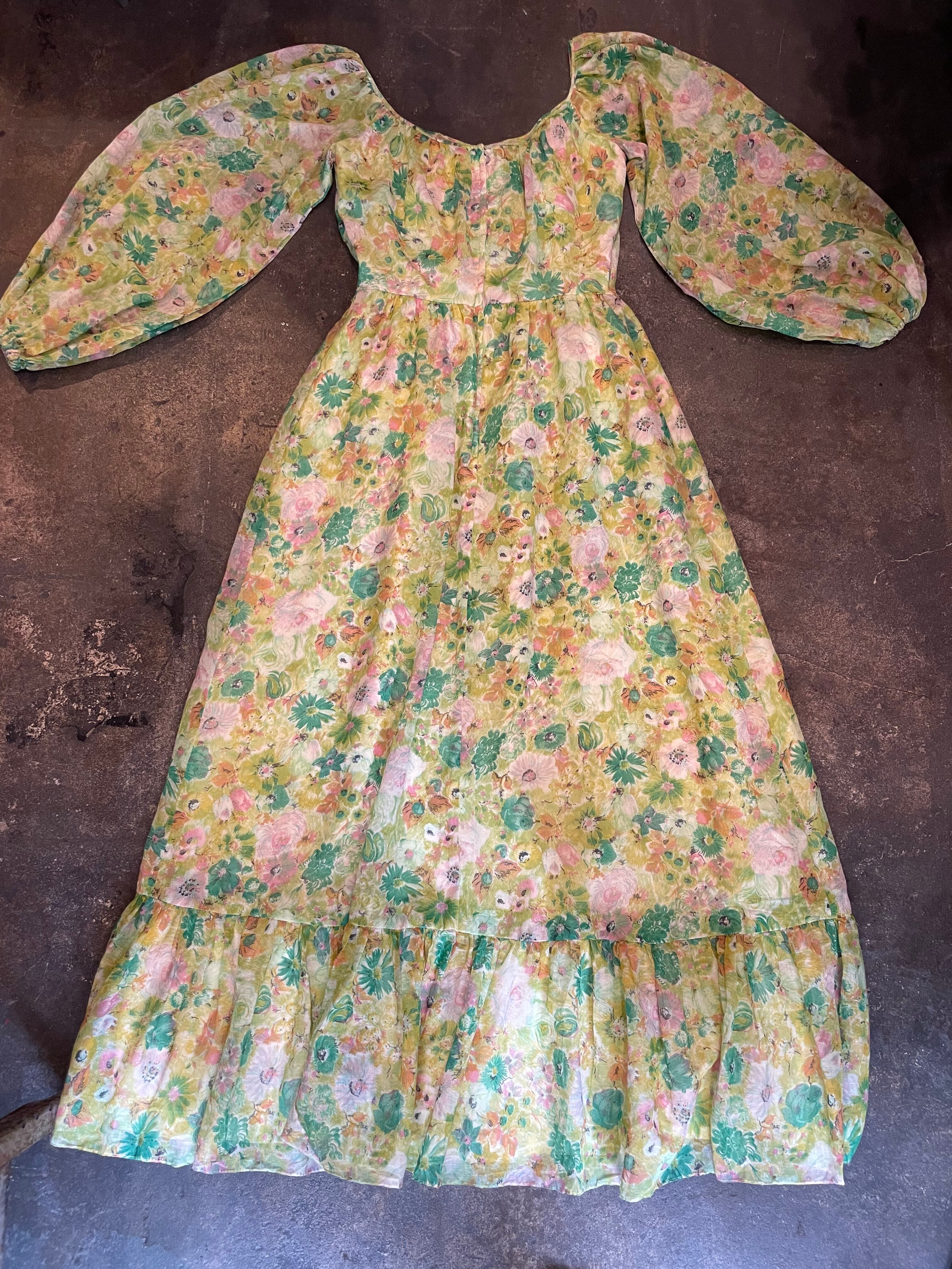 シースルーで爽やかで涼しげな花柄がかわいい70年代頃のワンピースです。