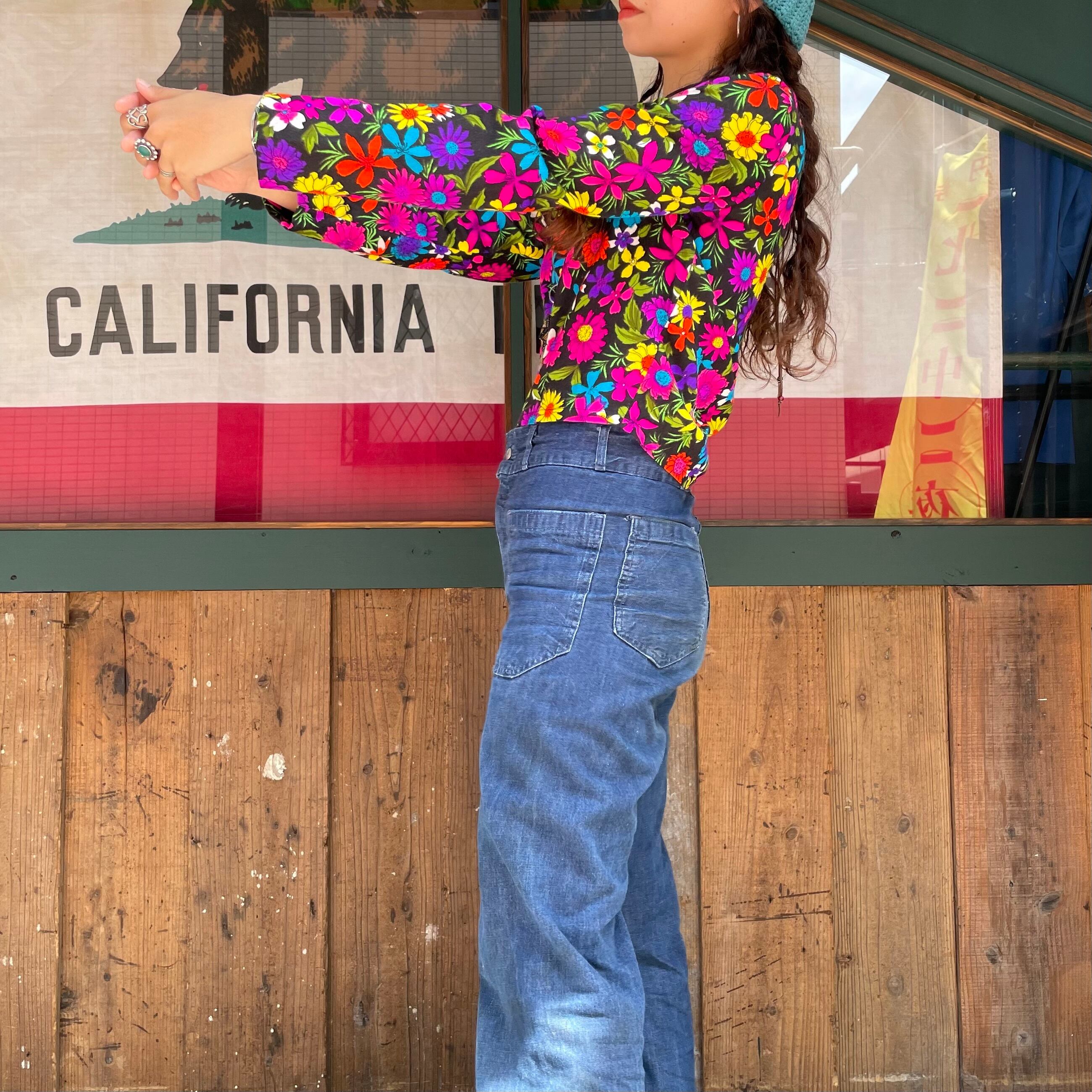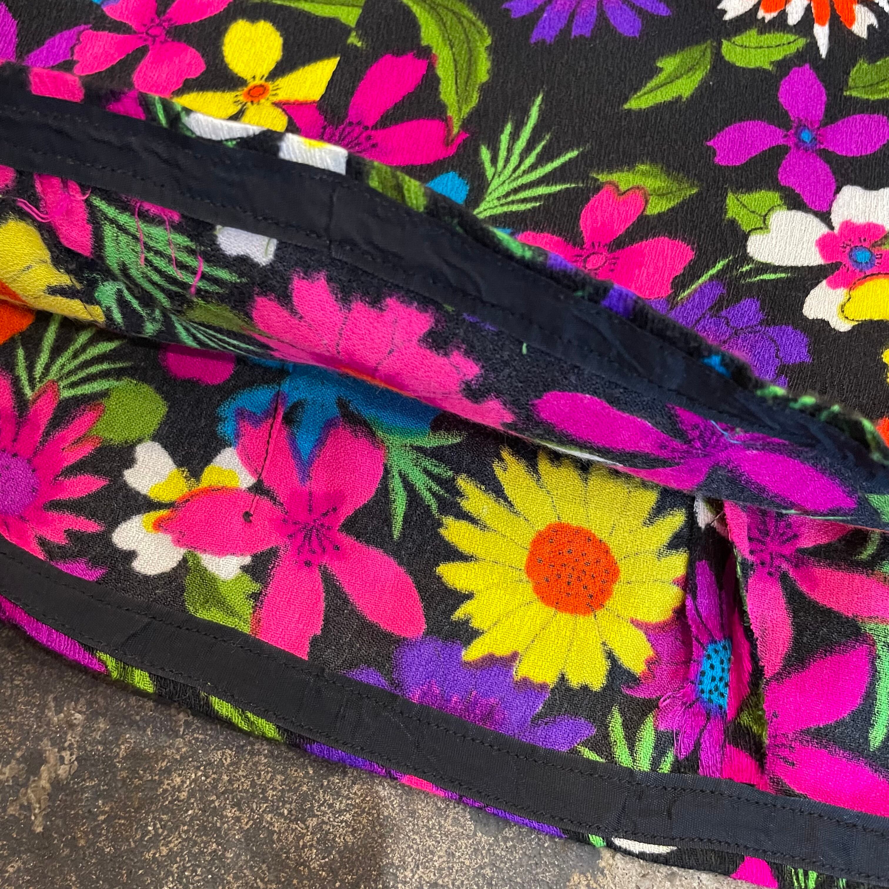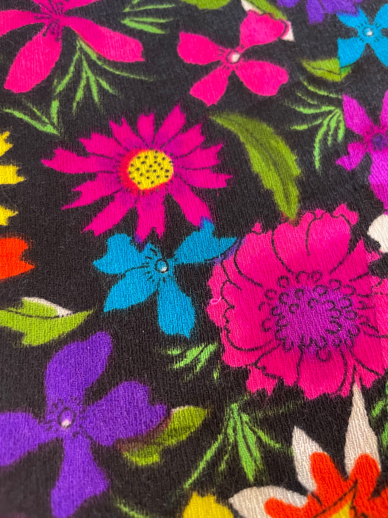 黒地にハッピーでカラフルな花柄が際立ってとってもかわいいですね。