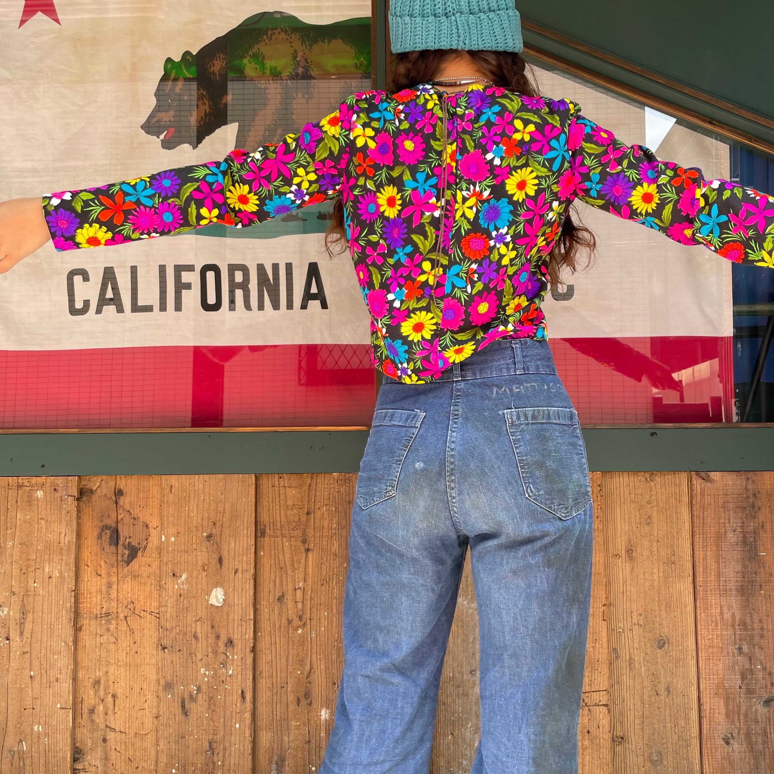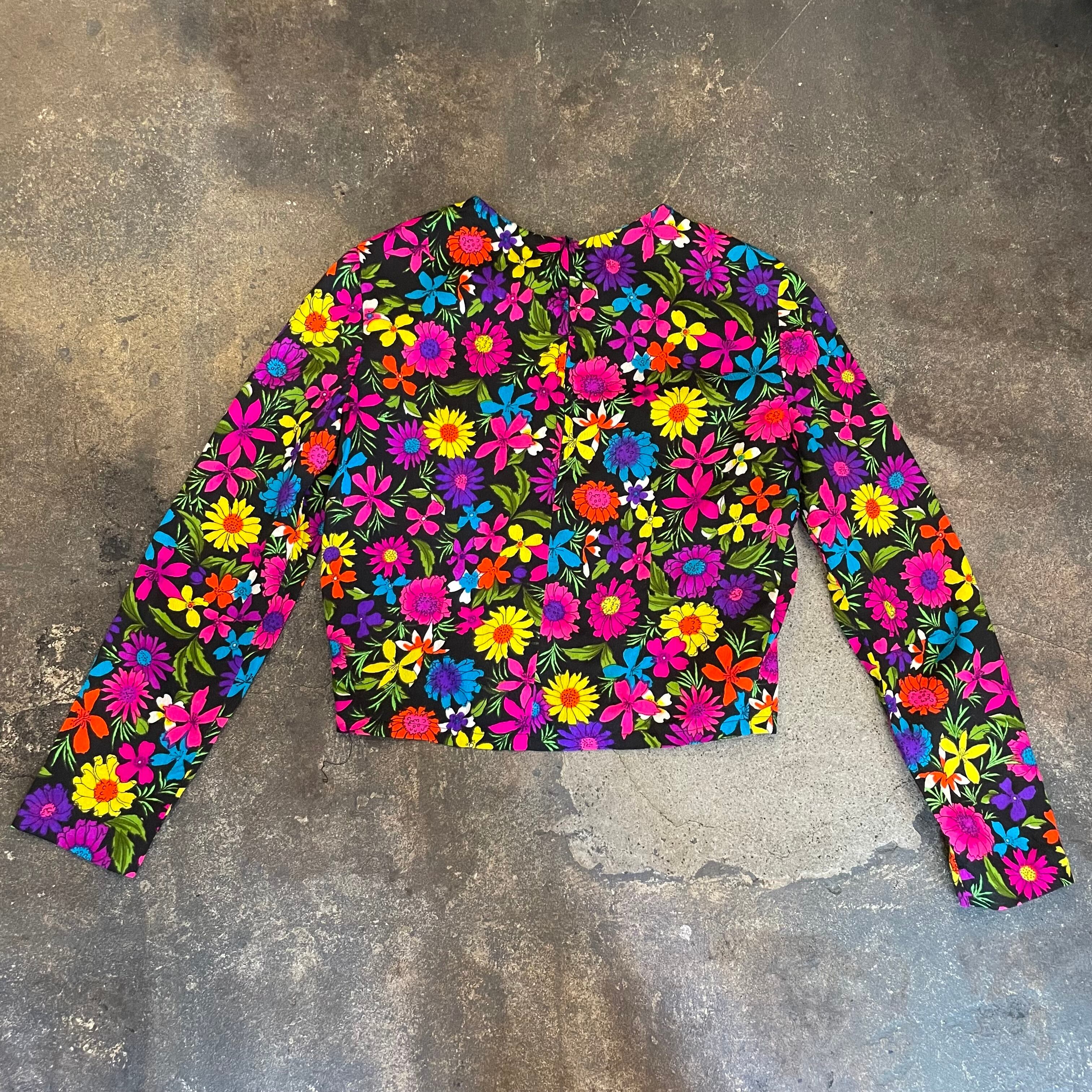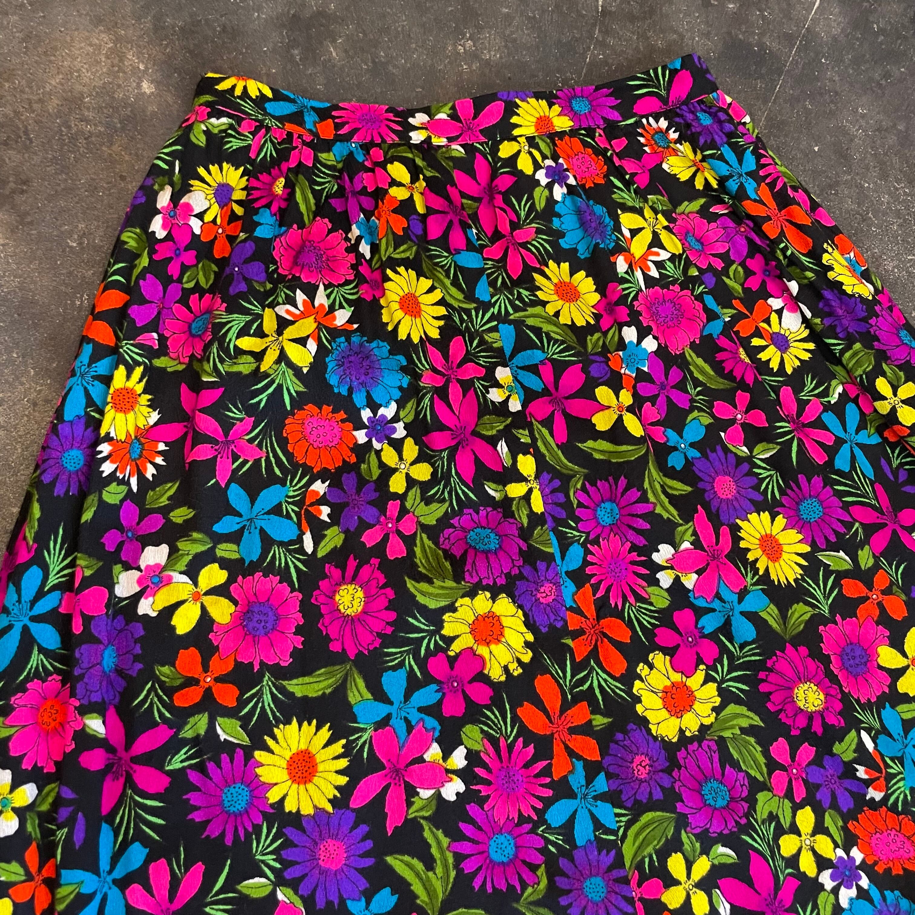 黒地にハッピーでカラフルな花柄が際立ってとってもかわいいですね。