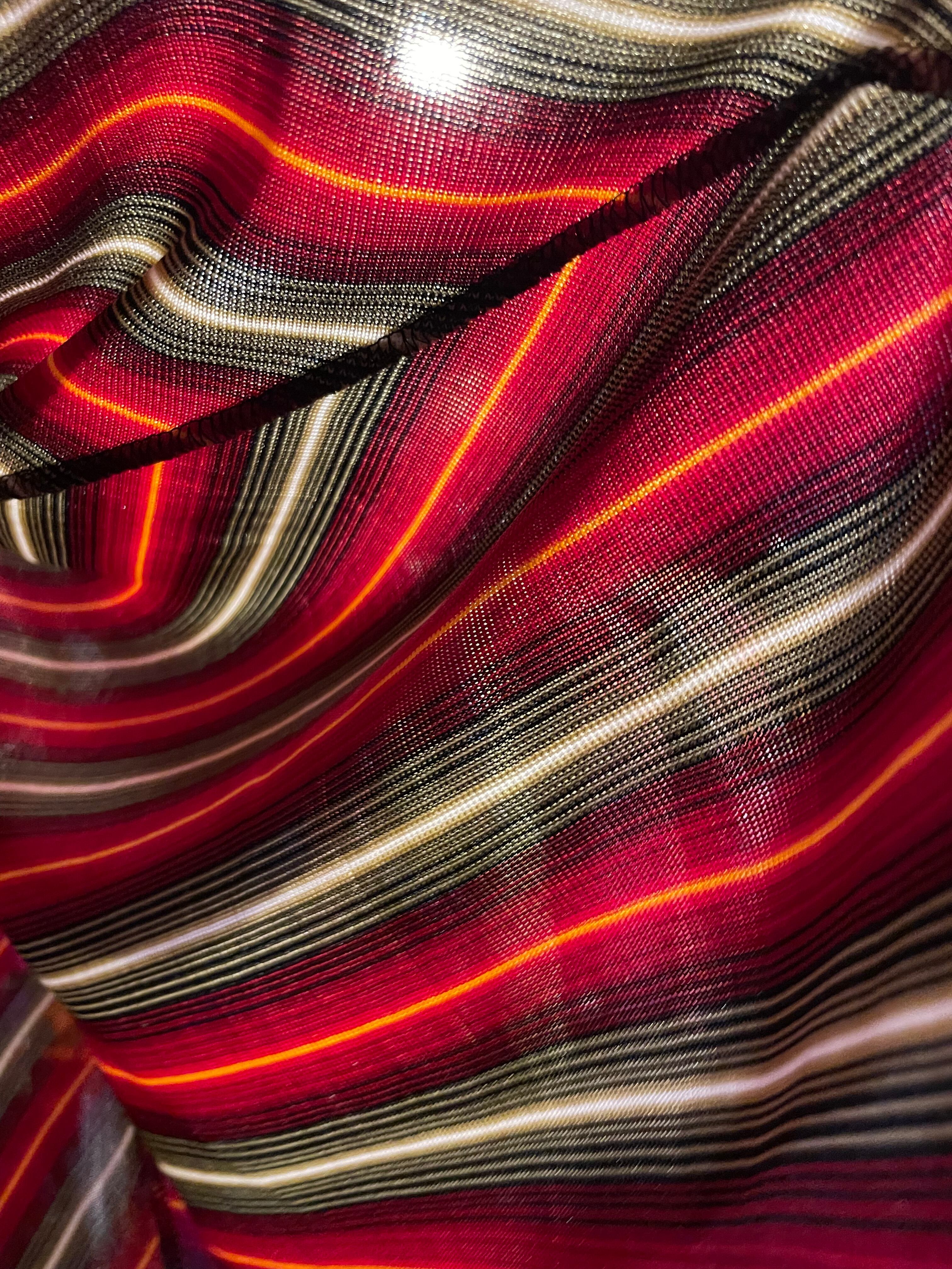 さらっとしたポリエステルの素材で一枚では透けるような生地感ですので風通しは良く涼しいと思います。