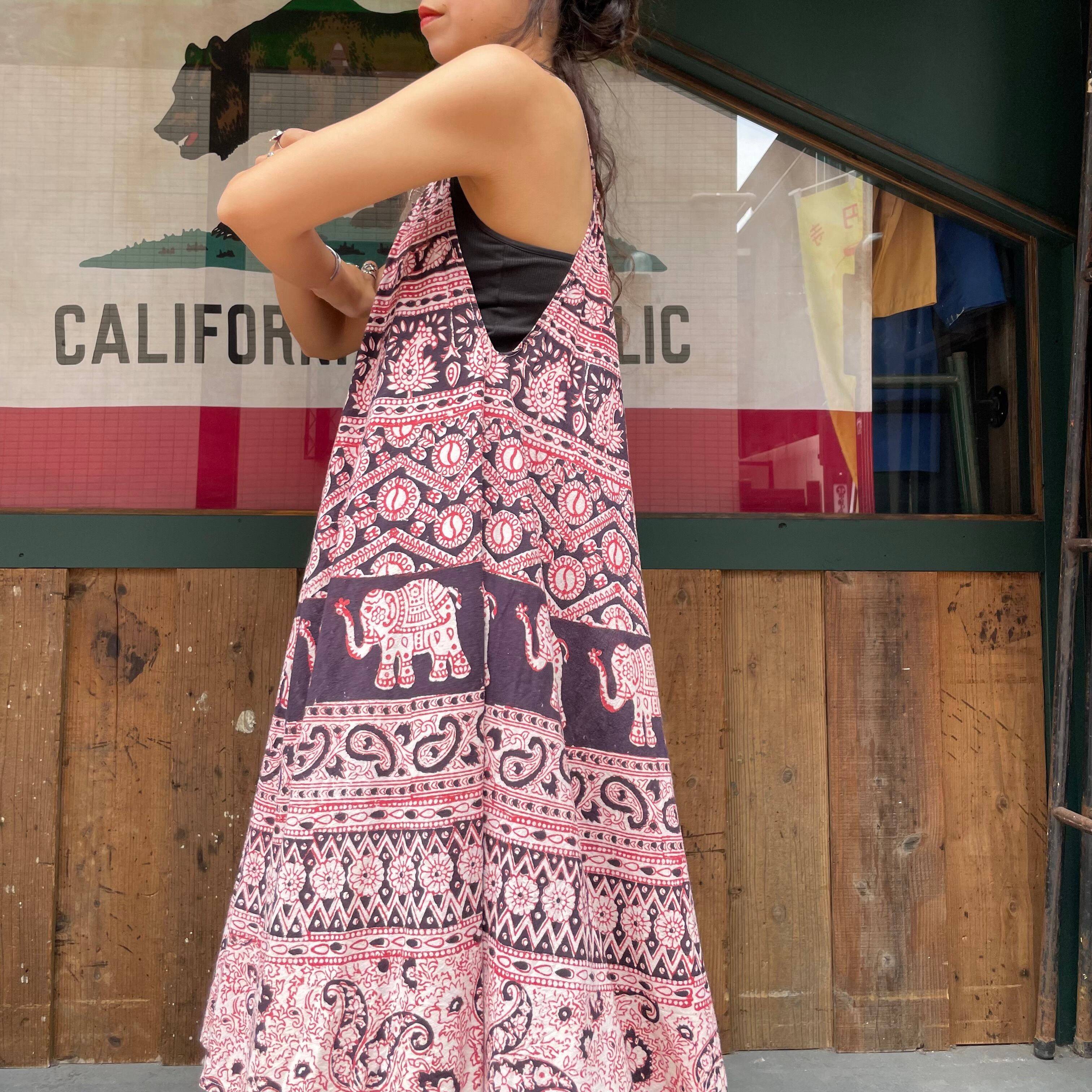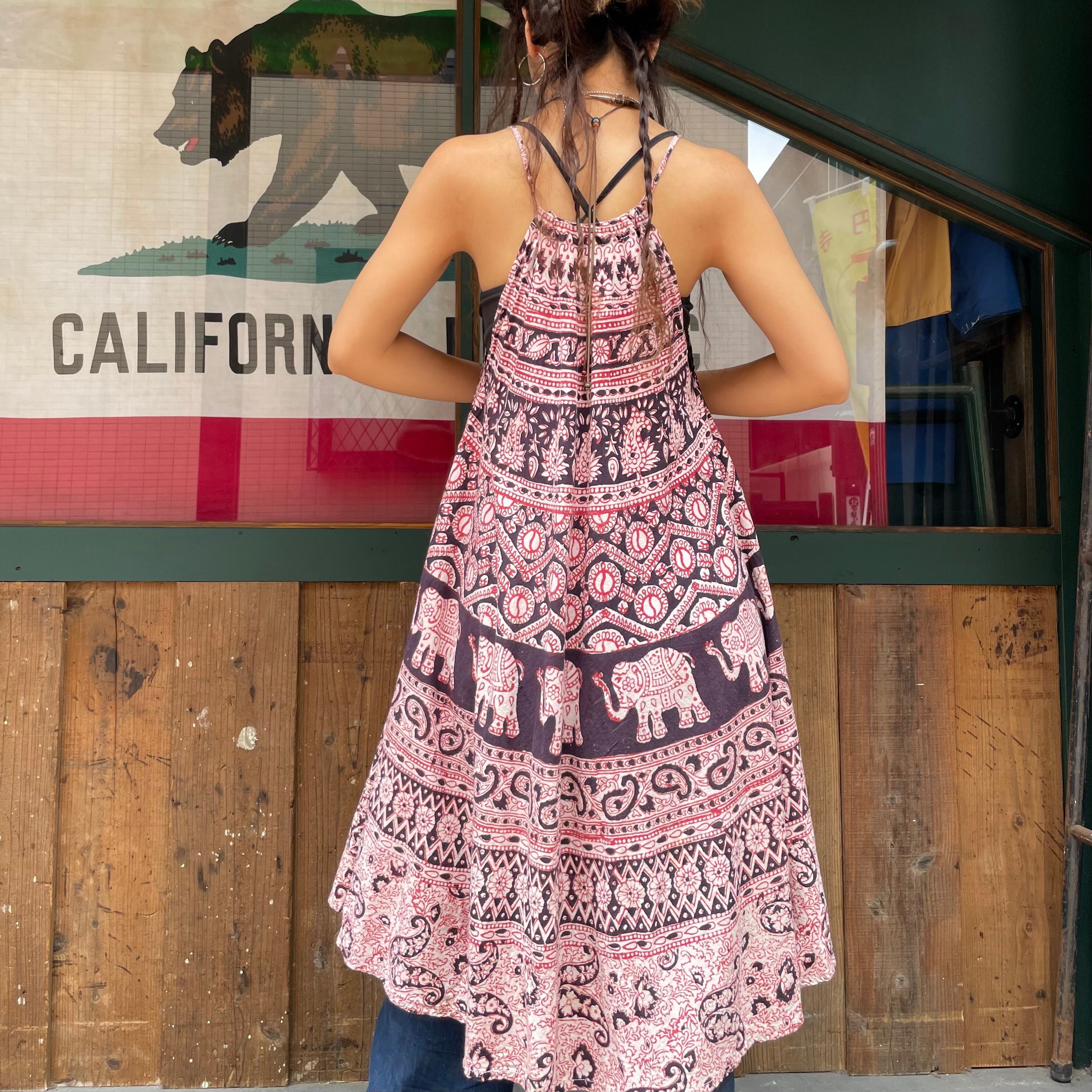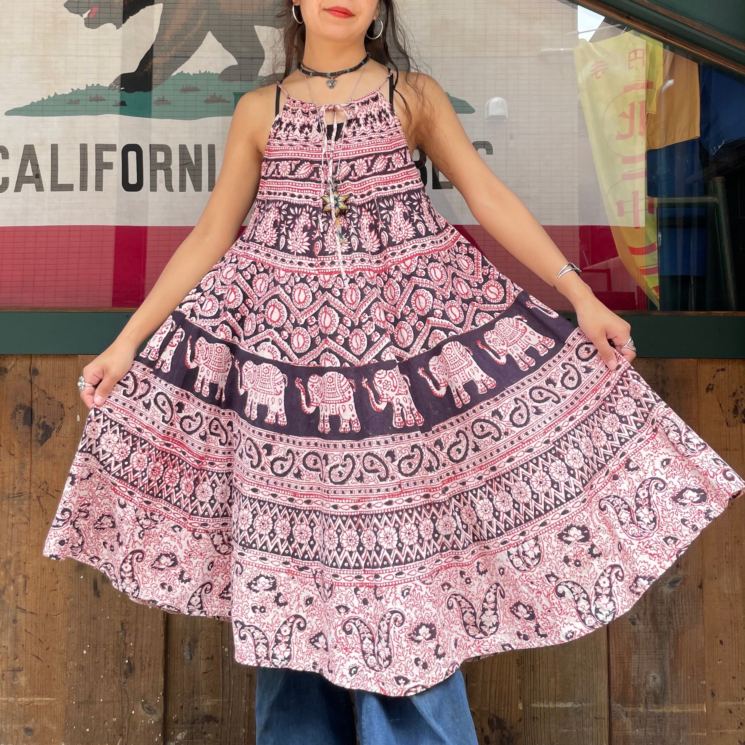 インドコットンのブロックプリントがかわいいキャミソールワンピースです。