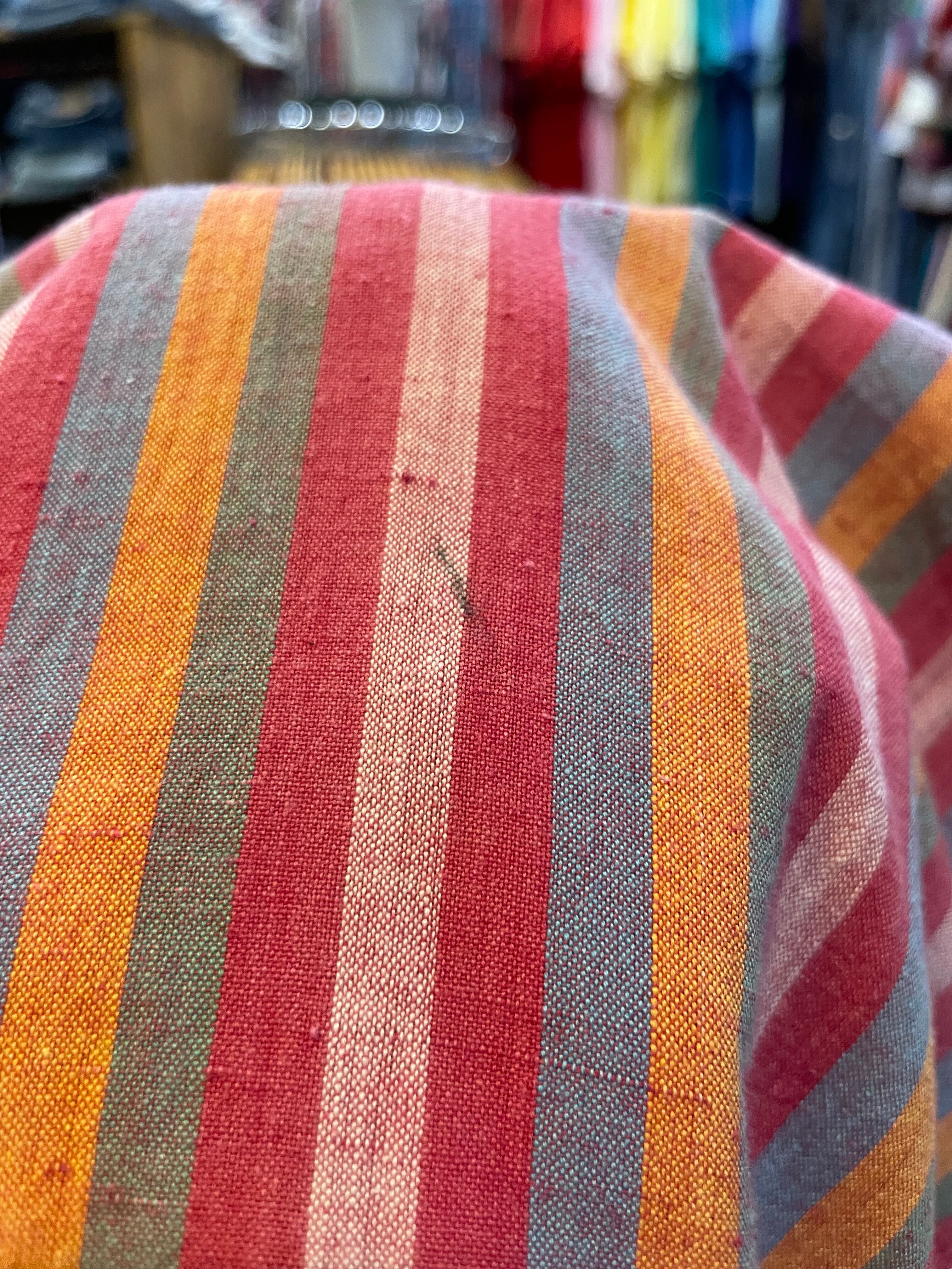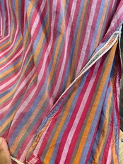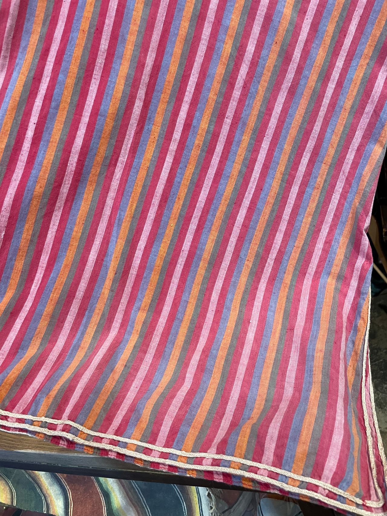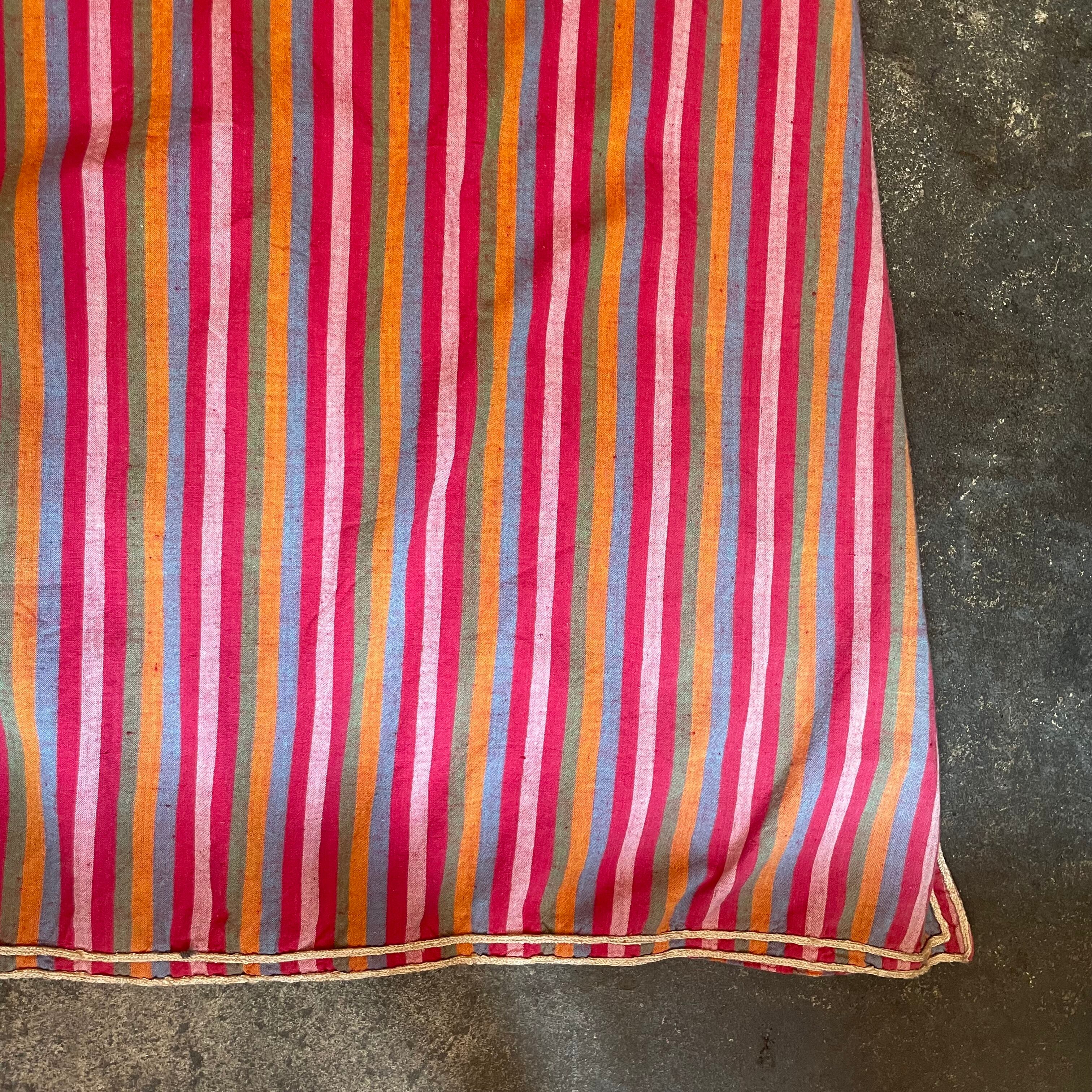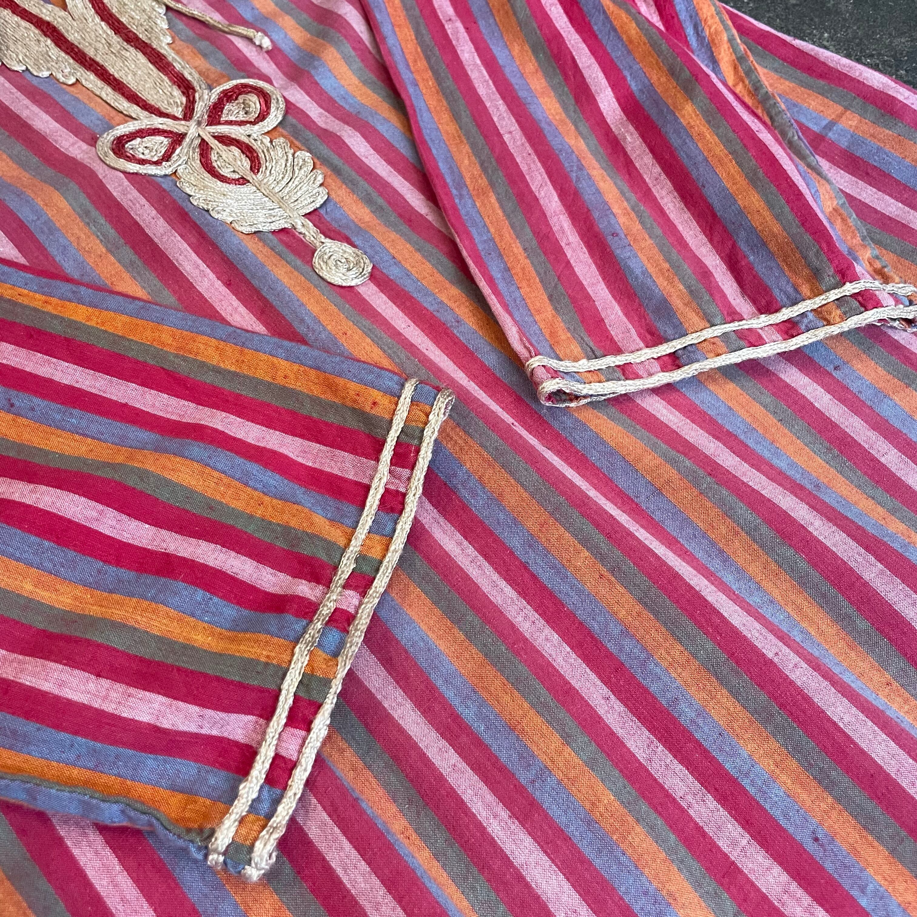 ピンクを基調としたカラフルなストライプがかわいいカフタンドレスです。