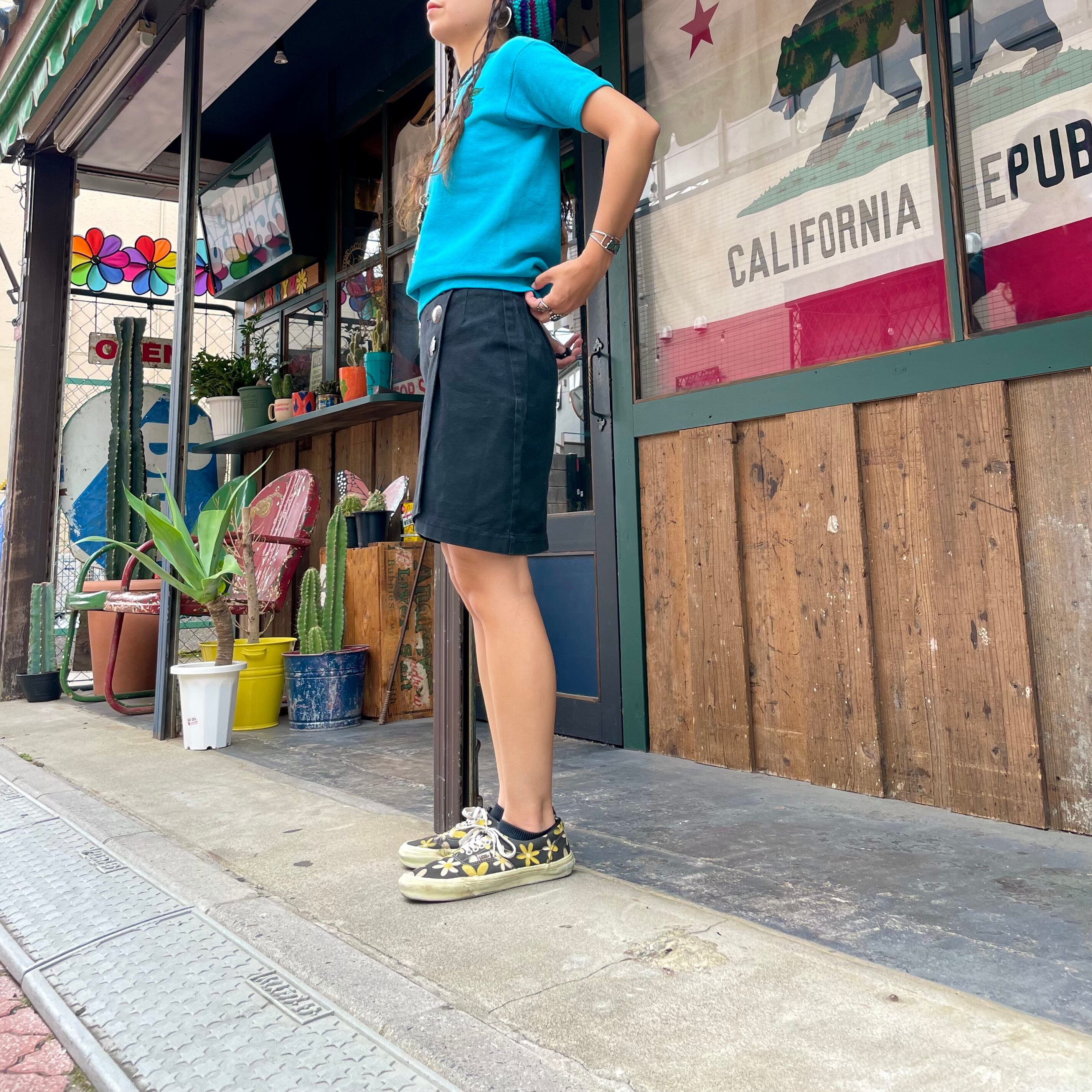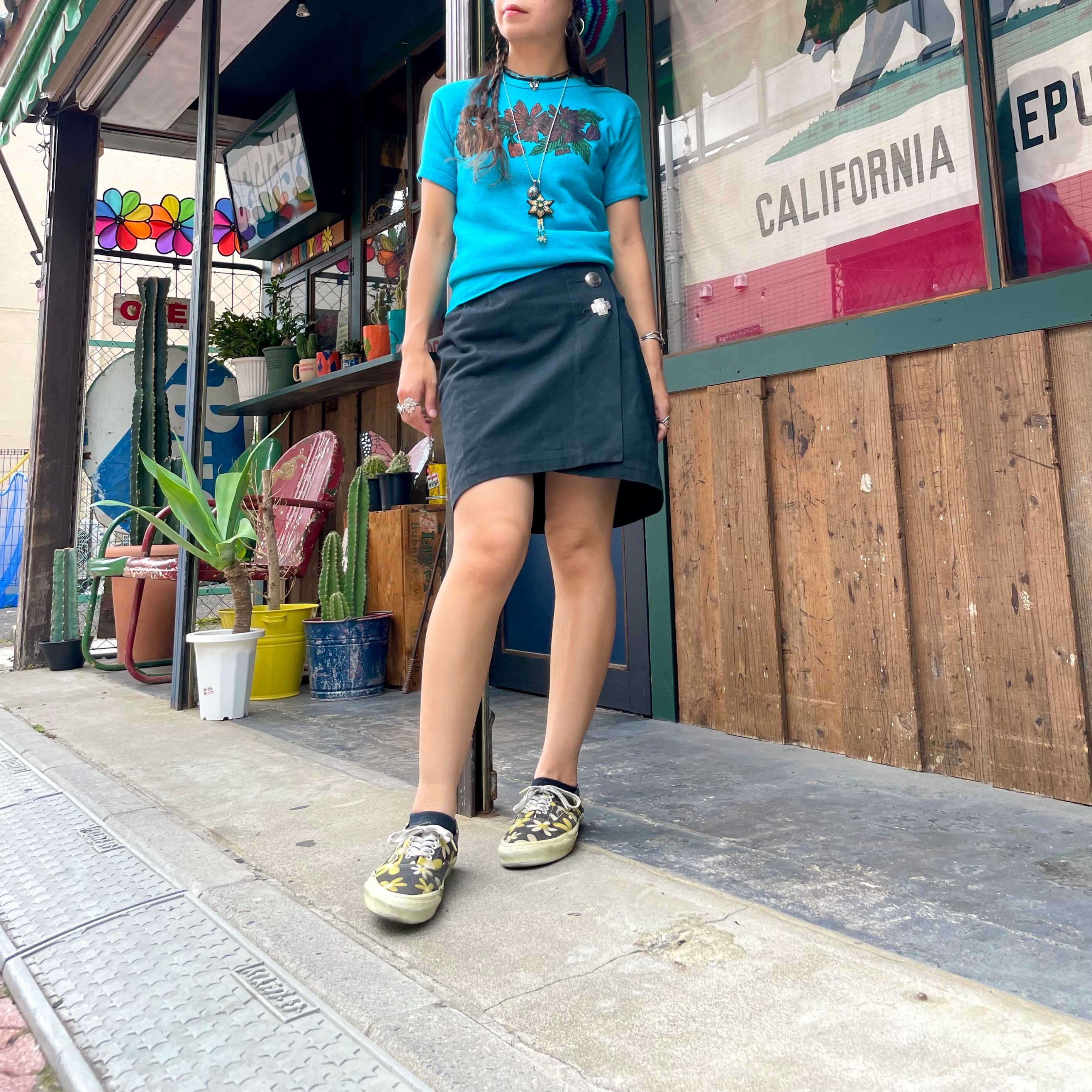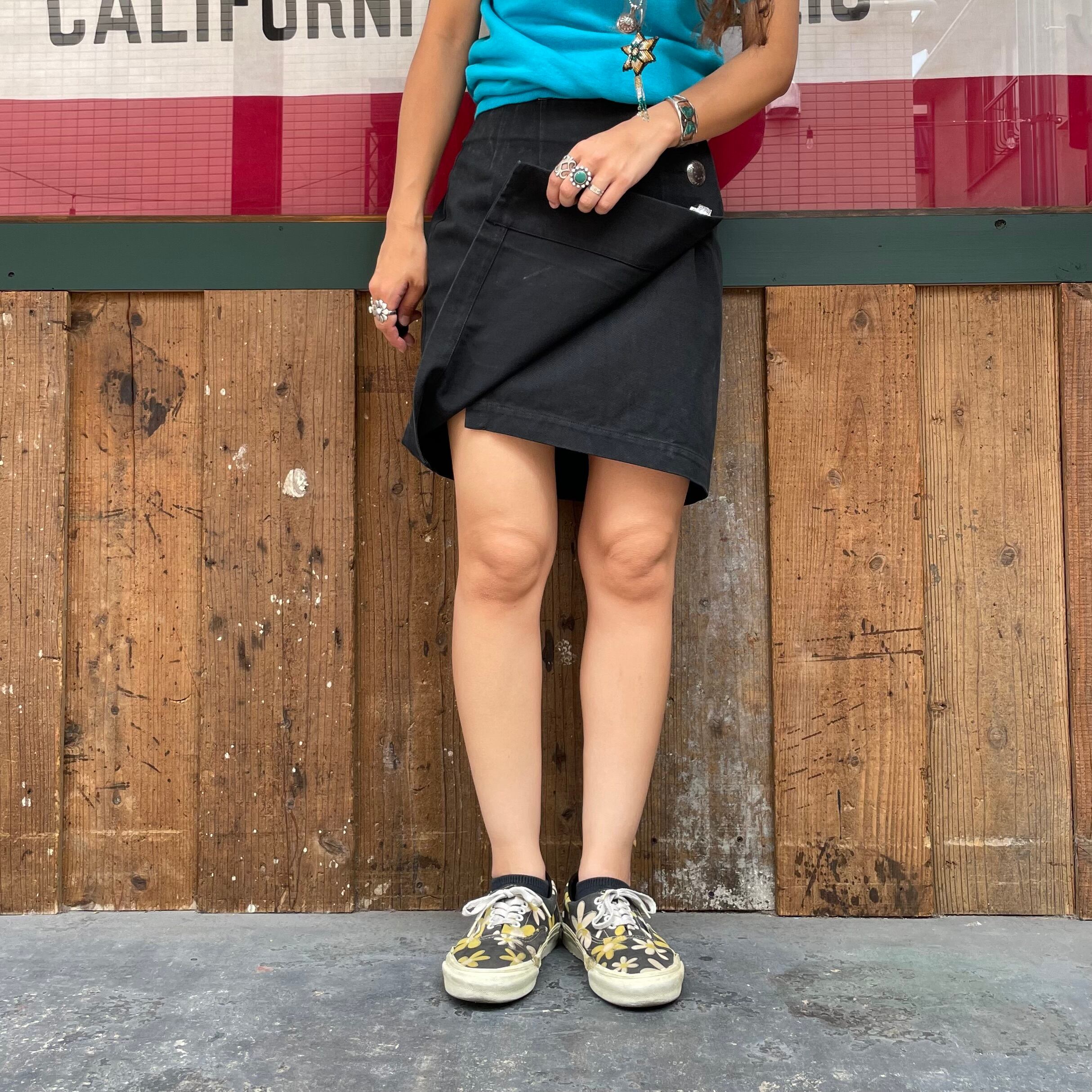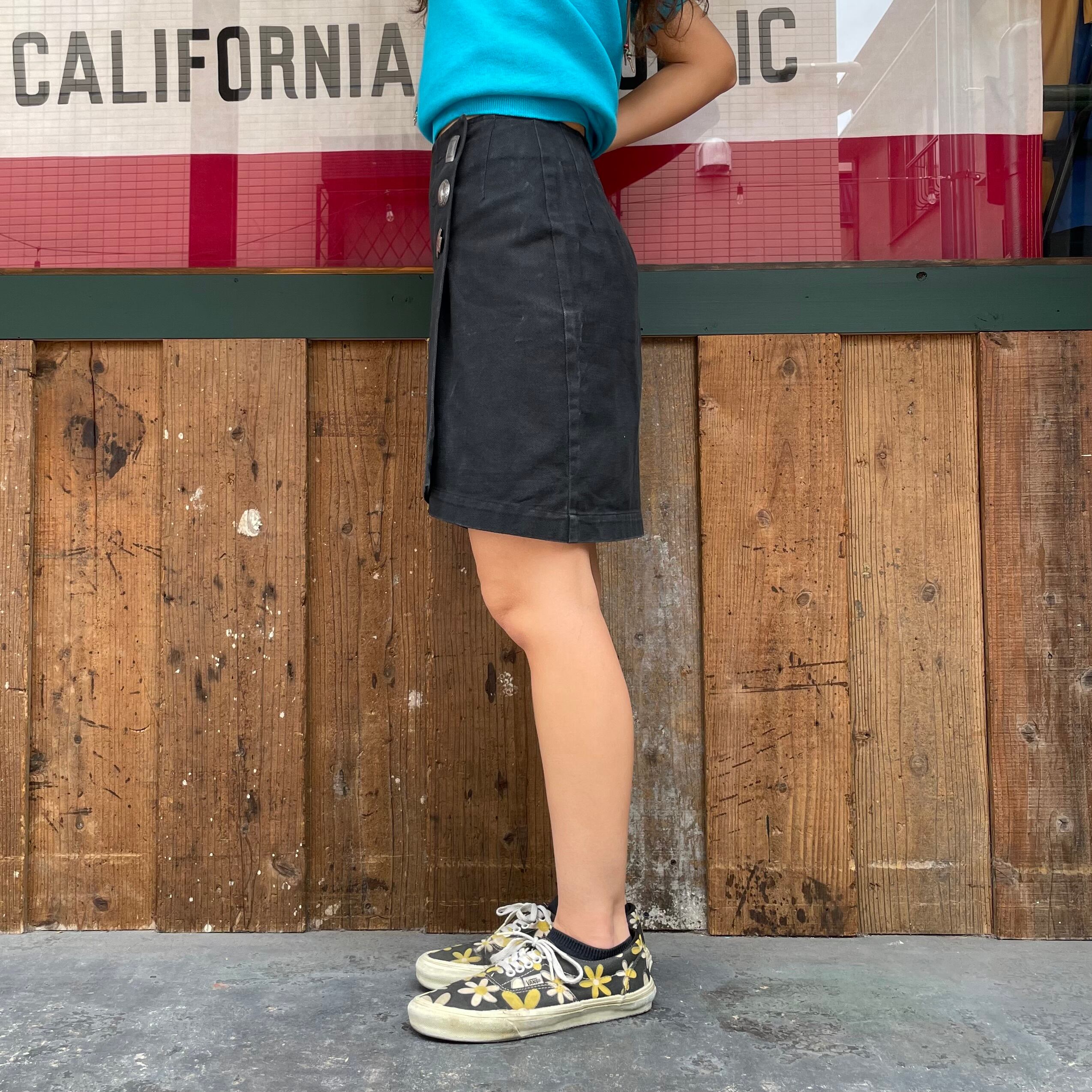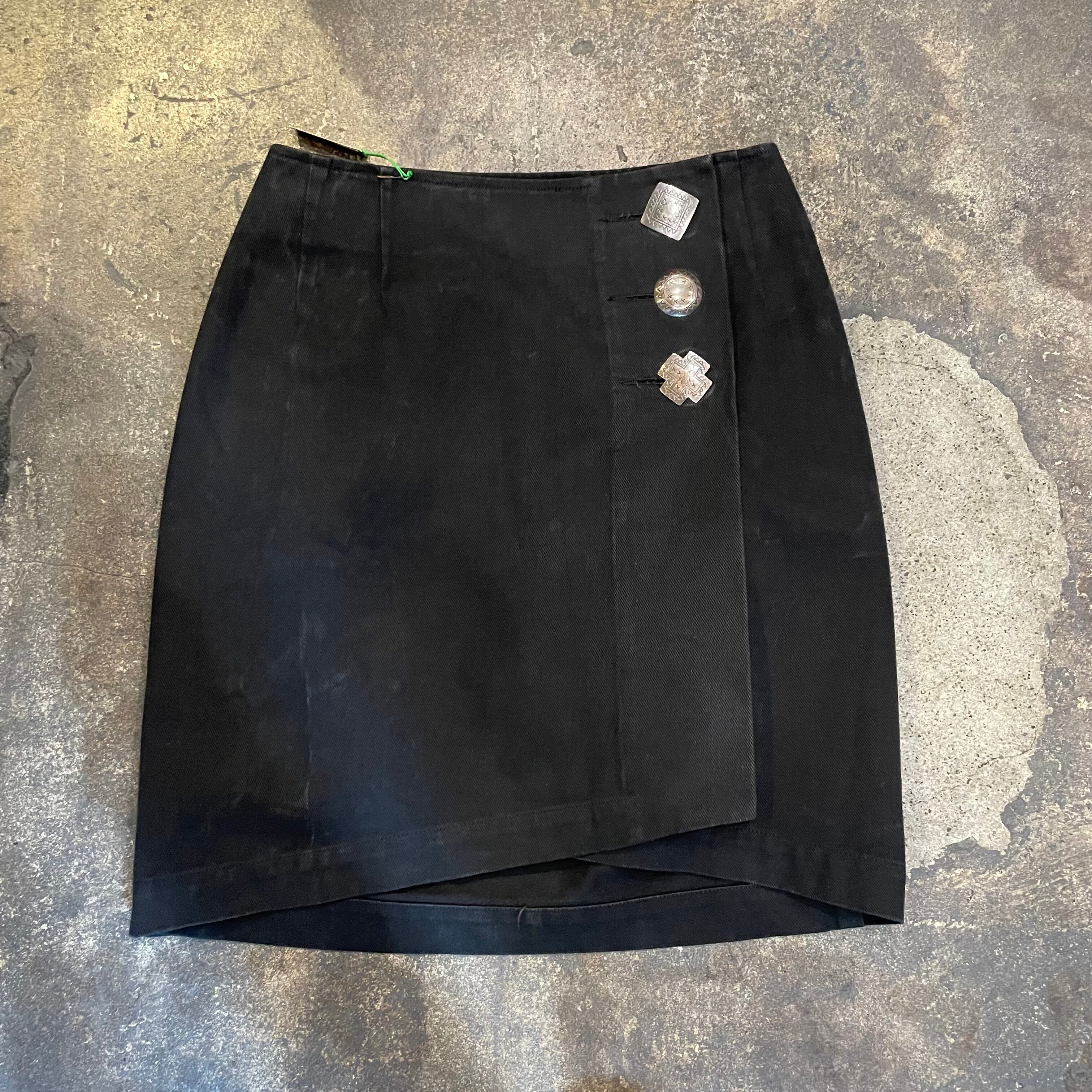 真っ黒に大きめのコンチョボタンがキラッとかわいい巻きスカートです。