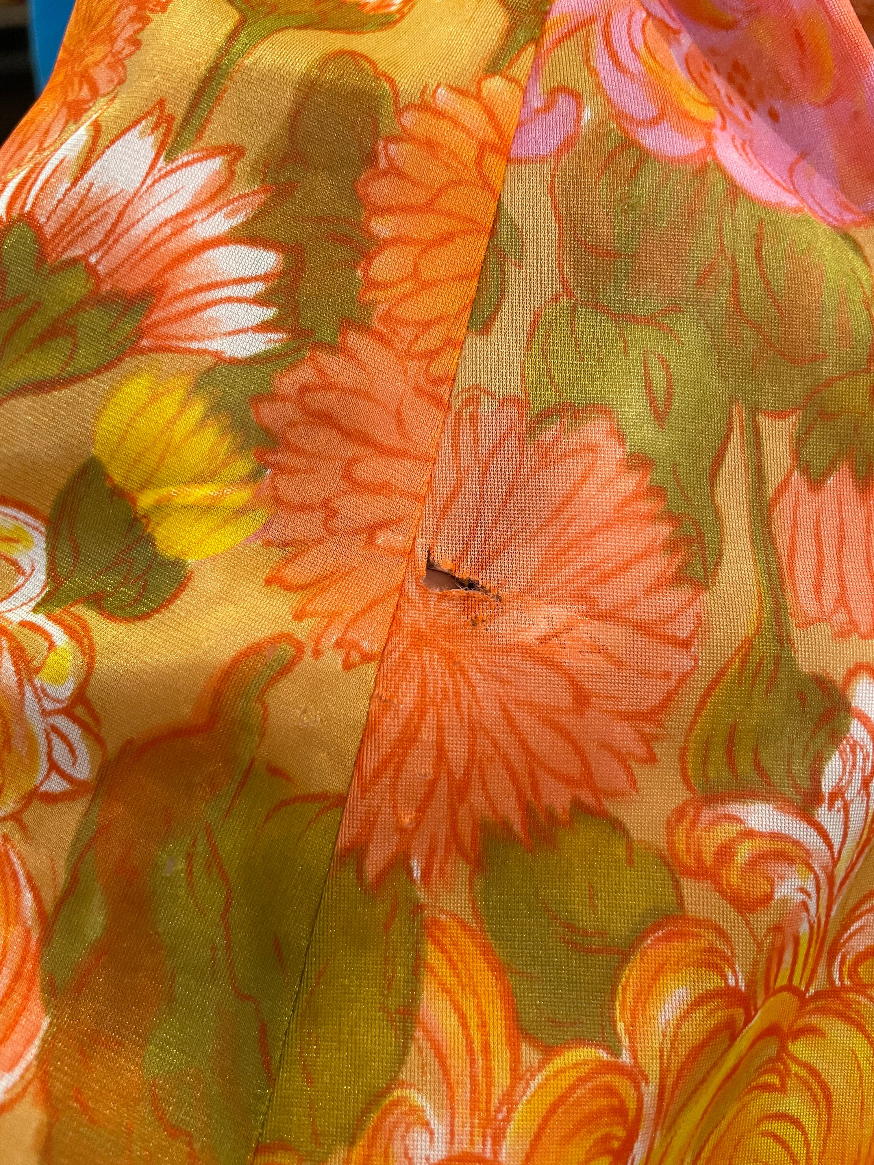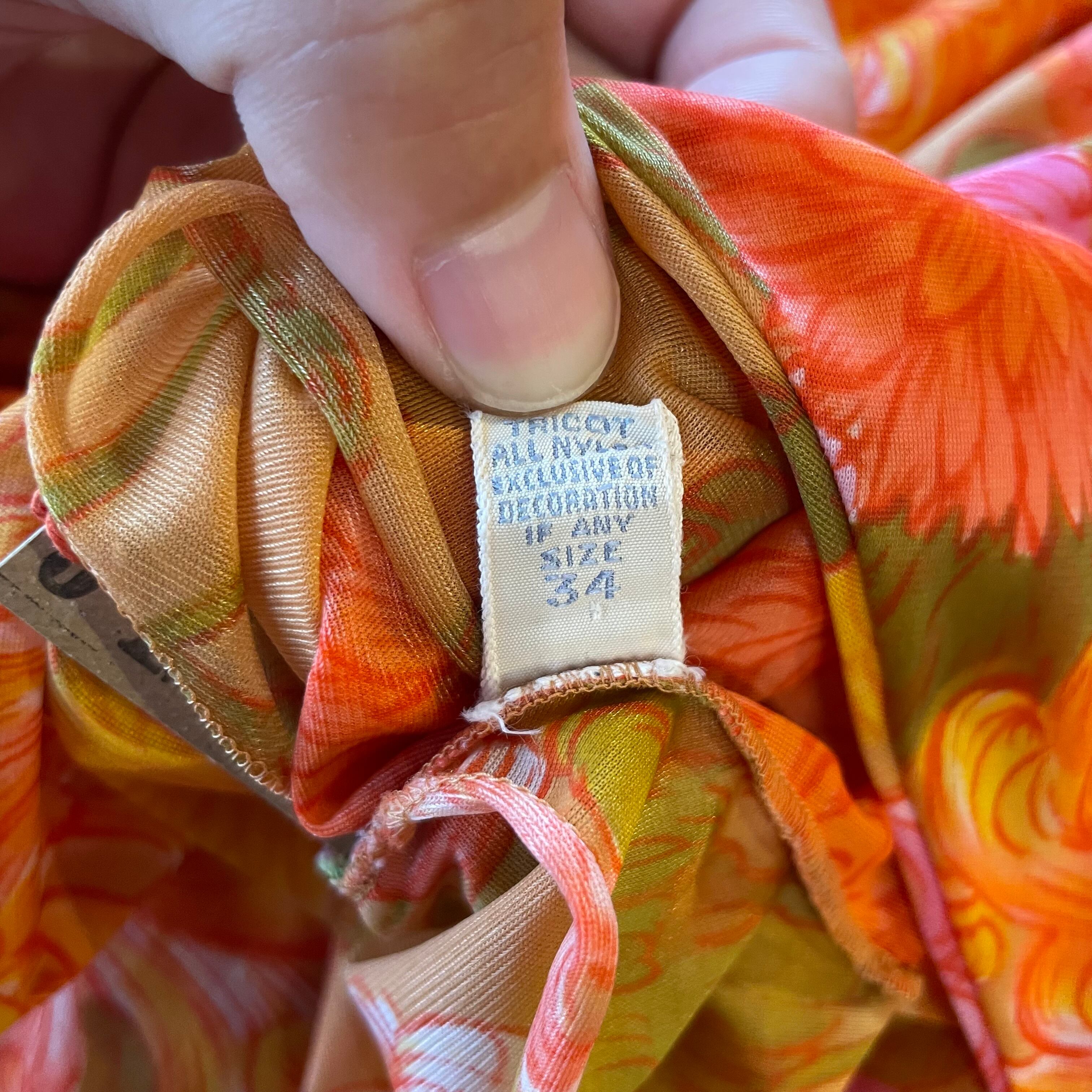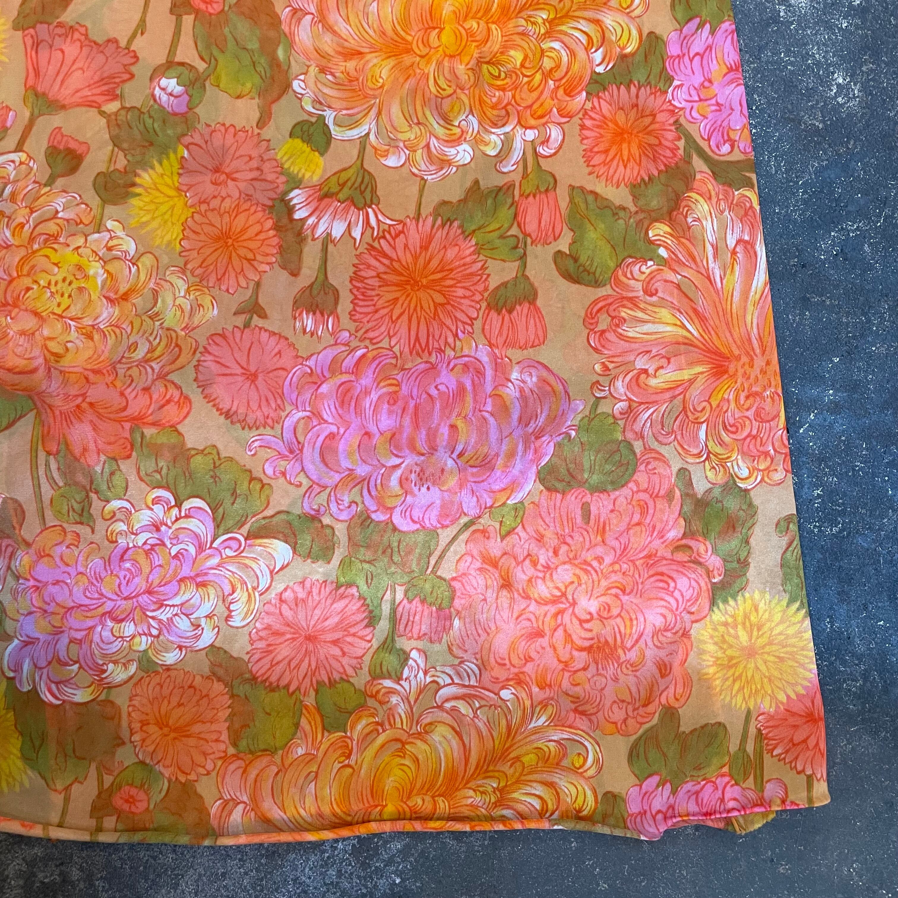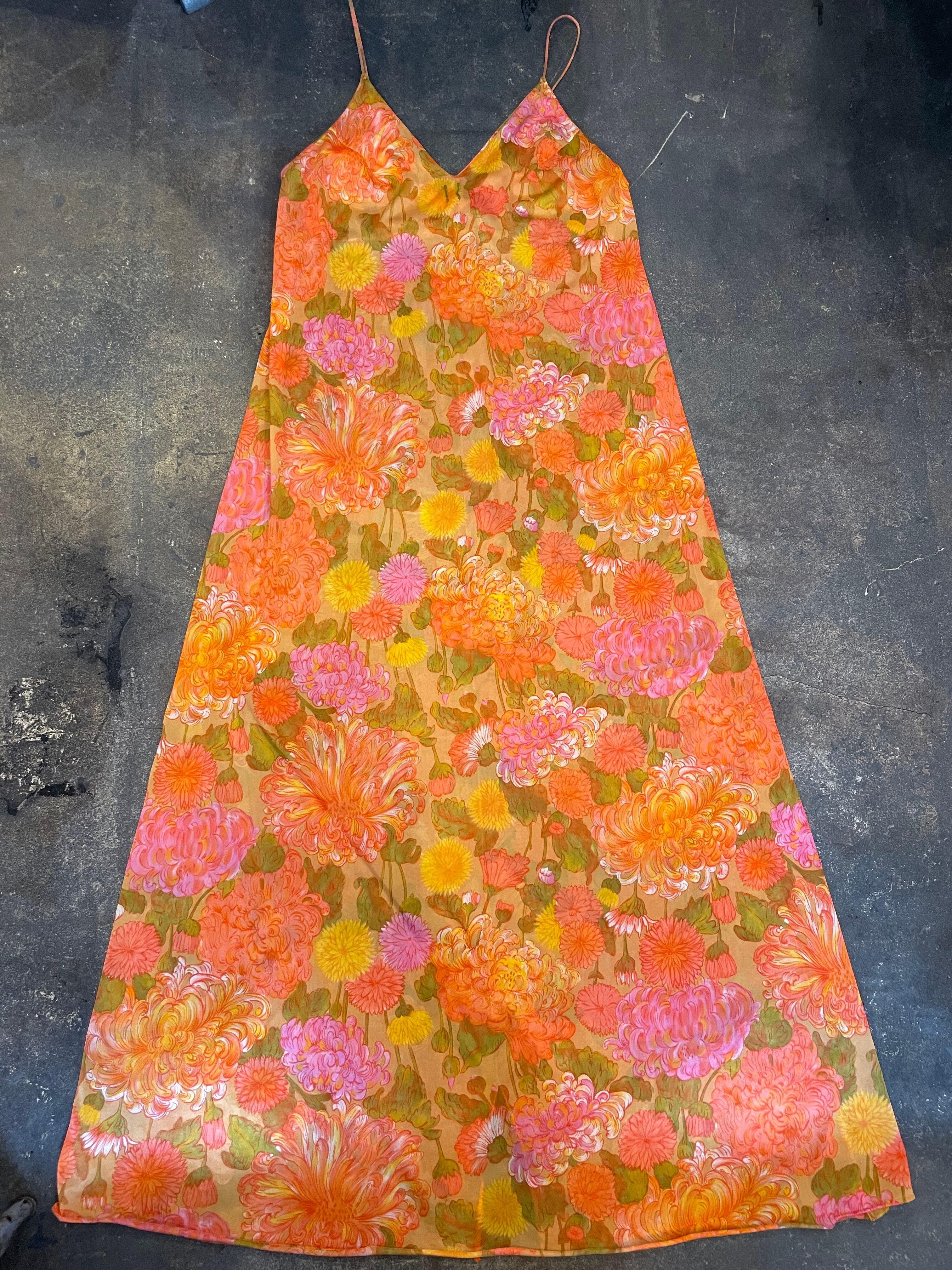 オレンジピンクの花柄がかわいいシースルーのキャミソールワンピースです。