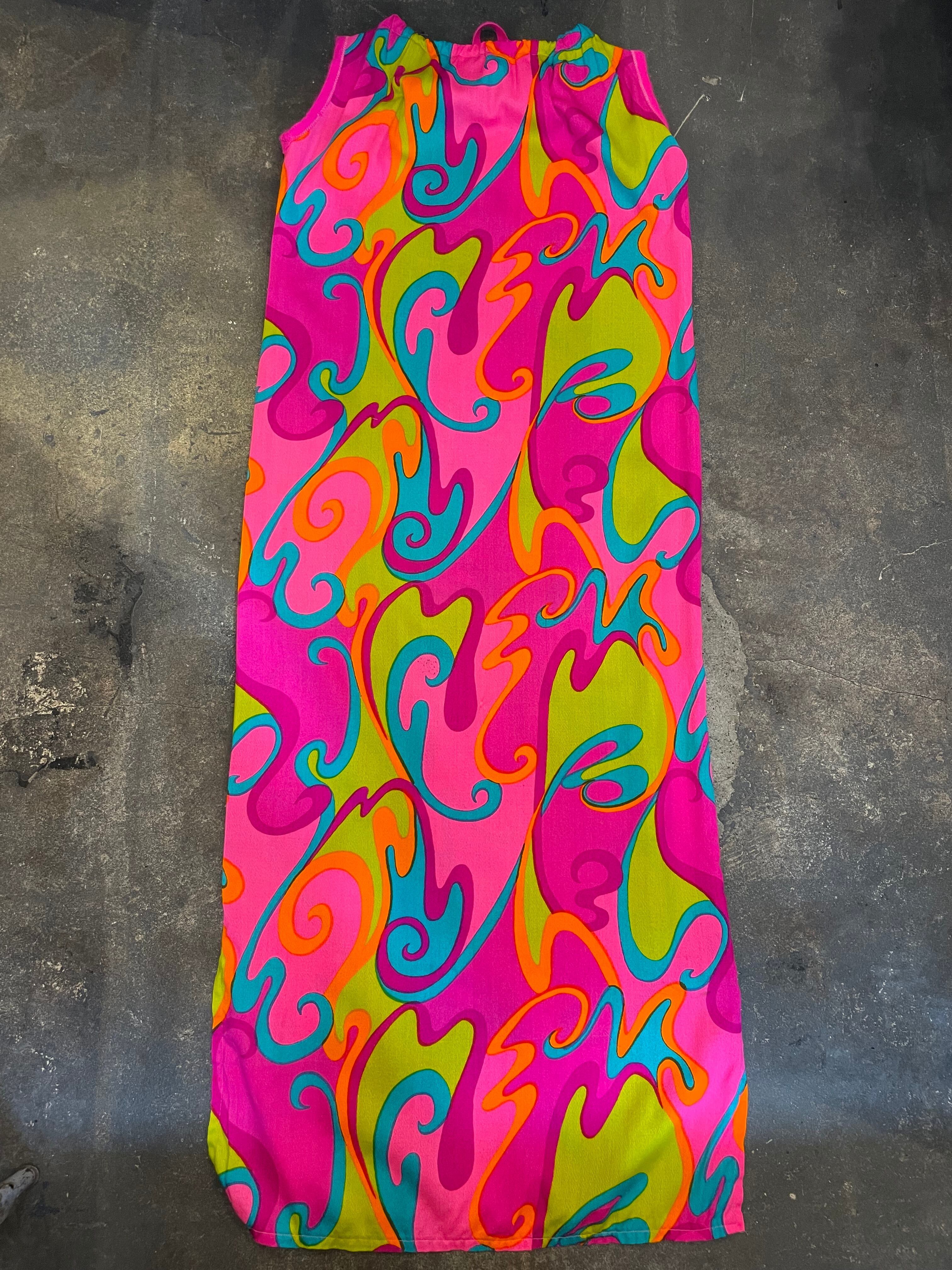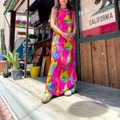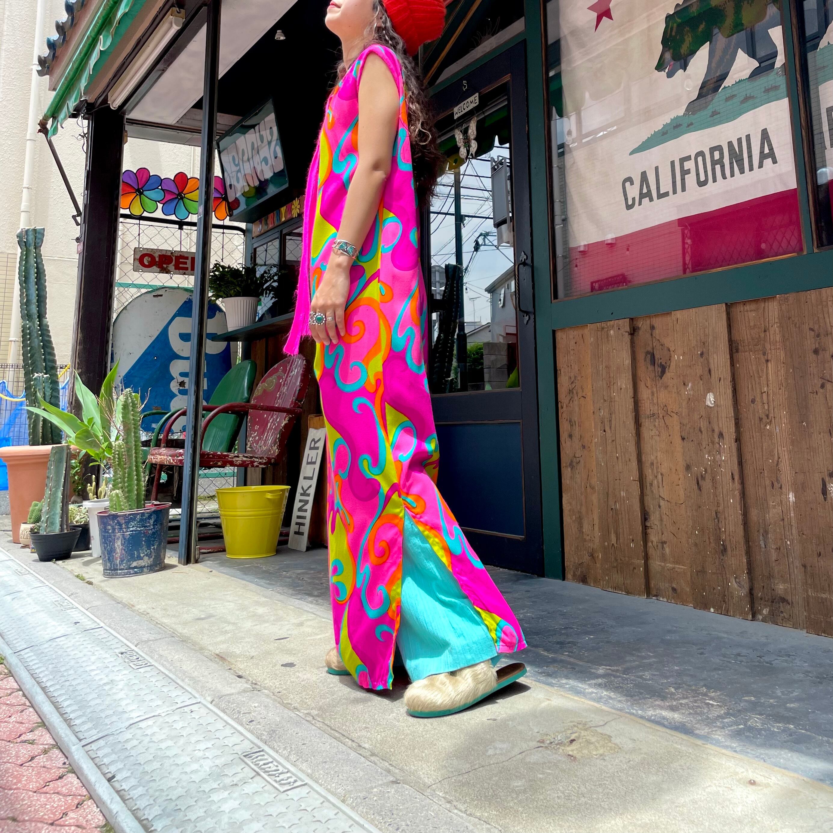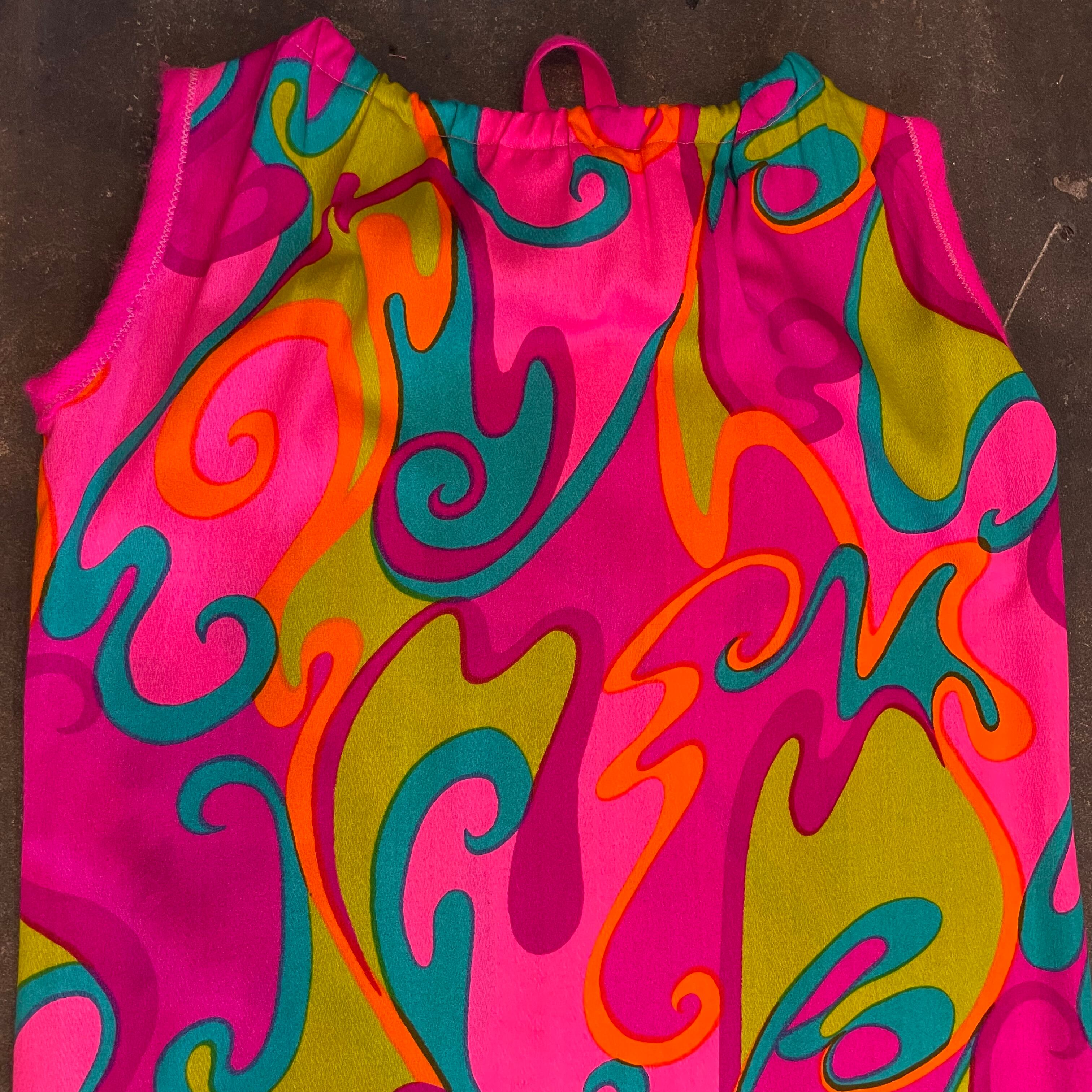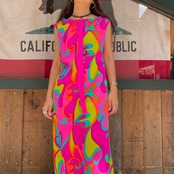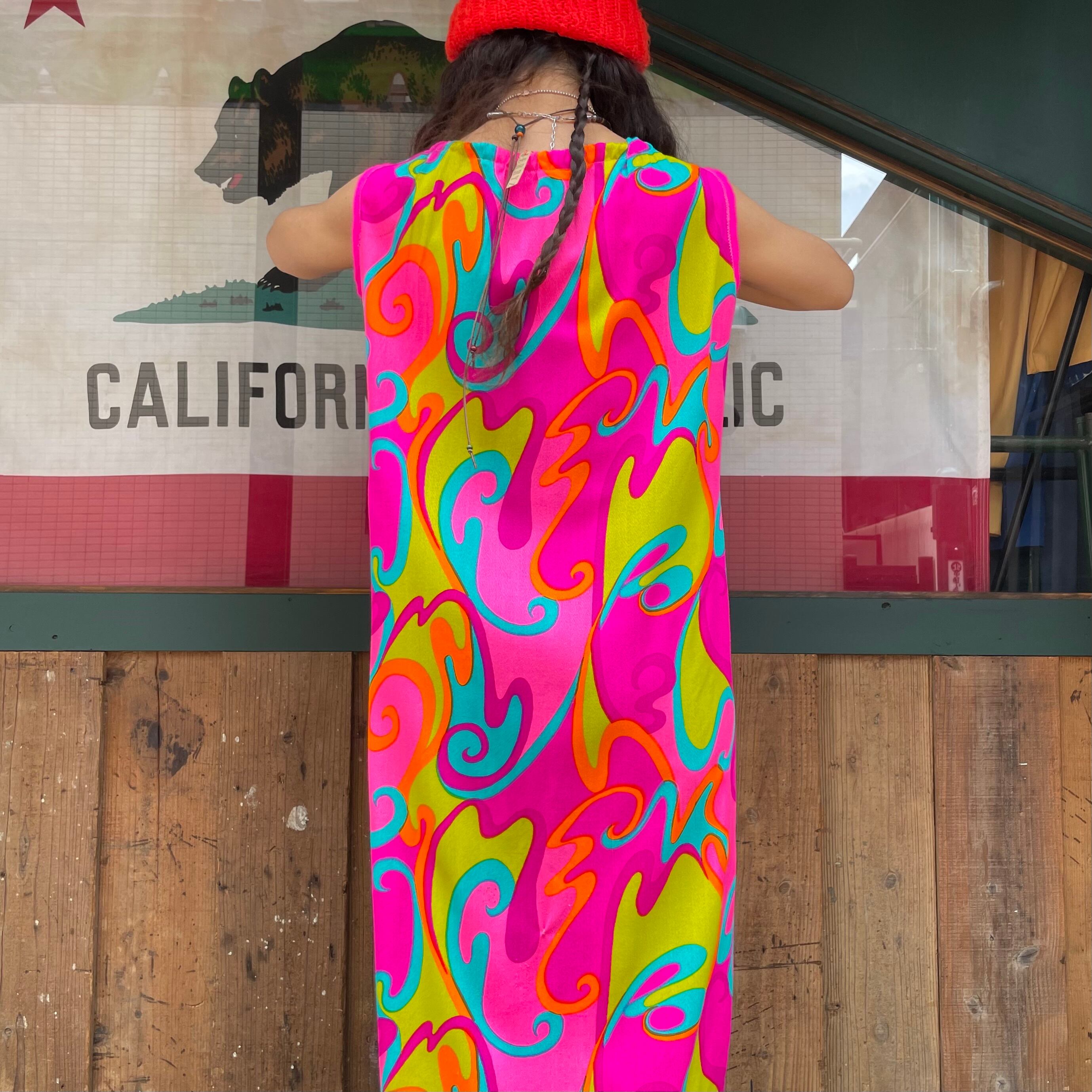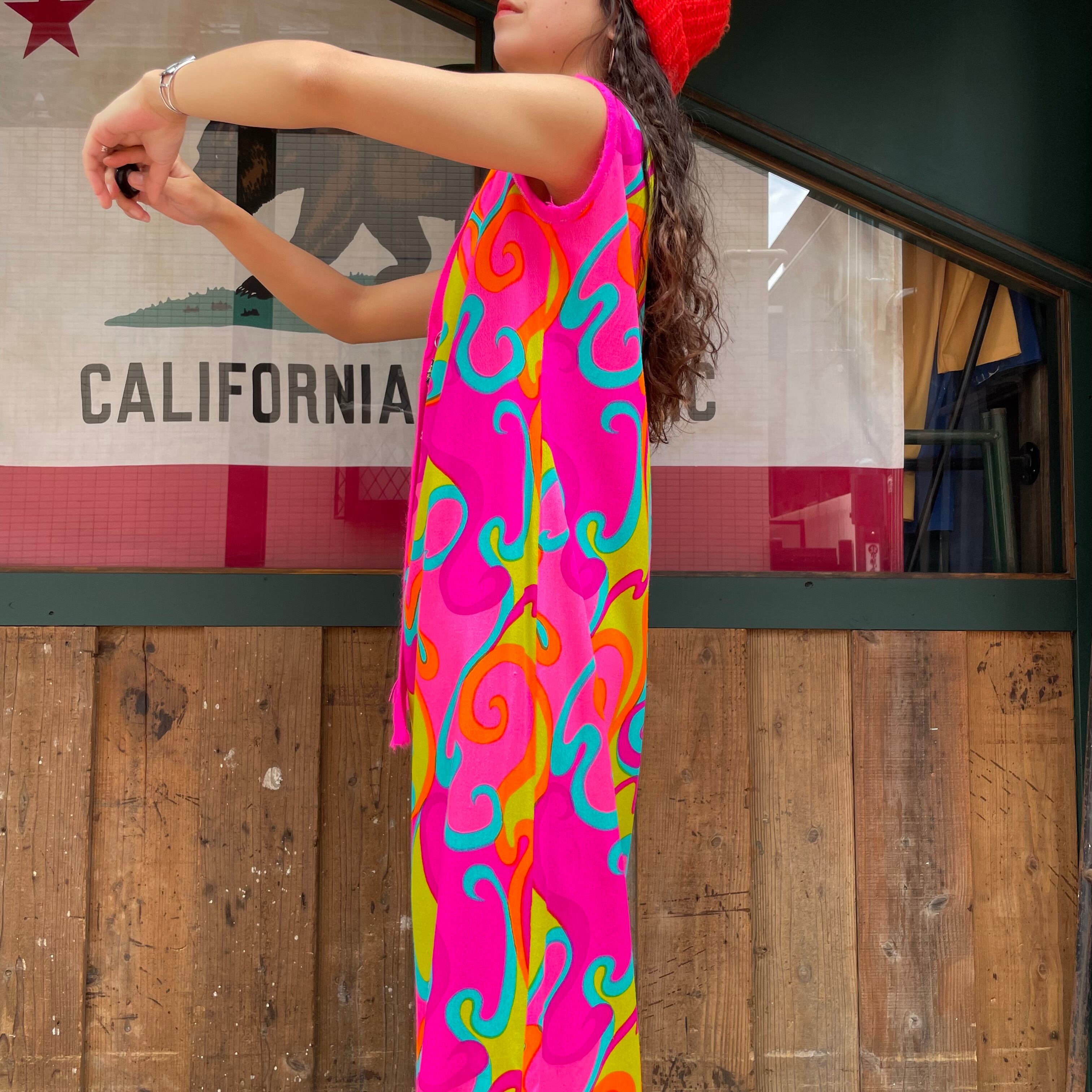 ピンクベースにサイケデリックなうねうね模様がとてもかわいいノースリーブのワンピースです。