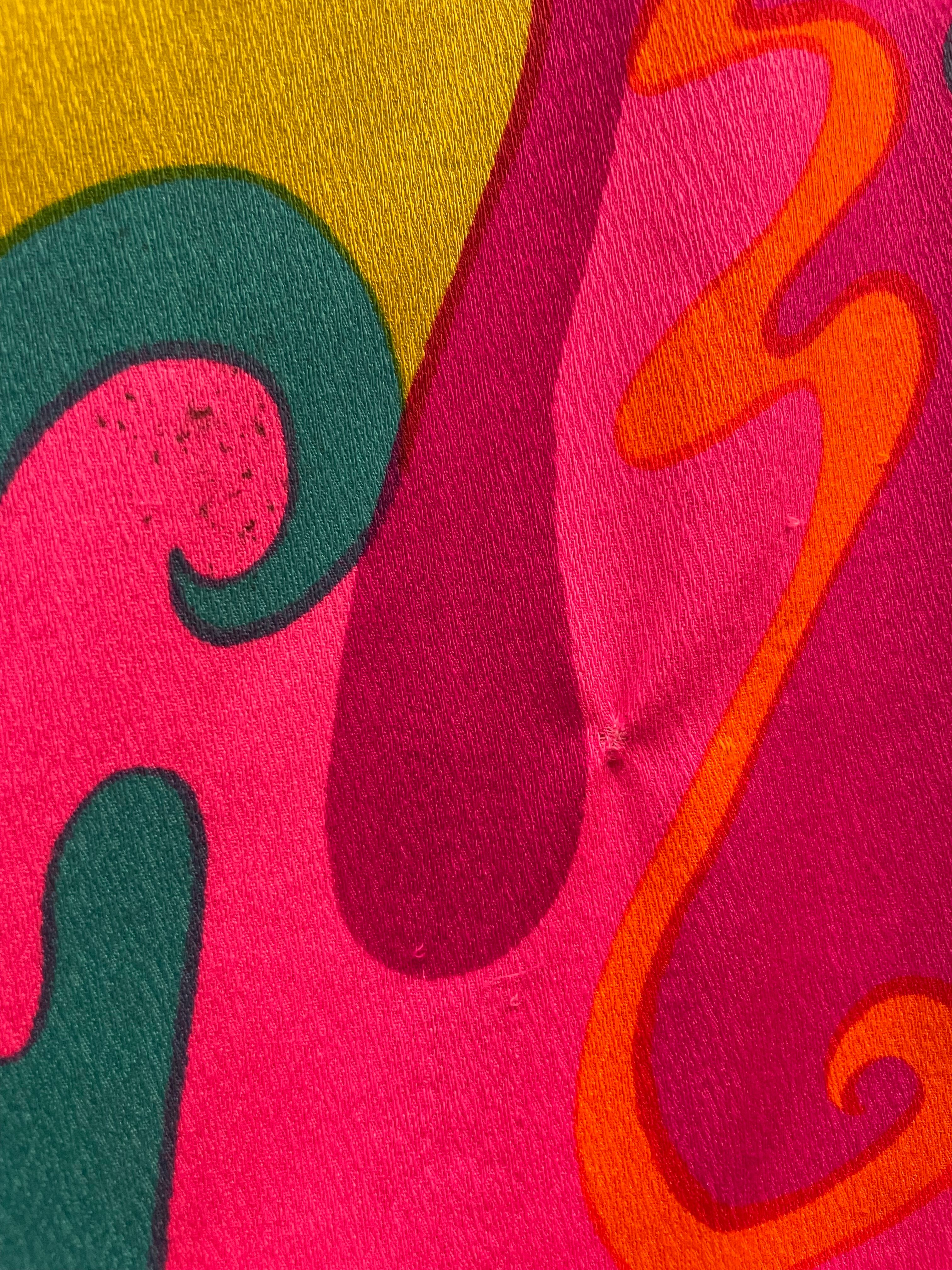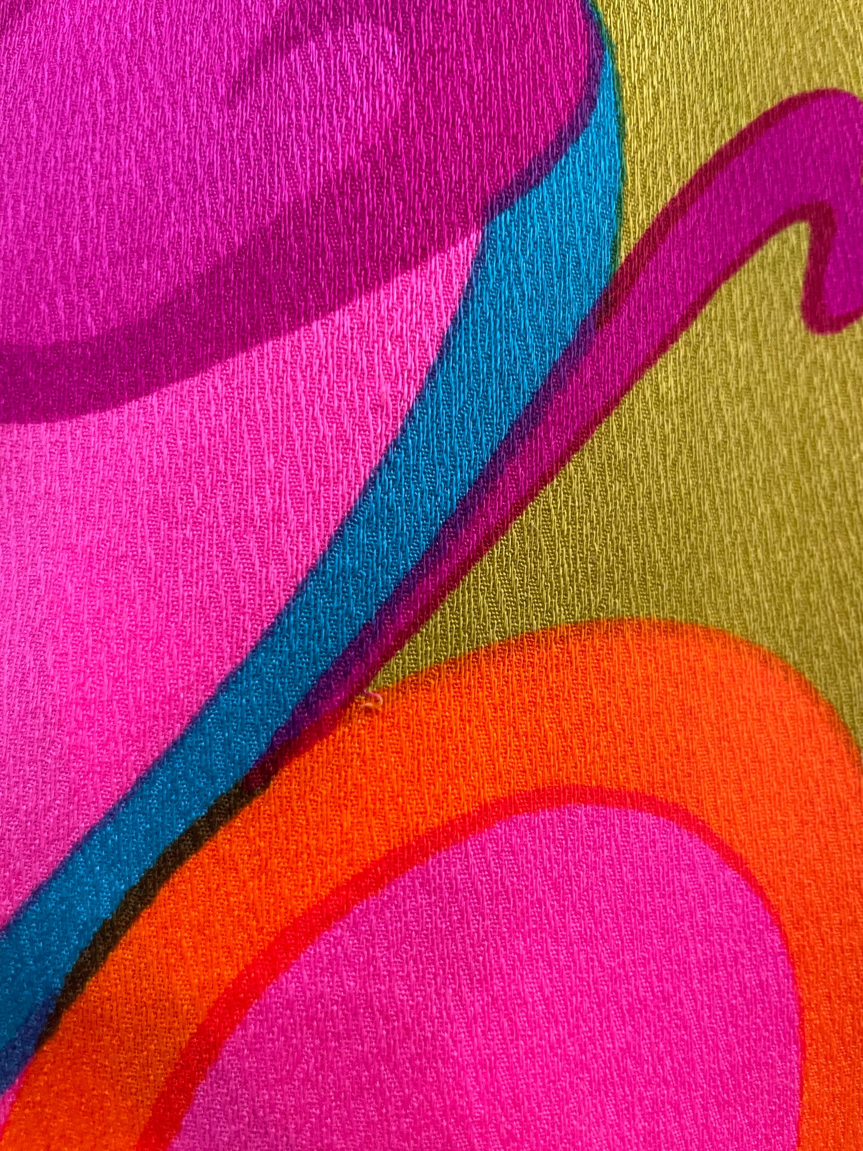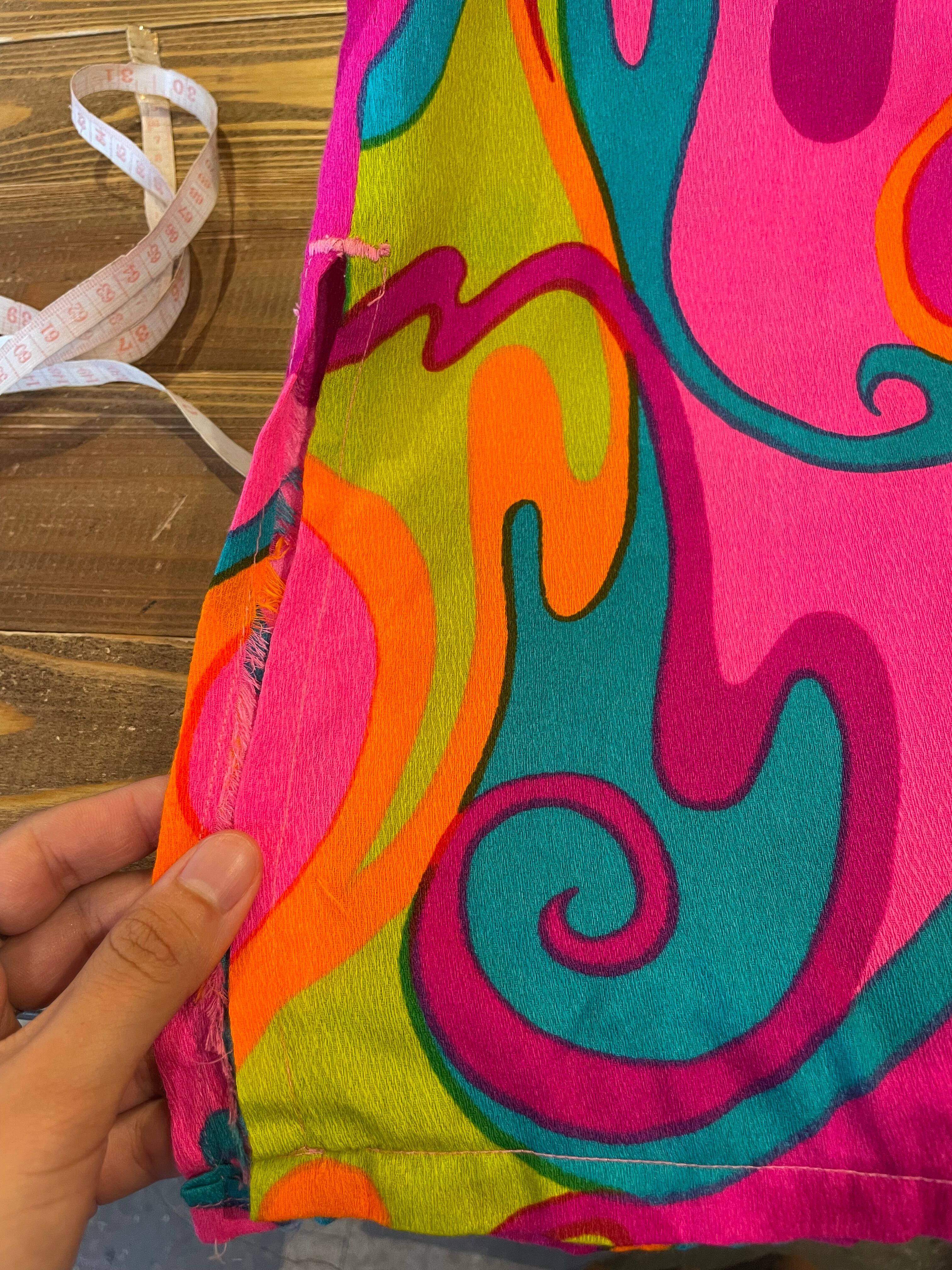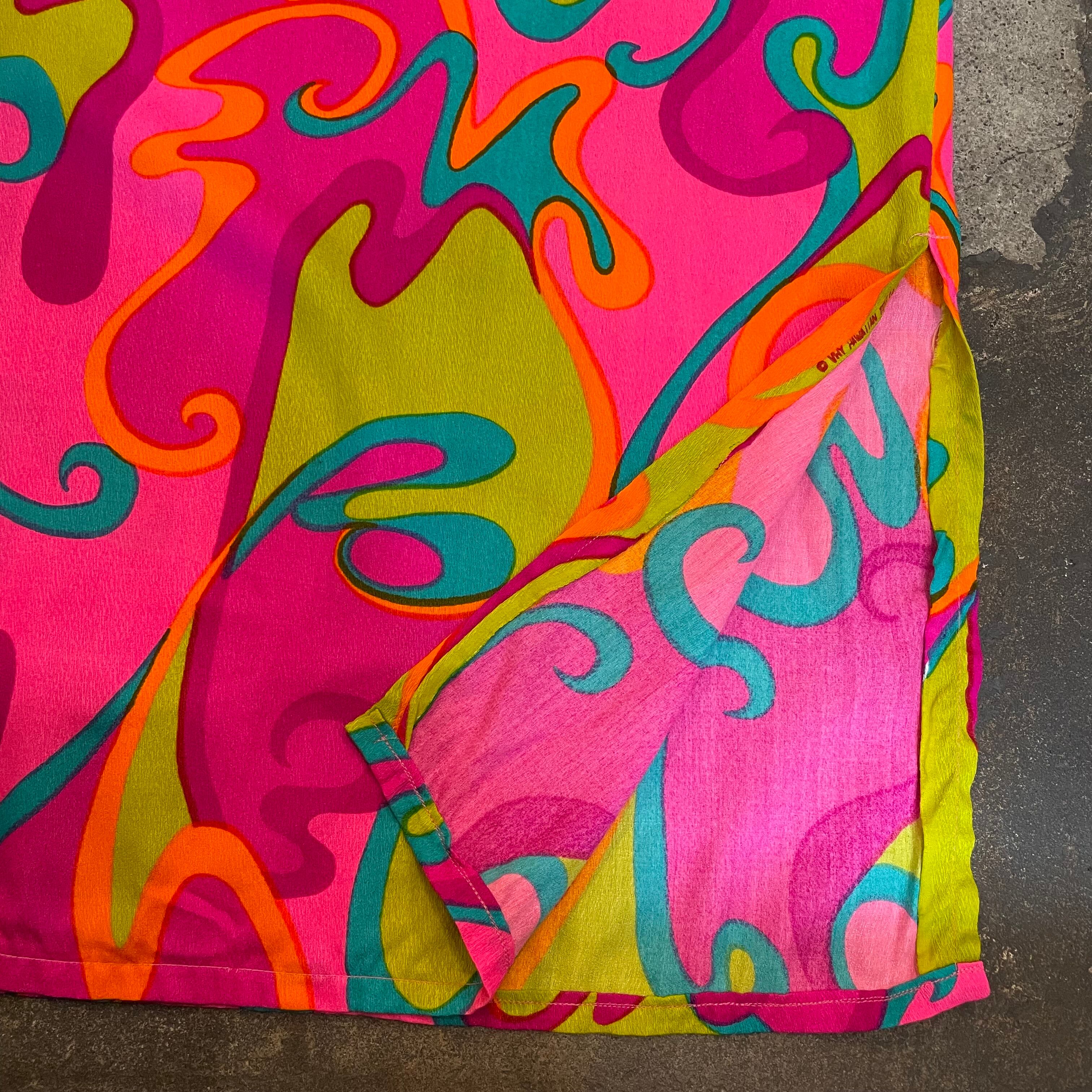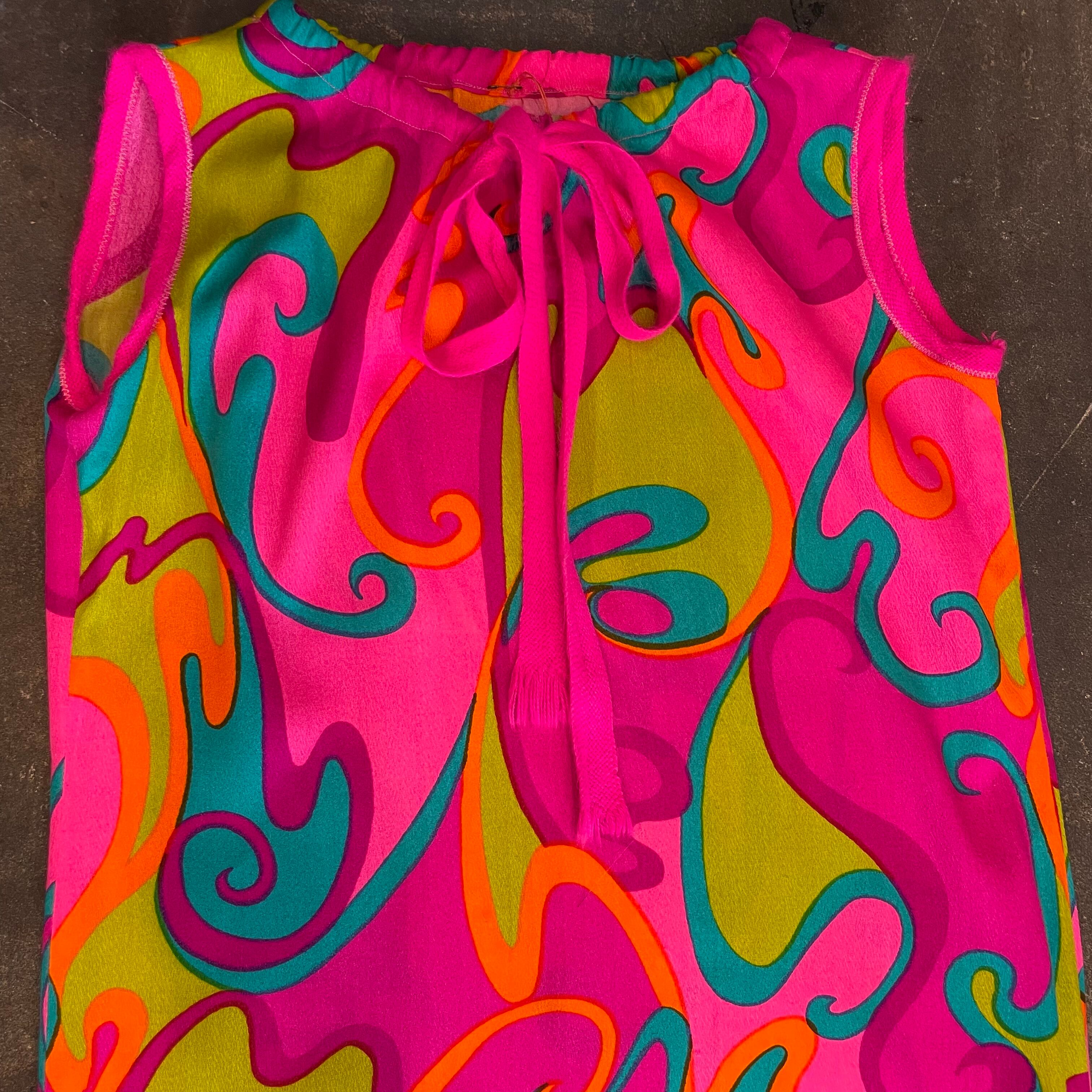 ピンクベースにサイケデリックなうねうね模様がとてもかわいいノースリーブのワンピースです。