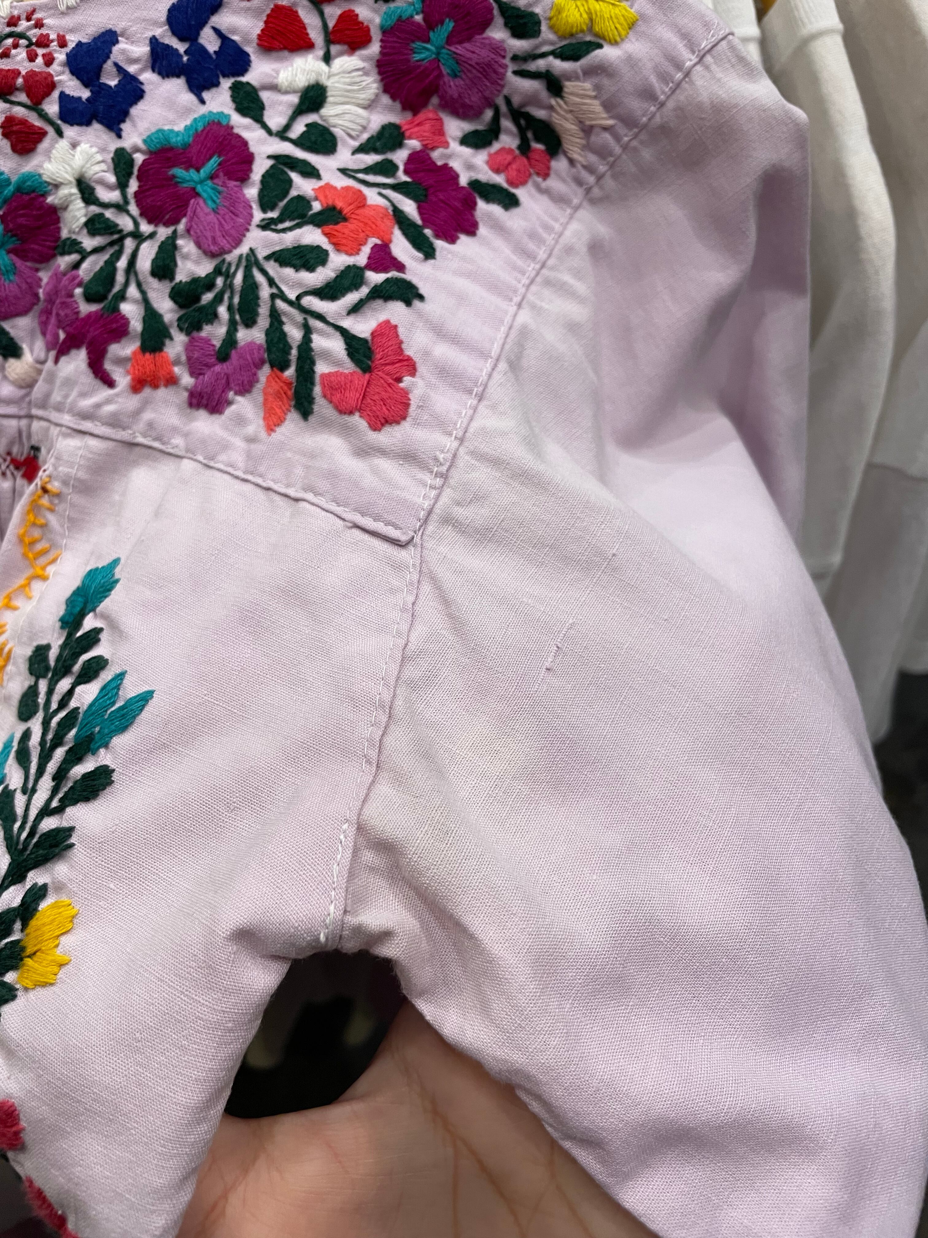 ラベンダーカラーにサンアントニーノ刺繍が華やかでかわいい長袖のチュニックです。