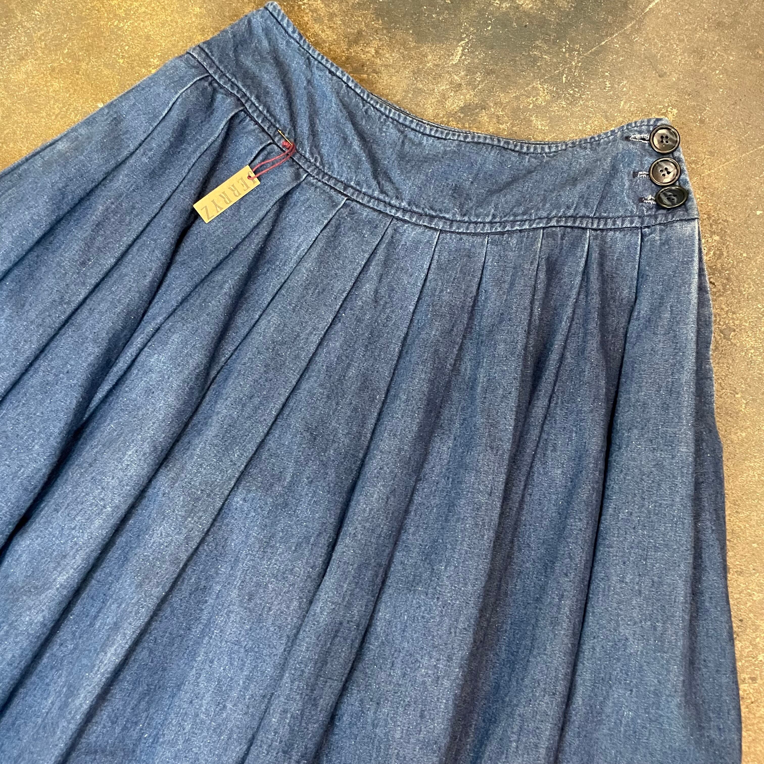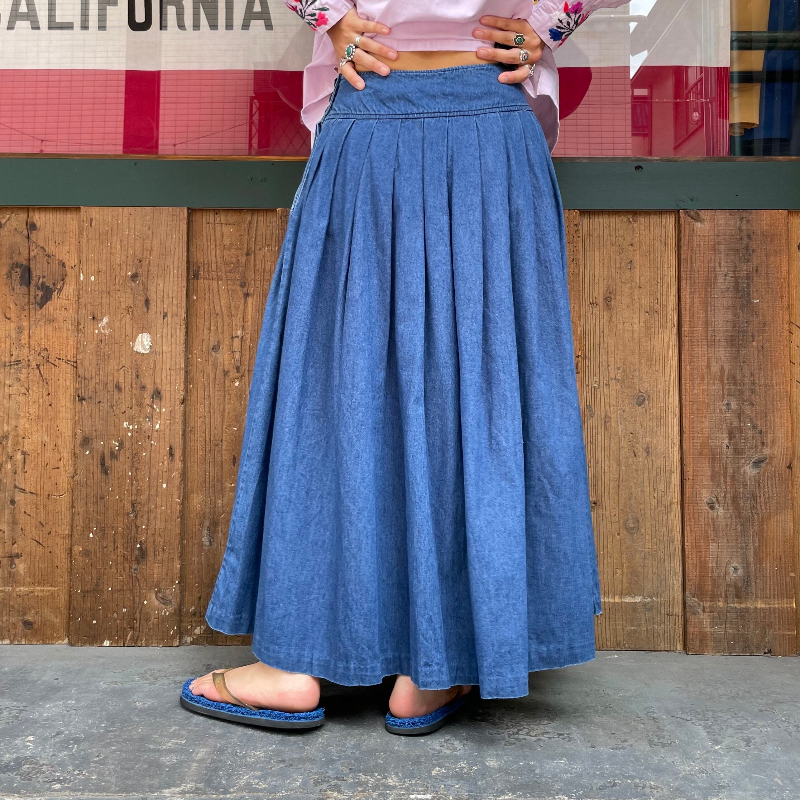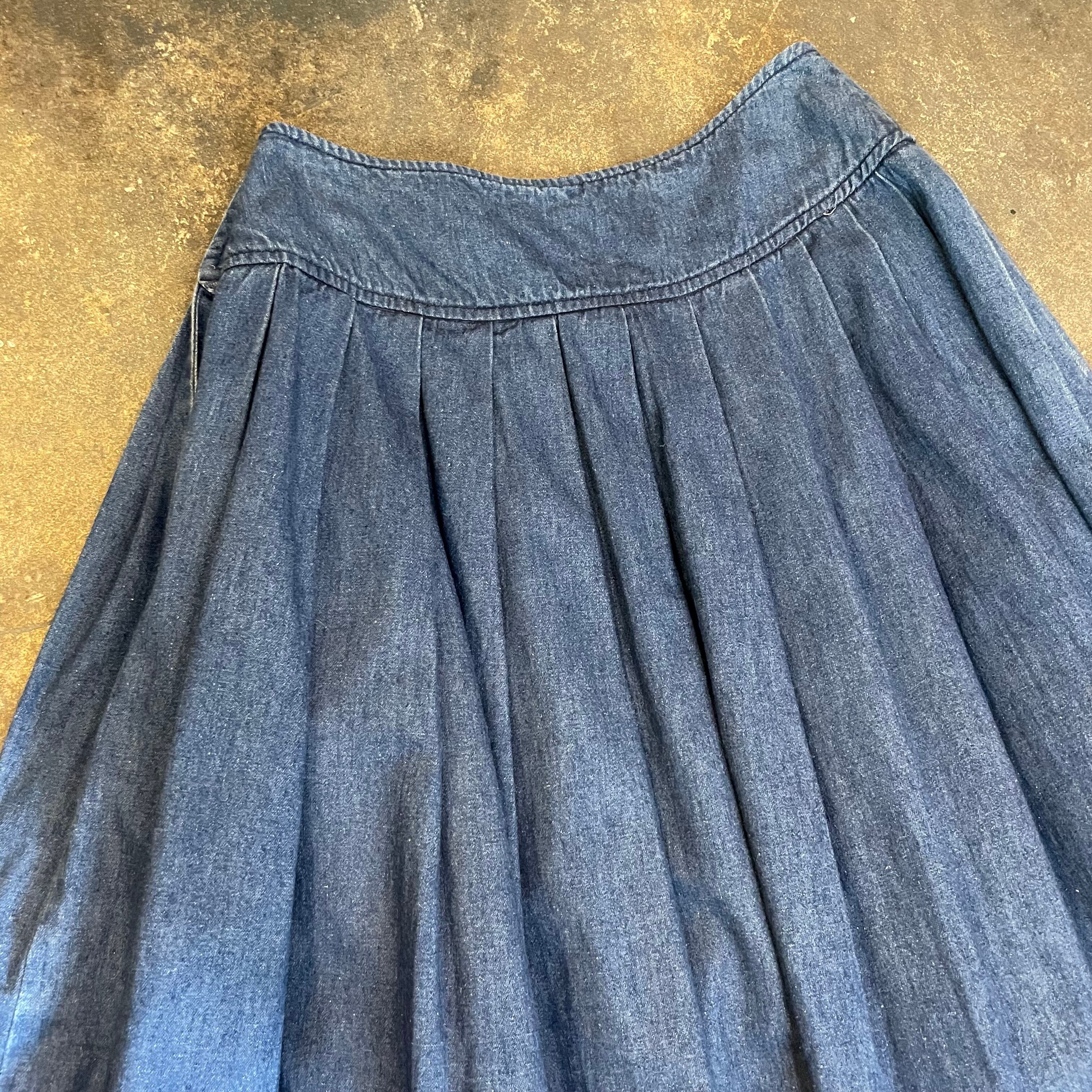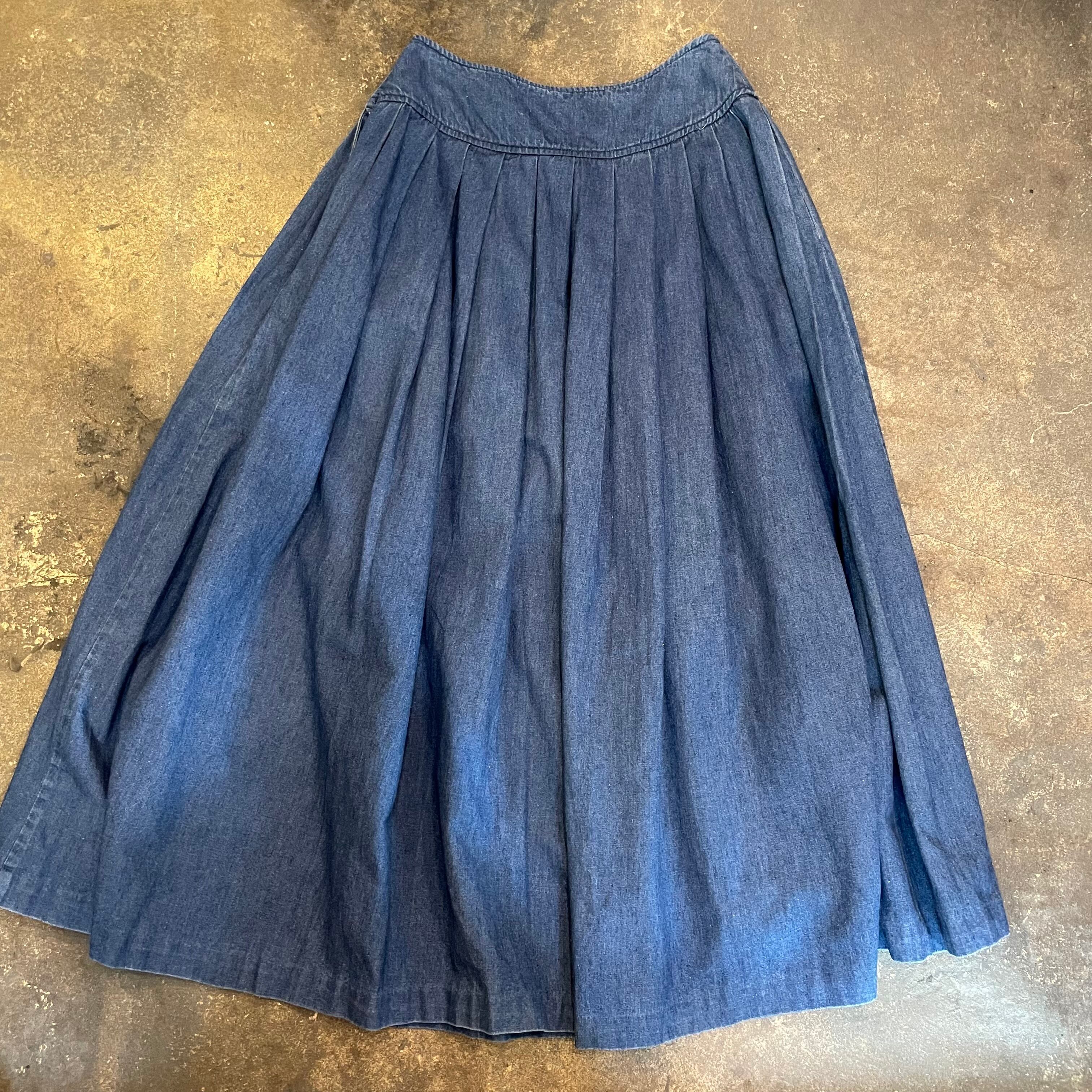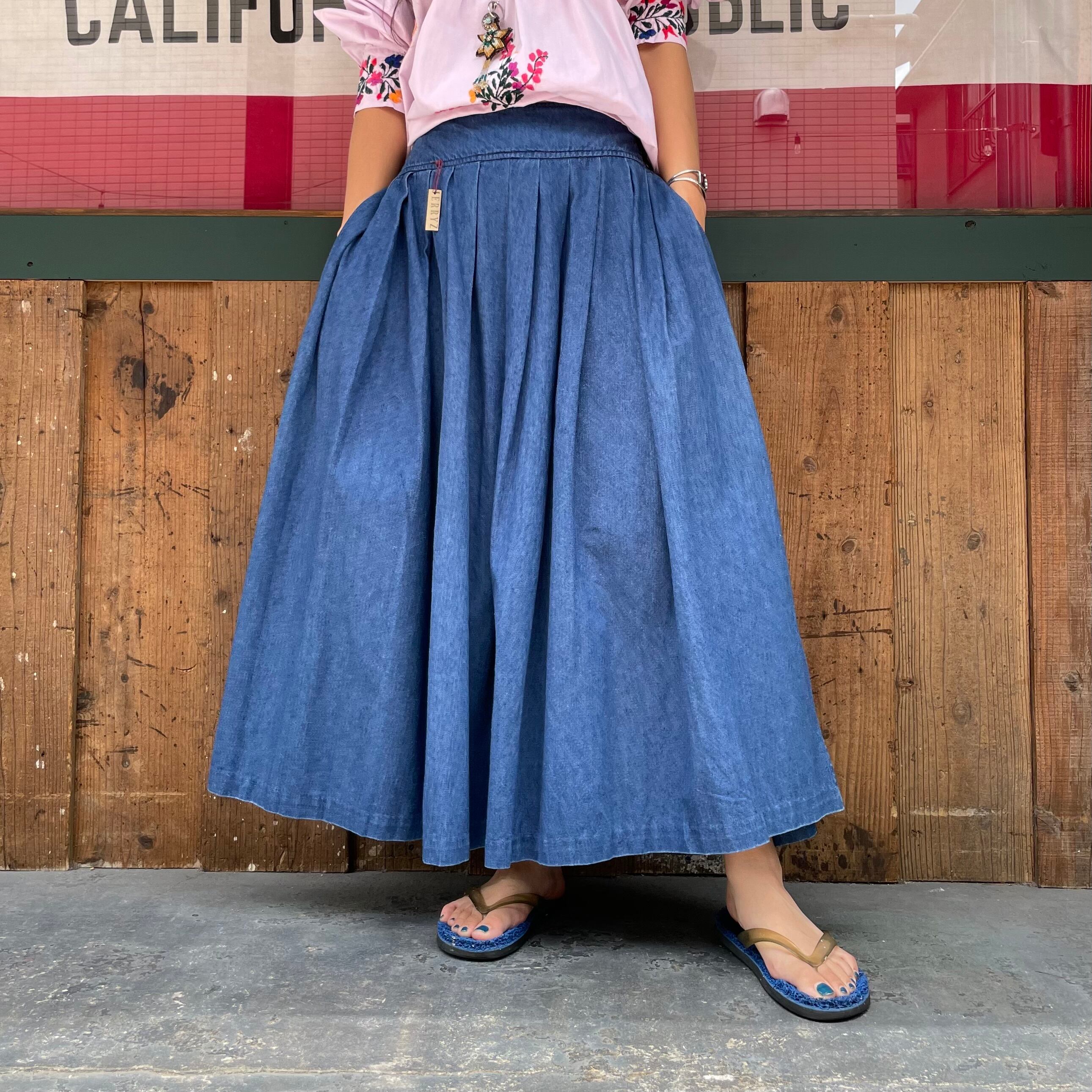 プリーツからのフレアでボリューム感がかわいいデニムスカートです。