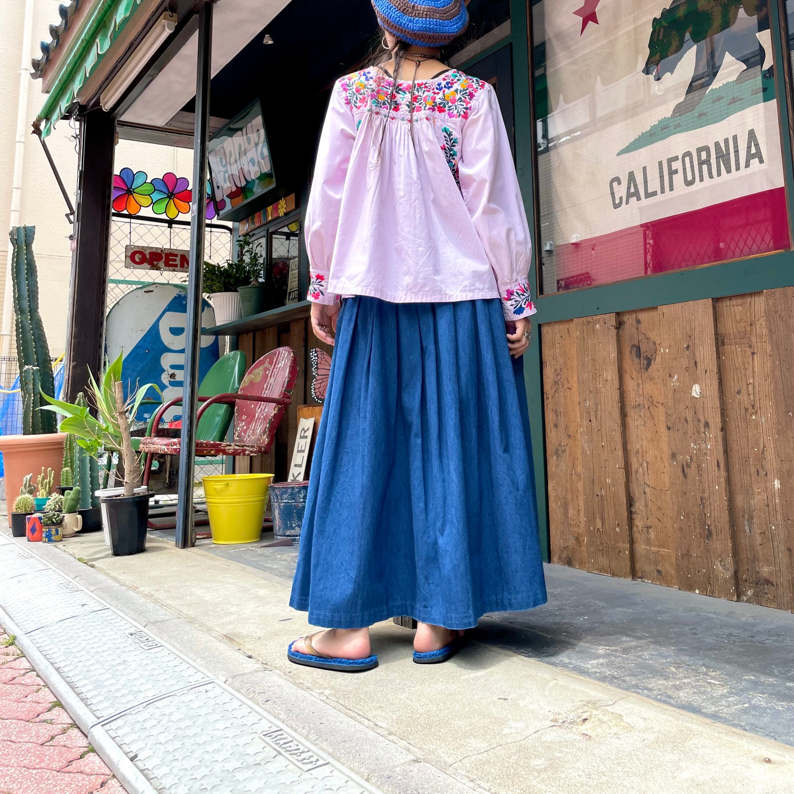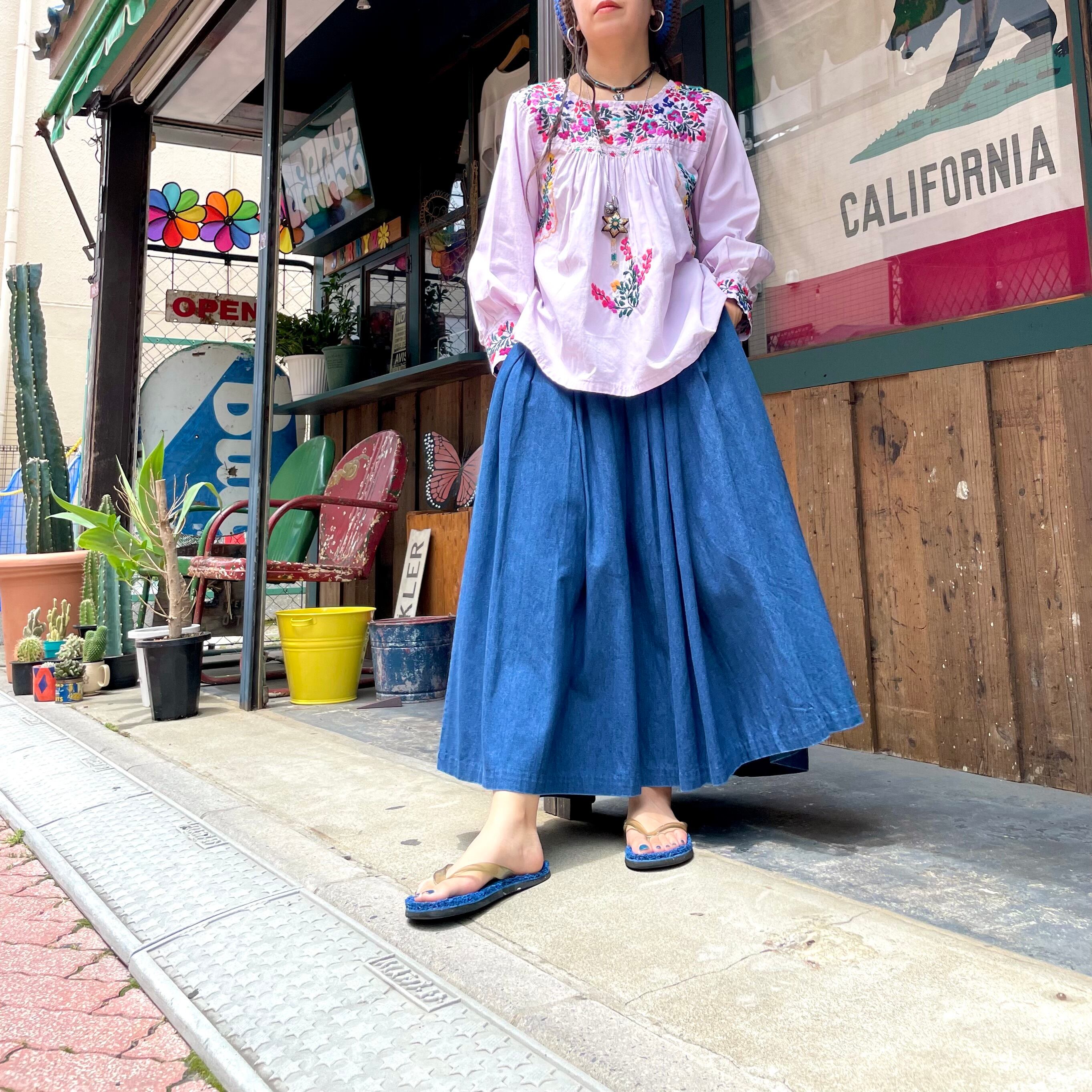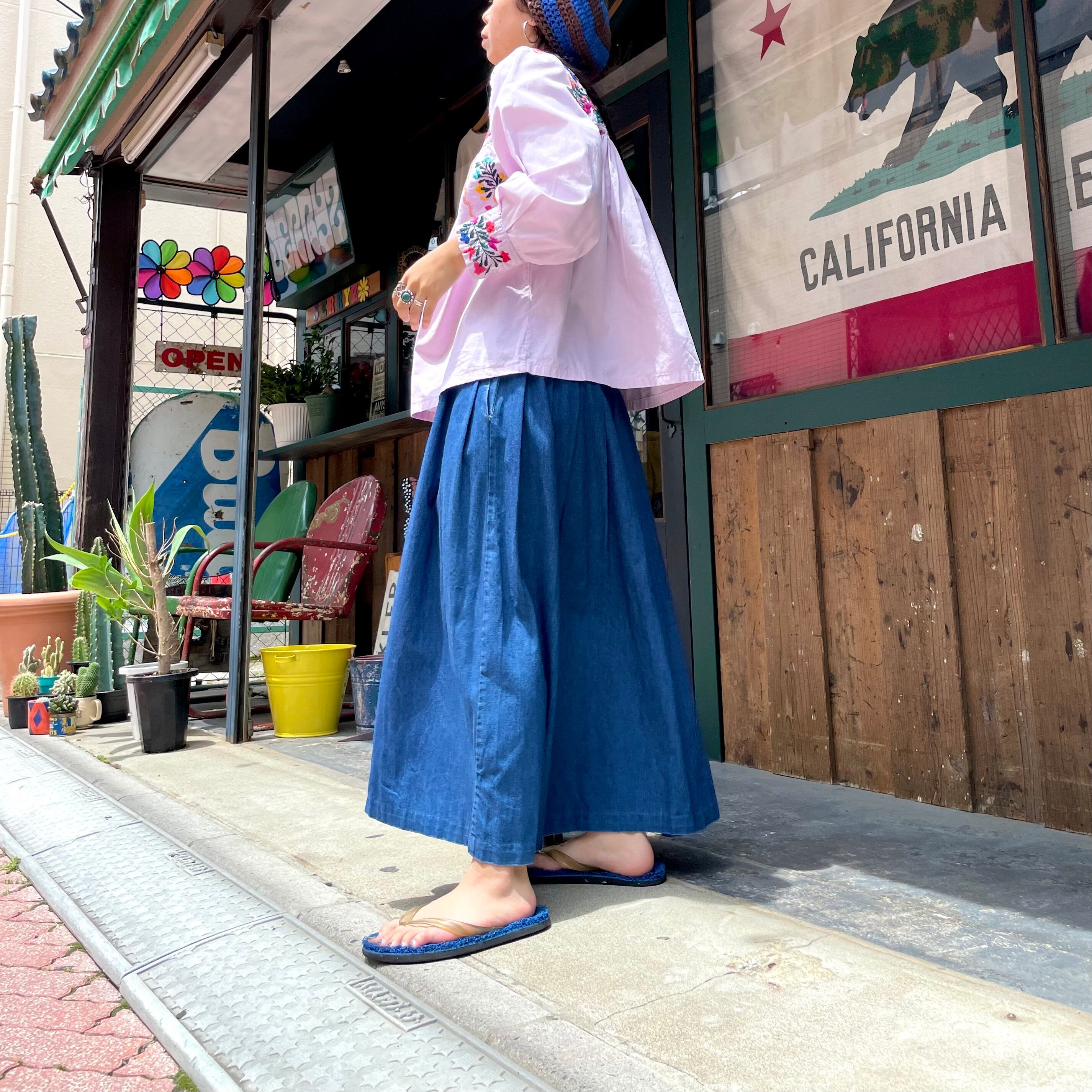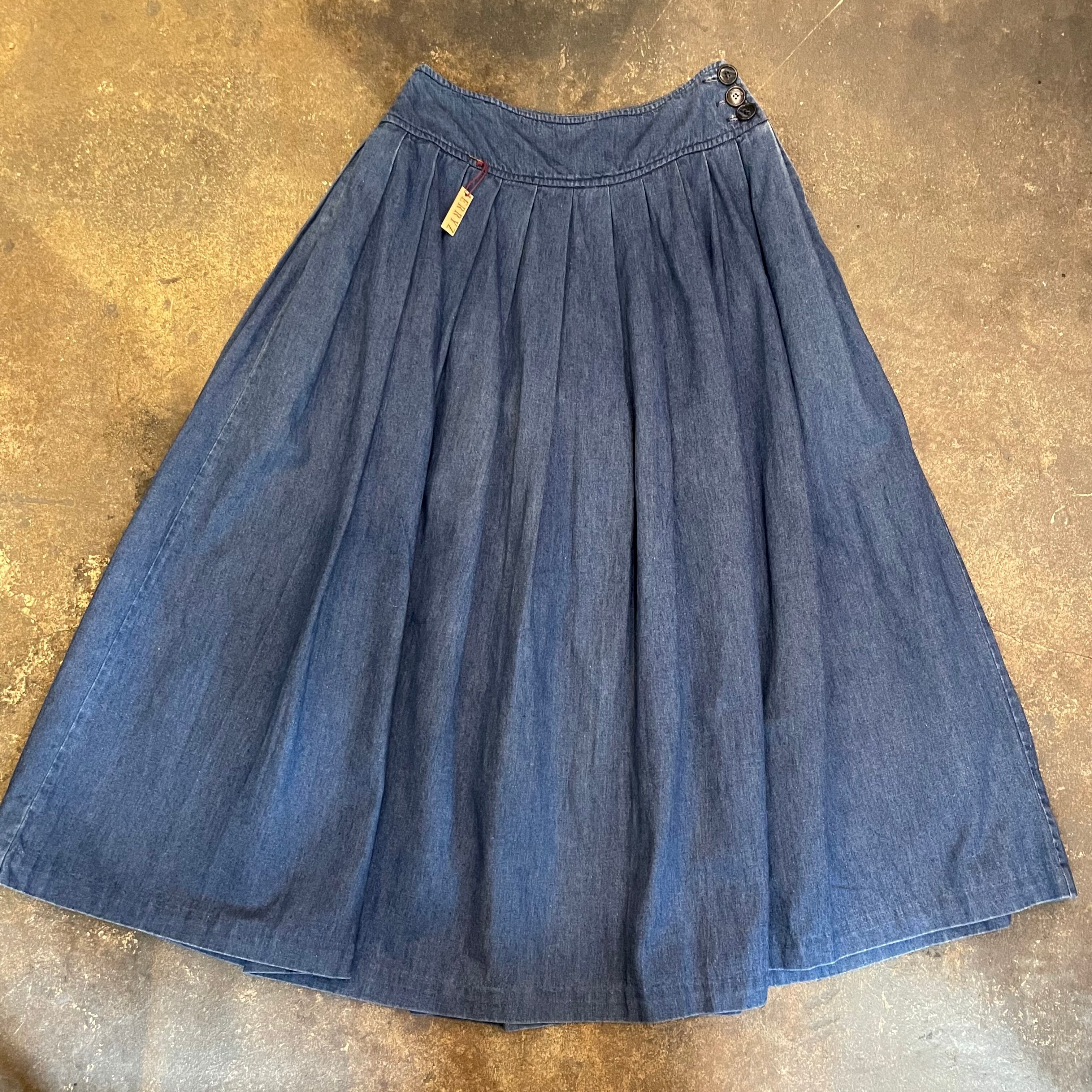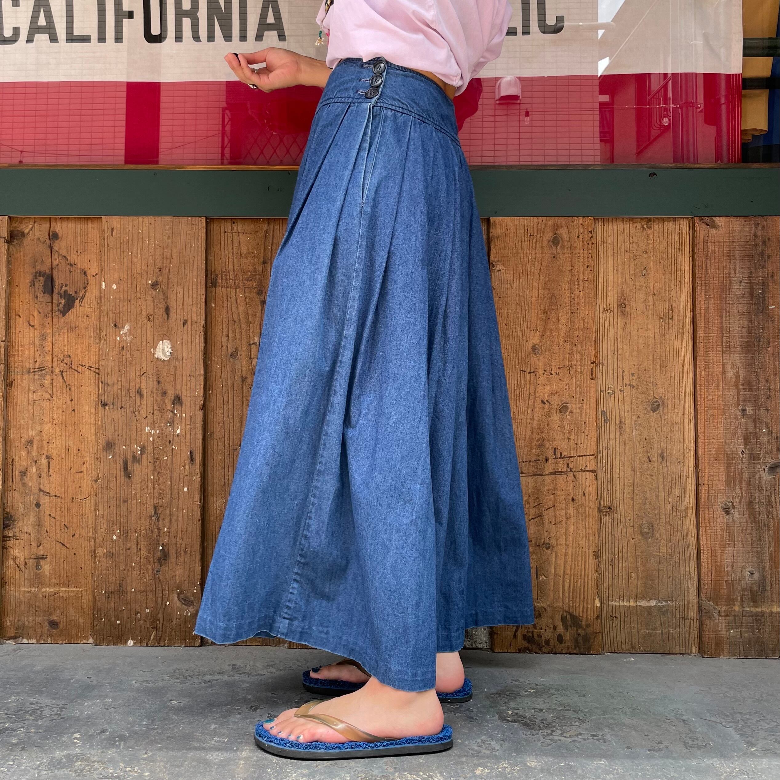 プリーツからのフレアでボリューム感がかわいいデニムスカートです。