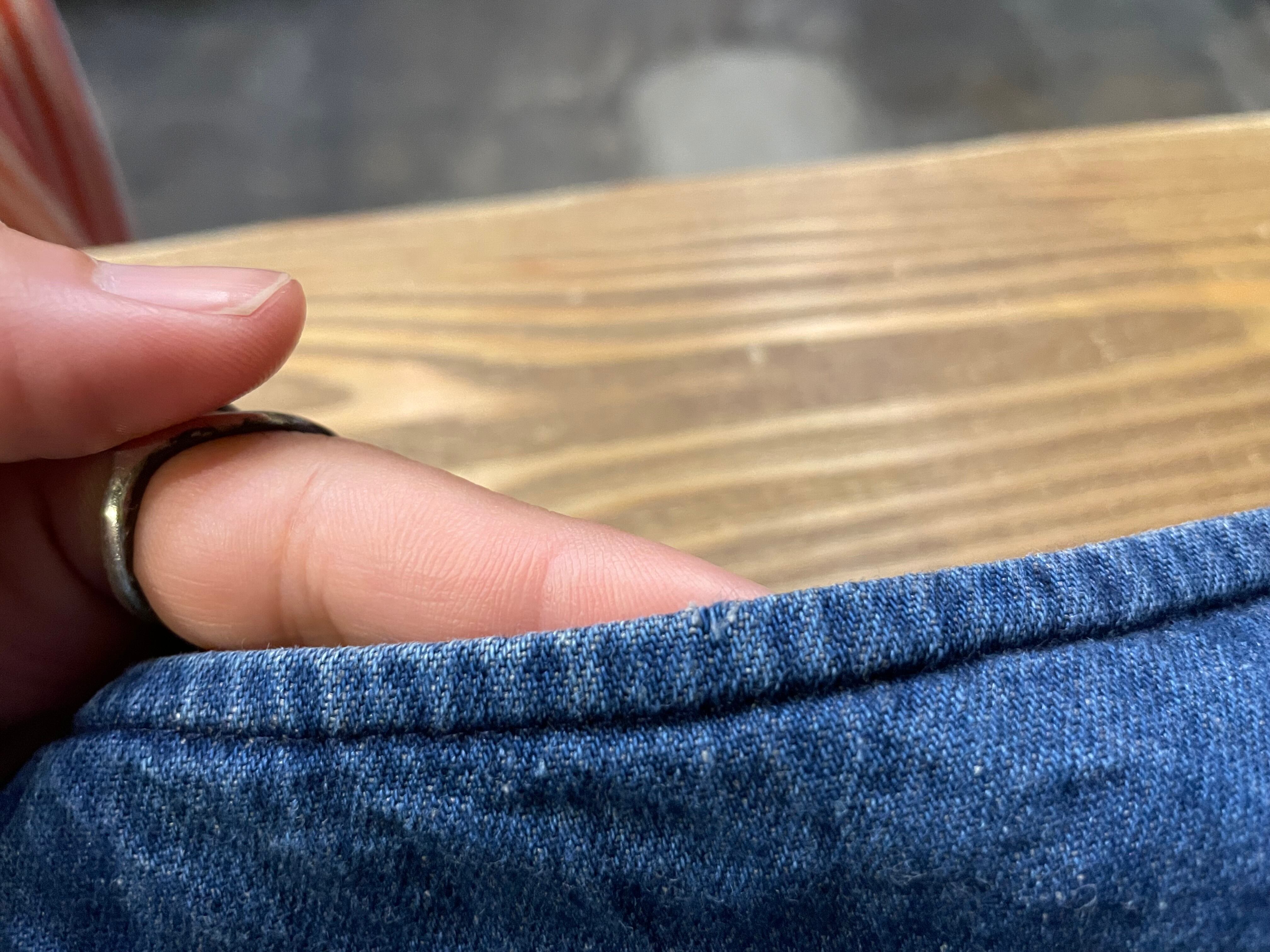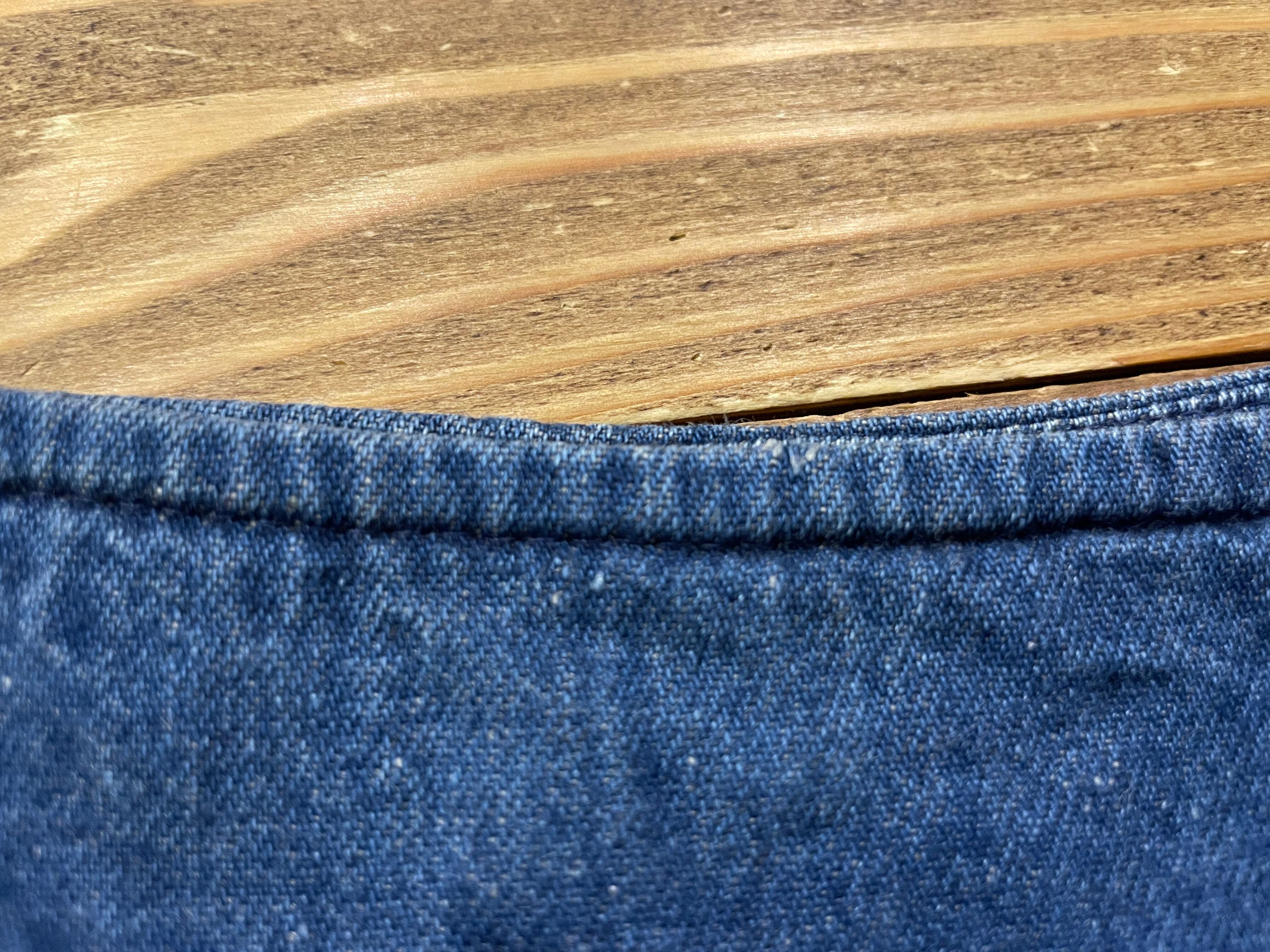 そんなに色は落ちておらずまぁまぁ青い色なのでトップスの色味はあまり選ばずだいたい合いそうですし、秋冬もニットやスウェットと合わせやすいと思います。