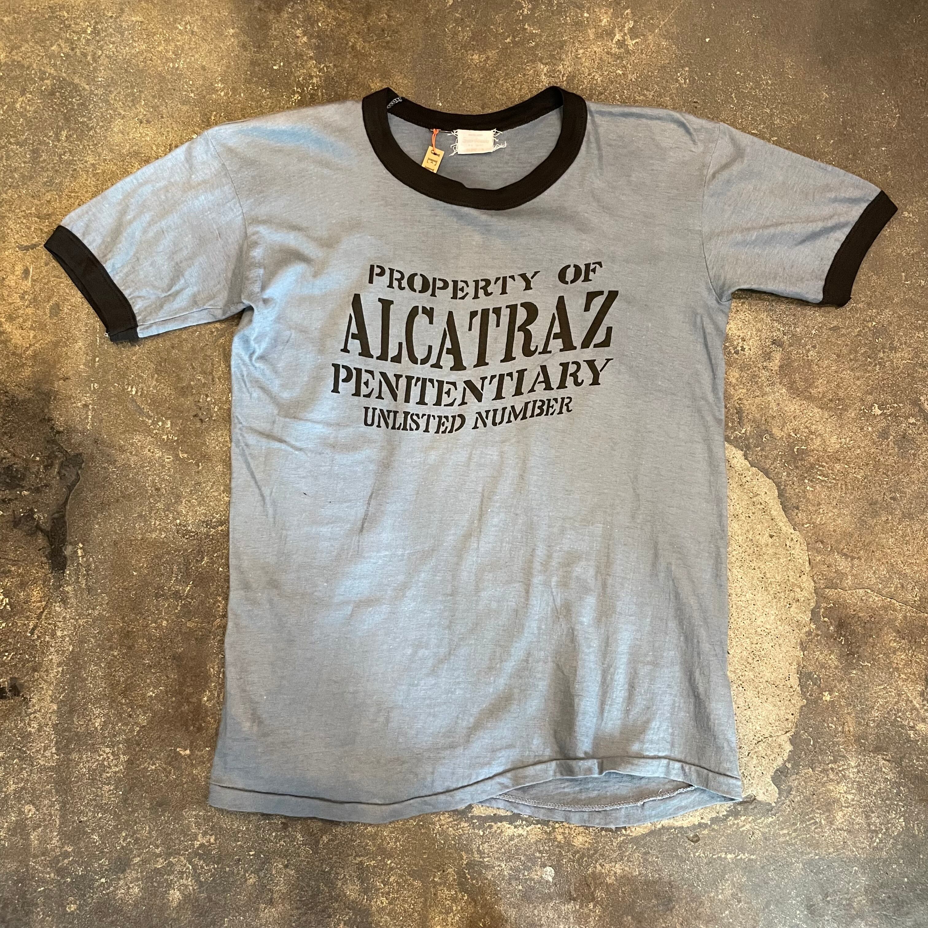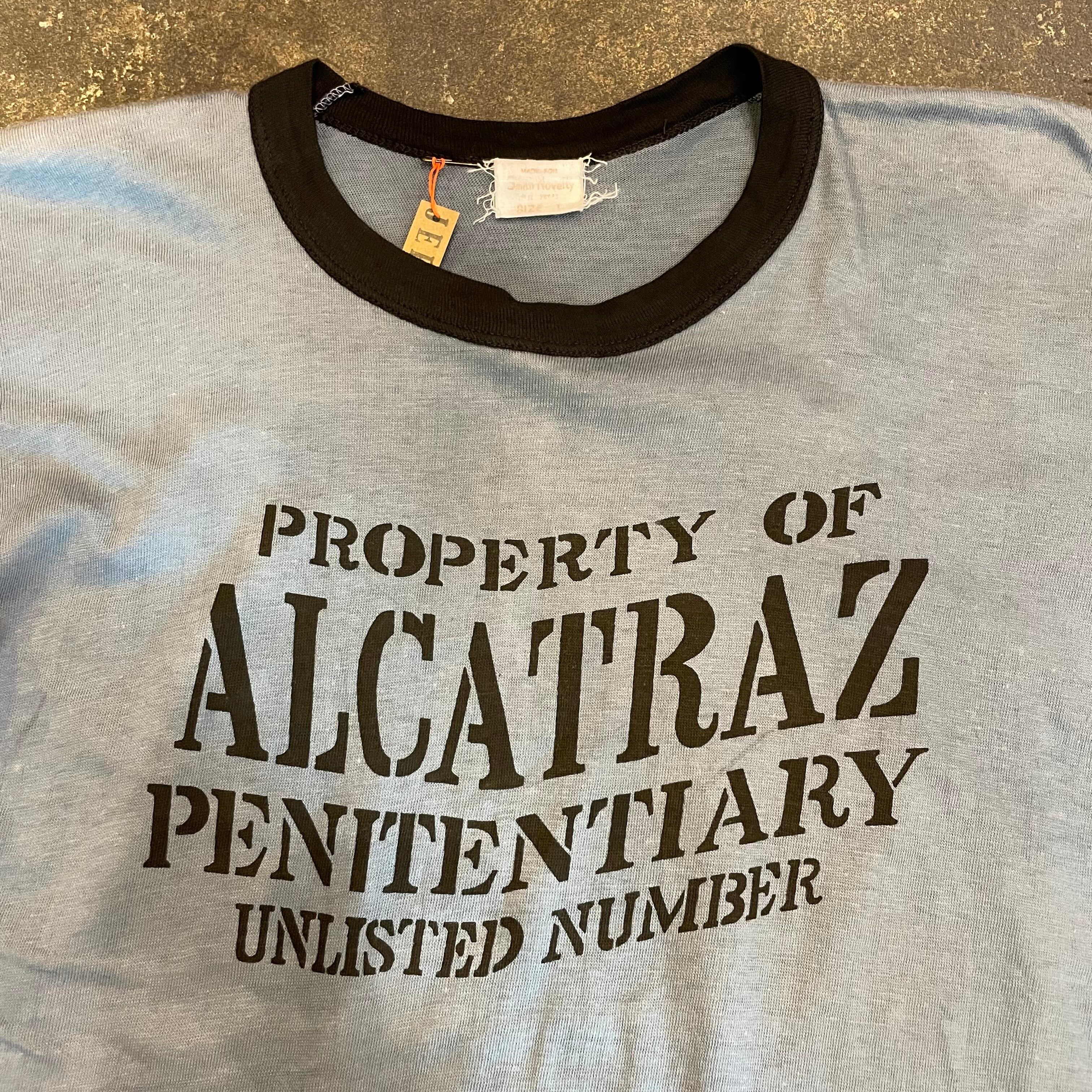 なんとも絶妙な色味がかっこいいですし、ステンシルっぽい雰囲気のアルカトラズのロゴが良い感じですね。