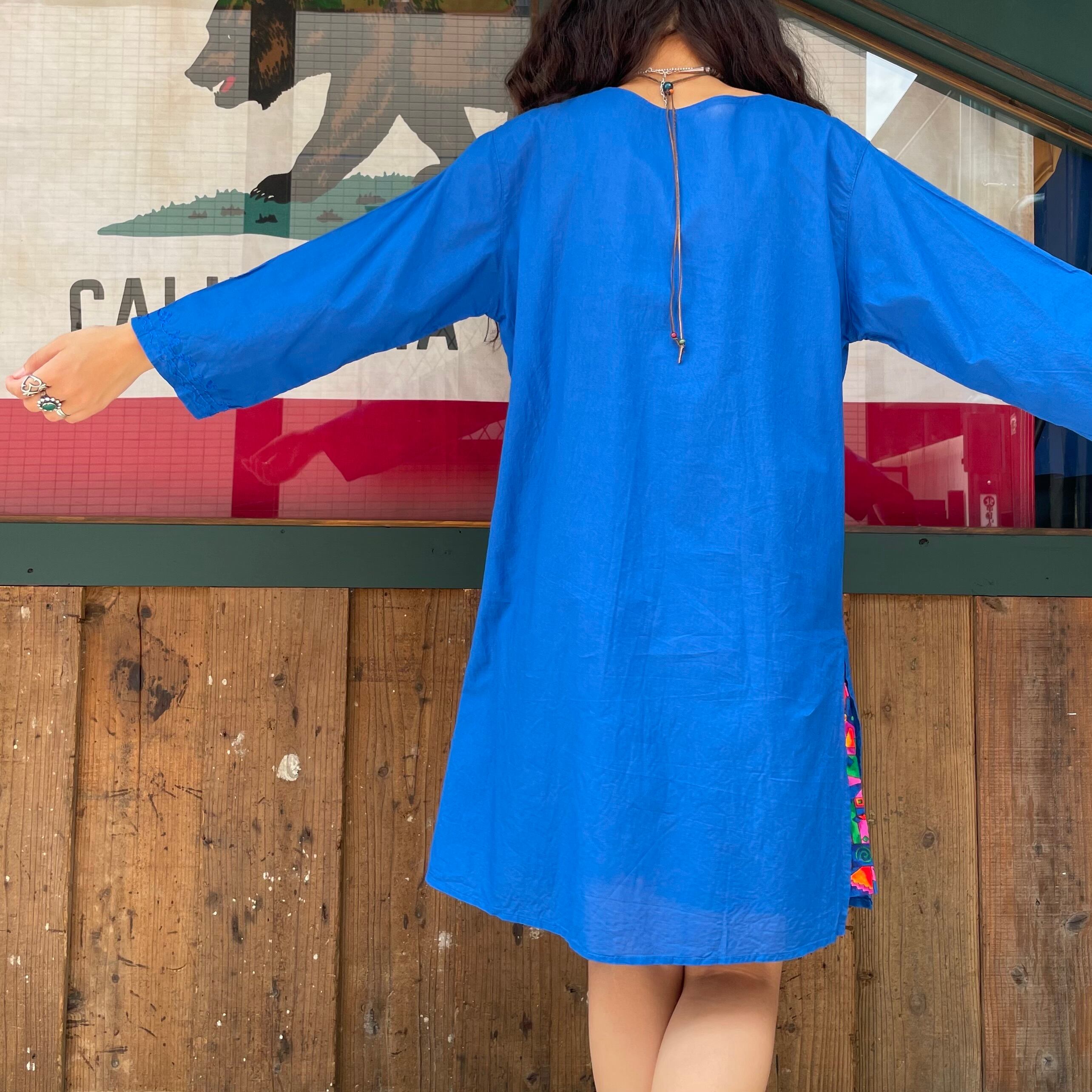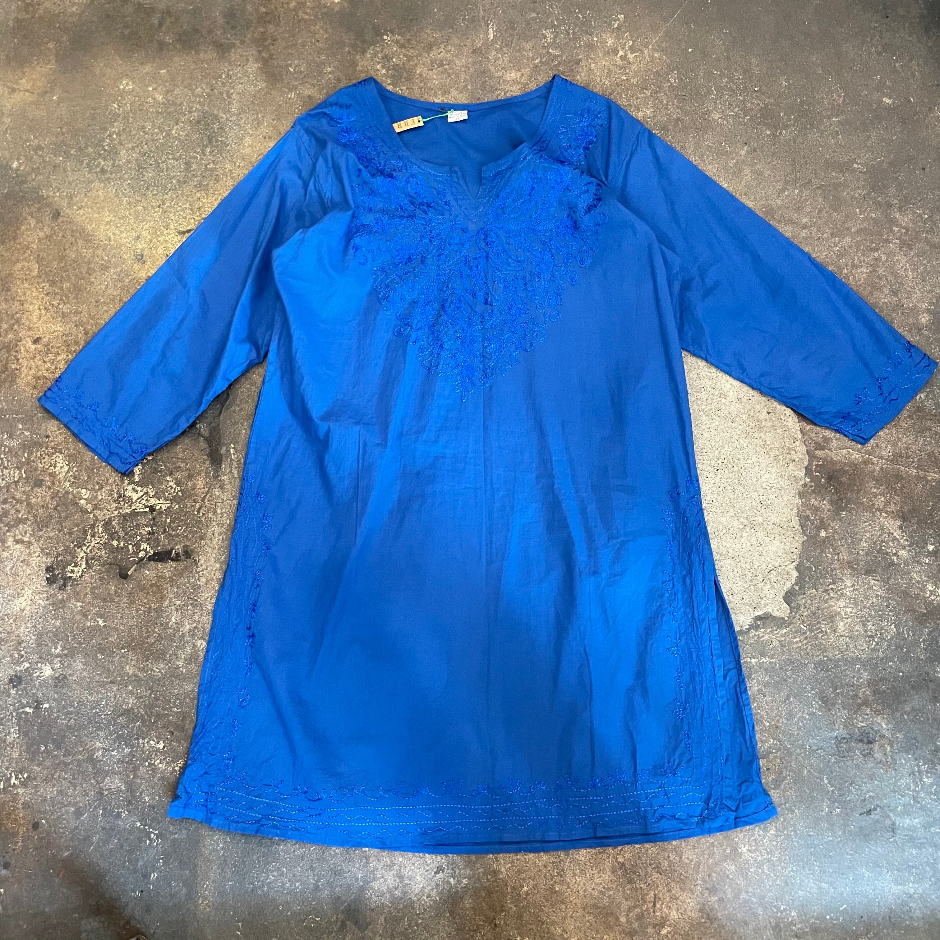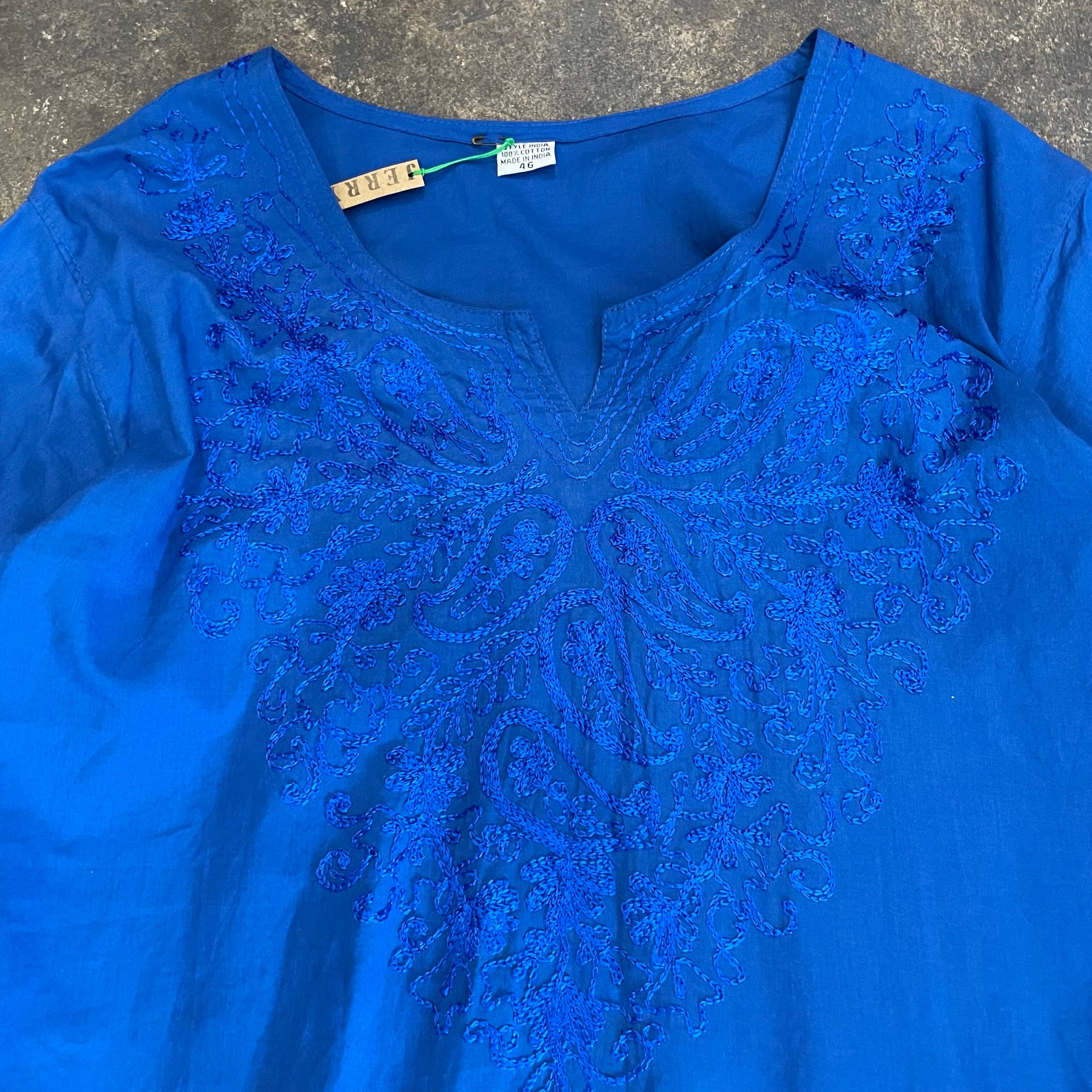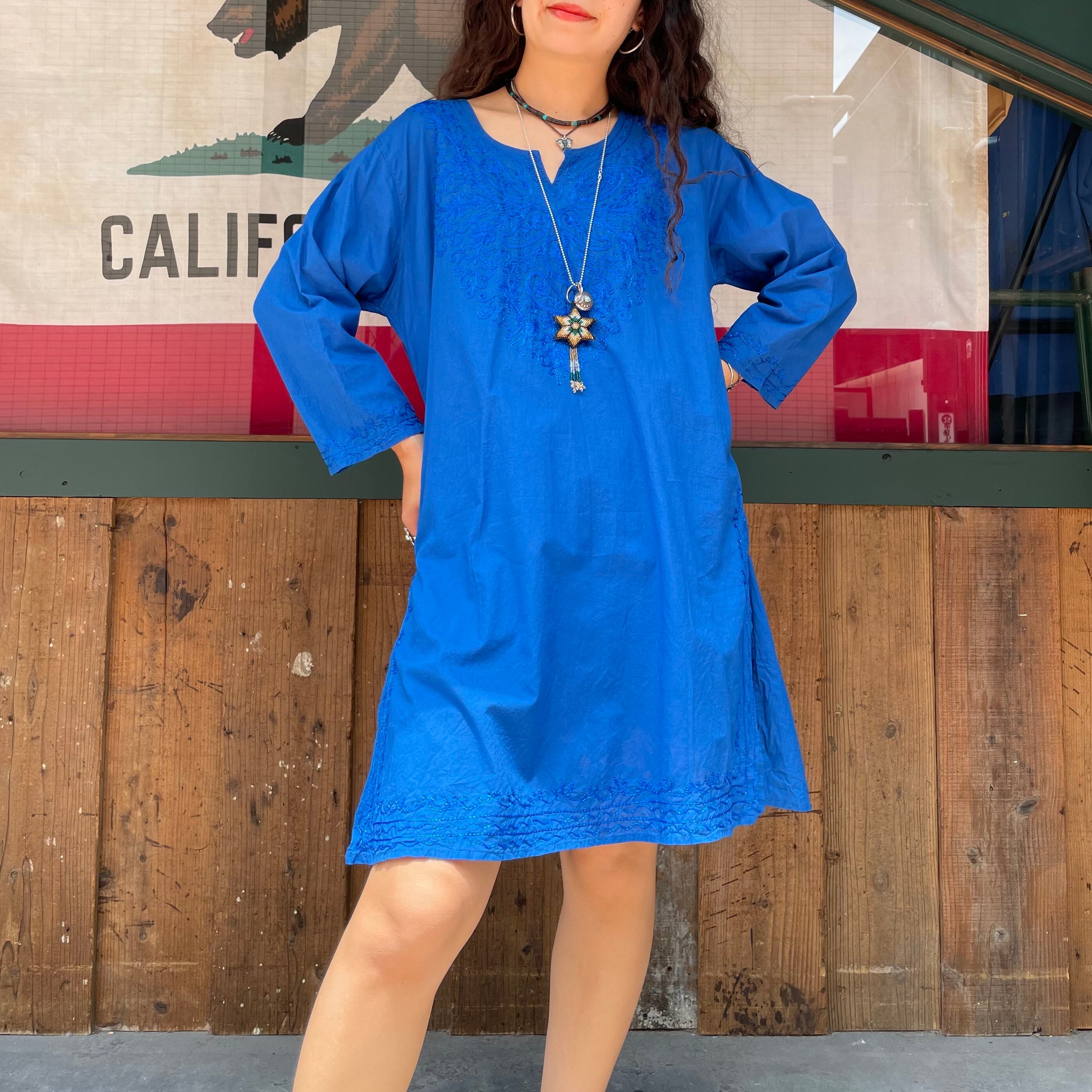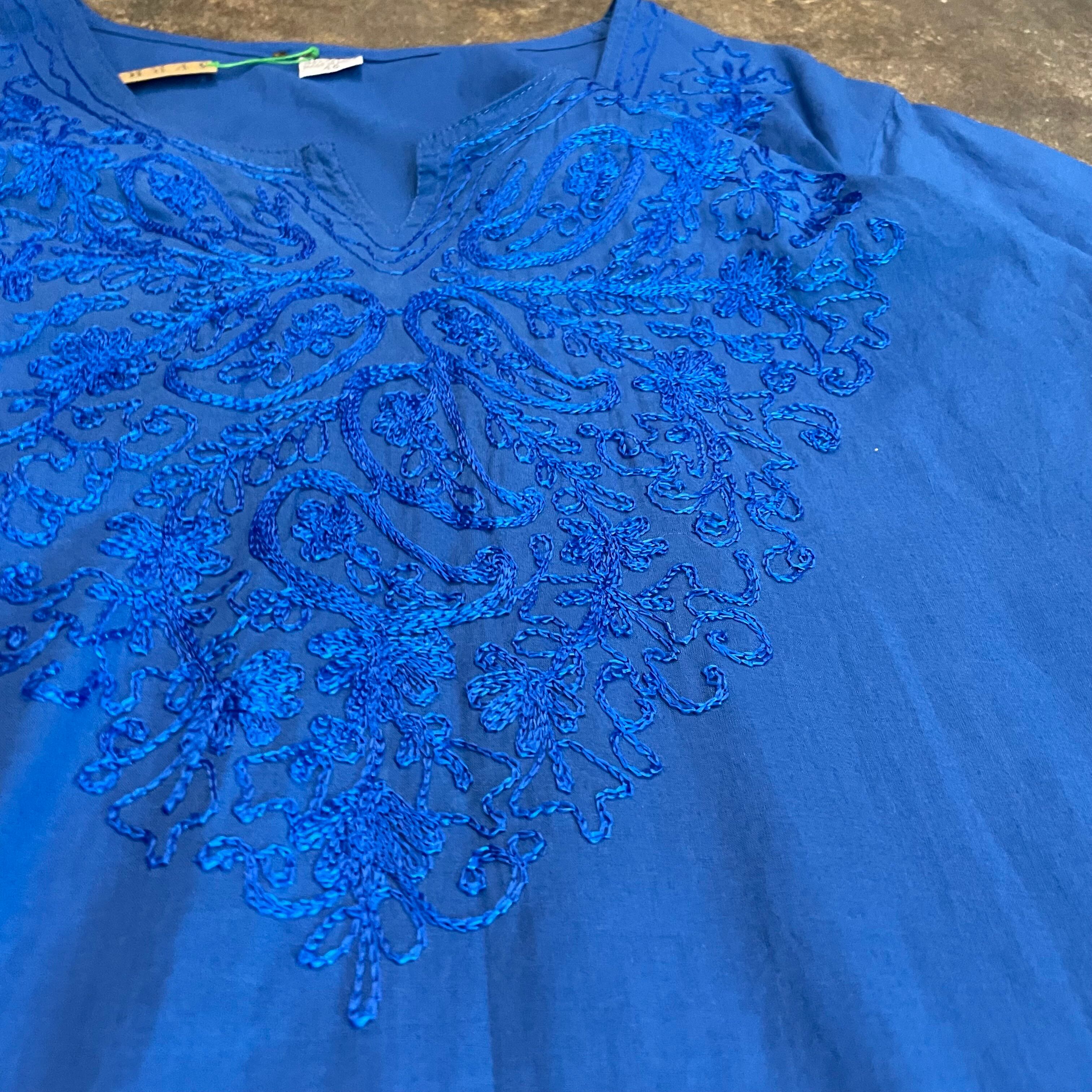 インド製のコットン素材で胸元には機械刺繍がみっちり施してあり、とても素敵な一枚です。