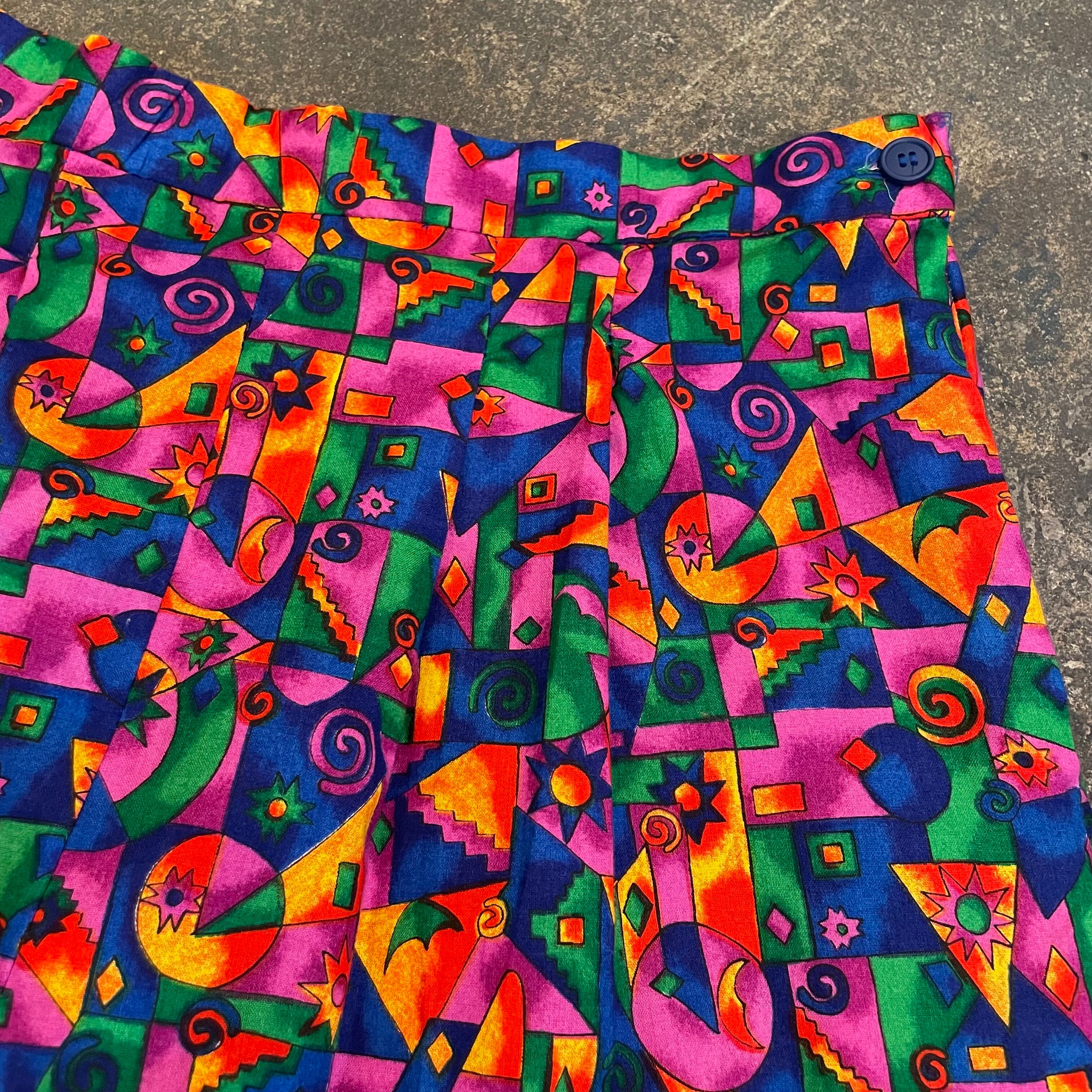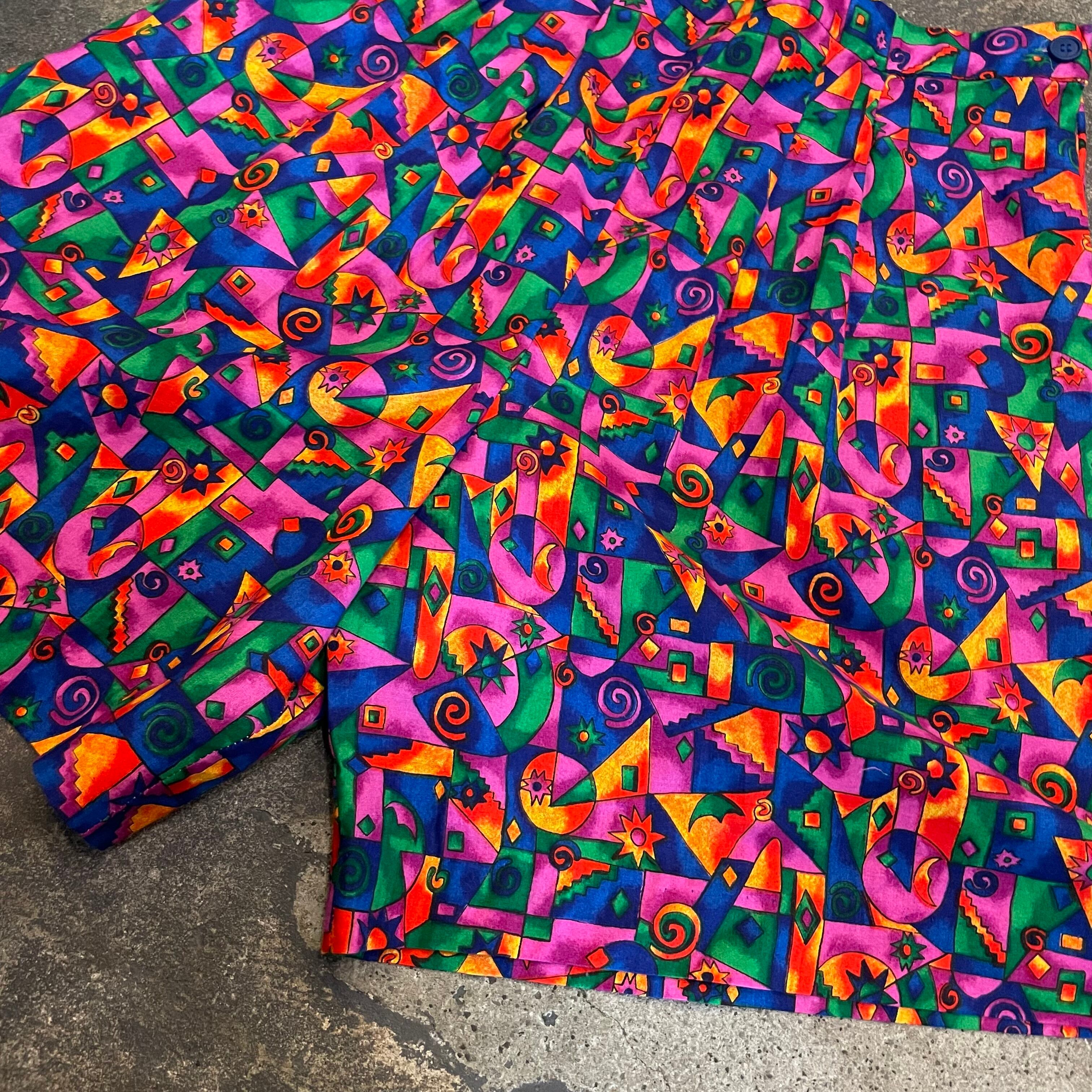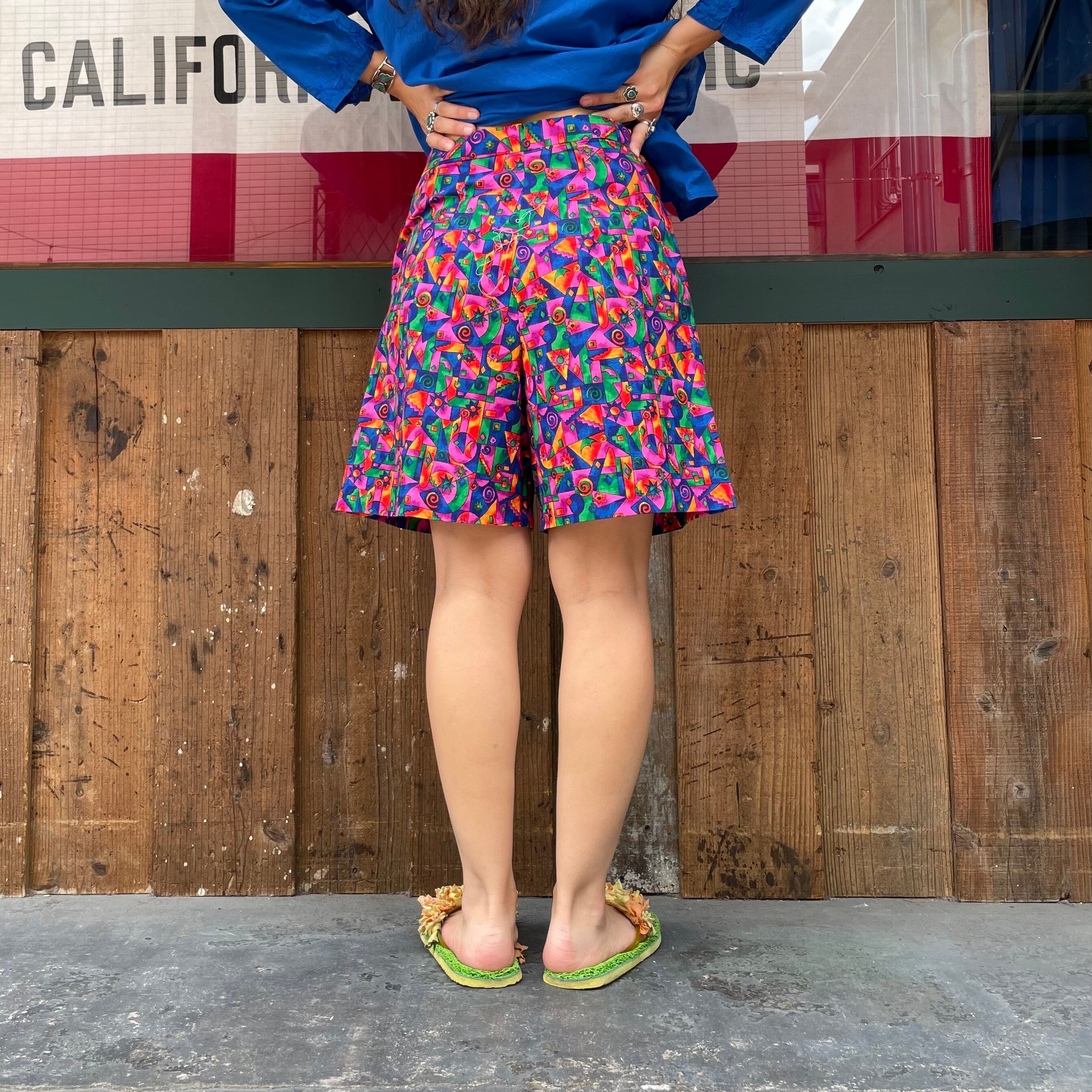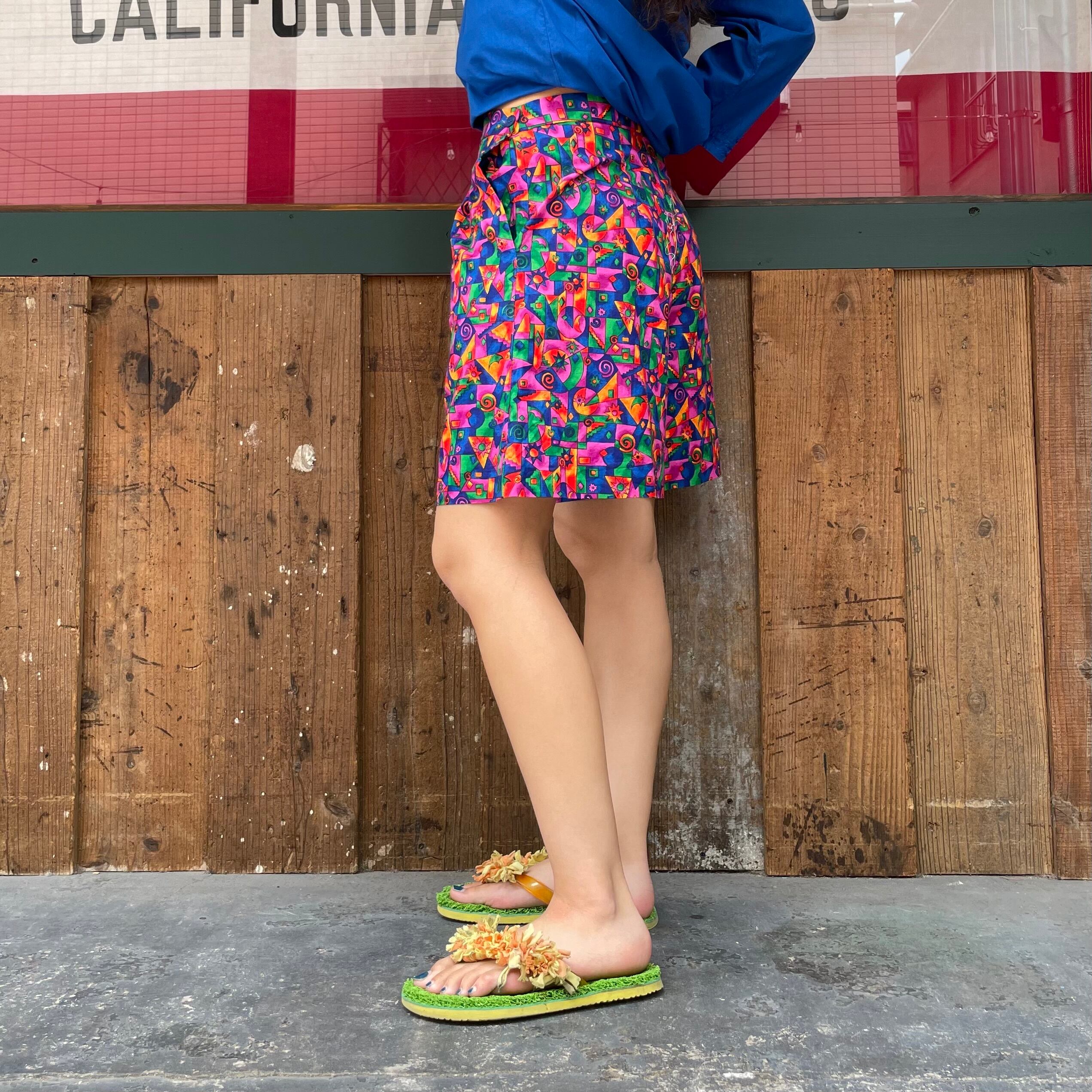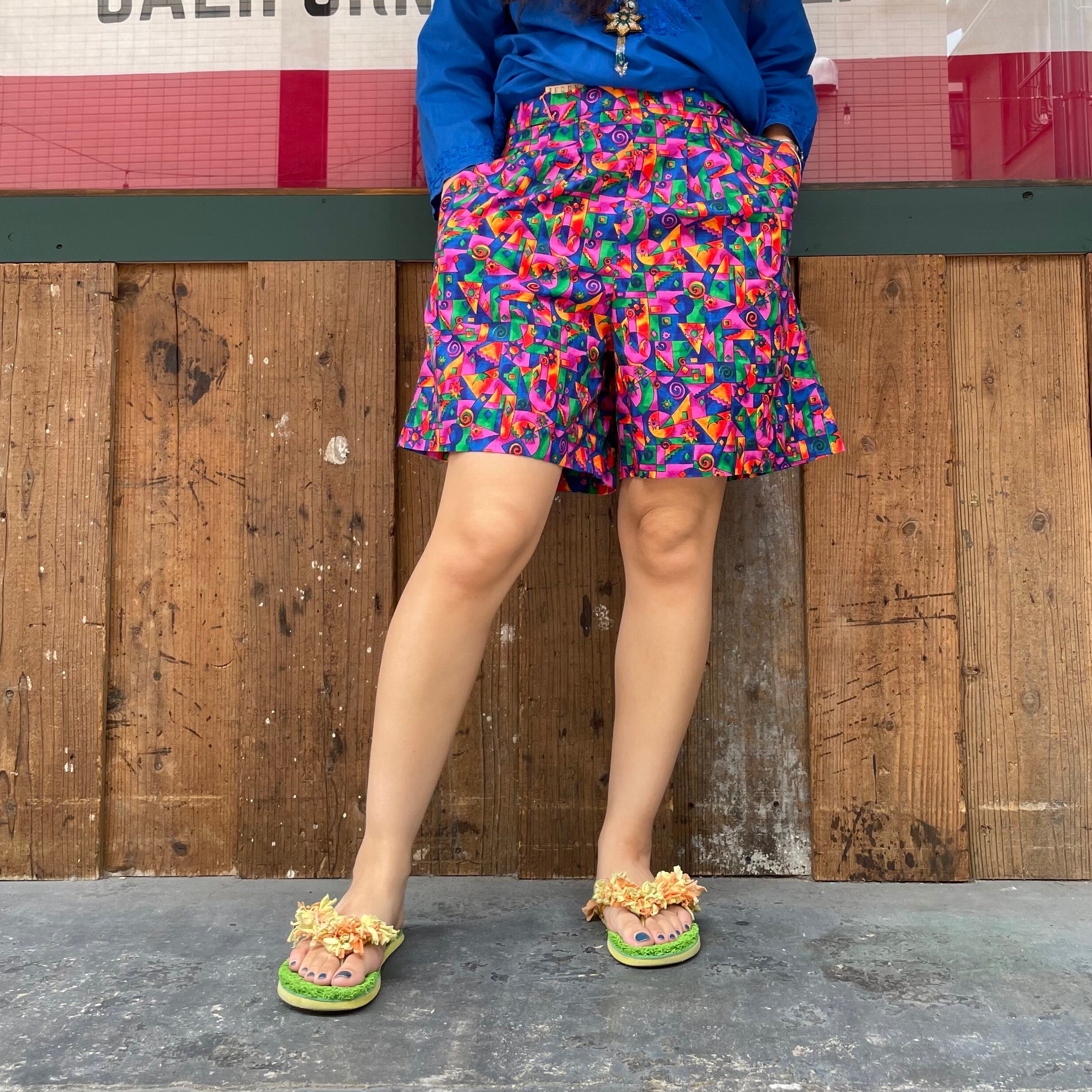 カラフルな幾何学模様たちがかわいいショートパンツです。