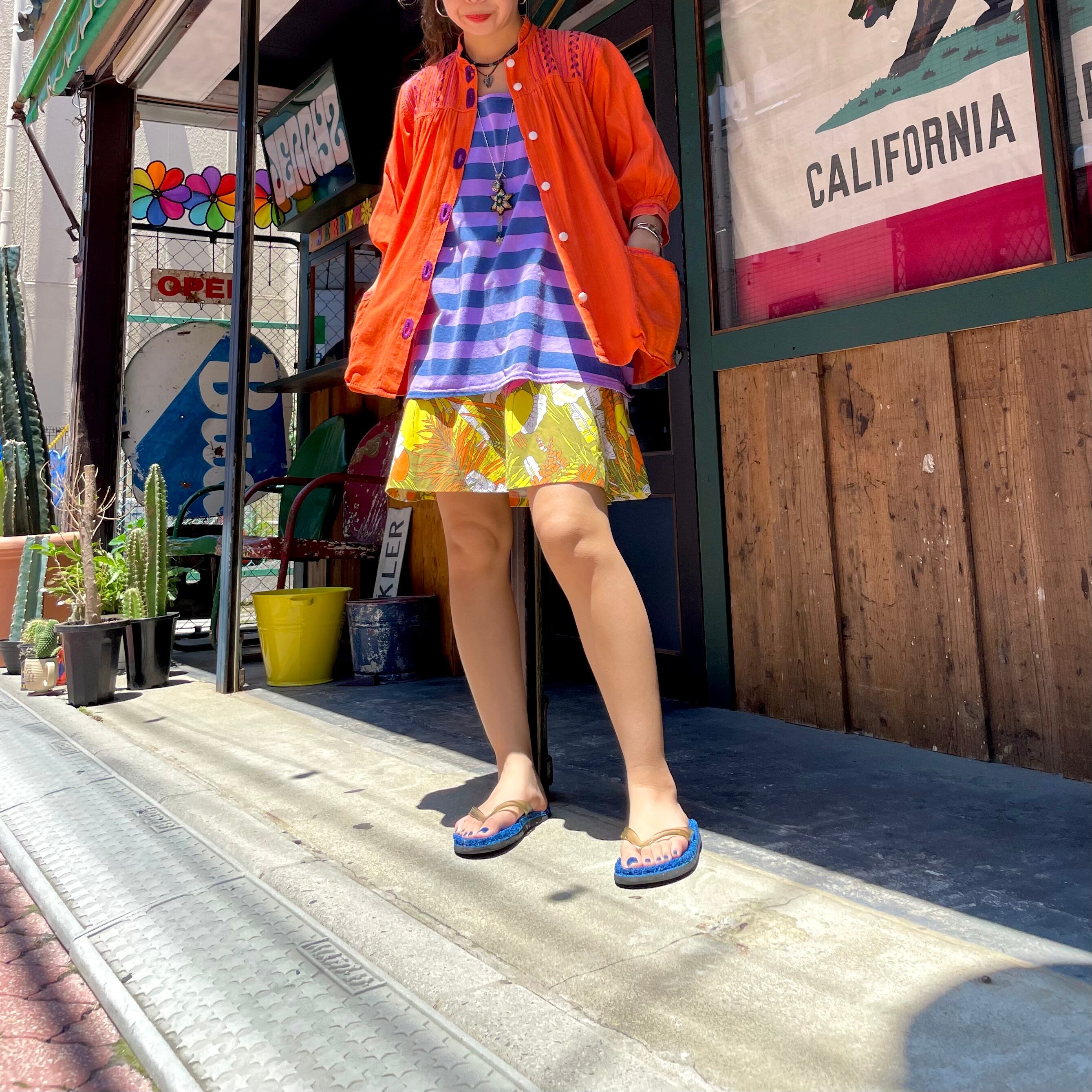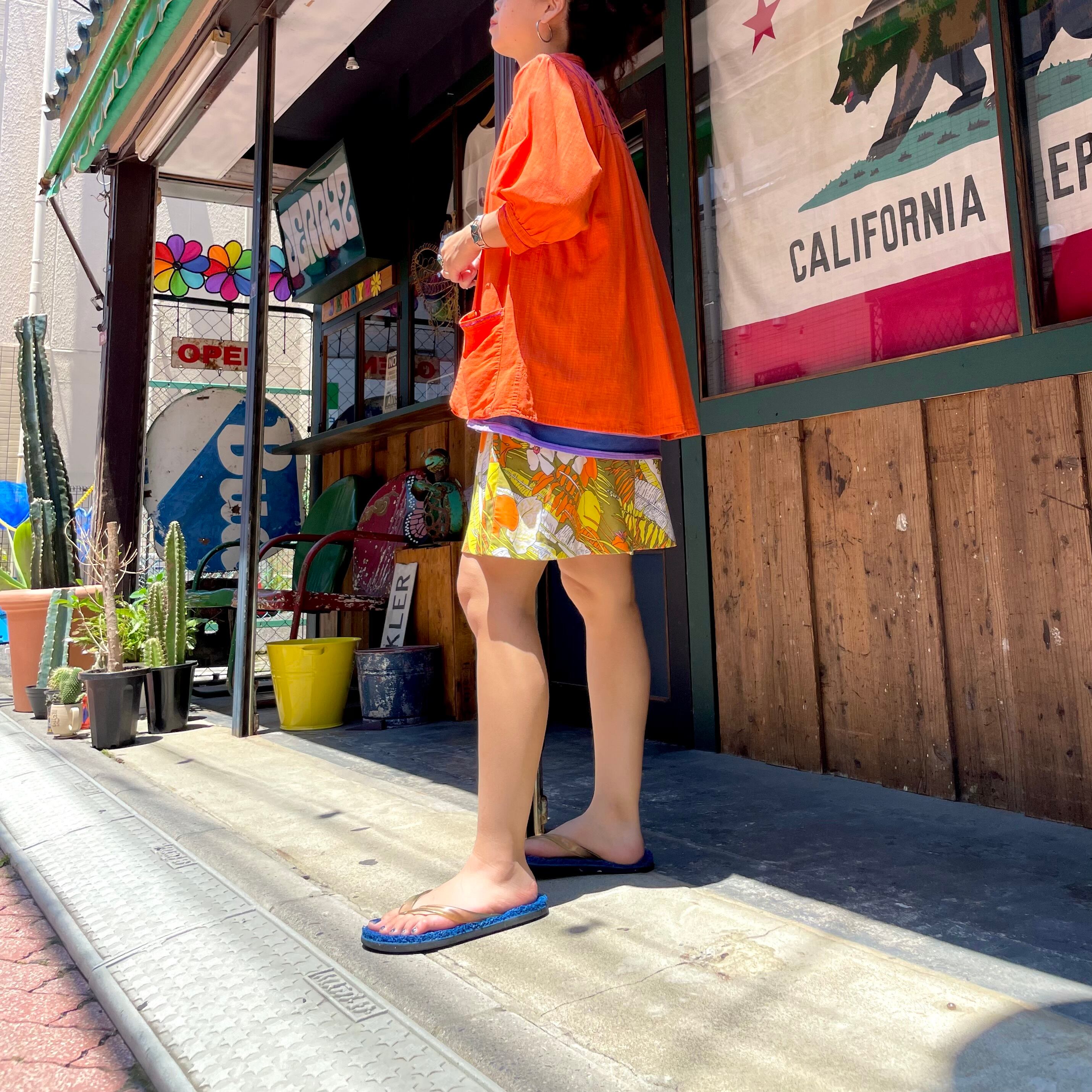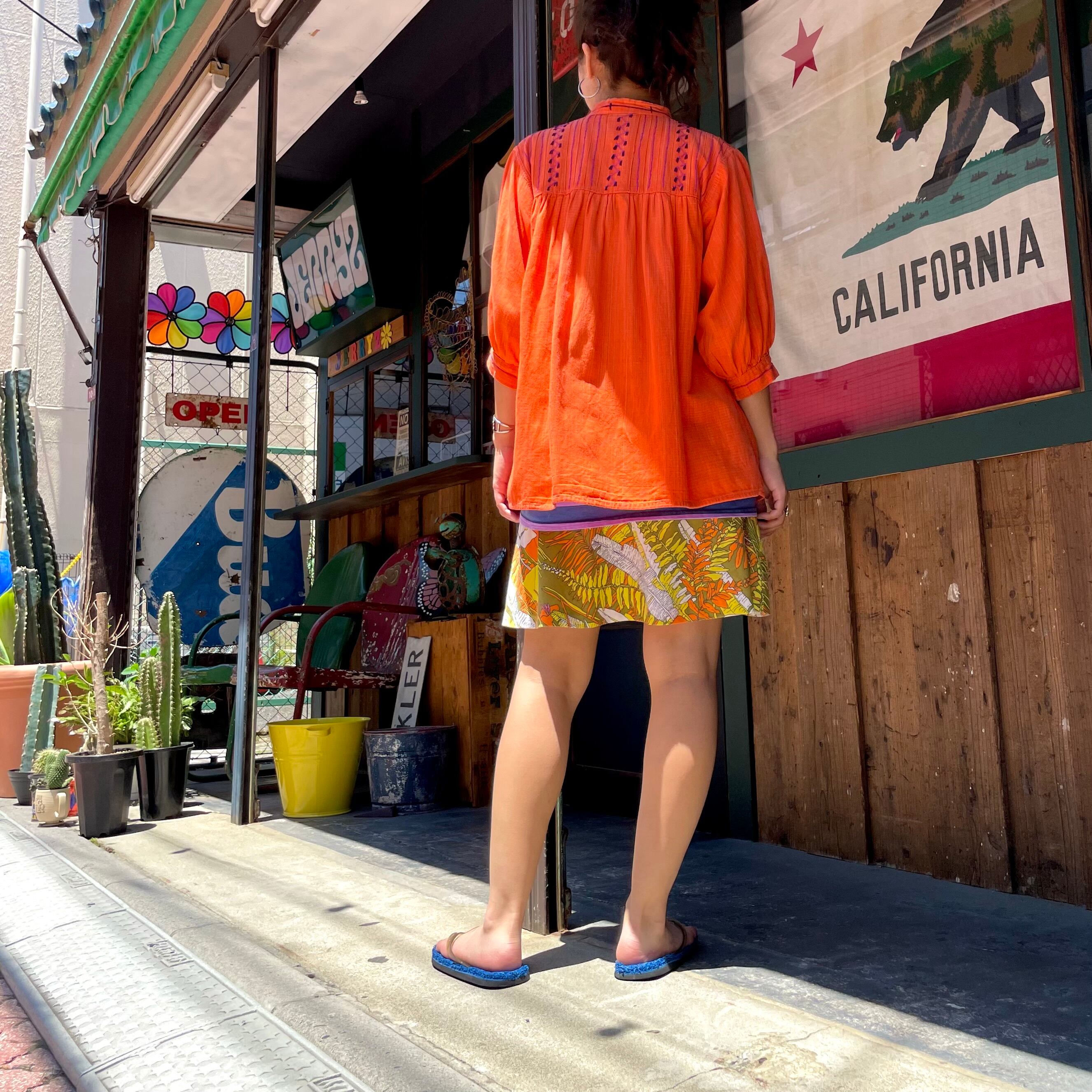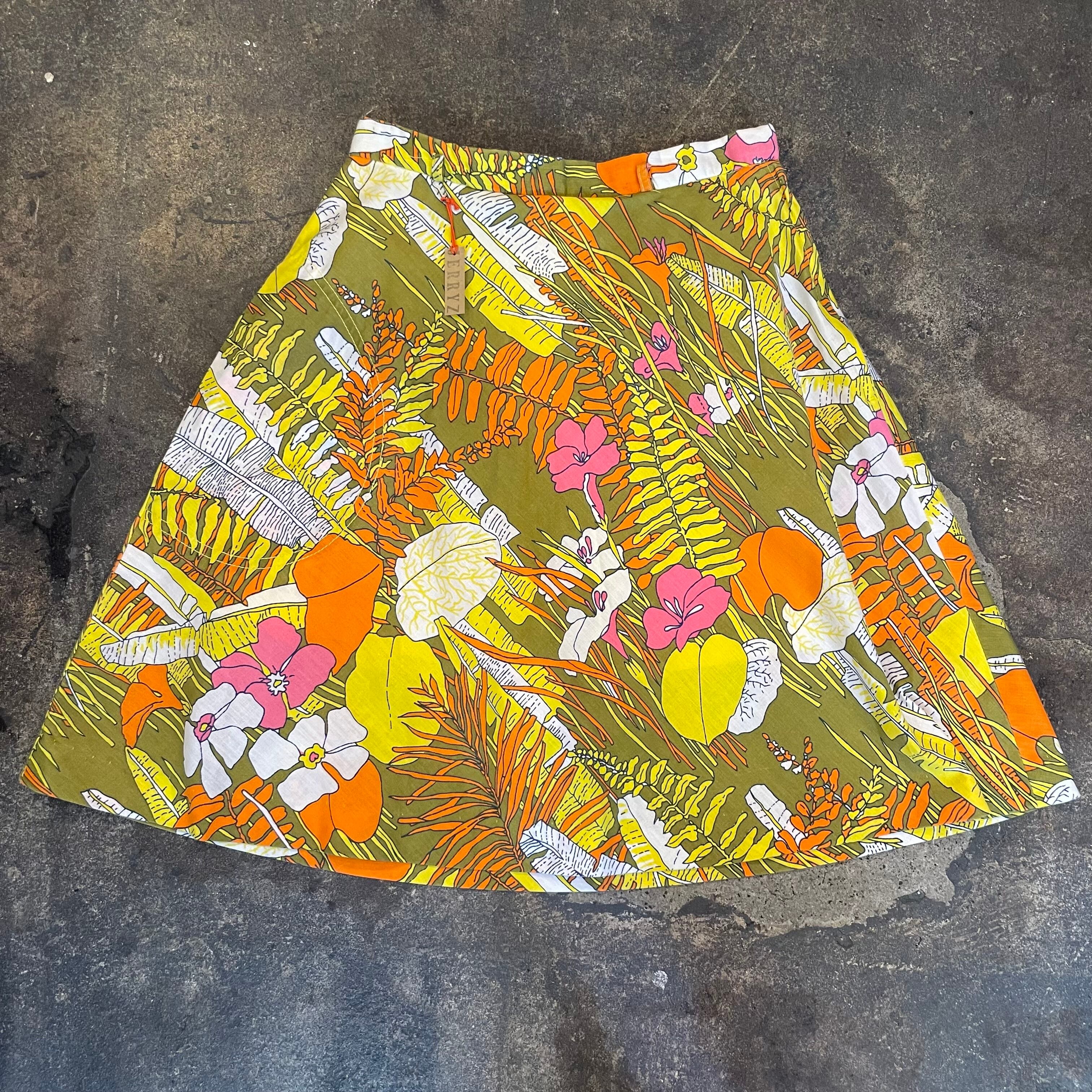 この年代らしい配色がかわいい花柄のスカートです。なんと中にショートパンツの裏地が付いていて下着が見えちゃう心配の無い面白い一着です。