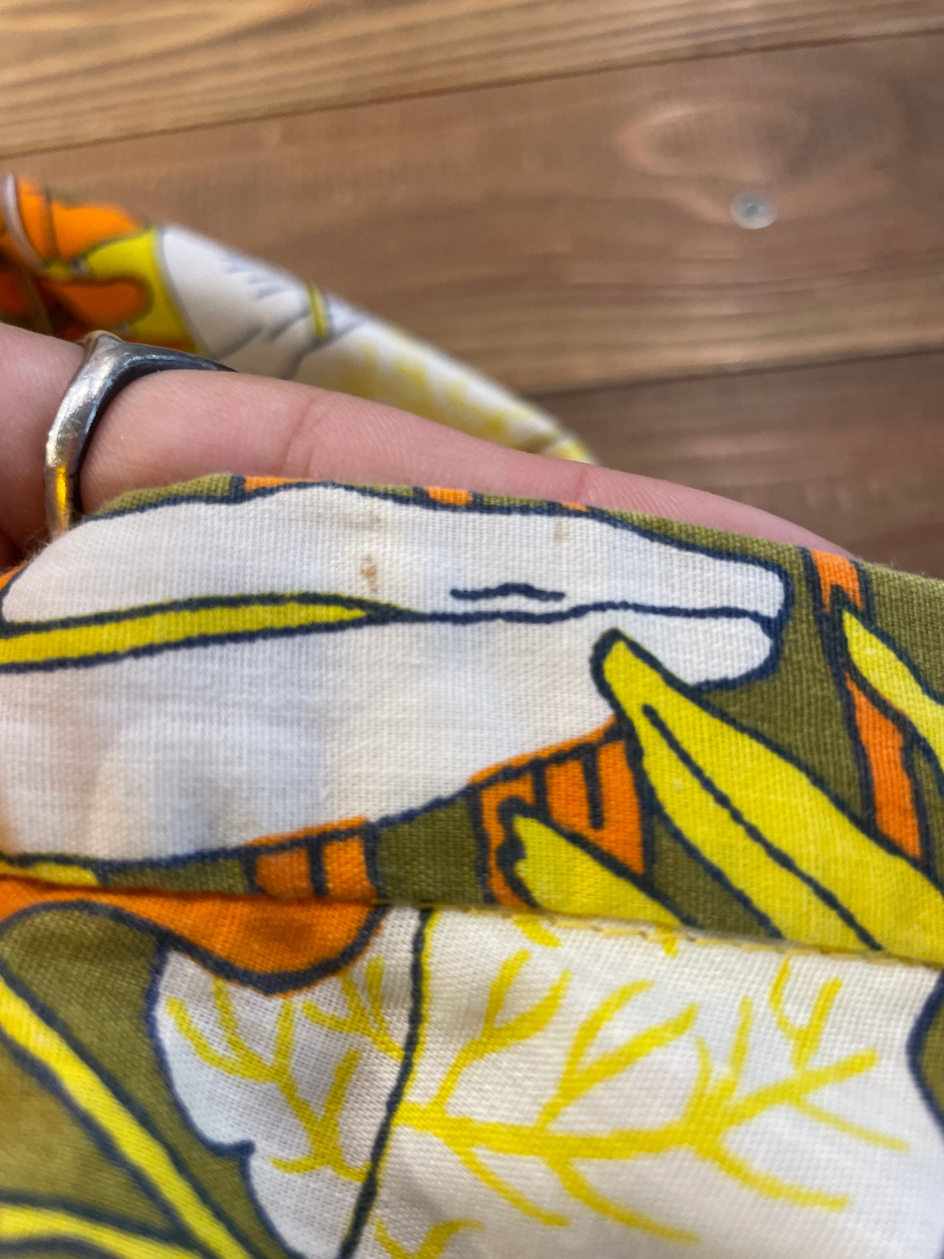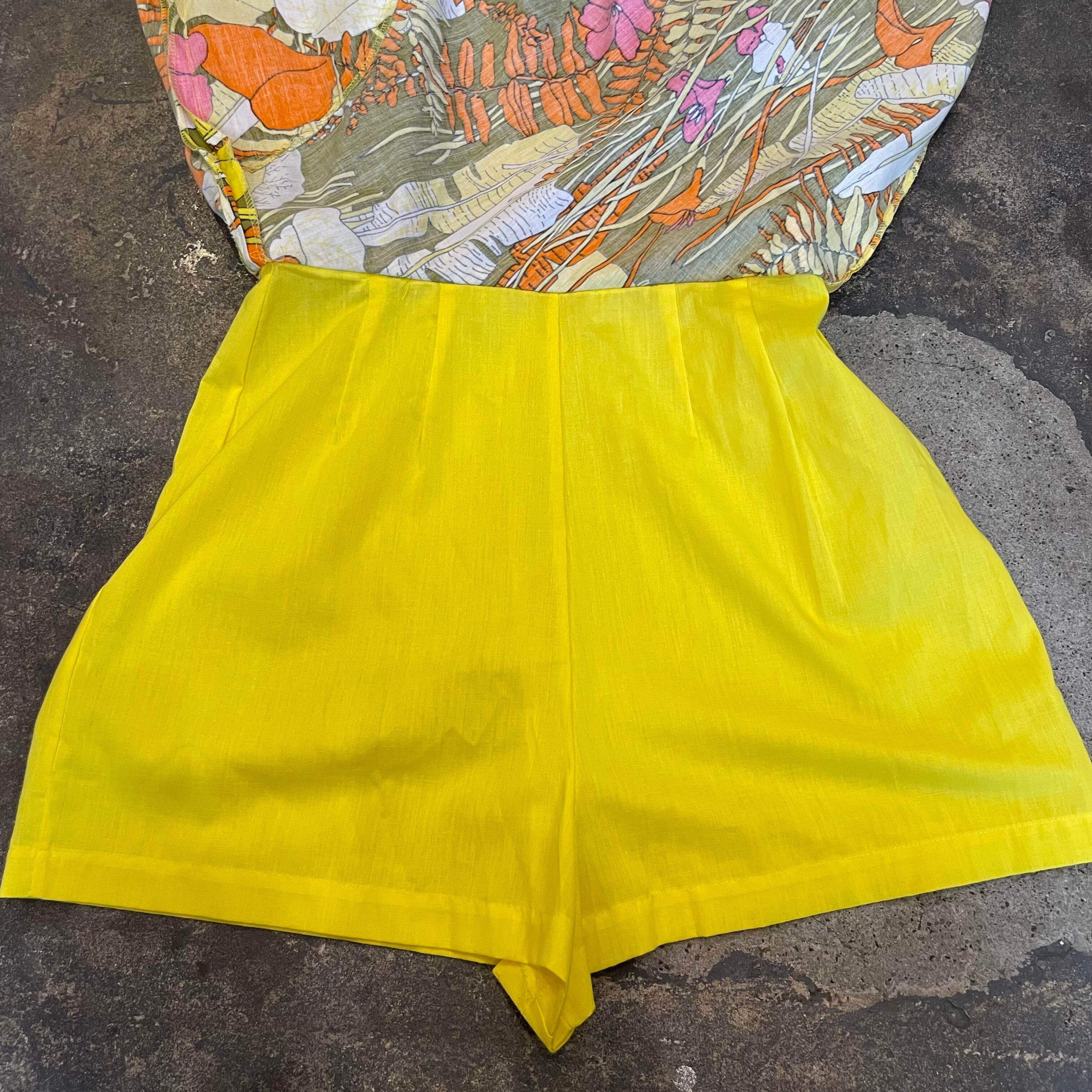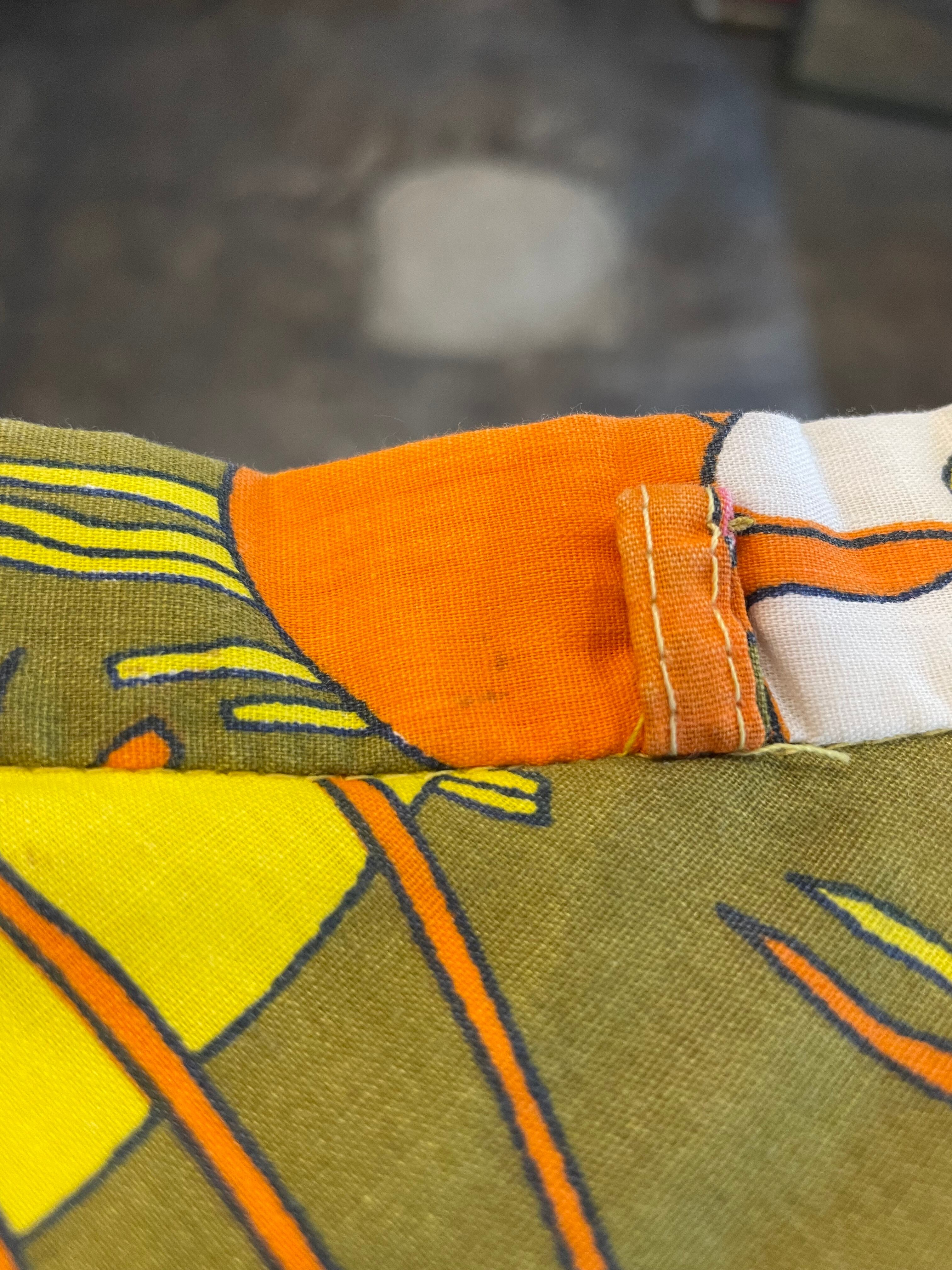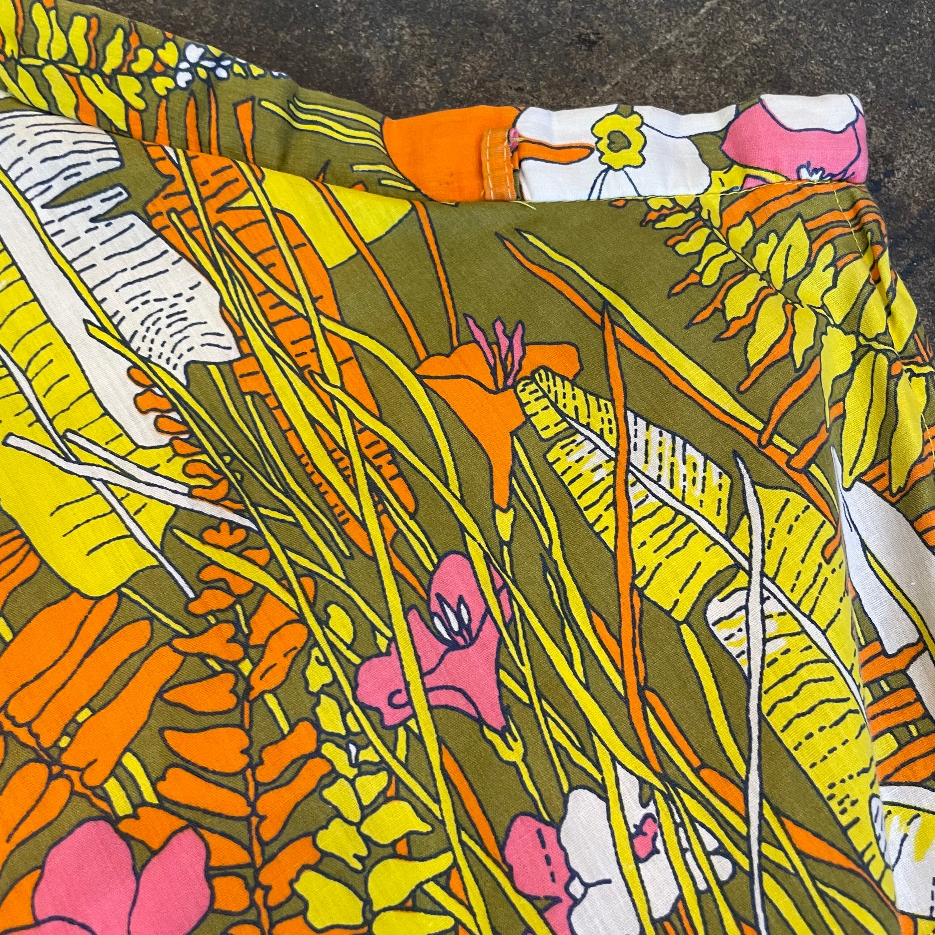 この年代らしい配色がかわいい花柄のスカートです。なんと中にショートパンツの裏地が付いていて下着が見えちゃう心配の無い面白い一着です。