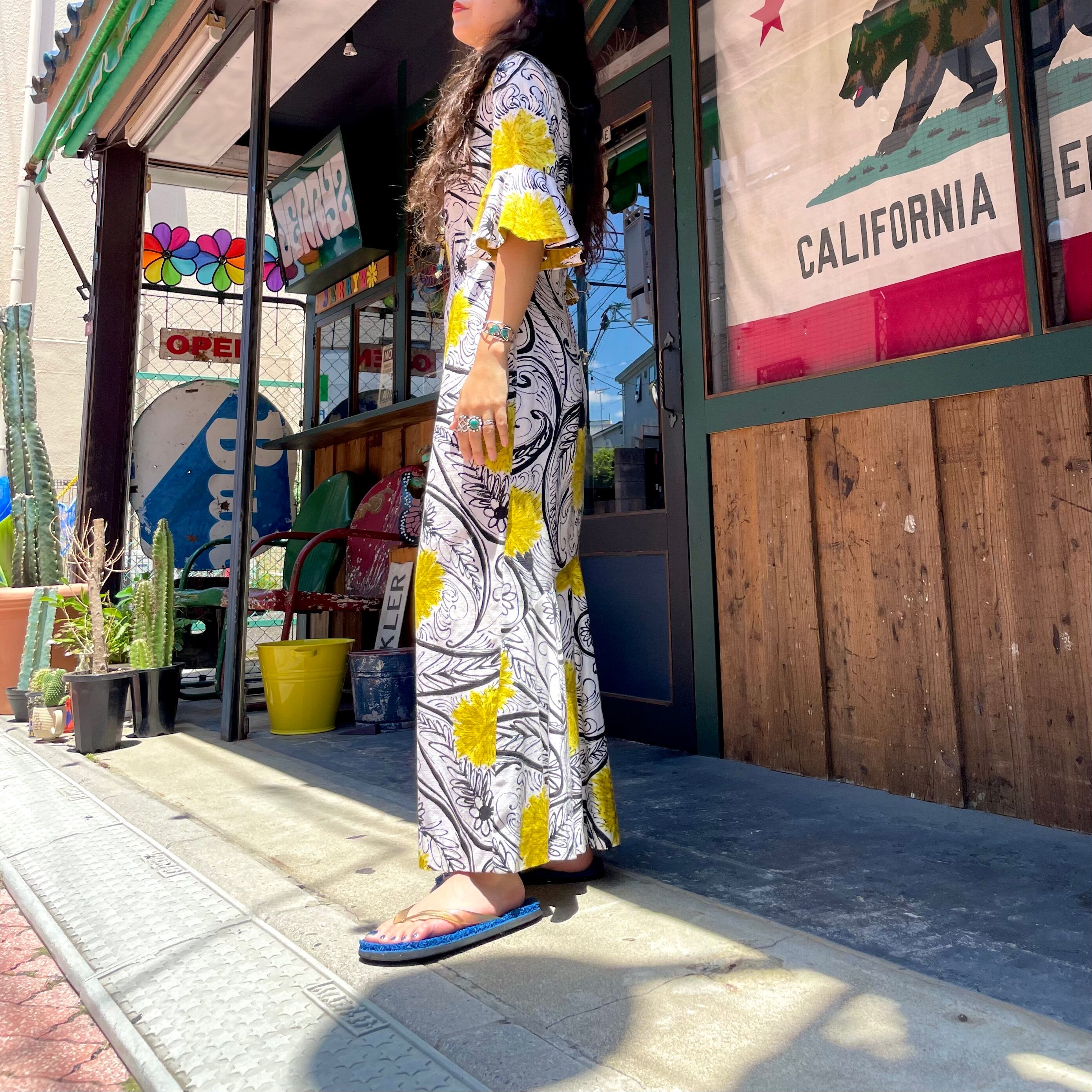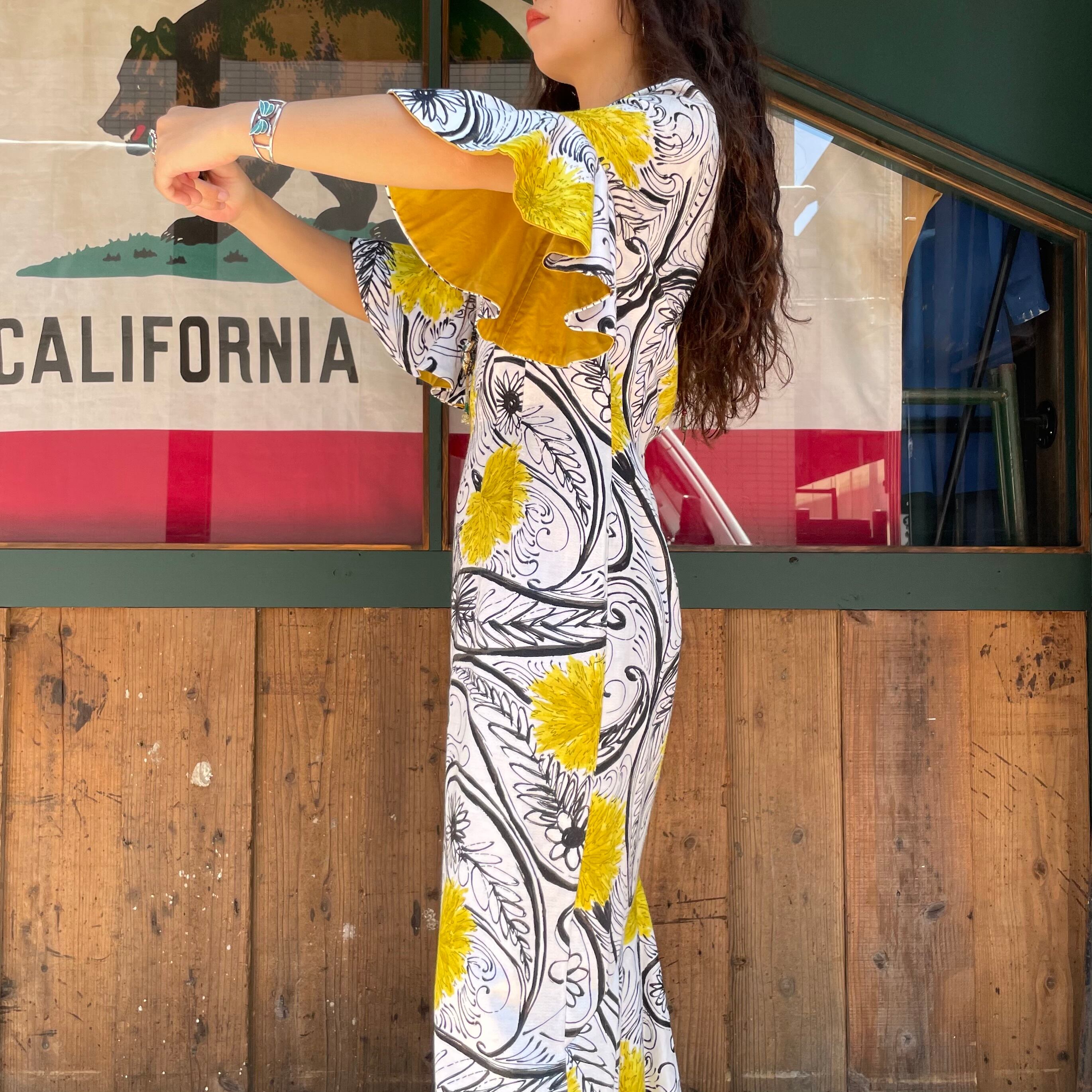 柄の雰囲気がとても大人っぽい70年代頃のハワイアンドレスです。