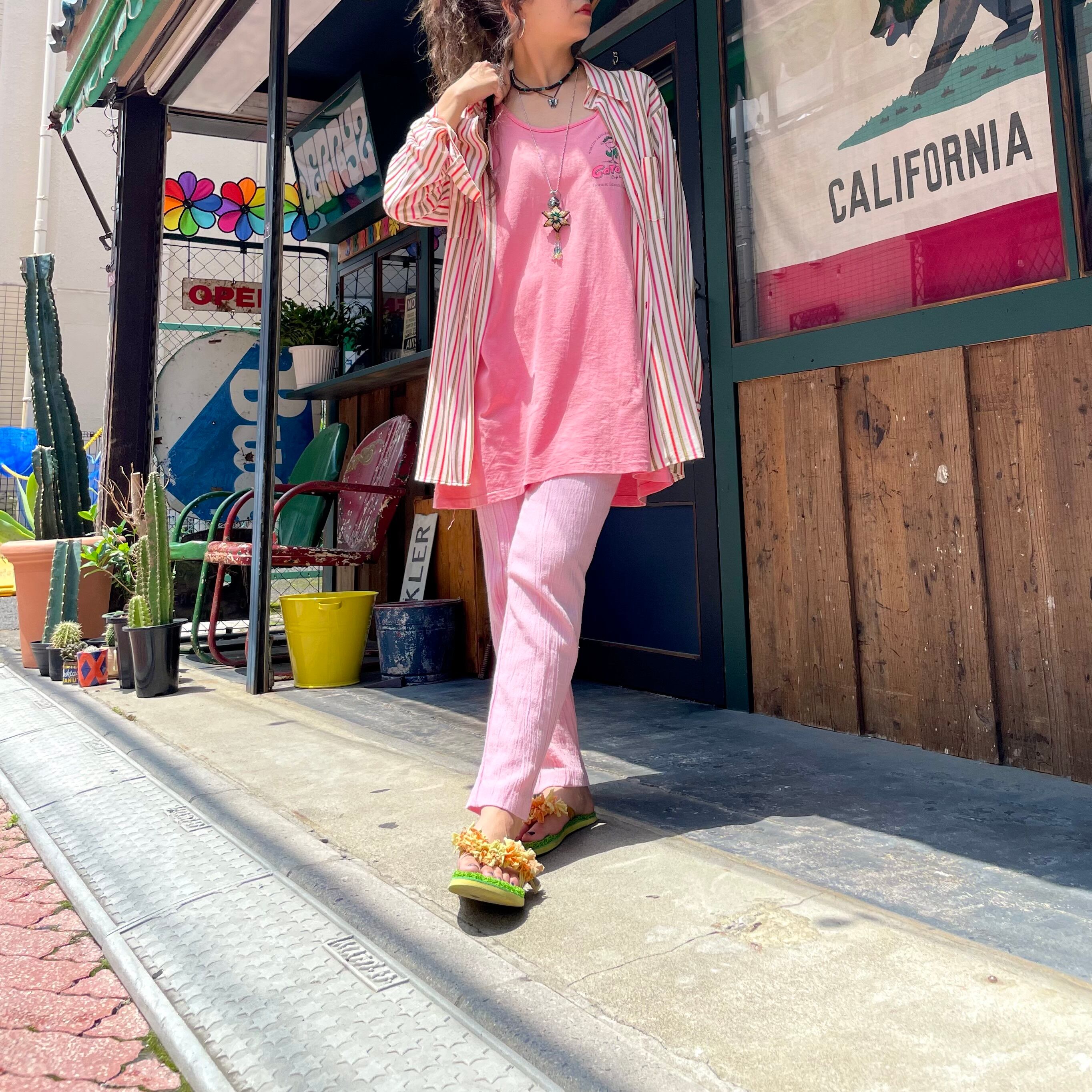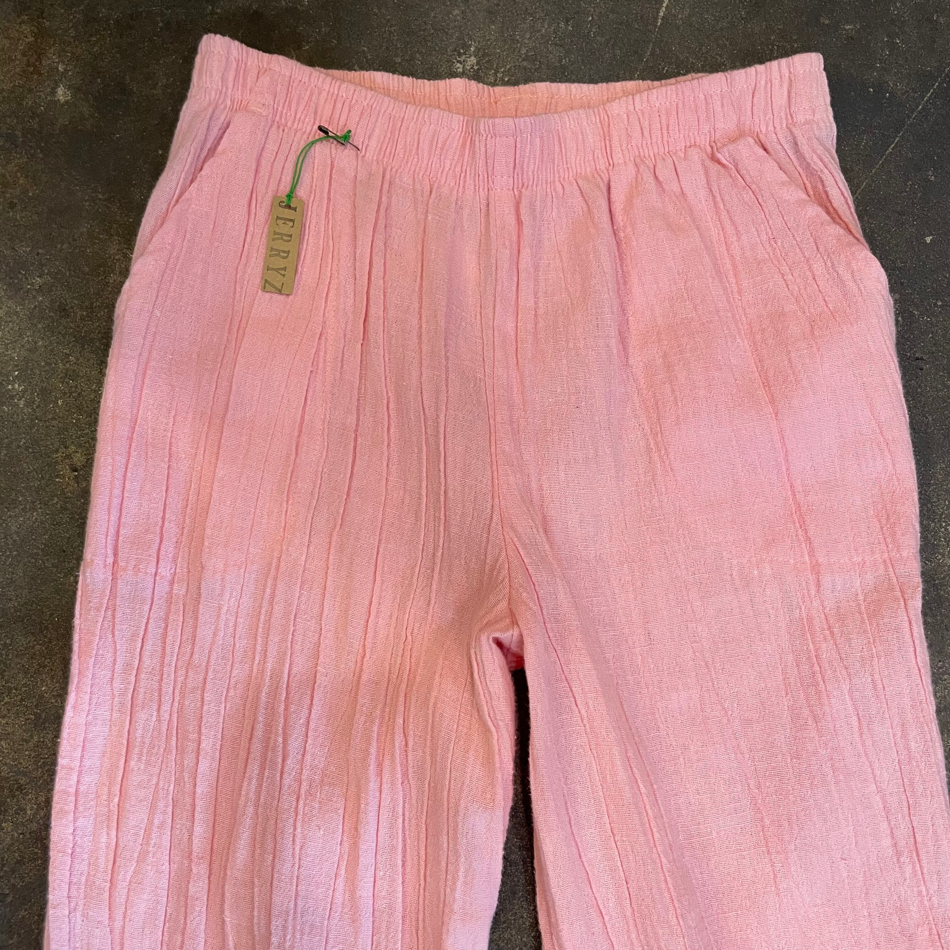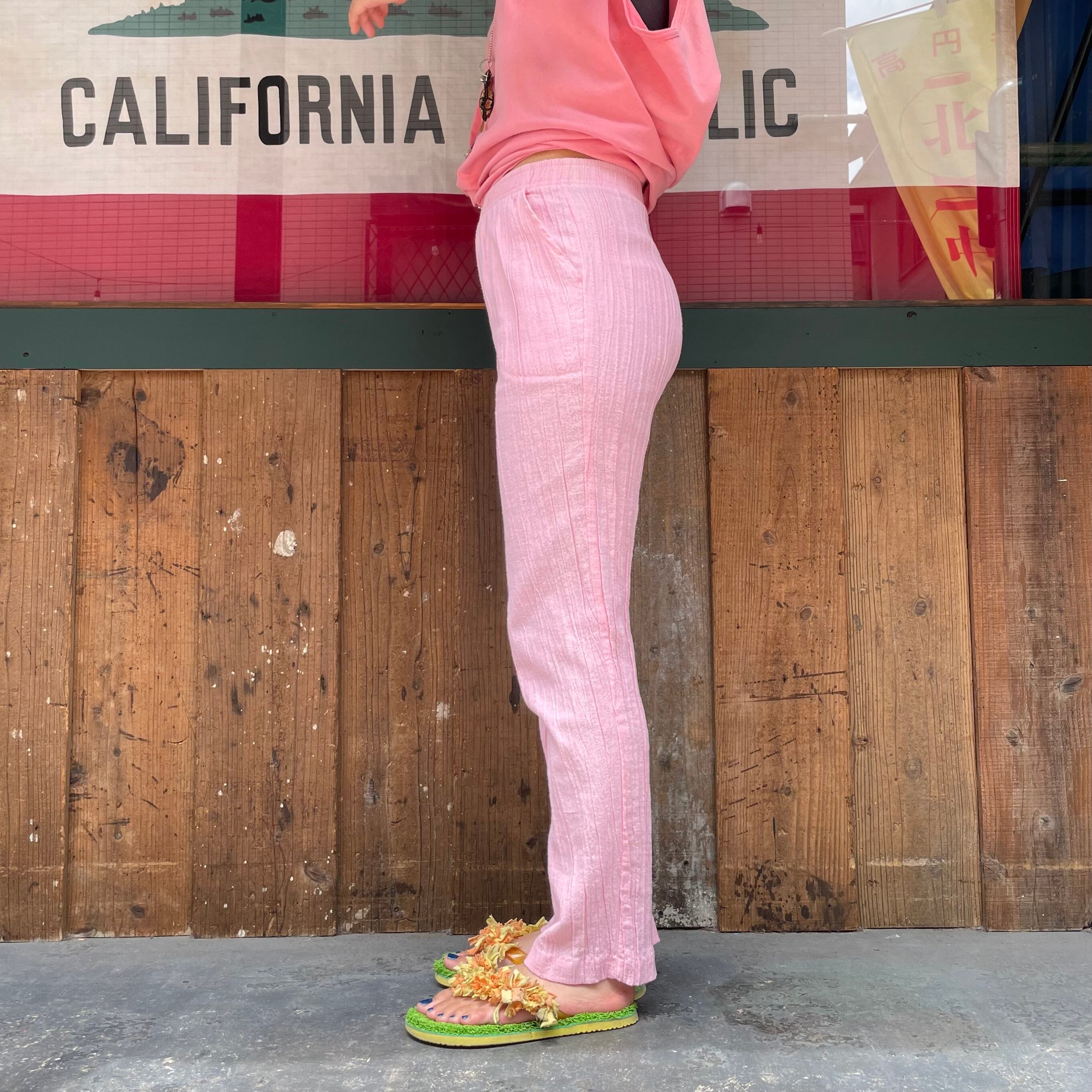 ベビーピンクの優しい雰囲気がかわいいイージーパンツです。