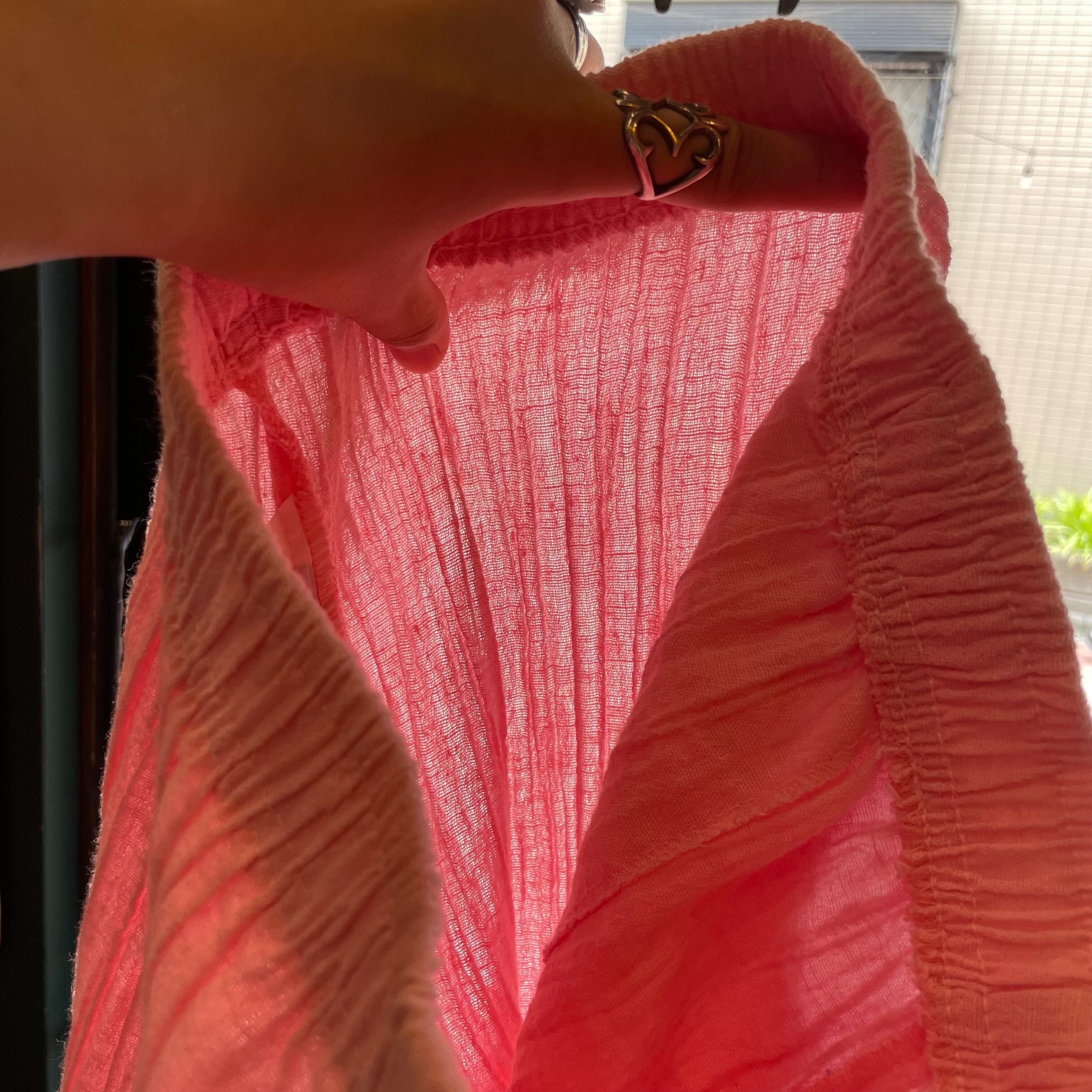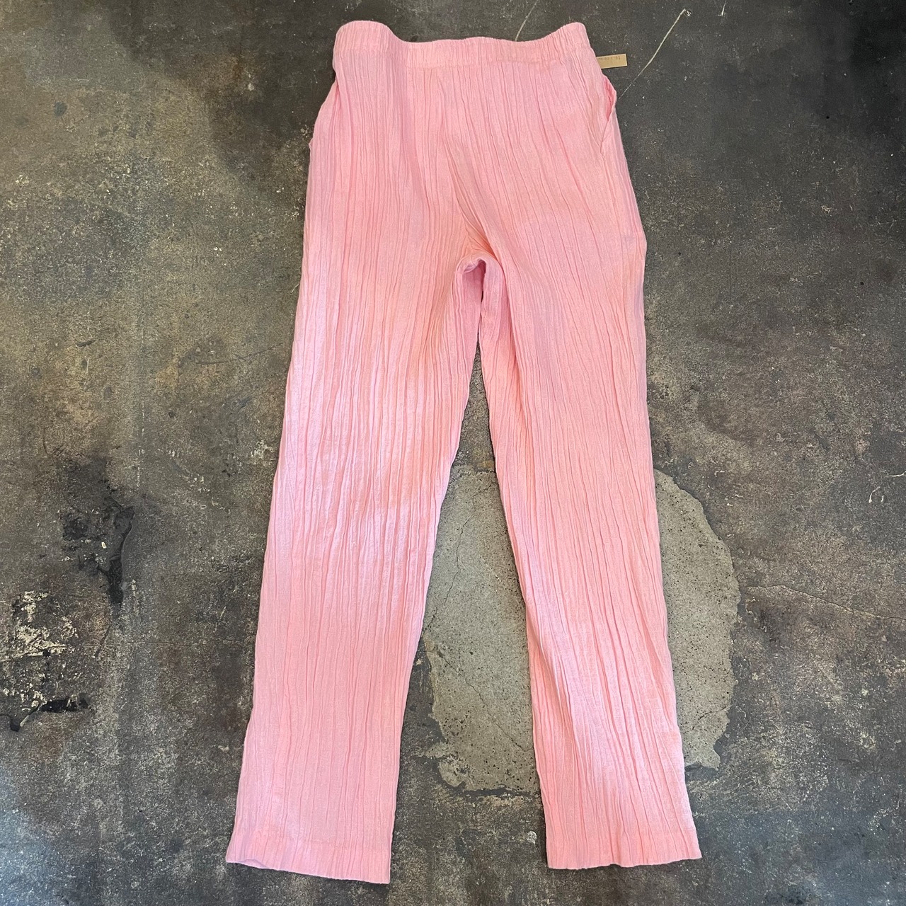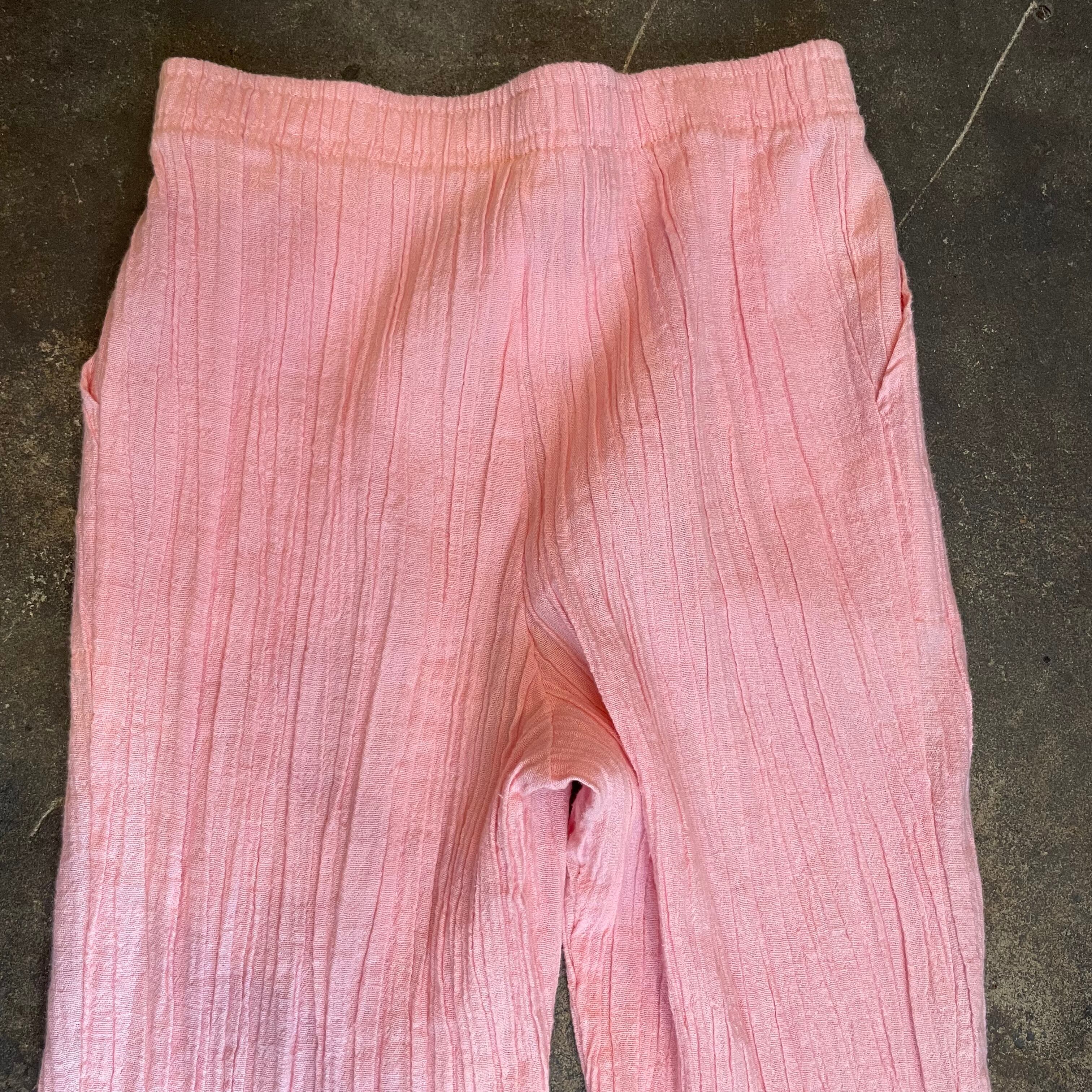 ベビーピンクの優しい雰囲気がかわいいイージーパンツです。