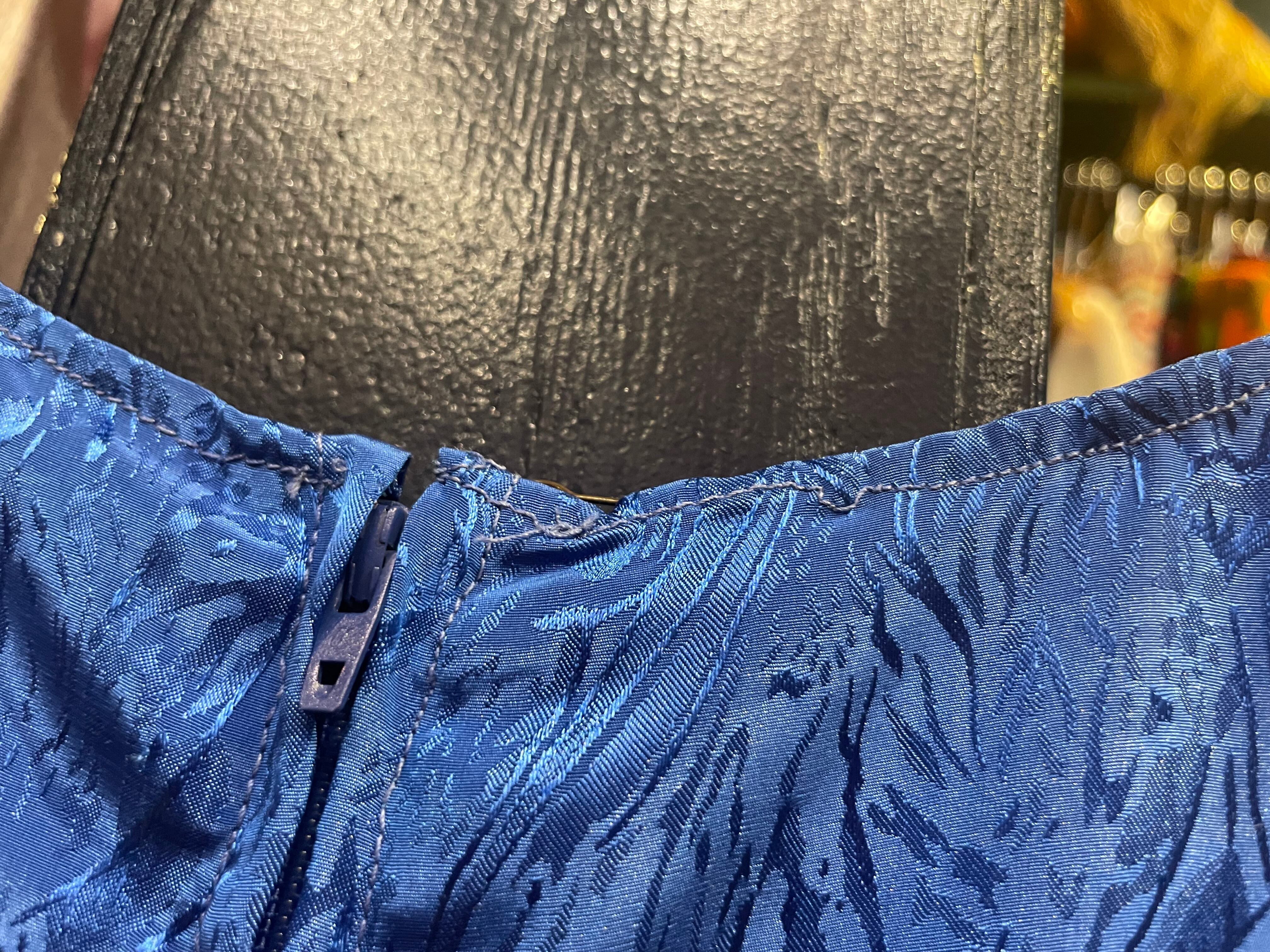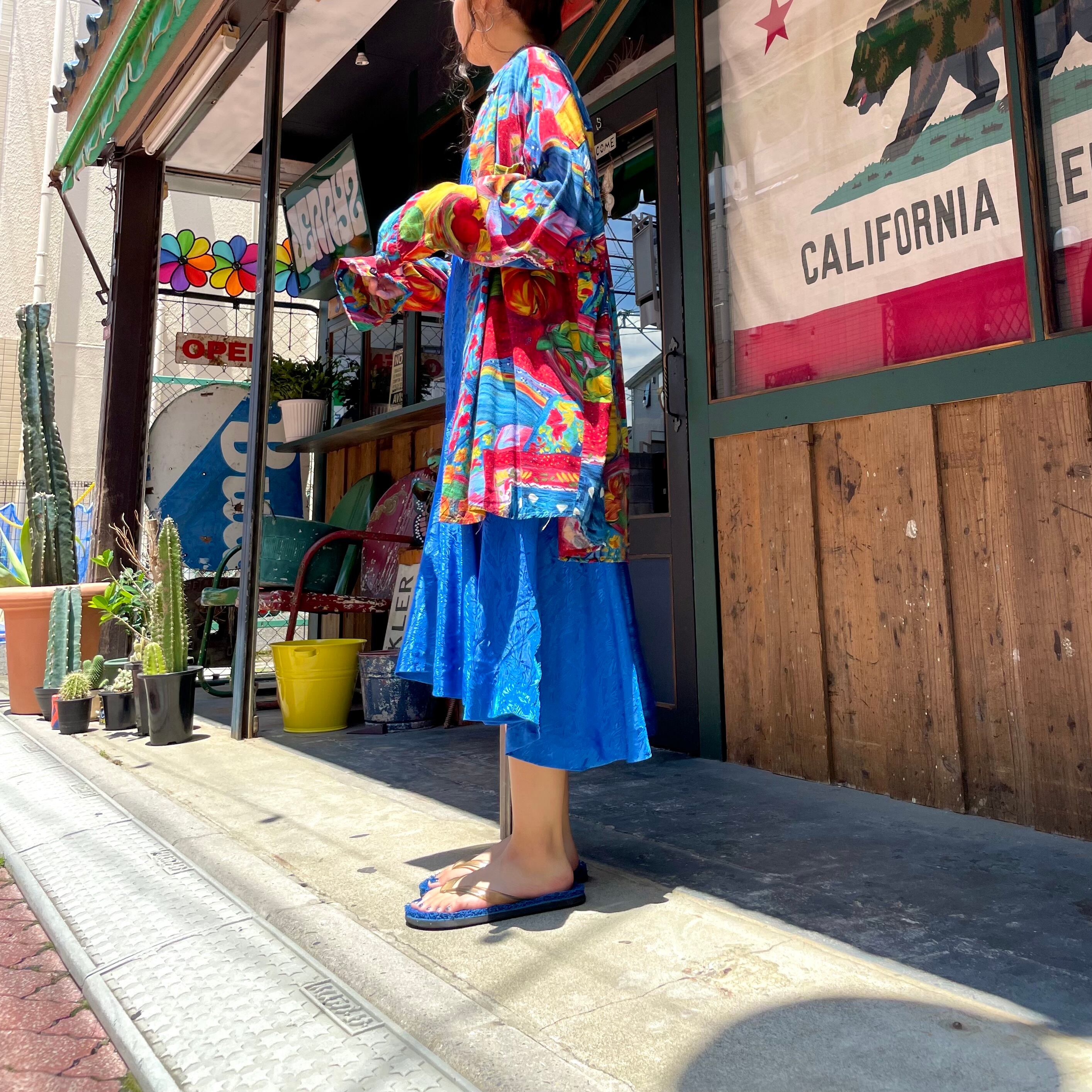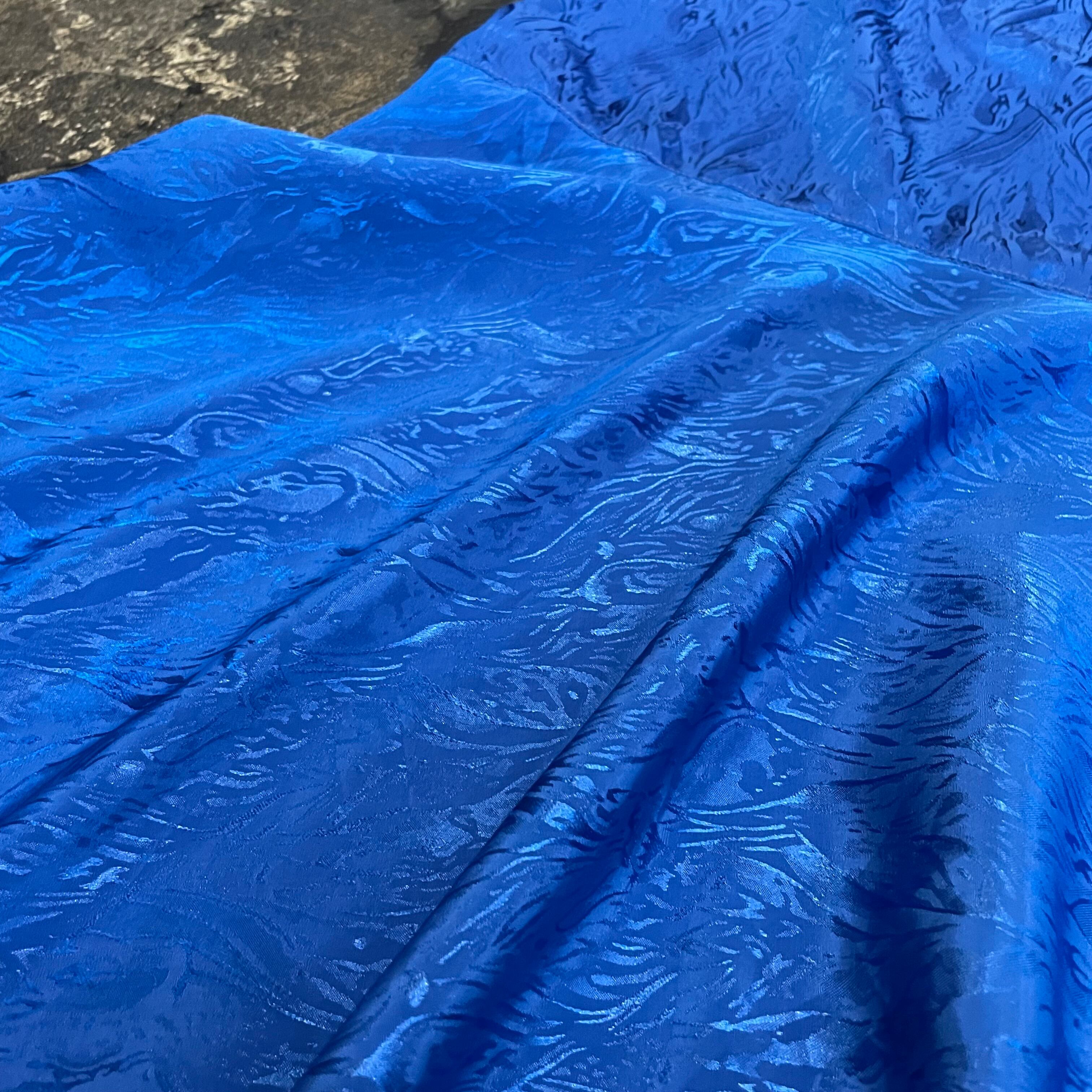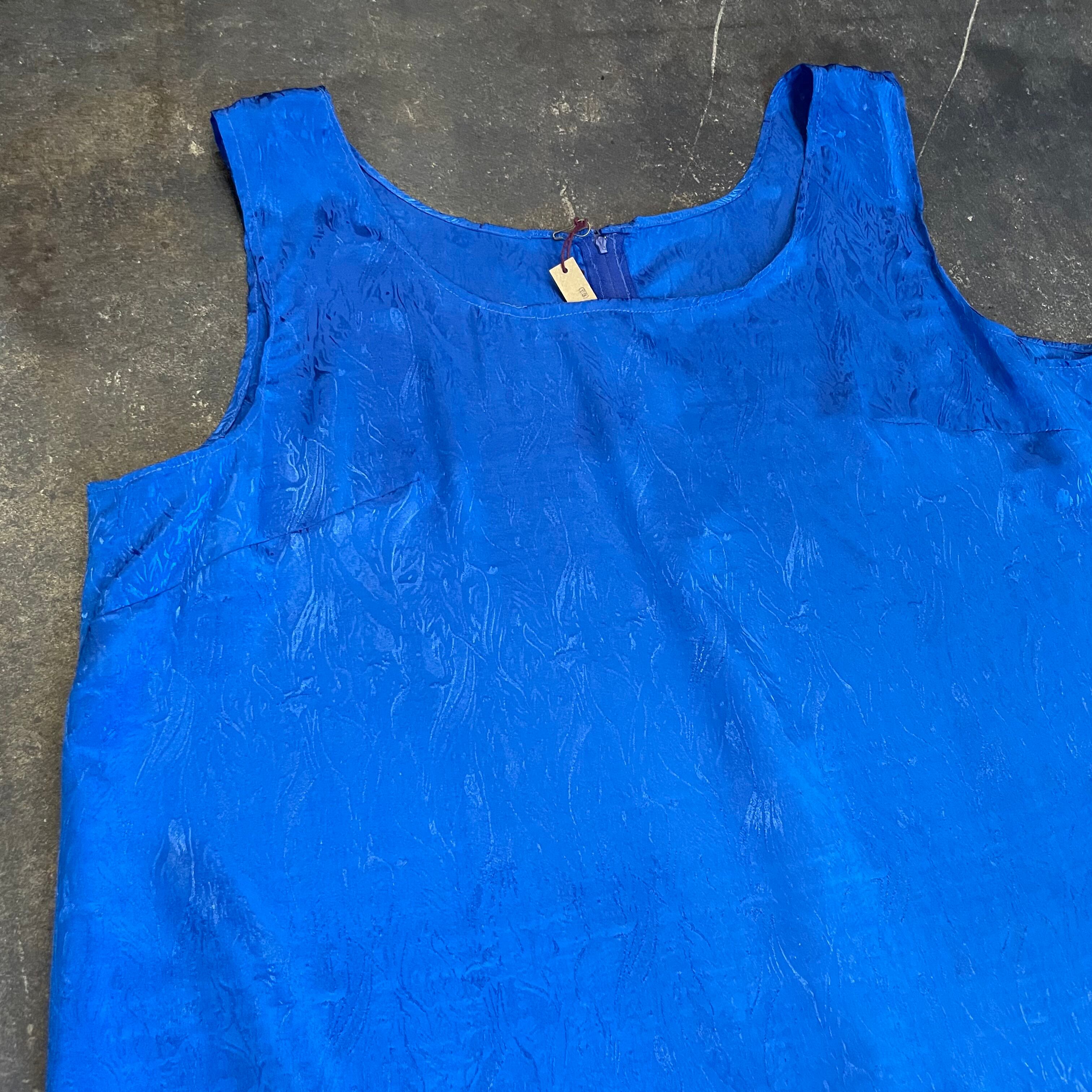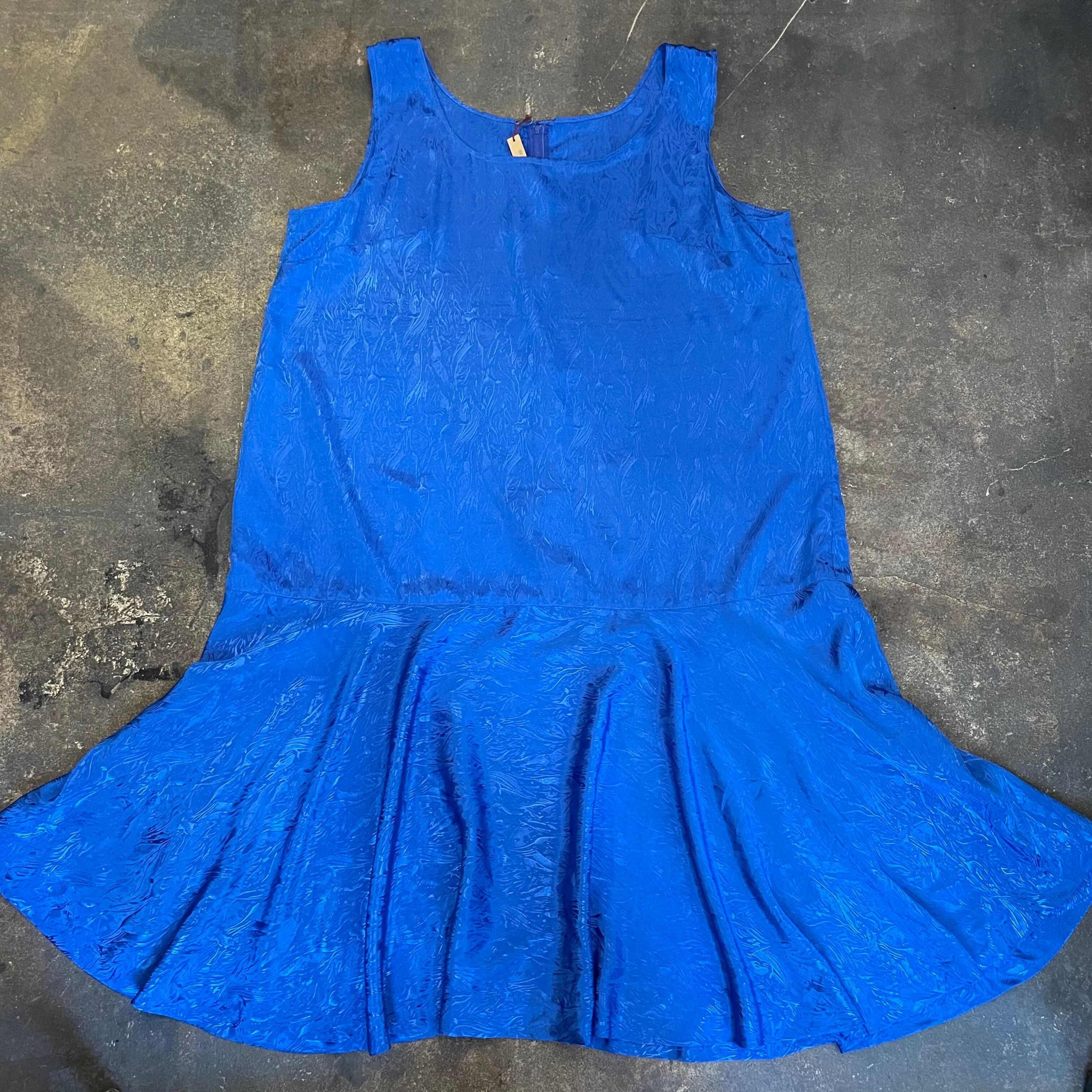 光沢感のある薄手でテロテロの素材感がかわいい、真っ青なワンピースです。