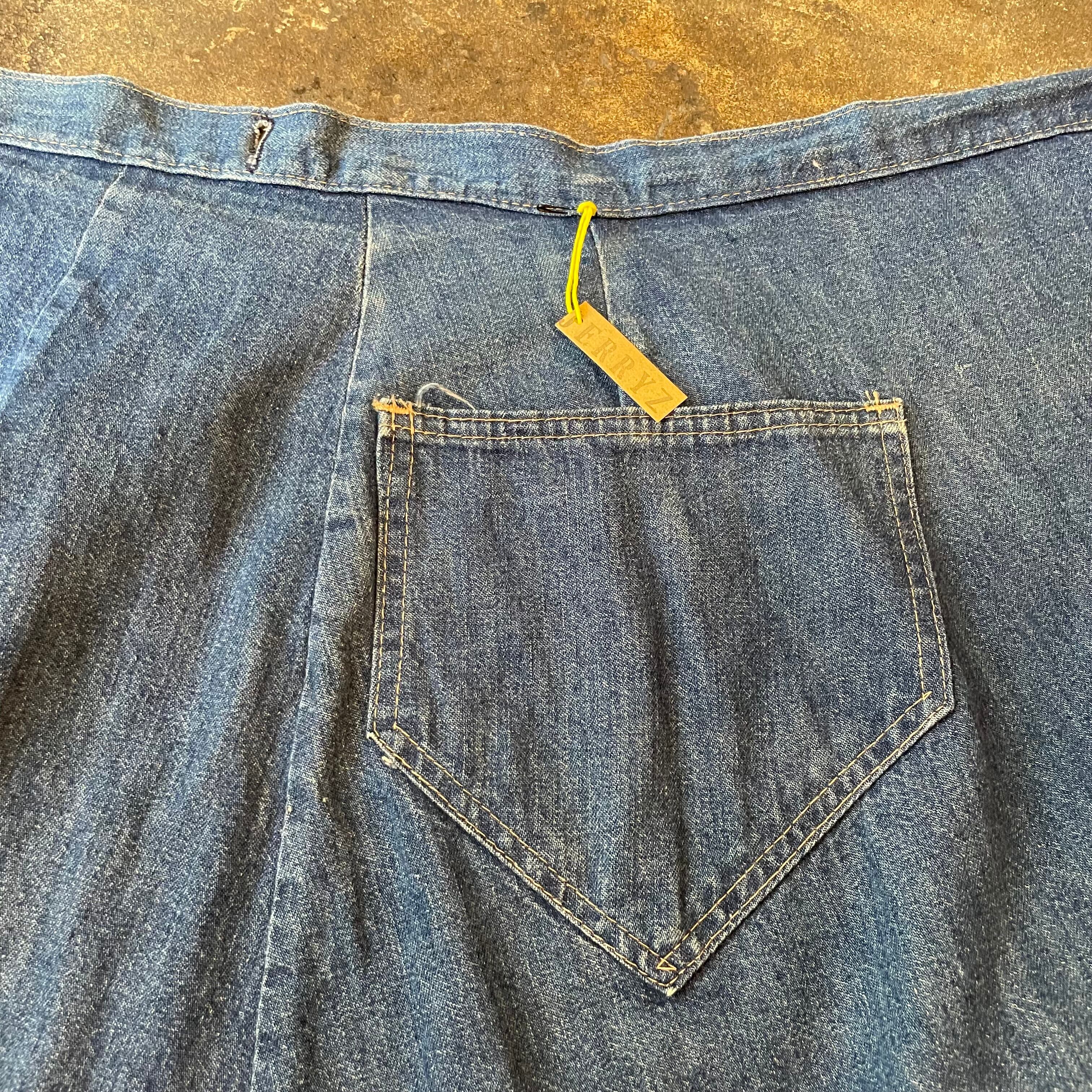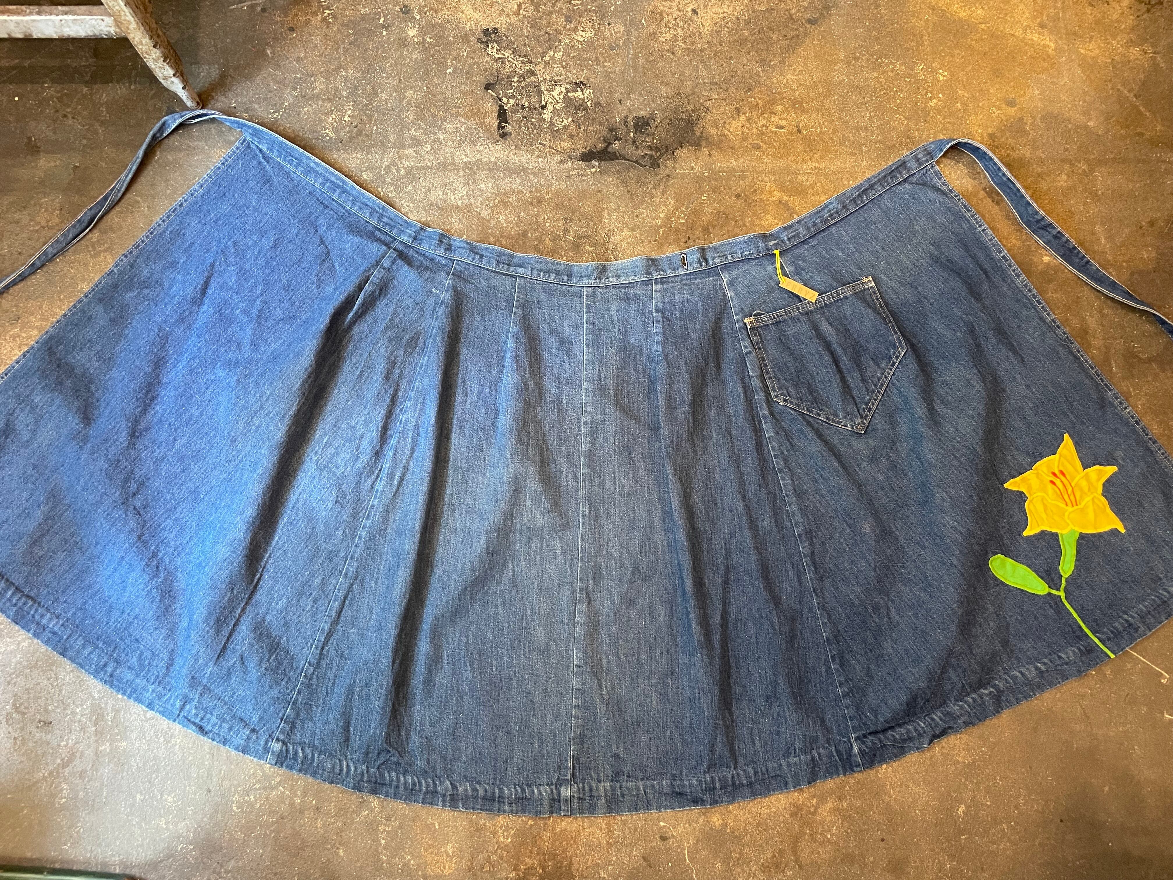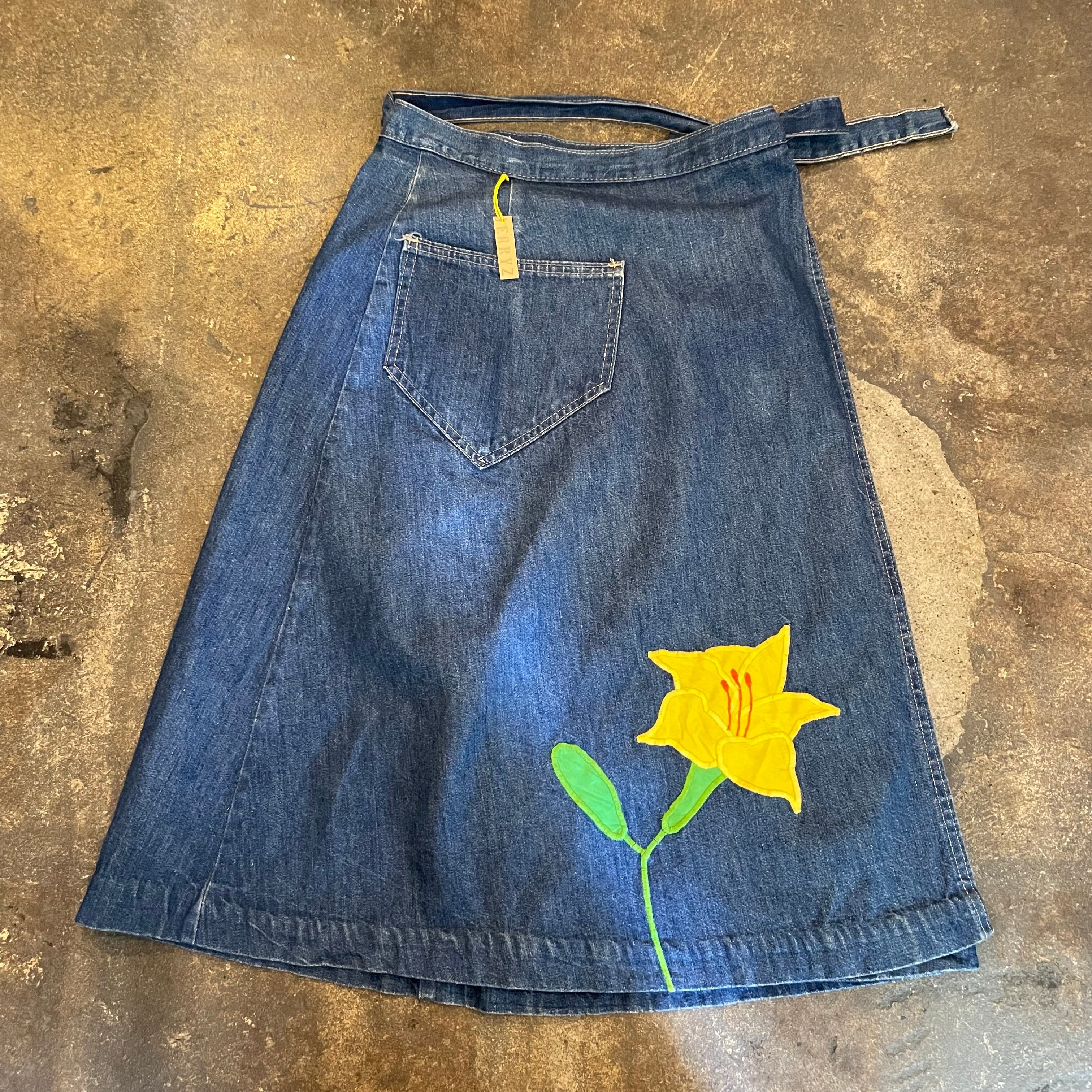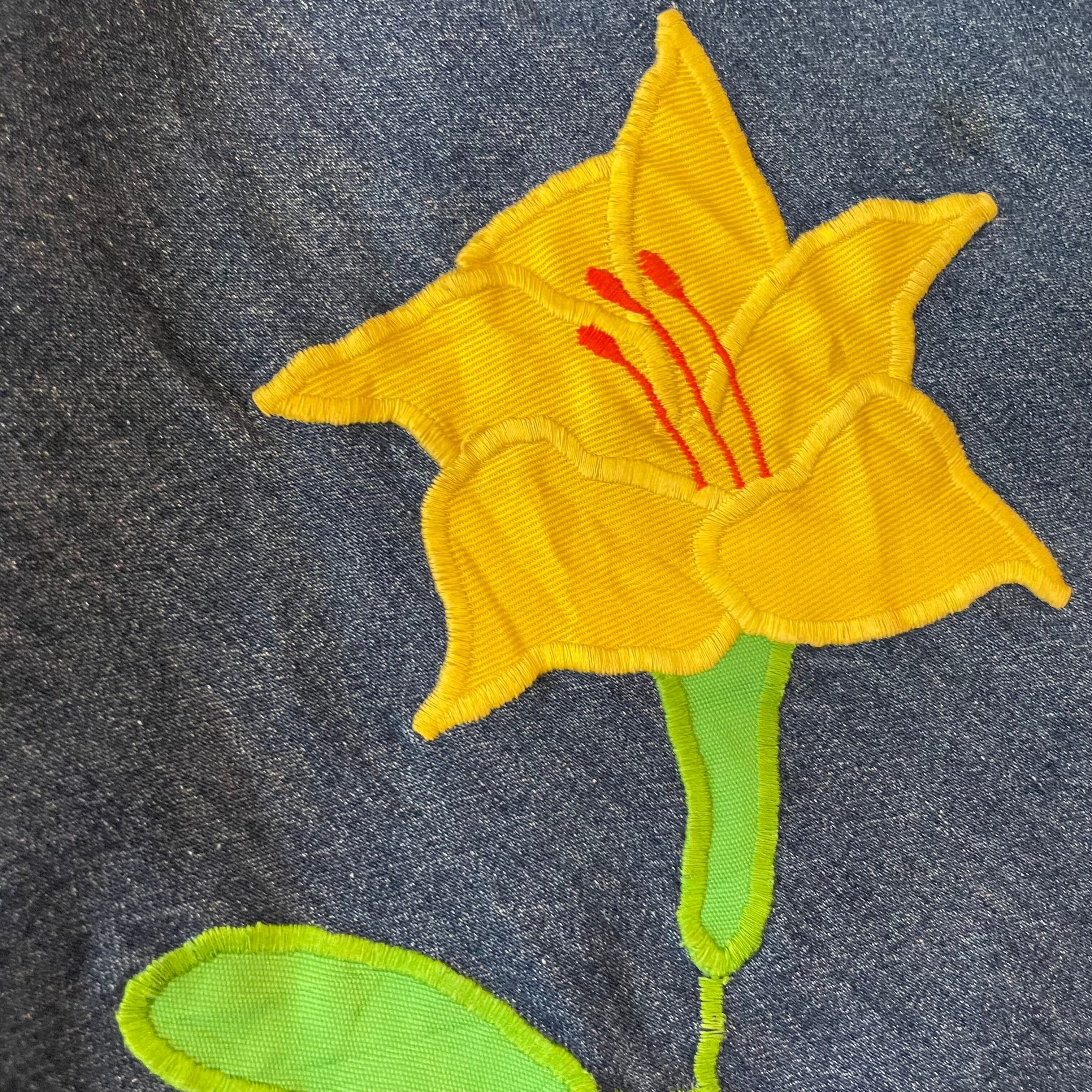 黄色の百合の花?のパッチワークがかわいいデニムの巻きスカートです。