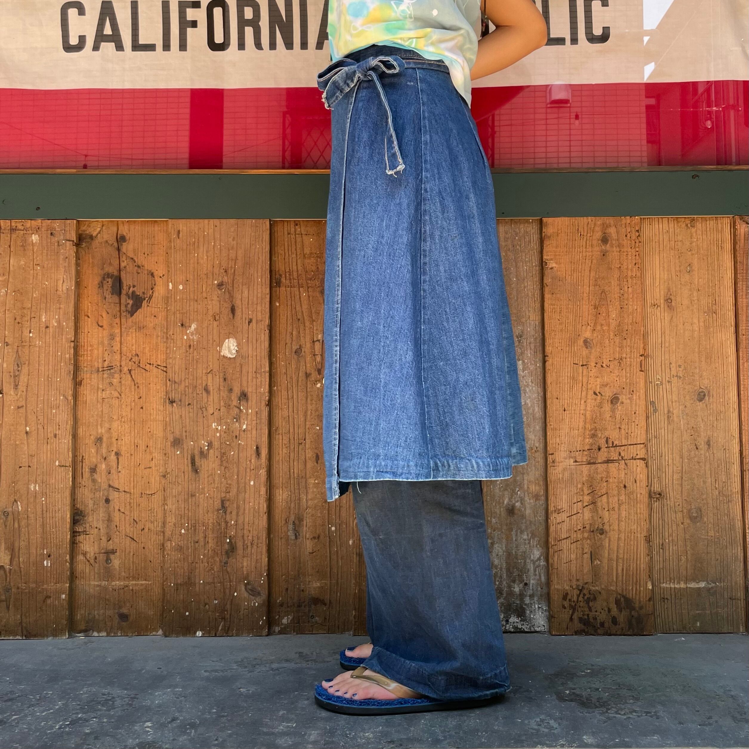デニムの巻きスカートはついついデニムオンデニムにしたくなりそれももちろんかわいいのですが、チェックのロングスカートやワンピースの上に巻いてエプロンっぽくするのも良いですし、靴下スニーカーでもかわいいですね。