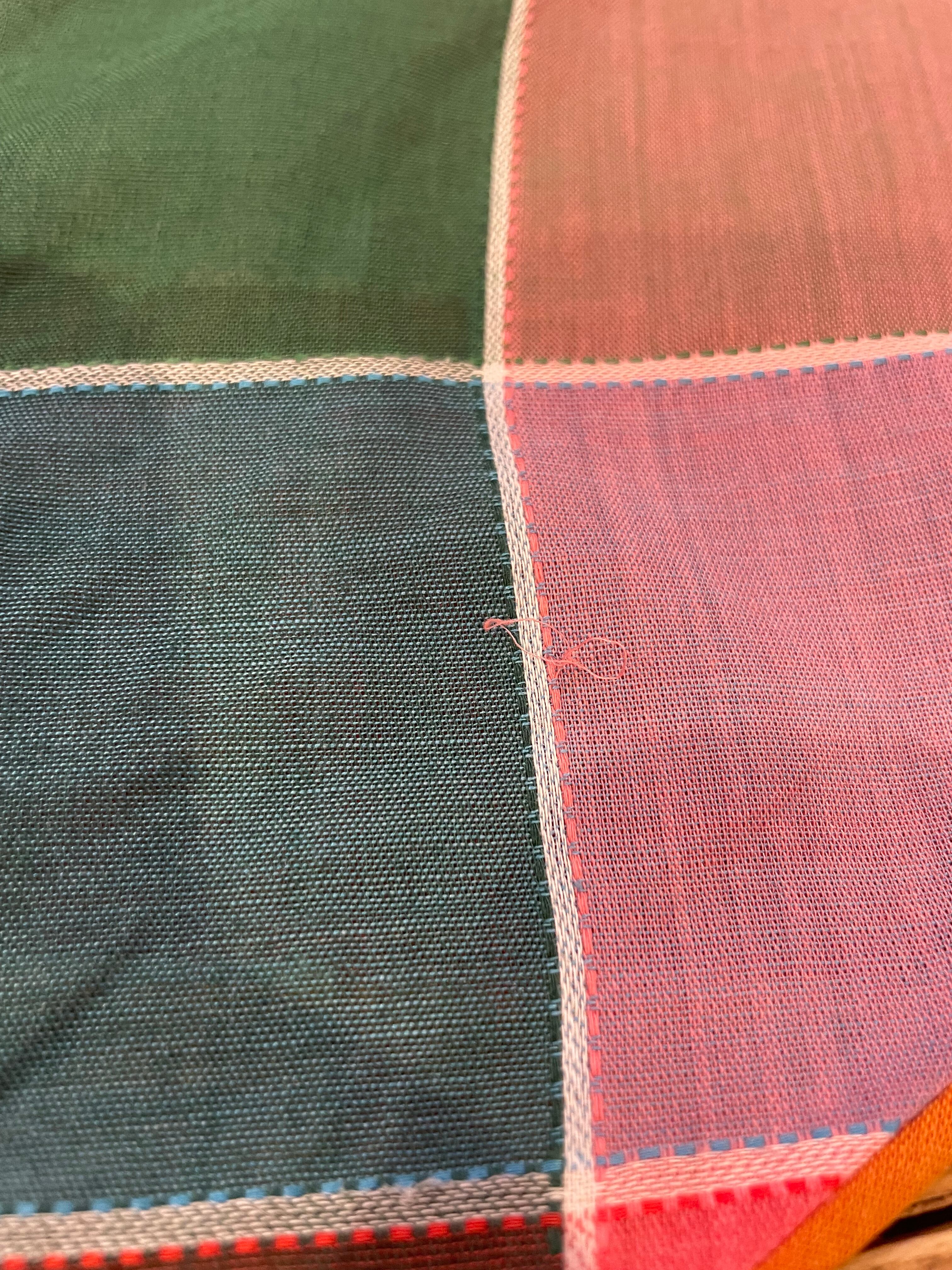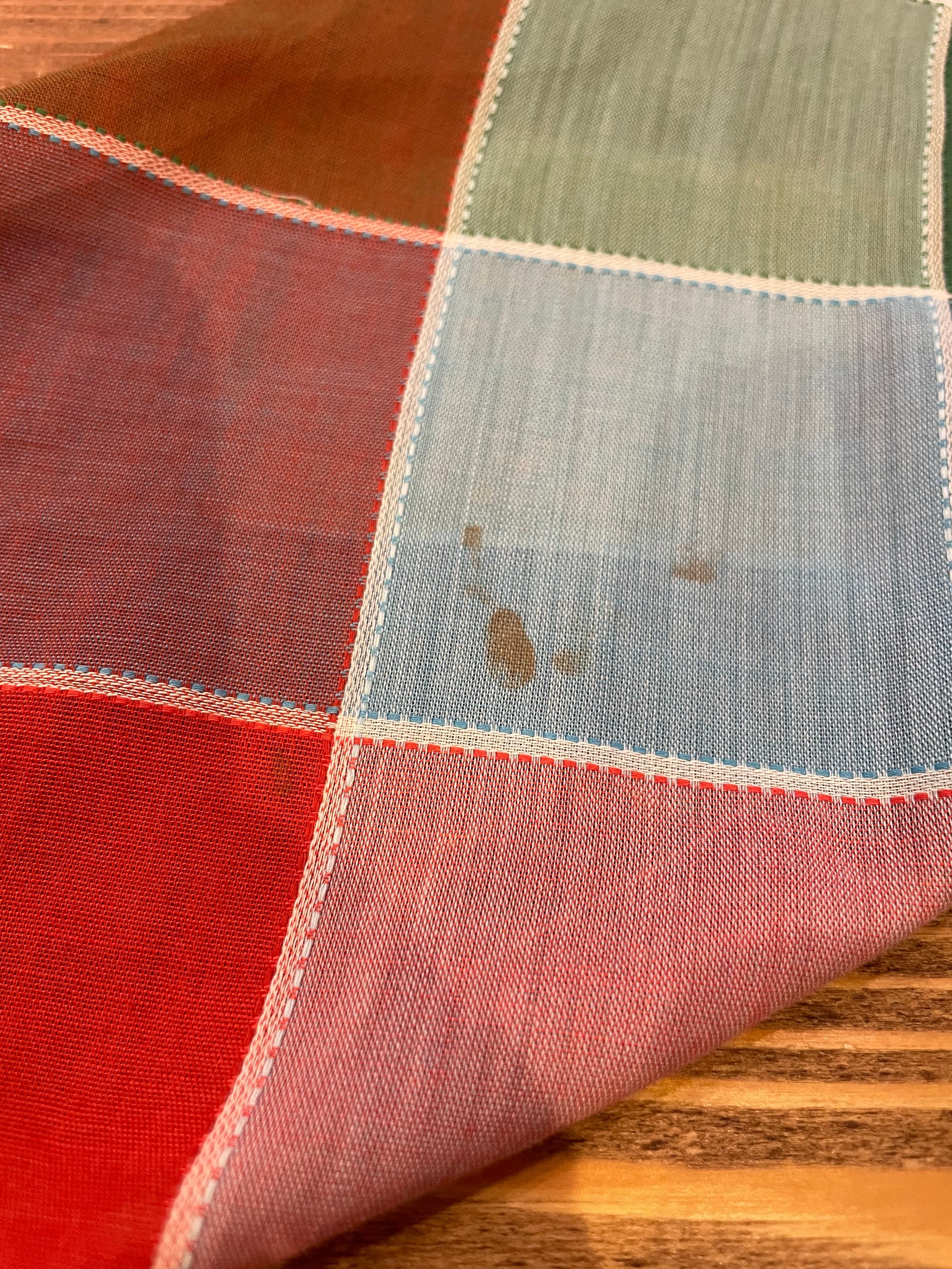 色の切り替えごとにステッチのような織りの特徴があり生地自体がとても凝っていて魅力的な一枚だと思います。透けるほど薄手の軽くて涼しい素材感なので、夏の日除や冷房対策に使える一枚ですね。キャミワンピやオーバーオールに羽織ったり、春秋は上にTシャツを重ねたり、ニットベストやスウェットを重ねて襟だけ出すのもかわいいと思います。