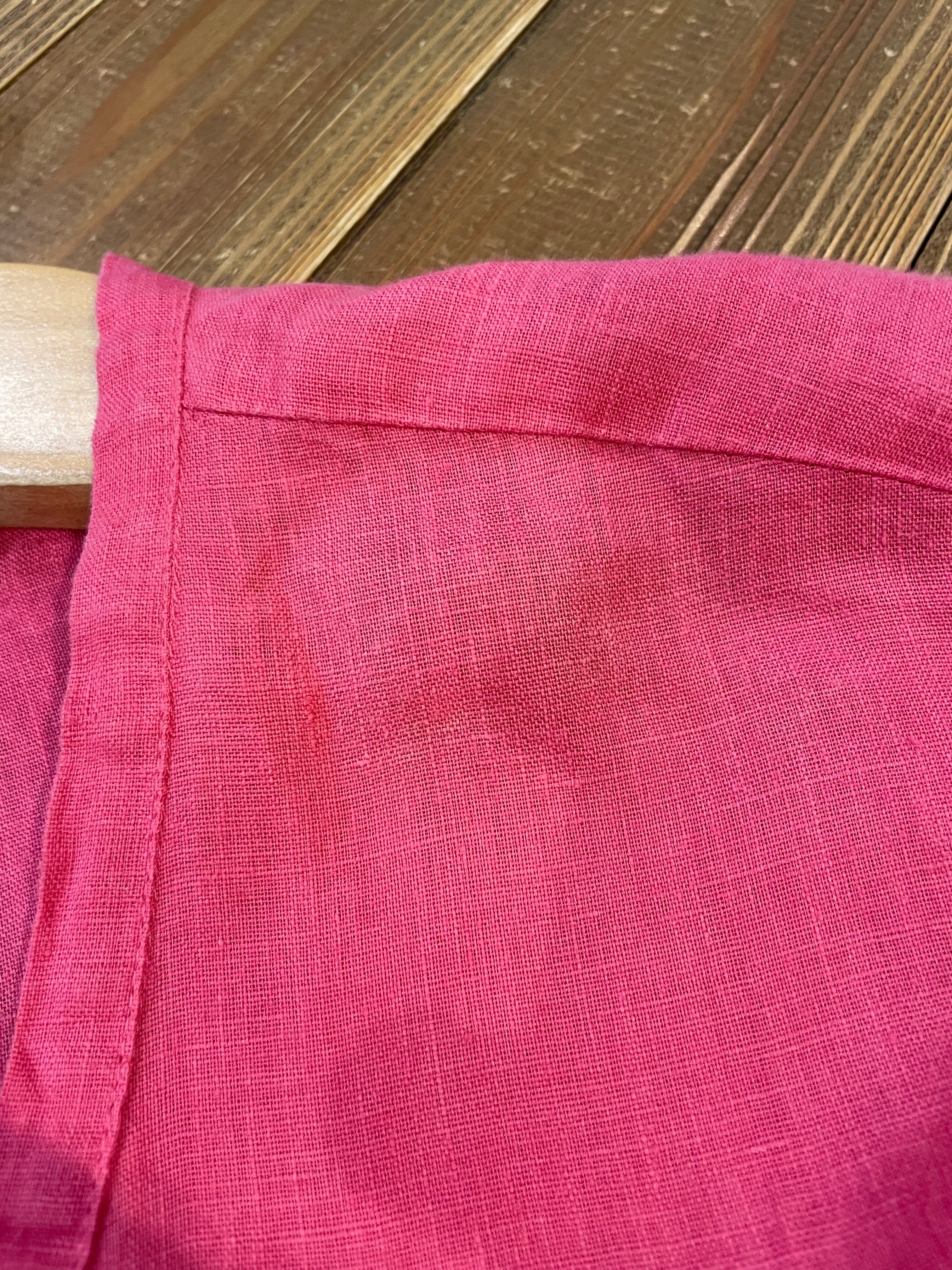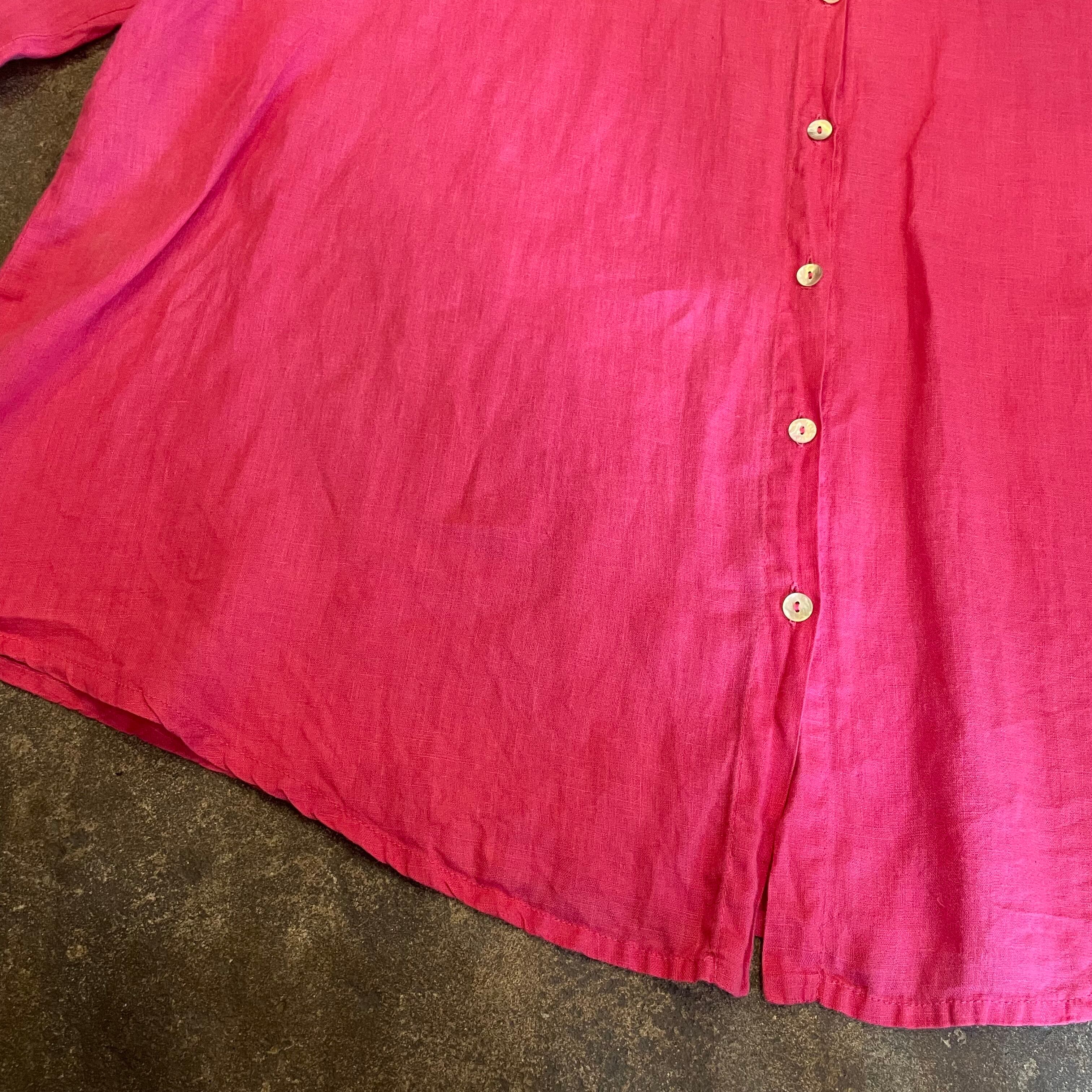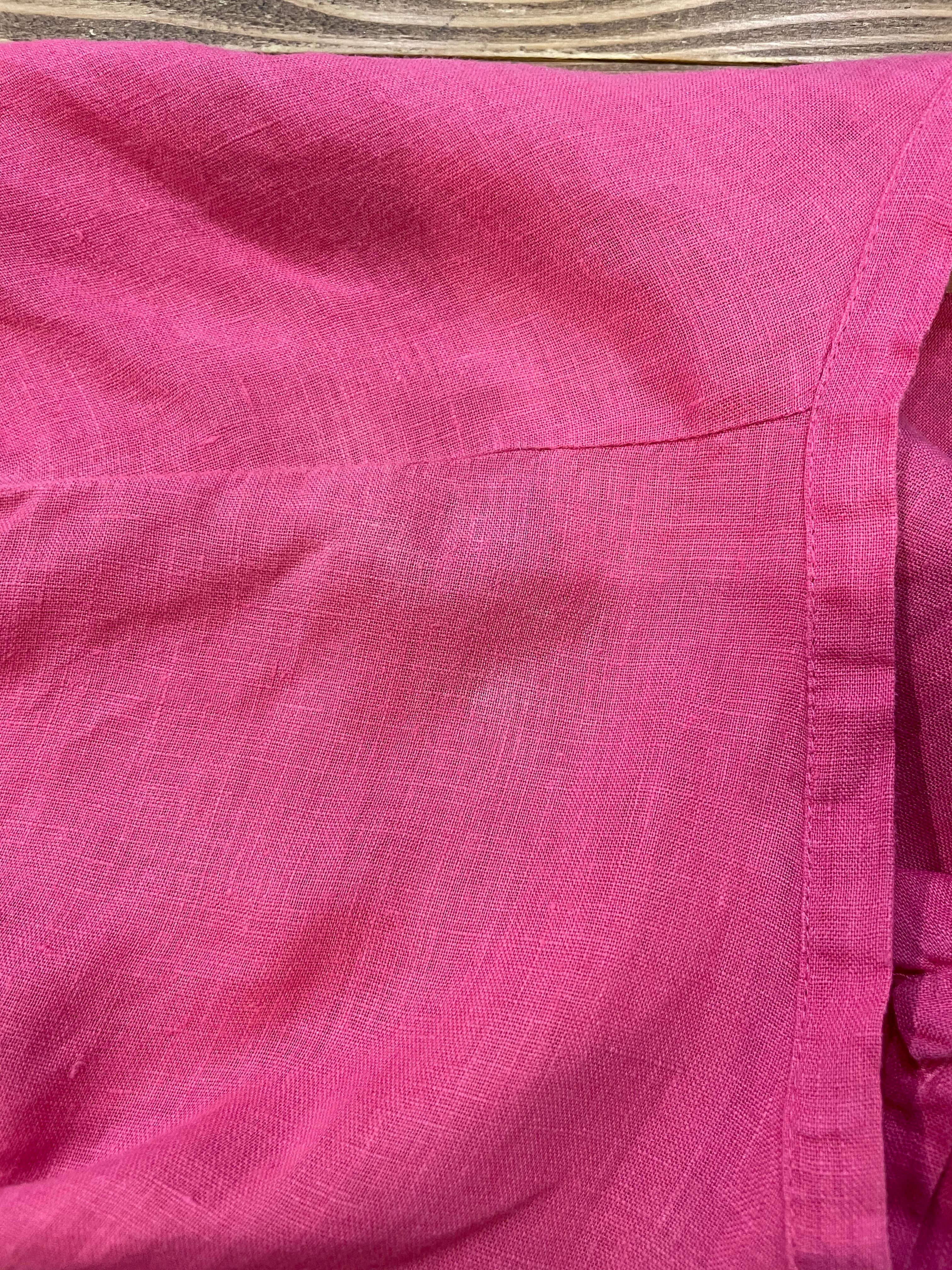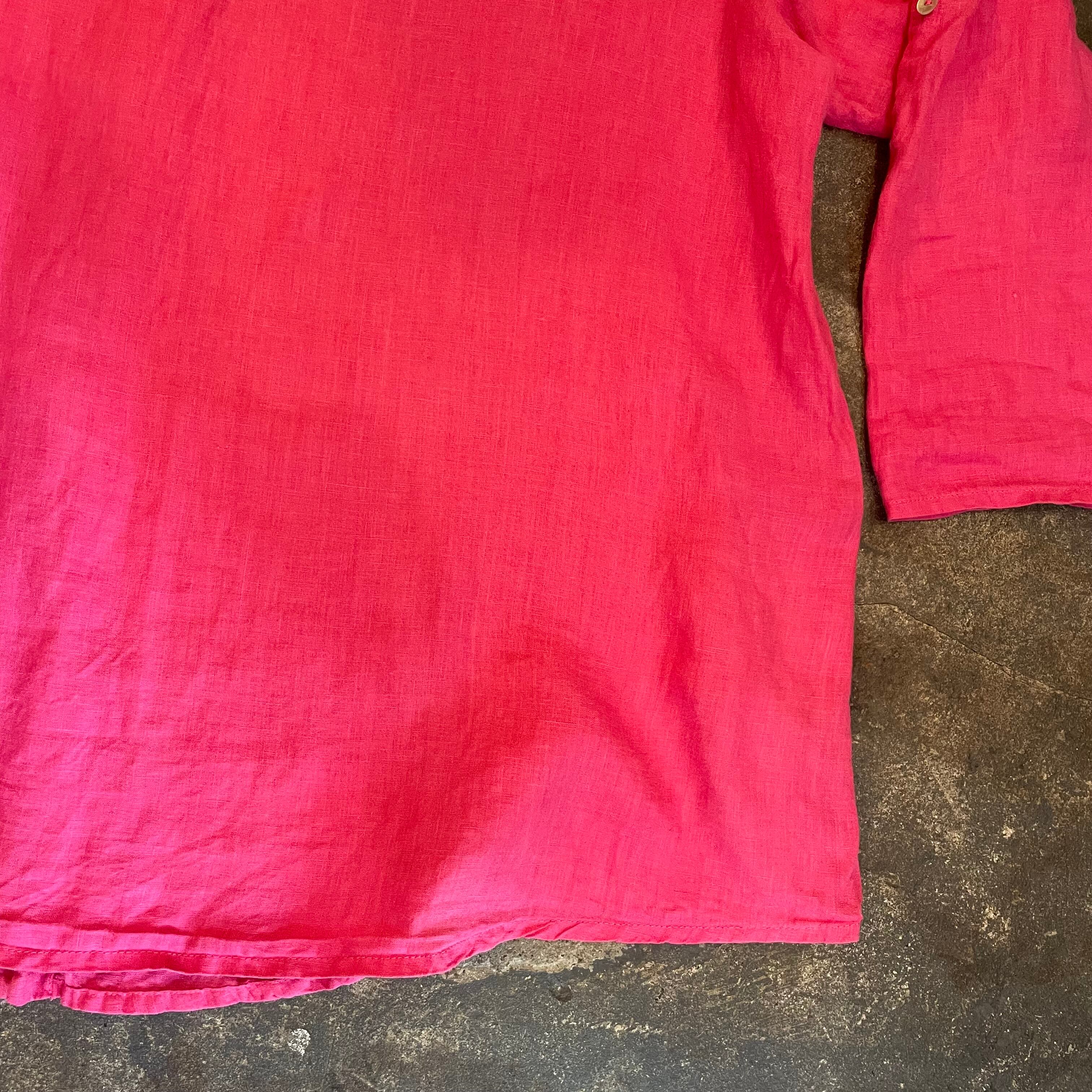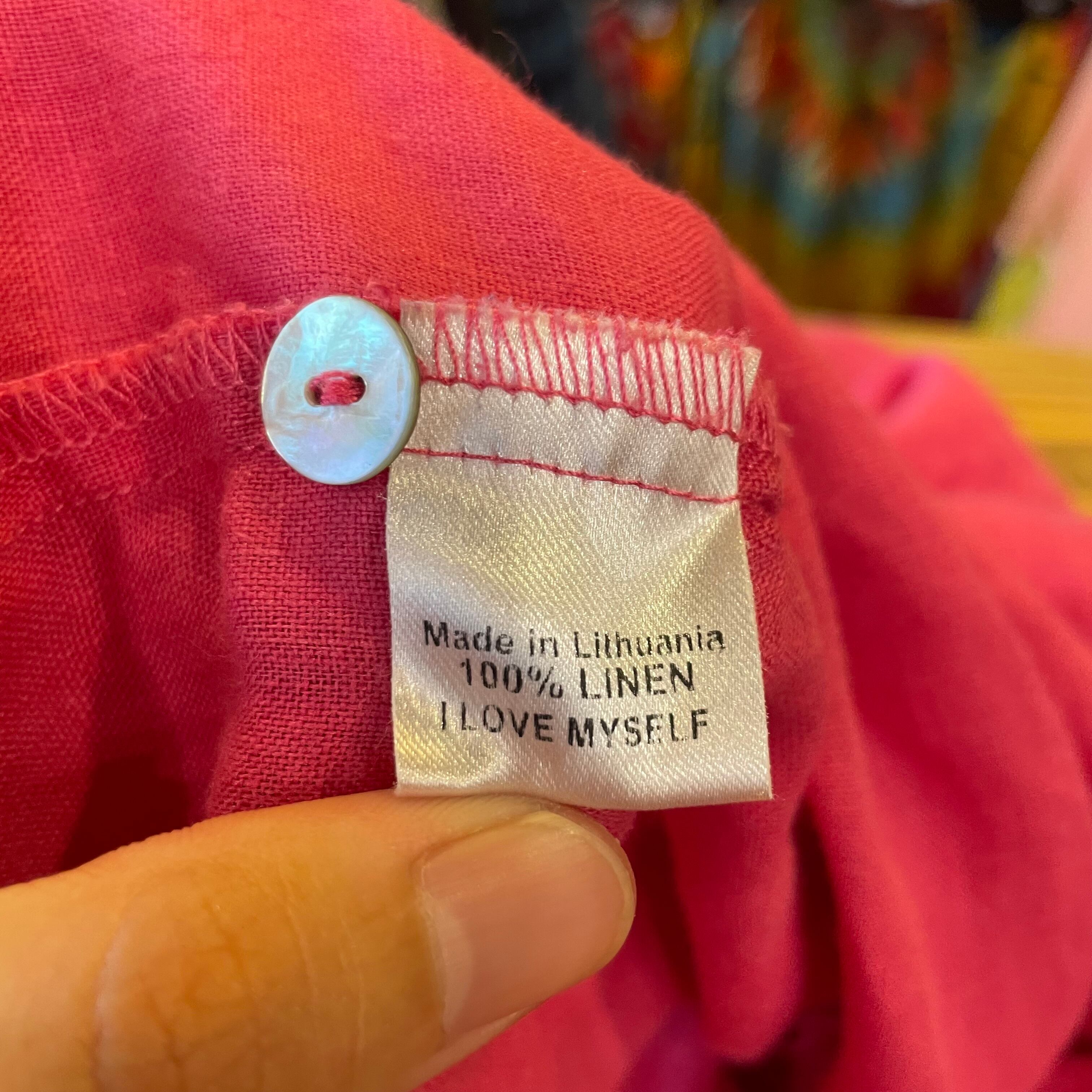 濃いめのピンクでやんちゃな印象なのに、素材はリネンで上品ですしかなりゆったりオーバーサイズなところもリラクシングな雰囲気で素敵ですね。