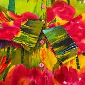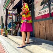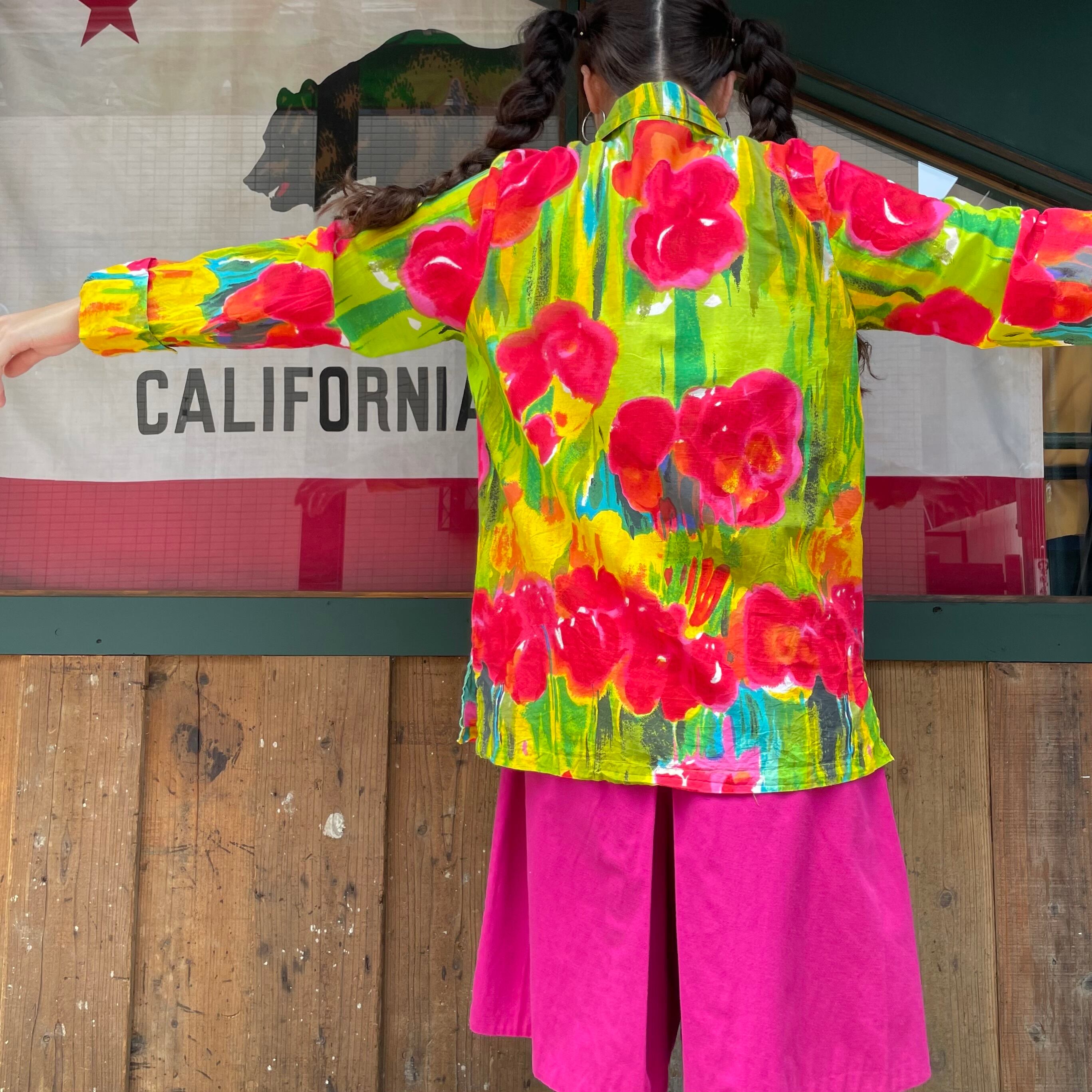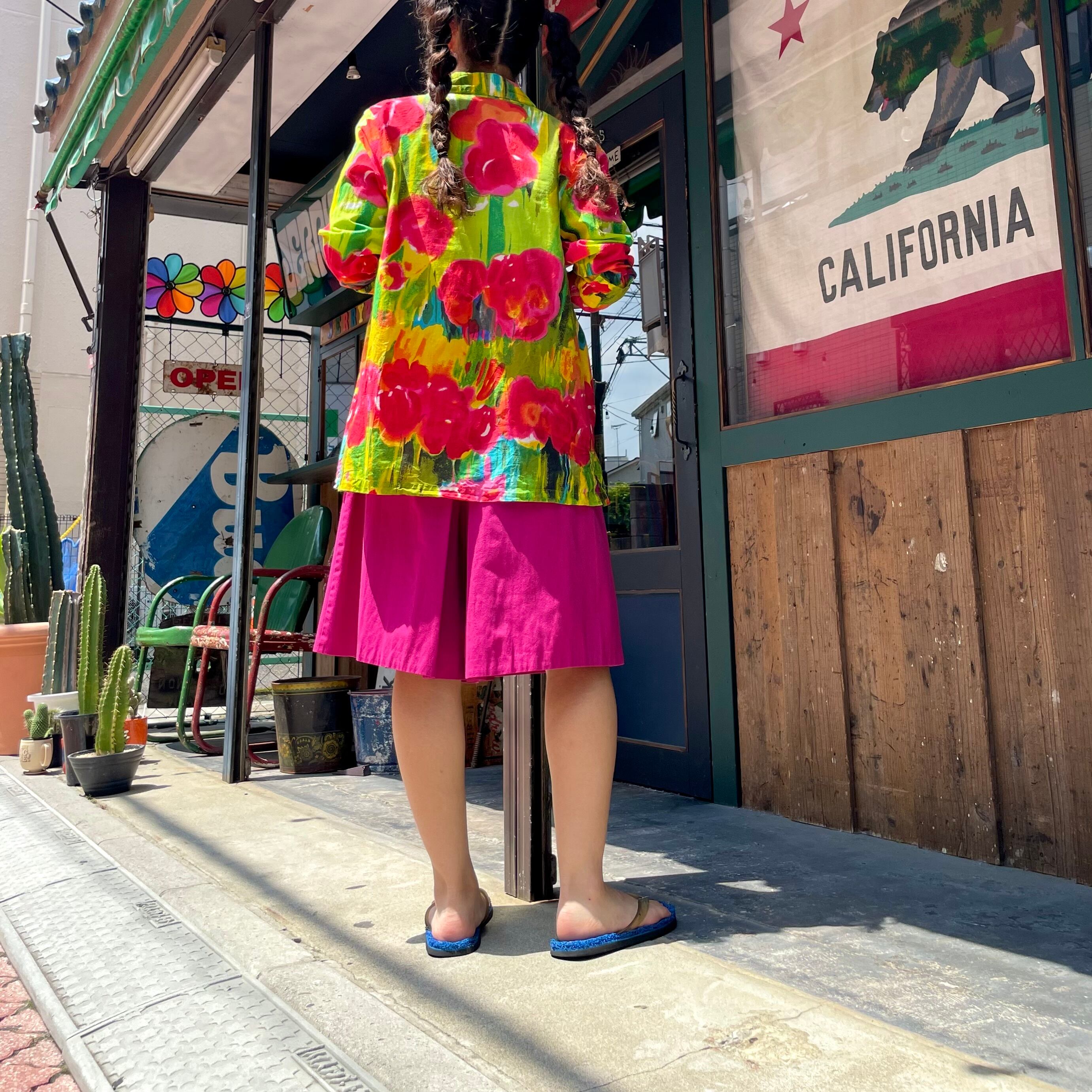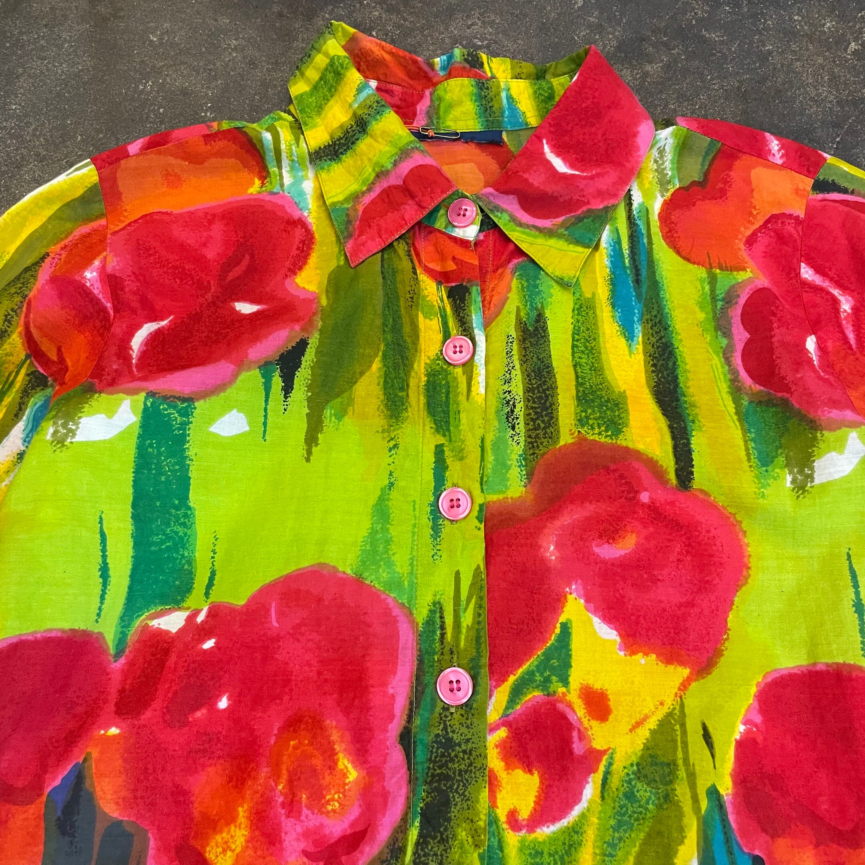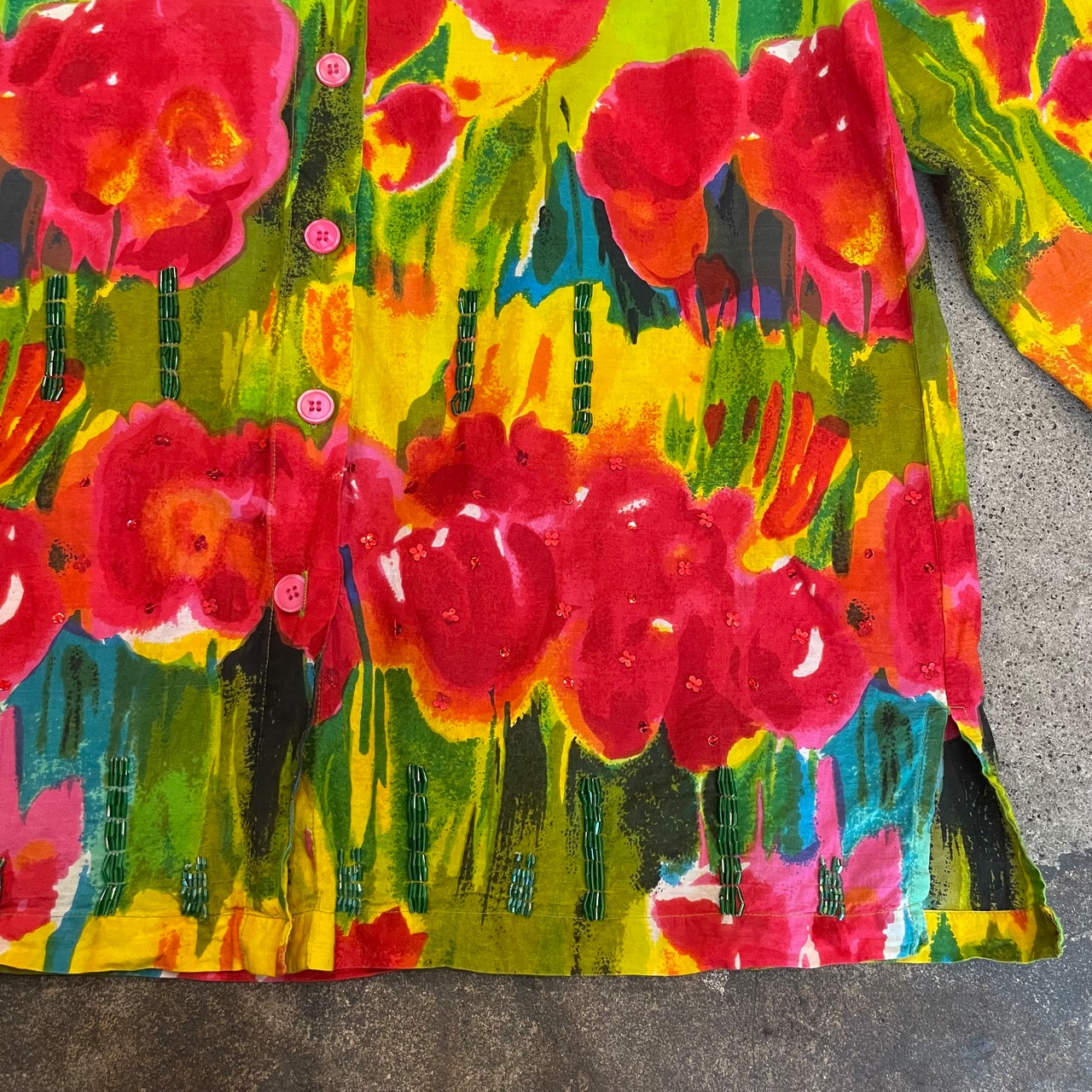 チューリップ畑のような柄がかわいい長袖シャツです。